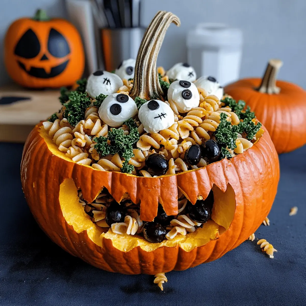 Als ich neulich durch die bunten Blätter des Herbstes spazierte, überkam mich die Vorfreude auf Halloween. Und was könnte besser geeignet sein, um diese festliche Stimmung zu spiegeln, als ein Halloween Kürbisnudelsalat aus dem speienden Kürbis? Diese kreative Mischung aus nussigen Vollkornnudeln, geröstetem Kürbis und knackigem Grünkohl ist nicht nur ein echter Hingucker, sondern auch eine gesunde Wahl für die ganze Familie. In kürzester Zeit zaubert ihr mit diesen schaurig-schönen Augen aus Mozzarella einen Spaß, den sowohl Kinder als auch Erwachsene lieben werden. Und das Beste? Dieser Nudelsalat lässt sich hervorragend vorbereiten und wird in der lächelnden Kürbisdose zum verlockenden Mittelpunkt auf dem Tisch. Seid ihr bereit, eure Halloween-Feier aufzufrischen? Warum in die Tiefe gehen? Einzigartiges Festmahl: Unser Kürbisnudelsalat aus dem speienden Kürbis wird Hogwarts-Flair in eure Küche bringen! Dieser köstliche Nudelsalat kombiniert die erdige Süße von geröstetem Kürbis mit der nussigen Struktur von Vollkornnudeln – perfekt für gruselige Feiern. Einladende Präsentation: In einer ausgehöhlten Kürbisdose serviert, ist er der Hingucker auf jedem Tisch und begeistert sowohl Kinder als auch Erwachsene. Einfache Zubereitung: Die Schritte sind unkompliziert und für jeden einfach umsetzbar, sodass ihr mehr Zeit für den Spaß haben könnt. Gesunde Option: Der reichhaltige Grünkohl und die frischen Zutaten machen diesen Salat zu einer nahrhaften Wahl. Ihr könnt sogar die Variationen ausprobieren für noch mehr Kreativität! Halloween Nudelsalat Zutaten • Der perfekte Start für euer Halloween-Essen! Für den Salat Vollkornnudeln – sorgen für die gesunde Basis des Salats; jede Art von Vollkornnudeln funktioniert gut. Kürbis – bringt die süße und schaurige Note; ausschneiden und rösten ist ein Muss für die Halloween-Präsentation. Grünkohl – fügt eine nahrhafte Komponente hinzu und sorgt für einen schönen Farbkontrast; kann auch durch Spinat ersetzt werden. Für die “Augen” Mozzarellakugeln – ideal für die gruseligen Augen im Salat; Feta oder Ziegenkäse sind tolle Alternativen für einen anderen Geschmack. Schwarze Oliven – machen die Pupillen der Augen aus; jede Art von entsteinten Oliven funktioniert hier. Mit diesen Zutaten werdet ihr schnell zu den Stars jedes Halloween-Festes – lasst die gruselige Küchenparty beginnen! Schritt-für-Schritt-Anleitung für den Halloween Kürbisnudelsalat aus dem speienden Kürbis Step 1: Kürbis vorbereiten Höhle einen mittelgroßen Kürbis aus, indem du die Oberseite sorgfältig abschneidest und die Innenseiten mit einem Löffel oder Schaber entfernst. Das Fruchtfleisch kannst du für andere Rezepte aufbewahren. Achte darauf, dass der Kürbis auf einer stabilen Fläche steht, um ein Umkippen zu vermeiden, während du den Nudelsalat hineinfüllst. Step 2: Kürbis rösten Schneide den Kürbis in kleine Würfel und lege sie auf ein Backblech. Beträufle die Stücke mit Olivenöl, würze sie mit Salz und Pfeffer, und röste sie im vorheizten Backofen bei 200°C für etwa 25–30 Minuten, bis sie zart und leicht karamellisiert sind. Die goldene Farbe zeigt an, dass sie perfekt sind für unseren Kürbisnudelsalat. Step 3: Nudeln kochen Bringe einen großen Topf mit leicht gesalzenem Wasser zum Kochen und füge die Vollkornnudeln hinzu. Koche sie für 8–10 Minuten, bis sie al dente sind. Rühre gelegentlich um, damit sie nicht zusammenkleben. Sobald sie fertig sind, gieße die Nudeln ab und lasse sie etwas abkühlen, während du die anderen Zutaten vorbereitest. Step 4: Grünkohl sautieren Erhitze in einer großen Pfanne einen Esslöffel Olivenöl bei mittlerer Hitze und füge den grob gehackten Grünkohl hinzu. Sauté den Grünkohl für etwa 5 Minuten, bis er zusammenfällt und weich wird. Nimm die Pfanne vom Herd und lasse den Grünkohl etwas abkühlen, während du die anderen Komponenten kombinierst. Step 5: Zutaten vermengen In einer großen Schüssel mische die gerösteten Kürbisstücke, die gekochten Vollkornnudeln und den sautierten Grünkohl gut durch. Achte darauf, dass alle Zutaten gleichmäßig verteilt sind, damit der Geschmack im gesamten Kürbisnudelsalat zur Geltung kommt. Genieße die meist herbstliche Mischung der Aromen. Step 6: Kürbis füllen Nehme den ausgehöhlten Kürbis und löffle den Nudelsalat vorsichtig hinein. Stelle sicher, dass die Mischung gut gefüllt ist, ohne dass der Kürbis überläuft. Der bunte Salat wird ein appetitlicher Anblick sein, wenn er gut gefüllt ist und die kräftigen Farben zwischen dem Kürbis leuchten. Step 7: Monsteraugen gestalten Verwende die Mozzarellakugeln und schneide die schwarzen Oliven in dicke Scheiben, um Augen zu formen. Platziere jeweils einen Olivenring auf jeder Mozzarellakugel und drücke sie sanft in die Mischung auf dem Kürbis, sodass sie wie gruselige Augen aussehen. Das sorgt für einen spaßigen Effekt auf deinem Kürbisnudelsalat. Step 8: Servieren Setze den gefüllten Kürbis als strahlenden Mittelpunkt auf den Tisch und lade die Gäste ein, sich ihren eigenen portionierten Nudelsalat zu nehmen. Verwende einen großen Löffel, um den Salat aus dem Kürbis zu schöpfen und erlebe, wie die Kombination von Farben und Texturen beste Stimmung verbreitet! Varianten & Substitutionen für Halloween-Kürbisnudelsalat Gestalte dieses festliche Rezept ganz nach deinem Geschmack und überrasche deine Familie mit eigenen kreativen Ideen! Glutenfrei: Verwende Glutenfreie Pasta, um das Gericht für glutenempfindliche Personen geeignet zu machen. Extra Gemüse: Füge bunte Paprika oder Mais hinzu, um den Salat noch lebendiger und nahrhafter zu gestalten. Käsealternativen: Ersetze Mozzarellakugeln durch veganen Käse für eine pflanzliche Variante, die genauso köstlich schmeckt. Würzige Note: Brühe etwas Cayennepfeffer oder Paprika unter den gemischten Salat, um ihm eine scharfe Geschmacksnote zu verleihen. Nussige Ergänzung: