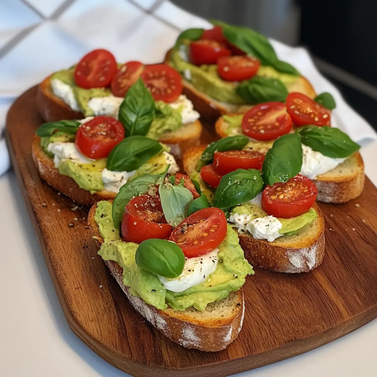 • Frisch zubereiten: Assemble die Bruschetta erst kurz vor dem Servieren. So bleibt das Brot knusprig und matscht nicht durch die feuchte Avocado.