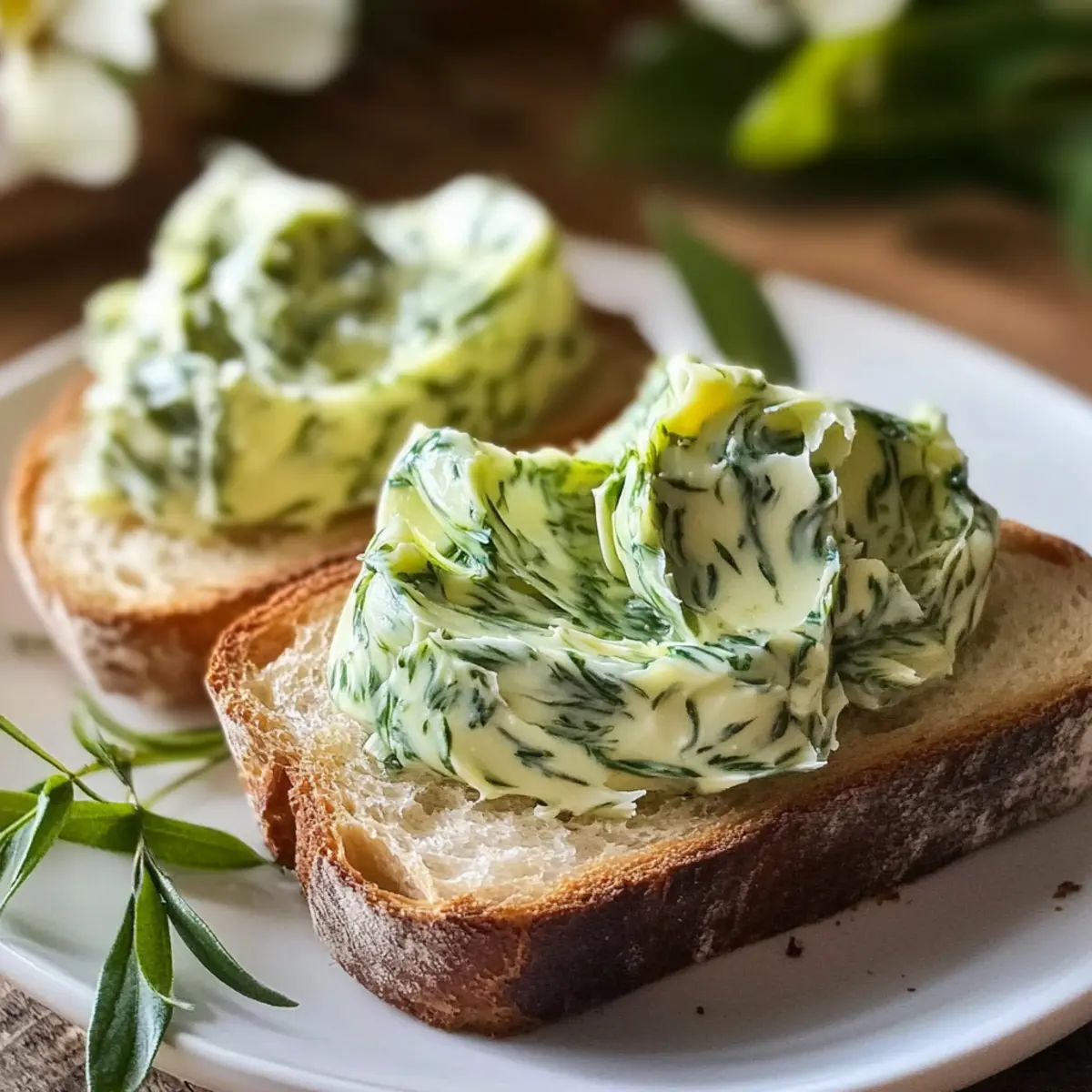 Frischer Bärlauch, dessen aromatische Würze den Frühling verkörpert, wird in dieser einfachen Bärlauchbutter zum strahlenden Star. Ich liebe, wie die leuchtend grüne Farbe und der milde Knoblauchgeschmack in jeden Bissen ein Stück Natur einbringt. Diese cremige, vielseitige Butter ist nicht nur blitzschnell zubereitet, sondern verwandelt auch alltägliche Gerichte in genussvolle Momente – sei es auf einem Stück frisch gebackenem Brot oder als krönender Abschluss auf gegrilltem Fleisch. Mit Möglichkeiten für vegane Varianten und kreative Ergänzungen, wie Käse oder Chili, bleibt der Spaß beim Ausprobieren nicht auf der Strecke! Bist du bereit, in die Welt dieser aromatischen Köstlichkeit einzutauchen? Warum wirst du Bärlauchbutter lieben? Einfachheit: Die Zubereitung von Bärlauchbutter ist kinderleicht und erfordert nur wenige Schritte, sodass du im Handumdrehen eine köstliche Belohnung hast. Vielseitigkeit: Diese aromatische Butter passt perfekt zu zahlreichen Gerichten, sei es auf frischem Brot, gegrilltem Fleisch oder sogar Pasta. Gesunde Zutaten: Mit frischem Bärlauch ist sie nicht nur lecker, sondern auch reich an wertvollen Vitaminen. Kreative Variationen: Egal, ob du eine vegane Version ausprobieren oder mit Käse und Gewürzen experimentieren möchtest, Bärlauchbutter bietet endlose Möglichkeiten. Perfekt für alle, die das Kochen lieben! Lass dich von diesem Rezept inspirieren und entdecke unsere Veganen Optionen. Bärlauchbutter Zutaten • Bereit für ein aromatisches Vergnügen? Hier sind die Zutaten für deine Bärlauchbutter. Für die Butter Butter – sorgt für Cremigkeit und Geschmack; verwende weiche Butter bei Zimmertemperatur für bestes Mischverhalten. Frischer Bärlauch – liefert den charakteristischen milden Knoblauchgeschmack; achte darauf, frische, grüne Blätter ohne Welke zu wählen. Salz – hebt und balanciert die Aromen; je nach Geschmack anpassen. Pfeffer – fügt einen Hauch von Würze hinzu; frisch gemahlen für besseren Geschmack verwenden. Zitronensaft – bringt frische Säure, die die Reichhaltigkeit der Butter ausgleicht; Menge nach gewünschter Spritzigkeit anpassen. Für Variationen Weger Butter – tausche die Butter gegen eine pflanzliche Alternative für eine köstliche vegane Bärlauchbutter. Käse – verleihe der Butter eine reichhaltigere Note, indem du geriebenen Parmesan hinzufügst. Gewürzt – füge eine Prise Chili-Flocken hinzu, um der Butter einen scharfen Kick zu geben. Gemischte Kräuter – kombiniere frischen Bärlauch mit Kräutern wie Petersilie oder Schnittlauch für zusätzlichen Frischekick. Schritt-für-Schritt-Anleitung für Bärlauchbutter Step 1: Bärlauch vorbereiten Zuerst wasche den frischen Bärlauch gründlich unter fließendem Wasser, um Schmutz und Verunreinigungen zu entfernen. Trockne die Blätter anschließend sorgfältig mit einem Küchentuch ab und entferne alle verwelkten Blätter. Die frischen, grünen Blätter sind die perfekte Basis für deine aromatische Bärlauchbutter. Step 2: Zutaten vermengen In einer Rührschüssel oder einem Thermomix gib die weiche Butter, die fein gehackten Bärlauchblätter, eine Prise Salz, frisch gemahlenen Pfeffer und den Zitronensaft hinzu. Achte darauf, dass die Butter Zimmertemperatur hat, damit sie sich gut mit den anderen Zutaten verbindet. Rühre alles gründlich durch, bis eine homogene Mischung entsteht. Step 3: Mischung pürieren Verarbeite die Mischung mit einem Pürierstab oder im Thermomix bei mittlerer Geschwindigkeit, bis die Bärlauchbutter eine glatte Konsistenz erreicht und intensiv grün aussieht. Dies dauert etwa 1-2 Minuten. Achte darauf, dass alle Zutaten gleichmäßig verteilt sind, um einen köstlichen Geschmack in jeder Portion zu gewährleisten. Step 4: Formen und kühlen Gib die fertige Bärlauchbutter in eine kleine Aufbewahrungsbox oder forme sie mithilfe eines Spritzbeutels in kleine Rosetten. Stelle die Butter für mindestens 1 Stunde in den Kühlschrank, damit sie fest wird und die Aromen sich gut entfalten können. Der kühle, feste Zustand macht das Verteilen später einfacher. Step 5: Aufbewahrung Wenn du die Bärlauchbutter länger aufbewahren möchtest, kannst du sie in kleinen Portionen, z. B. in einem Eiswürfelbehälter, einfrieren. So bleibt sie bis zu einem Jahr frisch und du kannst jederzeit diese köstliche, aromatische Butter genießen. Achte darauf, die Luft möglichst fernzuhalten, um Gefrierbrand zu vermeiden. Vorbereitung der Bärlauchbutter für stressfreie Genussmomente Bereite deine Bärlauchbutter ganz bequem im Voraus zu, um Zeit an geschäftigen Abenden zu sparen! Du kannst die Butter bis zu 3 Tage im Kühlschrank aufbewahren, nachdem du sie zubereitet hast. Für optimalen Geschmack und Textur, forme die Bärlauchbutter in kleine Portionen und lagere sie in einem luftdichten Behälter oder schneide sie in Würfel und friere sie ein – so hält sie bis zu ein Jahr. Wenn du bereit bist, sie zu genießen, nimm die benötigte Menge heraus und lasse sie kurz bei Zimmertemperatur stehen, um sie leichter streichfähig zu machen. So bleibt die Qualität der Bärlauchbutter, die du mit frischem Bärlauch und anderen köstlichen Zutaten zubereitet hast, jederzeit hoch und genau so lecker! Tipps für die beste Bärlauchbutter • Die richtige Butter: Verwende immer weiche Butter bei Zimmertemperatur, um eine cremige Konsistenz zu erzielen und Klumpen zu vermeiden. • Frischer Bärlauch: Achte darauf, nur frische, grüne Blätter zu wählen, und wasche sie gründlich, um Schmutz zu entfernen, was den Geschmack verbessert. • Zitronensaft anpassen: Experimentiere mit der Menge an Zitronensaft, um die gewünschte Säure und Frische in deiner Bärlauchbutter zu optimieren. • Variationen ausprobieren: Scheue dich nicht, mit verschiedenen Zutaten wie Käse oder Gewürzen zu experimentieren, um die perfekte Bärlauchbutter für deinen Geschmack zu kreieren. • Portionierung beim Einfrieren: Teile die Bärlauch