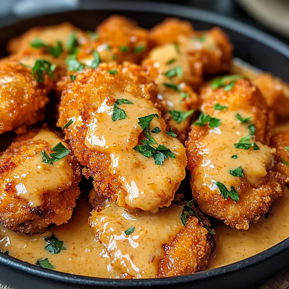 Knusprige Texturen: Die goldbraune Panade sorgt für einen herrlichen Biss, während die cremige Sauce die Aromen perfekt ergänzt.