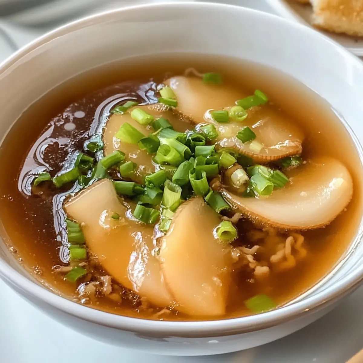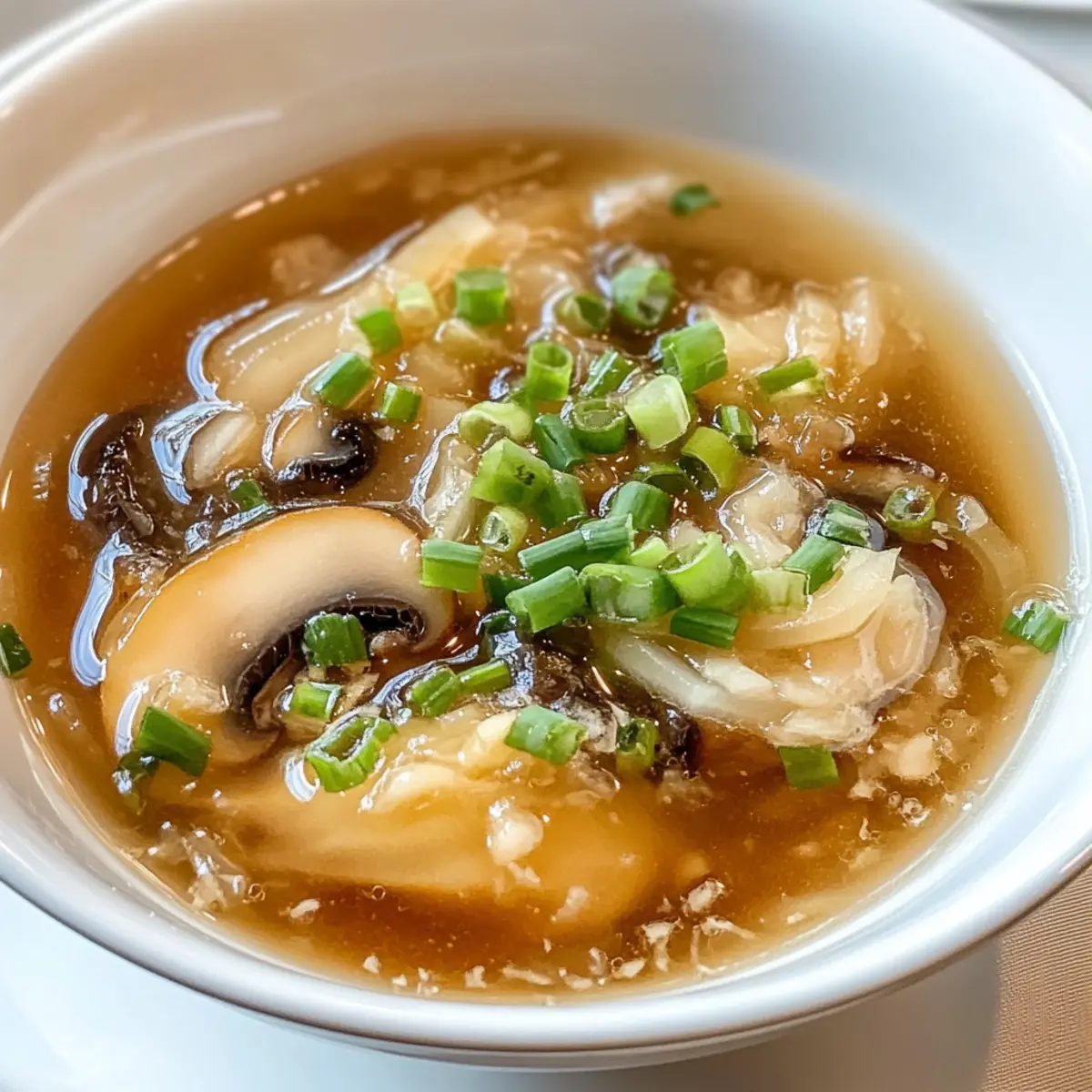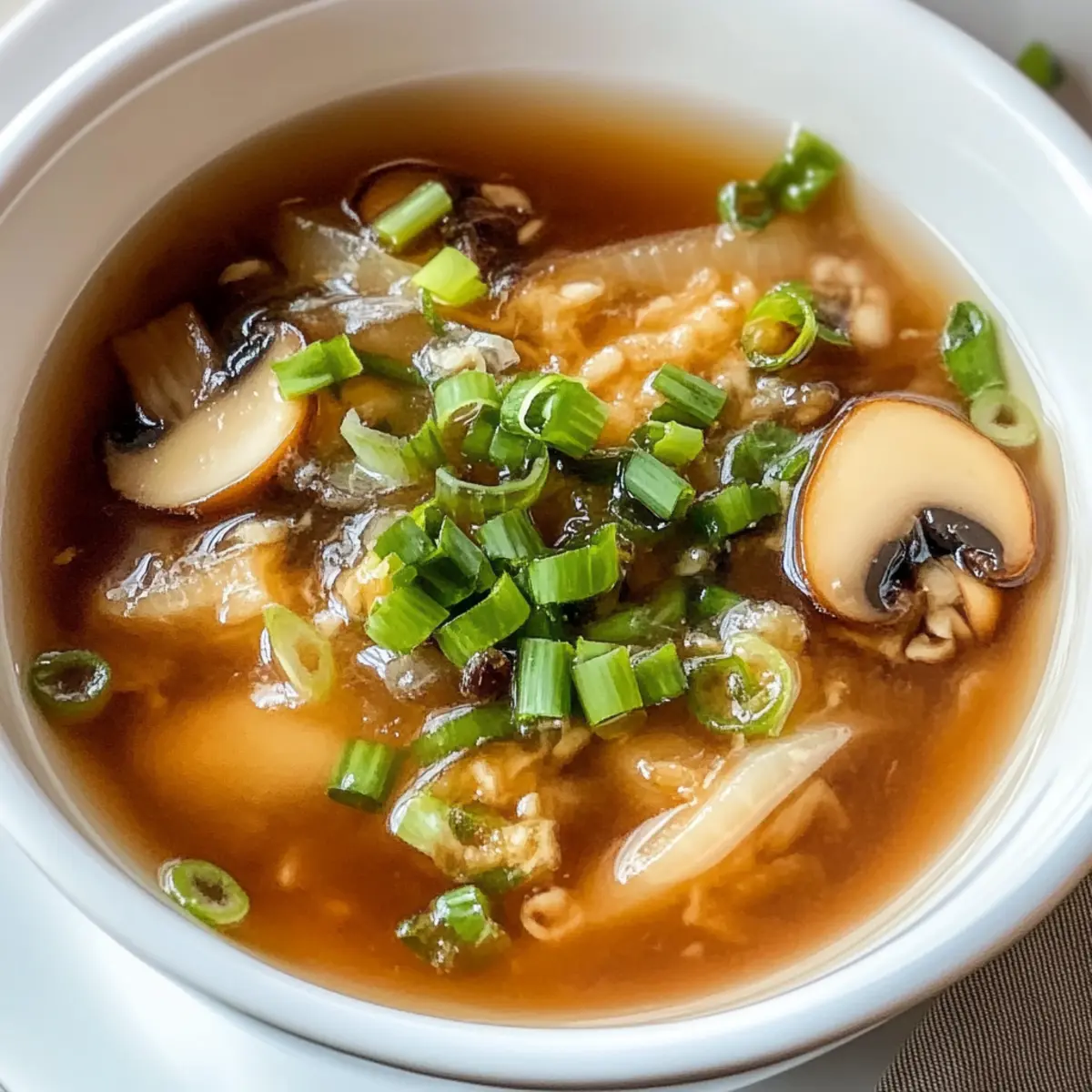 Beim ersten Schluck der Benihana Zwiebel Suppe fühlt es sich an, als würde eine sanfte Umarmung Sie umhüllen. Diese leicht herzhafte Suppe bringt die Aromen eines traditionellen japanisch-amerikanischen Restaurants direkt in Ihre Küche. Innerhalb kurzer Zeit können Sie eine köstliche, wohltuende Vorspeise zubereiten, die nicht nur den Magen, sondern auch die Seele wärmt. Mit lediglich ein paar einfachen Zutaten, die Sie wahrscheinlich schon zu Hause haben, ist diese Suppe nicht nur schnell zubereitet, sondern überrascht auch durch ihre faszinierende Geschmacksvielfalt. Perfekt als Auftakt zu jedem Mahl oder einfach solo genossen, wird diese Benihana Zwiebel Suppe garantiert zu einem neuen Favoriten in Ihrer Rezeptesammlung. Wer möchte nicht wissen, wie diese köstliche Kombination auf dem Tisch endet? Warum ist diese Zwiebel Suppe so beliebt? Einzigartiger Geschmack: Diese Benihana Zwiebel Suppe besticht durch ihre ausgewogene Kombination aus süßen Zwiebeln und herzhaftem Hühnerbrühe, die für eine unverwechselbare Tiefe sorgt. Einfach zuzubereiten: Mit nur wenigen, leicht erhältlichen Zutaten können Sie ein Restaurant-ähnliches Gericht schnell nach Hause bringen. Vielfältig: Diese Suppe ist unglaublich anpassungsfähig – probieren Sie sie mit verschiedenen Pilzen oder als vegetarische Version mit Gemüsebrühe! Perfekt für jede Gelegenheit: Ob als Vorspeise oder Hauptgericht, die Benihana Zwiebel Suppe passt zu jeder Gelegenheit und erfreut Familie und Freunde gleichermaßen. Schnell und unkompliziert: In nur 30 Minuten können Sie eine warme, leckere Mahlzeit auf den Tisch bringen, die auch an hektischen Tagen immer eine gute Wahl ist. Benihana Zwiebel Suppe Zutaten Diese Zwiebel Suppe ist nicht nur lecker, sondern auch einfach zuzubereiten! Für die Suppe Zwiebeln – dünn geschnitten; die Hauptzutat, die Süße und Geschmack verleiht. Butter – sorgt für Reichhaltigkeit; kann bei Bedarf durch Olivenöl ersetzt werden. Hühnerbrühe – die Basis der Suppe; verwenden Sie natriumarme Brühe für eine gesündere Option. Knoblauch – klein gehackt; intensiviert den Gesamtgeschmack. Sojasauce – verleiht eine herzhafte Umami-Note; sparsam verwenden, um die Leichtigkeit der Suppe zu bewahren. Salz – nach Geschmack würzen; vorsichtig verwenden, um ein Überwürzen zu vermeiden. Schwarzer Pfeffer – grundlegendes Gewürz; verstärkt die Aromen, ohne sie zu überlagern. Frühlingszwiebeln – zur Garnitur und für Frische; optional, aber eine schöne Ergänzung. Champignons – in Scheiben geschnitten und optional; sorgt für traditionellen Geschmack und Textur. Schritt-für-Schritt-Anleitung für Benihana Zwiebel Suppe Schritt 1: Zwiebeln vorbereiten Schneiden Sie die Zwiebeln in dünne Scheiben, damit sie gleichmäßig garen. Verwenden Sie ein scharfes Messer und eine Schneidebrett, um sicherzustellen, dass die Stücke gleichmäßig sind. Dies ist entscheidend für die Textur der Benihana Zwiebel Suppe, da weichgekochte Zwiebeln das Herzstück des Geschmacks bilden. Schritt 2: Butter schmelzen Erhitzen Sie einen mittelgroßen Topf bei mittlerer Hitze und geben Sie die Butter hinzu. Lassen Sie die Butter langsam schmelzen, ohne sie zu überhitzen. Achten Sie darauf, dass sie schäumt, aber nicht bräunt, da dies den milden Geschmack der Zwiebeln in der Benihana Zwiebel Suppe beeinträchtigen würde. Schritt 3: Zwiebeln kochen Fügen Sie die geschnittenen Zwiebeln in den Topf hinzu und rühren Sie regelmäßig um. Kochen Sie die Zwiebeln etwa 10–12 Minuten lang, bis sie weich und leicht durchsichtig sind. Vermeiden Sie es, die Zwiebeln braun werden zu lassen, da dies den süßen Geschmack der Benihana Zwiebel Suppe verändert. Schritt 4: Knoblauch hinzufügen In den Topf mit den weichgekochten Zwiebeln den gehackten Knoblauch geben. Rühren Sie die Mischung gut durch und lassen Sie den Knoblauch etwa 30 Sekunden lang anbraten, bis er aromatisch wird. Dieser Schritt fügt der Suppe eine herrliche Tiefe und Würze hinzu. Schritt 5: Brühe einfüllen Gießen Sie langsam die Hühnerbrühe in den Topf, während Sie ständig umrühren. Nutzen Sie etwa 1,5 Liter Brühe, um sicherzustellen, dass die Benihana Zwiebel Suppe reichhaltig und dennoch leicht bleibt. Lassen Sie die Aromen sich für einen Moment vereinen, um die Brühe perfekt zu integrieren. Schritt 6: Suppe würzen Fügen Sie nun die Sojasauce, das Salz und den schwarzen Pfeffer nach Geschmack hinzu. Rühren Sie die Mischung gut um und lassen Sie die Suppe etwa 5 Minuten köcheln, damit sich die Gewürze gut entfalten können. Achten Sie darauf, die Aromen in der Benihana Zwiebel Suppe gut auszubalancieren. Schritt 7: Champignons zufügen Falls gewünscht, fügen Sie die in Scheiben geschnittenen Champignons zur Suppe hinzu. Lassen Sie diese etwa 5–7 Minuten köcheln, damit sie zart und geschmackvoll werden. Die Pilze verstärken die klassische Note der Benihana Zwiebel Suppe und bieten eine angenehme Textur. Schritt 8: Endgültiges Köcheln Lassen Sie die Benihana Zwiebel Suppe unbeaufsichtigt für etwa 15-20 Minuten köcheln, um die Aromen weiter zu vertiefen. Rühren Sie gelegentlich um, um ein Anbrennen am Boden des Topfes zu verhindern. Die Suppe sollte klar und leicht sein, mit zarten Zwiebeln und Pilzen. Schritt 9: Abschmecken und justieren Probieren Sie die Suppe und passen Sie die Gewürze nach Geschmack an. Wenn nötig, können Sie mehr Sojasauce oder etwas Salz hinzufügen, um die Aromen zu intensivieren. Stellen Sie sicher, dass die Benihana Zwiebel Suppe genau nach Ihrem Gusto zubereitet ist, bevor Sie sie servieren. Schritt 10: Servieren Bereiten Sie die Suppe zum Servieren vor, indem Sie sie in Schalen füllen. Garnieren Sie die Benihana Zwiebel Suppe mit frisch geschnittenen Frühlingszwiebeln für einen zusätzlichen Hauch von Frische. Servieren Sie die Suppe heiß und genießen Sie den herzlichen Geschmack! Perfekte Vorbereitung für die Benihana Zwiebel Suppe Diese Benihana Zwiebel Suppe 