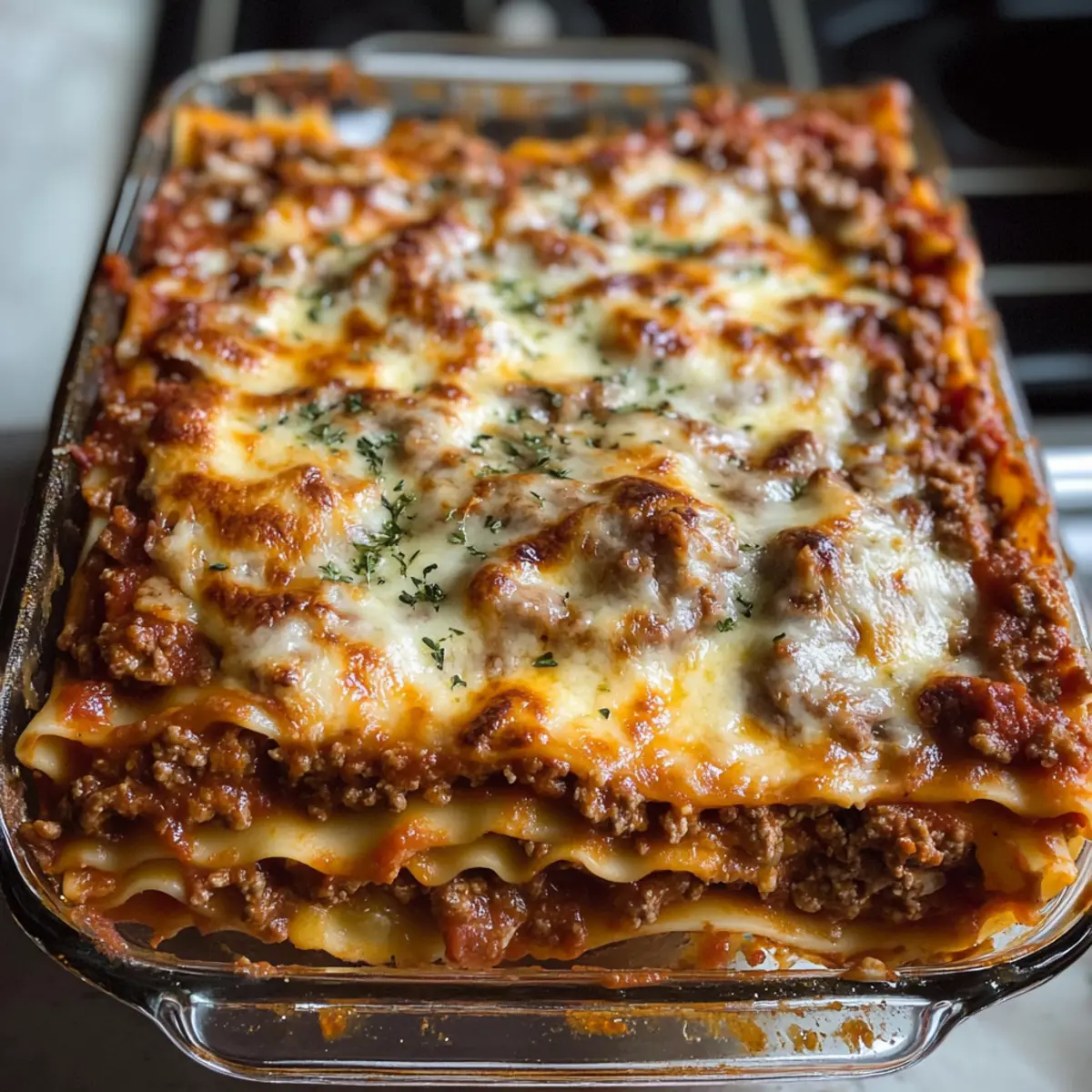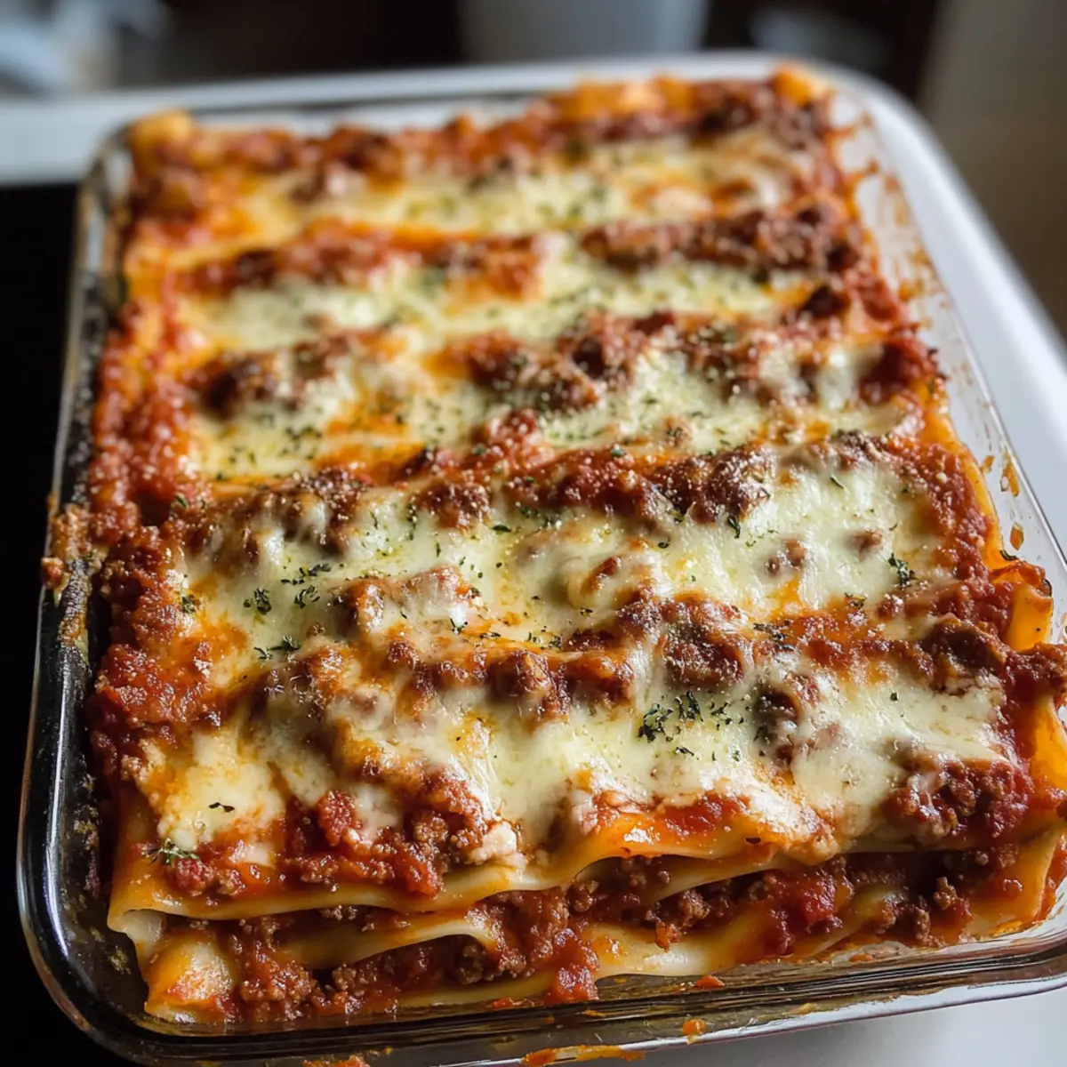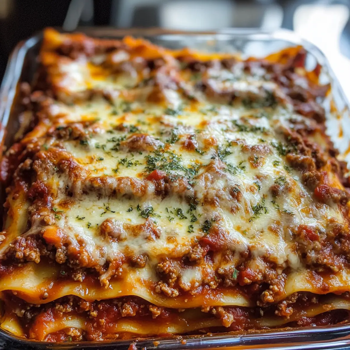 In einer lauen italienischen Nacht, während der Duft von frisch gebackenem Brot durch die Straßen wehte, entdeckte ich das Geheimnis der besten hausgemachten Lasagne. Es ist nicht nur ein Gericht, sondern eine liebevolle Umarmung, die mich an die Familienessen meiner Kindheit erinnert. Mit saftigen Schichten aus Meeresfrüchte-Sauce, drei verschiedenen Käsesorten und perfekt gegarten Nudelblättern wird diese klassische Lasagne zu einem wahren Fest für die Sinne. Dank ihrer einfachen Zubereitung und der vielen Portionen ist sie ideal für ein geselliges Beisammensein mit Freunden oder die Familie. Wenn du jetzt neugierig geworden bist, wie du diese herzhafte Köstlichkeit selbst zaubern kannst, lass uns loslegen! Warum ist diese Lasagne so besonders? Einfachheit, die begeistert: Die Zubereitung dieser besten hausgemachten Lasagne ist kinderleicht und erfordert keine besonderen Kochkünste – perfekt für Kochanfänger und Profis! Reichhaltiger Geschmack: Mit saftigem Fleisch und einer cremigen Käseschicht bietet dieses Gericht ein Geschmackserlebnis, das die gesamte Familie begeistern wird. Vielseitigkeit zählt: Du kannst die Rezeptur leicht anpassen, indem du beispielsweise Gemüse oder verschiedene Käsesorten hinzufügst, um es für jeden Geschmack zu individualisieren. Schnelle Zubereitung: Obwohl es nach einem Gourmet-Gericht aussieht, ist die Zubereitungszeit überschaubar, sodass du mehr Zeit mit deinen Gästen verbringen kannst. Familienfreundlich: Die großzügigen Portionen sind perfekt für größere Zusammenkünfte oder einfach für ein gemütliches Abendessen zu Hause. Beste hausgemachte Lasagne Zutaten Für die Sauce • Olivenöl – sorgt für Feuchtigkeit und Reichtum; Kann durch Pflanzenöl ersetzt werden. • Gelbe Zwiebel – fügt Süße und Tiefe zur Sauce hinzu; Schalotten können als Alternative verwendet werden. • Knoblauch – verstärkt den Geschmack mit seinen aromatischen Qualitäten; Frischer Knoblauch ist vorzuziehen, aber Knoblauchpulver funktioniert auch im Notfall. • Rinderhackfleisch (93/7) – Hauptproteinquelle für die reichhaltige Fleischsauce; Für eine leichtere Option kann mageres Hackfleisch genutzt werden. • Gehackte Tomaten (14,5 oz Dose) – sorgt für Textur und Säure in der Sauce; Alternative sind zerdrückte Tomaten, falls gewünscht. • Tomatensauce (2 x 15 oz Dosen) – bildet die Basis der Sauce und sorgt für Feuchtigkeit; Tomatenpüree kann stattdessen verwendet werden. • Wasser – passt die Konsistenz der Sauce an; Brühe kann mehr Geschmack hinzufügen. • Lorbeerblätter – verleihen der Sauce Aroma; Getrockneter Thymian kann hier ebenfalls verwendet werden, jedoch in geringeren Mengen. • Getrockneter Basilikum – sorgt für einen klassischen italienischen Geschmack; Frisches Basilikum kann für einen frischeren Geschmack verwendet werden, erhöhe die Menge. • Zucker – balanciert die Säure der Tomaten aus; Honig oder Agavensirup können als Alternativen gelten, die Menge je nach Geschmack anpassen. • Italienische Gewürzmischung – ein Mix, der mehrere Aromen hinzufügt, typisch für italienische Gerichte; Hausgemachte Mischungen oder extra Oregano funktionieren gut. • Salz – wichtig zur Geschmackssteigerung; Kann nach Geschmack angepasst oder in natriumreduzierter Form verwendet werden. Für die Käseschicht • Mozzarella Käse (8 oz und 4 oz) – sorgt für Käsegeschmack und zähe Konsistenz; Am besten eignet sich Mozzarella mit niedrigem Wassergehalt; frischer Mozzarella kann verwendet werden, erfordert jedoch besondere Handhabung. • Parmesan Käse (1/2 Tasse) – fügt scharfen, würzigen Geschmack hinzu; Pecorino Romano kann als Ersatz genutzt werden. • Ricotta Käse (2 Tassen, Vollmilch) – trägt zur Cremigkeit der Käseschicht bei; Hüttenkäse kann als leichtere Alternative dienen. Für die Nudelbasis • Lasagne-Nudeln (1 Pfund) – das strukturelle Fundament der Lasagne; No-Boil-Nudeln können für mehr Bequemlichkeit verwendet werden, benötigen jedoch möglicherweise mehr Feuchtigkeit in der Sauce. Diese Zutaten sorgen zusammen dafür, dass deine Beste hausgemachte Lasagne ein geschmackliches Erlebnis wird, das sich perfekt für jede Familie oder Gruppe eignet! Schritt-für-Schritt-Anleitung für die Beste hausgemachte Lasagne Step 1: Sauce zubereiten Erhitze in einem schweren Topf bei mittlerer Hitze etwas Olivenöl. Füge die gewürfelte Zwiebel und den gehackten Knoblauch hinzu und brate sie an, bis sie duften (ca. 2 Minuten). Gib das Rinderhackfleisch dazu und brate es rundherum gründlich an, bis es durchgegart ist (ca. 5-7 Minuten). Step 2: Sauce köcheln lassen Füge die gehackten Tomaten, die Tomatensauce, Wasser, Lorbeerblätter, getrockneten Basilikum, Zucker, italienische Gewürzmischung und Salz hinzu. Bring die Mischung zum Kochen und reduziere die Hitze. Lass die Sauce für 1-2 Stunden sanft köcheln, bis sie dickflüssig ist und das Aroma intensiv wird. Step 3: Käsemischung vorbereiten Während die Sauce köchelt, vermische in einer großen Schüssel den Ricotta, 4 oz Mozzarella, Parmesan, frisches Basilikum, etwas Petersilie, Salz und schwarzen Pfeffer. Rühre alles gut um, bis eine homogene Masse entsteht. Stelle die Käsemischung zur Seite und lass sie kurz den Geschmack entfalten. Step 4: Nudeln kochen Bring in einem großen Topf Salzwasser zum Kochen und füge die Lasagne-Nudeln hinzu. Koche sie für ca. 7 Minuten, sodass sie noch leicht al dente sind. Gieße die Nudeln ab und lege sie direkt in kaltes Wasser, um den Kochprozess zu stoppen. Step 5: Lasagne schichten Verteile eine dünne Schicht der Sauce auf dem Boden einer ausreichend großen Auflaufform. Lege eine Schicht der gekochten Nudeln darauf, gefolgt von der Hälfte der Käsemischung und etwas Sauce. Wiederhole die Schichten, bis alle Zutaten aufgebraucht sind, und schließe mit einer Schicht Nudeln und der restlichen Sauce ab. Bestreue die Oberseite mit dem restlichen Mozzarella. Step 6: Backen D