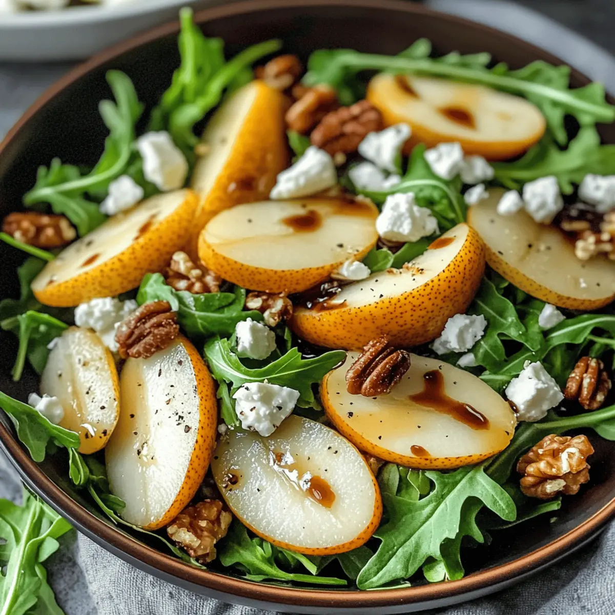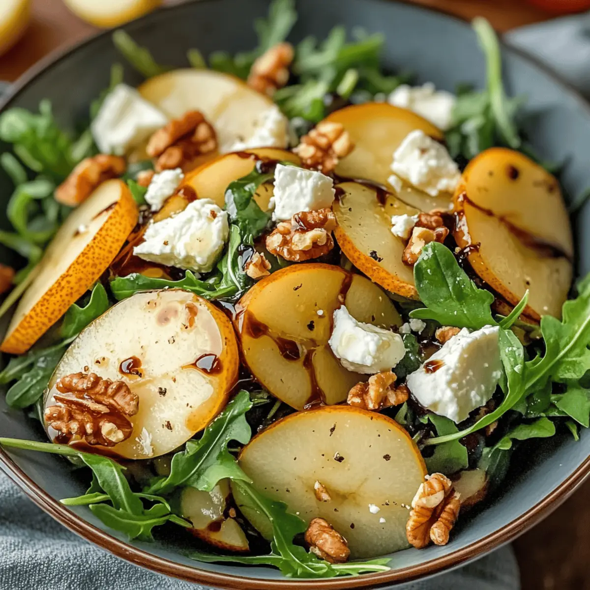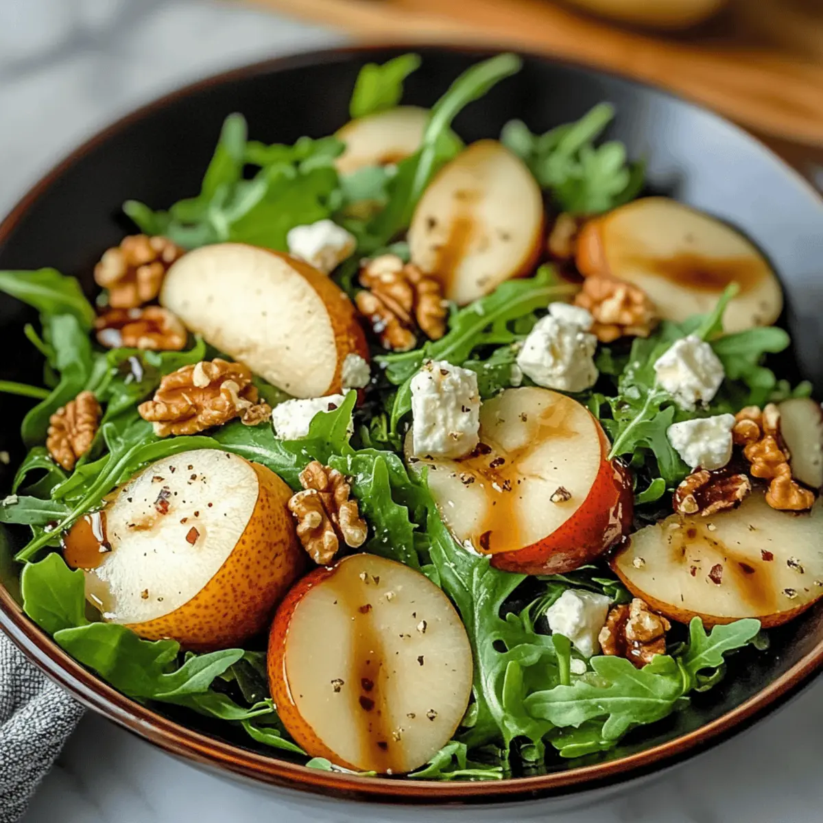 In einer lebhaften Küche, wo der Duft von frisch geschnittenen Zutaten in der Luft hängt, gelingt ein wahrhaft magisches Gericht: mein Birnensalat mit Balsamico-Dressing. Dieser schnelle und erfrischende Salat ist nicht nur im Handumdrehen zubereitet, sondern bringt auch Farbe und Geschmack auf jeden Tisch, perfekt für feierliche Anlässe und entspannte Abendessen. Mit süßen, saftigen Birnen, würzigem Rucola und cremigem Feta vereint er frische Aromen und angenehme Texturen, die jeden Salatliebhaber begeistern werden. Egal, ob du Gastgeber eines großen Festes bist oder einfach nur ein leichtes Mittagessen suchen, dieser Salat ist nicht nur eine Augenweide, sondern auch äußerst nahrhaft. Bist du bereit, deine Gäste mit diesem köstlichen Highlight zu überraschen? Warum ist dieser Birnensalat einzigartig? Frische Zutaten: Dieser Birnensalat ist eine köstliche Kombination aus süßen Birnen, würzigem Rucola und cremigem Feta, die gemeinsam ein unvergleichliches Geschmackserlebnis schaffen. Einfach zuzubereiten: In nur 10 Minuten hast du ein beeindruckendes Gericht, perfekt für spontane Einladungen oder als leichtes Mittagessen. Vielseitig: Variiere nach Lust und Laune – nutze Ziegenkäse für mehr Geschmack oder füge getrocknete Früchte für zusätzliche Süße hinzu. Gesund und nahrhaft: Mit nur 220 kcal pro Portion ist dieser Salat ein leichtes und dennoch sättigendes Gericht, das voller Nährstoffe steckt. Ein Hingucker auf jedem Tisch: Die lebhaften Farben und die ansprechende Präsentation machen ihn zu einem echten Highlight bei jeder Gelegenheit! Entdecke noch mehr Ideen für partytaugliche Rezepte und bring deinen Gästen Freude am Essen! Birnensalat mit Balsamico-Dressing Zutaten • Für den Salat Birnen – Verwenden Sie reife, saftige Birnen für besten Geschmack und süße Frische. Rucola – Gut gewaschen und locker verteilt, sorgt er für eine angenehme Schärfe und luftige Textur. Walnüsse – Knusprige Textur, die das Geschmackserlebnis ergänzt; alternativ können geröstete Sonnenblumenkerne verwendet werden. Feta-Käse – Diese cremige, salzige Komponente verstärkt den Geschmack; versuchen Sie Ziegenkäse für eine intensivere Note oder Brie für mehr Cremigkeit. • Für das Dressing Balsamico-Essig – Sorgt für die nötige Säure und Tiefe in diesem Birnensalat mit Balsamico-Dressing. Olivenöl – Bringt das Fetthaltige und verbindet alle Zutaten geschmacklich. Honig – Fügt eine angenehme Süße hinzu und balanciert die Säure des Essigs. Salz und Pfeffer – Würzen nach Geschmack für den perfekten Abschluss. Schritt-für-Schritt-Anleitung für Birnensalat mit Balsamico-Dressing Step 1: Rucola vorbereiten Beginnen Sie damit, den Rucola sorgfältig zu waschen und in eine große Salatschüssel zu geben. Verteilen Sie ihn gleichmäßig in der Schüssel, sodass er die Basis für Ihren Birnensalat mit Balsamico-Dressing bildet. Der Rucola sollte frisch und knackig aussehen, um eine angenehme Textur und einen würzigen Geschmack zu gewährleisten. Step 2: Birnen schneiden Nehmen Sie nun die reifen Birnen und schneiden Sie sie in dünne Scheiben. Arrangieren Sie die Birnenscheiben gleichmäßig auf dem Rucola. Achten Sie darauf, dass die Birnen schön verteilt sind, damit jeder Bissen die süße Frische der Birnen mit dem würzigen Rucola kombiniert. Diese Präsentation sorgt für ein ansprechendes Farbspiel in Ihrem Salat. Step 3: Nüsse und Feta hinzufügen Jetzt ist es an der Zeit, die grob gehackten Walnüsse und den zerbröselten Feta über den Salat zu streuen. Diese Zutaten verleihen zusätzliche Textur und Geschmack. Die Nüsse sollten knusprig und goldbraun sein, während der Feta cremig aussieht und gut mit den anderen Komponenten harmoniert. Dies trägt zur Aromafülle des Birnensalats bei. Step 4: Dressing anrühren In einer kleinen Schüssel vermischen Sie den Balsamico-Essig, das Olivenöl, den Honig sowie Salz und Pfeffer. Rühren Sie die Zutaten gut durch, bis das Dressing emulgiert und eine einheitliche Konsistenz erreicht ist. Sie werden sehen, wie die Zutaten miteinander verschmelzen und das Dressing eine glänzende, dunkle Farbe annimmt – perfekt für Ihren Birnensalat mit Balsamico-Dressing. Step 5: Dressing über den Salat gießen Gießen Sie das frisch zubereitete Dressing über den Salat und achten Sie darauf, dass es gleichmäßig verteilt wird. Verwenden Sie zwei Gabeln, um den Salat vorsichtig zu vermengen, ohne die Birnen und den Feta zu zerdrücken. Es ist wichtig, die Zutaten sanft zu mischen, sodass die verschiedenen Aromen und Texturen gut miteinander harmonieren. Step 6: Servieren oder ziehen lassen Servieren Sie den Salat sofort als erfrischende Beilage oder lassen Sie ihn für 15 Minuten im Kühlschrank durchziehen. Das Durchziehen ermöglicht es den Aromen, sich miteinander zu verbinden und verstärkt den Geschmack des Birnensalats mit Balsamico-Dressing. Achten Sie jedoch darauf, den Salat vor dem Servieren nicht zu lange stehen zu lassen, um die Frische zu bewahren. Expertentipps für den perfekten Birnensalat • Frische Zutaten wählen: Achten Sie darauf, dass die Birnen reif und saftig sind – das ist der Schlüssel für den besten Geschmack in Ihrem Birnensalat mit Balsamico-Dressing. • Luftige Textur: Zerteilen Sie den Rucola sanft und verteilen Sie ihn locker in der Schüssel. Dies sorgt für eine leichtere, knackigere Konsistenz des Salates. • Dressing erst kurz vor dem Servieren: Mischen Sie das Dressing erst kurz vor dem Servieren, um die frischen Aromen des Salats zu bewahren. • Vorsicht beim Vermengen: Seien Sie vorsichtig, wenn Sie die Zutaten vermengen. Verwenden Sie sanfte Bewegungen, damit die Birnen und der Feta nicht zerdrückt werden. • Präsentation zählt: Achten Sie darauf, die Birnenscheiben gleichmäßig und ansprechend zu verteilen – das Auge isst mit und Ihr Salat wird ein echter Hingucker! Birnensalat mit Balsamico-Dressing Variationen Fühle dich frei, diesen köstliche