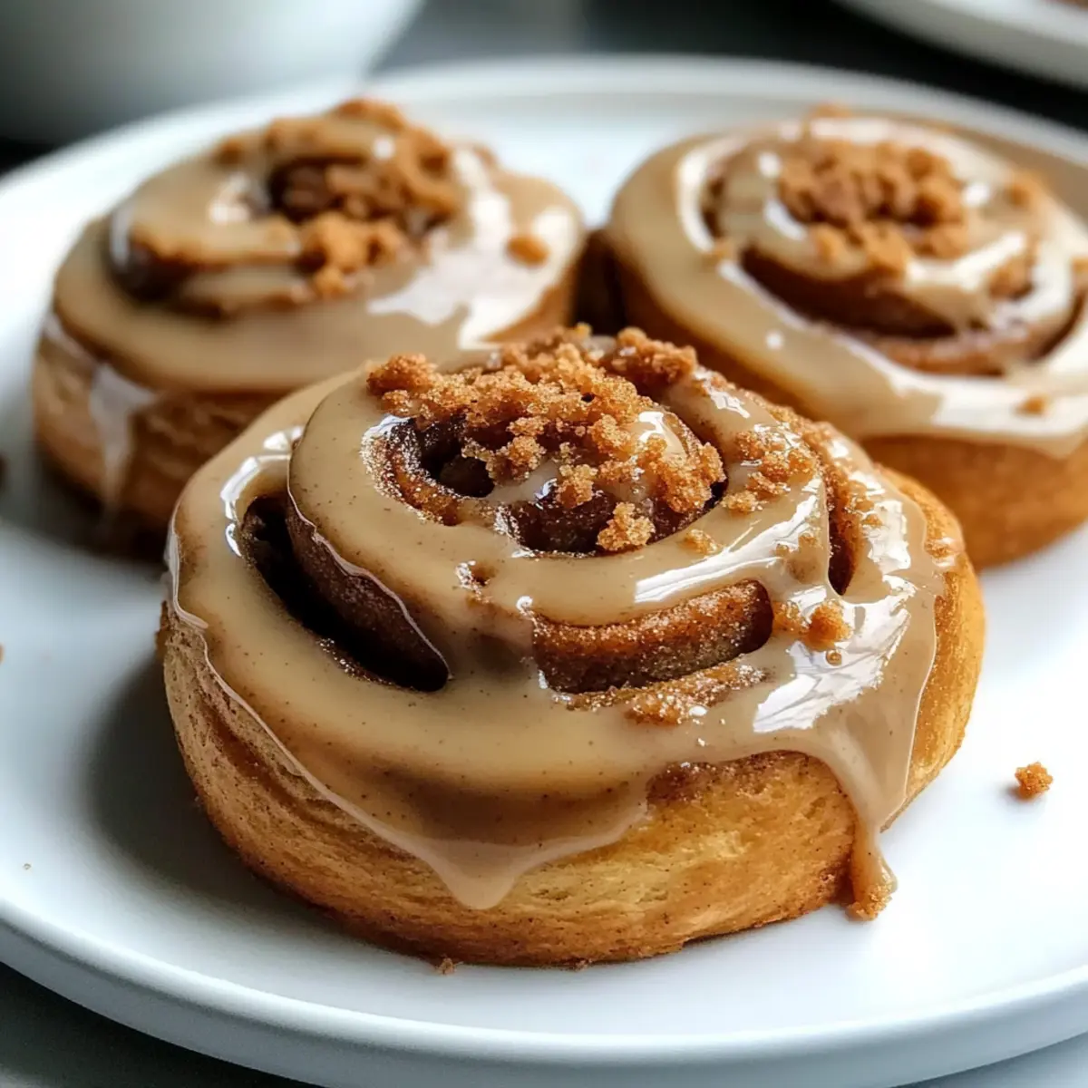 Der Duft von frisch gebackenem Zimt, der durch die Küche zieht, bringt mich sofort in eine kuschelige Stimmung. Diese Biscoff-Kekse-Butter-Zimtschnecken sind nicht nur unglaublich weich und fluffig, sondern bieten auch einen unwiderstehlichen Genuss dank der Kombination von köstlichem Zimt und den würzigen Noten von Biscoff-Keksen. Mit einem cremigen Biscoff-Glasur und einer knackigen Keksstreusel-Oberschicht verwandeln sie das traditionelle Rezept in eine moderne Köstlichkeit, die perfekt zum Frühstück, Brunch oder als verführerisches Dessert geeignet ist. Ein zusätzlicher Vorteil? Diese Zimtschnecken sind einfach zuzubereiten und machen garantiert jeden Frühstückstisch zum Erlebnis. Bereit, den Morgen mit einem ganz besonderen Leckerbissen zu versüßen? Warum sind diese Zimtschnecken einzigartig? Einfache Zubereitung: Der gesamte Prozess ist unkompliziert und erfordert nur grundlegende Backfähigkeiten – perfekt für alle, die frisch gebackene Leckereien genießen möchten. Verführerischer Geschmack: Die harmonische Kombination aus Biscoff-Keksen und Zimt verleiht den Schnecken eine unvergessliche, süße Note, die jeden Bissen zum Genuss macht. Vielfältige Optionen: Ob Frühstück oder Dessert, diese Zimtschnecken sind unglaublich vielseitig und passen zu jeder Gelegenheit – sie sind die perfekte Ergänzung zu einem gemütlichen Brunch oder einem Festessen. Zeitersparnis: Diese Zimtschnecken lassen sich auch am Vortag zubereiten: Einfach über Nacht im Kühlschrank gehen lassen und am nächsten Morgen frisch backen! Entdecken Sie auch unsere anderen leckeren Frühstücksrezepte und verwandeln Sie Ihre Morgenroutine in ein wahres Fest. Wohlfühlfaktor: Wenn der Duft von warmen Zimtschnecken durch die Wohnung zieht, weckt das Erinnerungen an Gemütlichkeit und Freude – ein echtes Wohlfühlessen, das jeder liebt! Biscoff-Kekse-Butter-Zimtschnecken Zutaten • Bereiten Sie sich auf den köstlichen Genuss dieser Biscoff-Kekse-Butter-Zimtschnecken vor – eine Symphonie aus Aromen und Texturen! Für den Teig Vollmilch – sorgt für Feuchtigkeit und Reichhaltigkeit; kann durch pflanzliche Milch ersetzt werden für eine milchfreie Option. Aktive Trockenhefe – lässt den Teig aufgehen für fluffige Schnecken; Instanthefe kann ohne Proofen verwendet werden. Kristallzucker – süßt den Teig; passen Sie die Menge nach Ihrem Geschmack an. Ungesalzene Butter – liefert Geschmack und Feuchtigkeit; verwenden Sie geschmolzene Butter für einfaches Mischen. Ei und Eigelb – bereichern den Teig und sorgen für Weichheit; sollten Zimmertemperatur haben für beste Ergebnisse. Vanilleextrakt – verstärkt das gesamte Geschmacksprofil. Allzweckmehl – gibt Stabilität; probieren Sie Vollkorn-Backmehl für eine gesündere Variante aus. Salz – balanciert die Süße und hebt die Aromen hervor. Für die Füllung Brauner Zucker – süßt die Füllung und verleiht eine tiefe Karamellnote; für zusätzlichen Geschmack verwenden. Gemahlener Zimt – essentiell für den klassischen Geschmack der Zimtschnecke. Biscoff-Kekse-Butter – fügt eine würzige, dekadente Note zur Füllung hinzu und steigert die Geschmackstiefe; Trader Joe’s Speculoos ist eine empfehlenswerte Alternative. Für die Glasur Frischkäse – sorgt für Cremigkeit und ein harmonisches Gleichgewicht der Süße; kann durch eine milchfreie Alternative ersetzt werden. Puderzucker – süßt die Glasur; passen Sie die Menge nach Ihrem Süßheitsgrad an. Milch oder Sahne – wird verwendet, um die gewünschte Konsistenz der Glasur zu erreichen. Gehackte Biscoff-Kekse – für die Garnitur, um den Schnecken eine knusprige Textur zu verleihen. Jede Zutat trägt zu diesen unwiderstehlichen Biscoff-Kekse-Butter-Zimtschnecken bei und verwandelt sie in ein echtes Fest für Ihre Sinne! Schritt-für-Schritt-Anleitung für Biscoff-Kekse-Butter-Zimtschnecken Schritt 1: Teig vorbereiten Erwärmen Sie 240 ml Vollmilch in einem kleinen Topf, bis sie lauwarm ist. Mischen Sie dann 7 g aktive Trockenhefe mit einer Prise Zucker und lassen Sie sie 5 Minuten ruhen, bis sie schaumig wird. Geben Sie 50 g Zucker, 60 g geschmolzene Butter, 1 Ei, 1 Eigelb und 1 Teelöffel Vanilleextrakt in eine große Schüssel. Fügen Sie die Hefe-Mischung hinzu, gefolgt von 400 g Allzweckmehl und einer Prise Salz. Verkneten Sie den Teig, bis er glatt ist. Schritt 2: Erste Gehzeit Legen Sie den Teig in eine leicht geölte Schüssel und decken Sie ihn mit einem Küchentuch ab. Stellen Sie die Schüssel an einen warmen Ort, damit der Teig für etwa 1 Stunde aufgeht, bis er sein Volumen verdoppelt hat. Prüfen Sie, ob der Teig fluffig geworden ist und sich leicht drücken lässt; dann ist er bereit für den nächsten Schritt. Schritt 3: Füllung zubereiten In einer kleinen Schüssel vermengen Sie 100 g braunen Zucker mit 2 Teelöffeln gemahlenem Zimt. Schmelzen Sie 120 g Biscoff-Kekse-Butter in der Mikrowelle für etwa 30 Sekunden, bis sie geschmeidig ist. Stellen Sie sicher, dass die Mischung gut verrührt ist, sodass die aromatische Füllung gleichmäßig verteilt werden kann. Schritt 4: Schnecken formen Kneten Sie den gegangenen Teig kurz durch und rollen Sie ihn auf einer leicht bemehlten Arbeitsfläche zu einem Rechteck mit einer Dicke von etwa 0,5 cm aus. Bestreichen Sie den Teig gleichmäßig mit 60 g geschmolzener Butter, gefolgt von der Biscoff-Kekse-Butter und der Zimt-Zucker-Mischung. Rollen Sie den Teig von der langen Seite her fest auf und schneiden Sie ihn in 12 gleich große Stücke. Schritt 5: Zweite Gehzeit Legen Sie die geschnittenen Schnecken in eine gefettete Backform. Decken Sie die Form mit einem Küchentuch ab und lassen Sie die Schnecken für 30-45 Minuten an einem warmen Ort aufgehen, bis sie dick und fluffig aussehen. Sie sollten sichtbar aufgeplustert sein und die Form gut ausfüllen, bereit für das Backen. Schritt 6: Backen Heizen Sie den Backofen auf 175 °C vor. Backen Sie die Zimtschnecken für 23-28 Minuten, bis sie goldbraun und