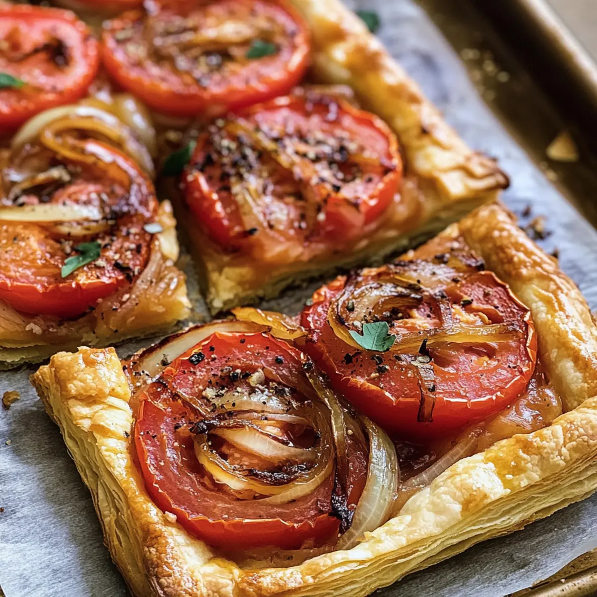 Der Duft von frisch gebackenem Blätterteig erfüllt die Küche und zaubert sofort ein Lächeln auf mein Gesicht. Wenn der Sommer naht, habe ich immer Lust auf leichte, köstliche Gerichte, und meine Blätterteig-Tomaten-Tarte ist genau das Richtige. Mit ihrer goldenen, buttrigen Kruste und der Kombination aus süßen, karamellisierten Zwiebeln, würzigem Cheddar und saftigen Tomaten wird sie Ihr nächstes Sommer-Essen zum Highlight machen. Diese Tarte ist nicht nur ein wahrer Genuss für Auge und Gaumen, sondern auch eine schnelle und einfache Möglichkeit, um mit Freunden zu feiern oder der Familie eine Freude zu bereiten. Wer könnte da widerstehen? Lassen Sie uns gemeinsam dieses köstliche Rezept entdecken und herausfinden, wie einfach es ist, eine perfekte Blätterteig-Tomaten-Tarte zaubern zu können! Warum ist diese Tarte ein Hit? Einfachheit pur: Diese Blätterteig-Tomaten-Tarte ist kinderleicht zuzubereiten, perfekt für Kochanfänger und Wochenend-Köche gleichermaßen. Vielseitige Zutaten: Mit frischen Tomaten und würzigem Cheddar können Sie das Rezept passend zur Saison abwandeln. Leicht und frisch: Ideal für den Sommer, bringt sie einen Hauch von Frische auf Ihren Tisch, ganz ohne schweres Fast Food. Perfekter Genuss: Servieren Sie sie warm als Vorspeise oder neigen Sie sie mit einem leichten Salat zwischen zwei geruhsamen Mittagessen. Genießen Sie dazu ein frisches Stück Sauerkraut mit Zitronengras oder probieren Sie die Pizzaschnecken mit Pesto für ein komplettes Sommerfest! Blätterteig-Tomaten-Tarte Zutaten Für den Teig • Gefrorener Blätterteig – Sorgt für die knusprige Basis; vor der Verwendung auftauen. Für die Füllung • Olivenöl – Zum Sautieren der Zwiebeln; kann durch ein anderes Öl ersetzt werden. • Gelbe Zwiebel (groß, dünn geschnitten) – Fügt Süße hinzu, wenn sie karamellisiert wird; auch Schalotten sind eine milde Alternative. • Knoblauch (gehackt) – Verstärkt die Geschmacksintensität; frischer Knoblauch wird für das beste Aroma empfohlen. • Frische Thymianblätter – Bringt Kräuternoten und Frische; kann durch getrockneten Thymian ersetzt werden, wenn nötig. • Cheddar-Käse (handgerieben) – Sorgt für cremigen Geschmack; eine Mischung aus sharp und mildem Cheddar wird empfohlen für mehr Kontrast. • Tomaten (mittelgroß, reif, in Scheiben) – Essenzieller Geschmacksträger; heirloom oder vine-ripened Tomaten sind ideal. Alternativ können auch Roma- oder Cherry-Tomaten verwendet werden. • Gekrümmelte rote Pfefferflocken (optional) – Fügen eine leichte Schärfe hinzu; für eine mildere Tarte einfach weglassen. • Salz und Pfeffer – Wichtig für die Würze. • Ei (verquirlt) – Wird für die Dotierung verwendet, um die Bräunung zu verbessern; kann durch ein Flachsei für eine vegane Variante ersetzt werden. • Wasser – Wird mit dem Ei zur Dotierung kombiniert. • Everything-Bagel-Gewürz – Fügt dem Teig zusätzliche Geschmacksnuancen hinzu; kann durch Sesamsamen ersetzt oder weggelassen werden. • Frische Schnittlauch- oder Basilikumspitzen (zur Garnierung) – Verbessern die Präsentation und den Geschmack; frische Kräuter sind ideal. Genießen Sie diese köstliche Blätterteig-Tomaten-Tarte mit Freunden und der Familie, und lassen Sie sich von den frischen Aromen verzaubern! Schritt-für-Schritt-Anleitung für die Blätterteig-Tomaten-Tarte Step 1: Zwiebeln karamellisieren Erhitzen Sie in einer Pfanne bei mittlerer Hitze einen Esslöffel Olivenöl. Fügen Sie die dünn geschnittenen Zwiebeln hinzu und würzen Sie sie mit einer Prise Salz und Pfeffer. Lassen Sie die Zwiebeln 15-20 Minuten langsam braten, bis sie goldbraun und karamellisiert sind. Geben Sie den gehackten Knoblauch und die frischen Thymianblätter hinzu, und nehmen Sie die Mischung dann vom Herd. Step 2: Blätterteig vorbereiten Den gefrorenen Blätterteig gemäß den Anweisungen auftauen und anschließend auf einer bemehlten Arbeitsfläche zu einem Rechteck von ca. 25×35 cm ausrollen. Legen Sie den ausgerollten Teig auf ein mit Backpapier ausgelegtes Backblech. Achten Sie darauf, dass der Teig gleichmäßig dick ist, um eine gleichmäßige Backung zu gewährleisten. Step 3: Teigrand vorbereiten Mit einem scharfen Messer oder einem Pizzaroller markieren Sie einen 2,5 cm breiten Rand um den gesamten Teig, ohne ihn ganz durchzuschneiden. Stechen Sie mit einer Gabel in die Mitte des Teiges, um ein Aufgehen während des Backens zu verhindern, und sorgen Sie so für eine gleichmäßige Backfläche. Step 4: Tarte zusammenstellen Heizen Sie den Ofen auf 200°C (Ober- und Unterhitze) vor. Verteilen Sie gleichmäßig die karamellisierte Zwiebelmischung auf dem Teigboden. Streuen Sie den handgeriebenen Cheddar-Käse darüber und belegen Sie die Tarte mit den in Scheiben geschnittenen, reifen Tomaten. Würzen Sie alles mit einem Hauch Salz und Pfeffer für zusätzlichen Geschmack. Step 5: Backen Pinsel den Rand des Teigs mit einer Mischung aus dem verquirlten Ei und etwas Wasser ein, um eine schöne Bräunung zu erzielen. Optional können Sie die Tarte mit Everything-Bagel-Gewürz bestreuen. Backen Sie die Blätterteig-Tomaten-Tarte im vorgeheizten Ofen für 20-25 Minuten, bis der Rand goldbraun und knusprig ist. Step 6: Servieren und garnieren Lassen Sie die Tarte nach dem Backen kurz abkühlen, bevor Sie sie in Stücke schneiden. Garnieren Sie die Blätterteig-Tomaten-Tarte mit frischen Schnittlauch- oder Basilikumspitzen, um eine zusätzliche Farbtiefe und Frische zu verleihen. Servieren Sie die Tarte warm und genießen Sie sie mit Familie und Freunden! Vorbereitung der Blätterteig-Tomaten-Tarte für stressfreies Kochen Diese Blätterteig-Tomaten-Tarte eignet sich hervorragend für die Vorbereitung im Voraus, was Zeit spart, besonders an geschäftigen Tagen! Sie können die karamellisierten Zwiebeln bis zu 3 Tage im Voraus zubereiten und im Kühlschrank aufbewahren; dies intensiviert den Geschmack und macht die spätere Zubereitung bl