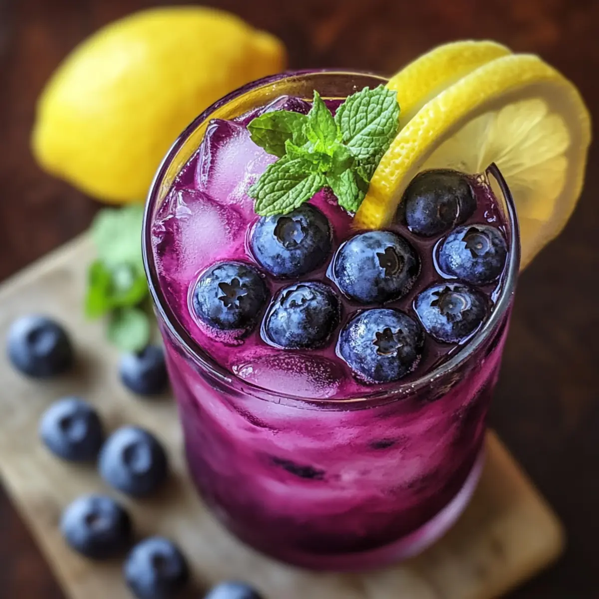 Der erste Schluck dieser Blaubeer-Zitronen-Limonade ist wie ein Ausbruch des Sommers in meinem Glas. Die süßen, saftigen Blaubeeren und der spritzige Zitronensaft harmonieren perfekt und stellen sicher, dass jeder Moment, sei es bei einer Gartenparty oder einem entspannten Nachmittag, zu etwas Besonderem wird. Dieses einfache Rezept ist nicht nur unglaublich erfrischend, sondern auch vielfältig – Sie können es nach Belieben mit verschiedenen Beeren toppen oder sogar einen Hauch von Alkohol hinzufügen, falls Sie möchten. Die Vorbereitungszeit ist minimal, und schon bald können Sie kühle Gläser voller lebendiger Farben und Aromen servieren. Neugierig, wie einfach es ist, diese Sommerfreude selbst zuzubereiten? Lassen Sie uns gleich loslegen! Warum ist diese Limonade so besonders? Erfrischender Geschmack: Der perfekte Mix aus süßen Blaubeeren und spritzigem Zitronensaft macht jeden Schluck zu einem Genuss. Einfache Zubereitung: Mit nur wenigen Zutaten und klaren Schritten gelingt diese Limonade im Handumdrehen. Vielseitig: Ob mit anderen Beeren oder als alkoholische Variante – die Gestaltungsmöglichkeiten sind endlos! Gesunde Wahl: Frei von künstlichen Aromen und voller Antioxidantien, ist sie eine gesunde Alternative zu Limonade aus dem Handel. Ideal für Anlässe: Egal ob Gartenparty oder gemütlicher Nachmittag, diese Limonade wird garantiert zum Gesprächsthema und erfreut Gäste jeden Alters. Lassen Sie sich von dem frischen Geschmack und den vielfältigen Variationsmöglichkeiten in unserem weiteren Artikel inspirieren! Blaubeer-Zitronen-Limonade Zutaten Für den Sirup • Frische Blaubeeren – sorgen für die Süße und eine reichhaltige Farbe; verwenden Sie alternativ Himbeeren oder Erdbeeren für einen anderen Geschmack. • Zucker – wird verwendet, um einen hausgemachten Sirup mit ausgewogener Süße herzustellen; kann durch Honig oder Agavensirup für eine natürliche Süßung ersetzt werden. Für die Limonade • Frischer Zitronensaft – fügt Säure und einen hellen Geschmack hinzu, der die Süße ausgleicht; verwenden Sie immer frische Zitronen für den besten Geschmack. • Sprudelwasser – sorgt für Spritzigkeit und Leichtigkeit; für eine raffiniertere Option können Sie Tonicwasser verwenden. • Eiswürfel – sind unerlässlich, um die Limonade zu kühlen; große Würfel minimieren die Verdünnung. • Frische Minzblätter – optionales Garnish, das Aroma und Präsentation verbessert; verleihen einen zusätzlichen erfrischenden Touch. Genießen Sie die Erfrischung dieser Blaubeer-Zitronen-Limonade und entdecken Sie, wie viel Freude das Zubereiten und Teilen dieser Sommerdelikatesse bereiten kann! Schritt-für-Schritt-Anleitung für die Blaubeer-Zitronen-Limonade Schritt 1: Sirup vorbereiten In einem kleinen Topf die frischen Blaubeeren und den Zucker bei mittlerer Hitze vermengen. Rühren Sie die Mischung regelmäßig um, bis die Blaubeeren aufplatzen und ein dicker, klebriger Sirup entsteht. Dies dauert etwa 5 bis 10 Minuten. Nehmen Sie den Topf vom Herd, sobald er eine tiefblaue Farbe angenommen hat und lassen Sie ihn kurz abkühlen. Schritt 2: Sirup abseihen Gießen Sie den warmen Blaubeersirup durch ein feinmaschiges Sieb in eine Schüssel oder einen Krug. Verwenden Sie einen Löffel, um die Beeren vorsichtig zu drücken, damit der gesamte Saft herausfällt. Achten Sie darauf, die festen Bestandteile zu entfernen, sodass Sie einen klaren, aromatischen Sirup für Ihre Blaubeer-Zitronen-Limonade erhalten. Schritt 3: Limonade mischen In einem großen Krug den abgekühlten Blaubeersirup mit dem frisch gepressten Zitronensaft vermengen. Fügen Sie anschließend das Sprudelwasser hinzu und rühren Sie alles gut um. Dies sorgt für die erfrischende Spritzigkeit, die diesen Sommerdrink so besonders macht. Probieren Sie die Mischung und passen Sie den Geschmack nach Bedarf an. Schritt 4: Servieren Füllen Sie Gläser großzügig mit Eiswürfeln, bevor Sie die Blaubeer-Zitronen-Limonade vorsichtig darüber gießen. Die leuchtende Farbe und die prickelnde Textur machen jeden Schluck zum Genuss. Garnieren Sie die Gläser optional mit frischen Minzblättern und zusätzlichen Blaubeeren für einen attraktiven Look und zusätzlichen Geschmack. Lagerungstipps für Blaubeer-Zitronen-Limonade Raumtemperatur: Genießen Sie die Limonade frisch zubereitet, um den besten Geschmack zu erleben. Bei Zimmertemperatur sollte sie jedoch nicht länger als 2 Stunden stehen gelassen werden. Kühlschrank: Bewahren Sie übrig gebliebene Limonade in einem luftdichten Behälter im Kühlschrank auf, um die Frische bis zu 3 Tage zu erhalten. Vor dem Servieren gut umrühren. Gefrierschrank: Wenn Sie den Blaubeersirup vorab zubereiten möchten, können Sie ihn in einem gefrierfesten Behälter bis zu 3 Monate einfrieren. Lassen Sie ihn vor der Verwendung im Kühlschrank langsam auftauen. Wiedererwärmen: Mischen Sie nach Lust und Laune frisches Sprudelwasser mit dem aufgetauten Sirup, um die erfrischende Limonade schnell zuzubereiten – einfach und perfekt für jeden Anlass! Vorbereitung der Blaubeer-Zitronen-Limonade für stressfreie Sommermomente Diese erfrischende Blaubeer-Zitronen-Limonade eignet sich hervorragend für die Vorbereitung und spart Zeit an hektischen Tagen! Sie können den Blaubeersirup bis zu 3 Tage im Voraus zubereiten, indem Sie die frischen Blaubeeren und den Zucker nach dem ersten Schritt der Anleitung vermengen und dann abseihen. Bewahren Sie den Sirup in einem luftdichten Behälter im Kühlschrank auf, um die Frische zu bewahren und ein Ausbluten der Farben zu verhindern. Am Serviertag einfach den Sirup mit frisch gepresstem Zitronensaft und Sprudelwasser vermischen, dann über Eis gießen und nach Belieben garnieren. So genießen Sie in kürzester Zeit eine erfrischende, selbstgemachte Blaubeer-Zitronen-Limonade – perfekt für Ihre Sommerpartys oder entspannte Nachmittage! Expert Tips für Blaubeer-Zitronen-Limonade Reife Blaubeeren auswählen: Verwenden