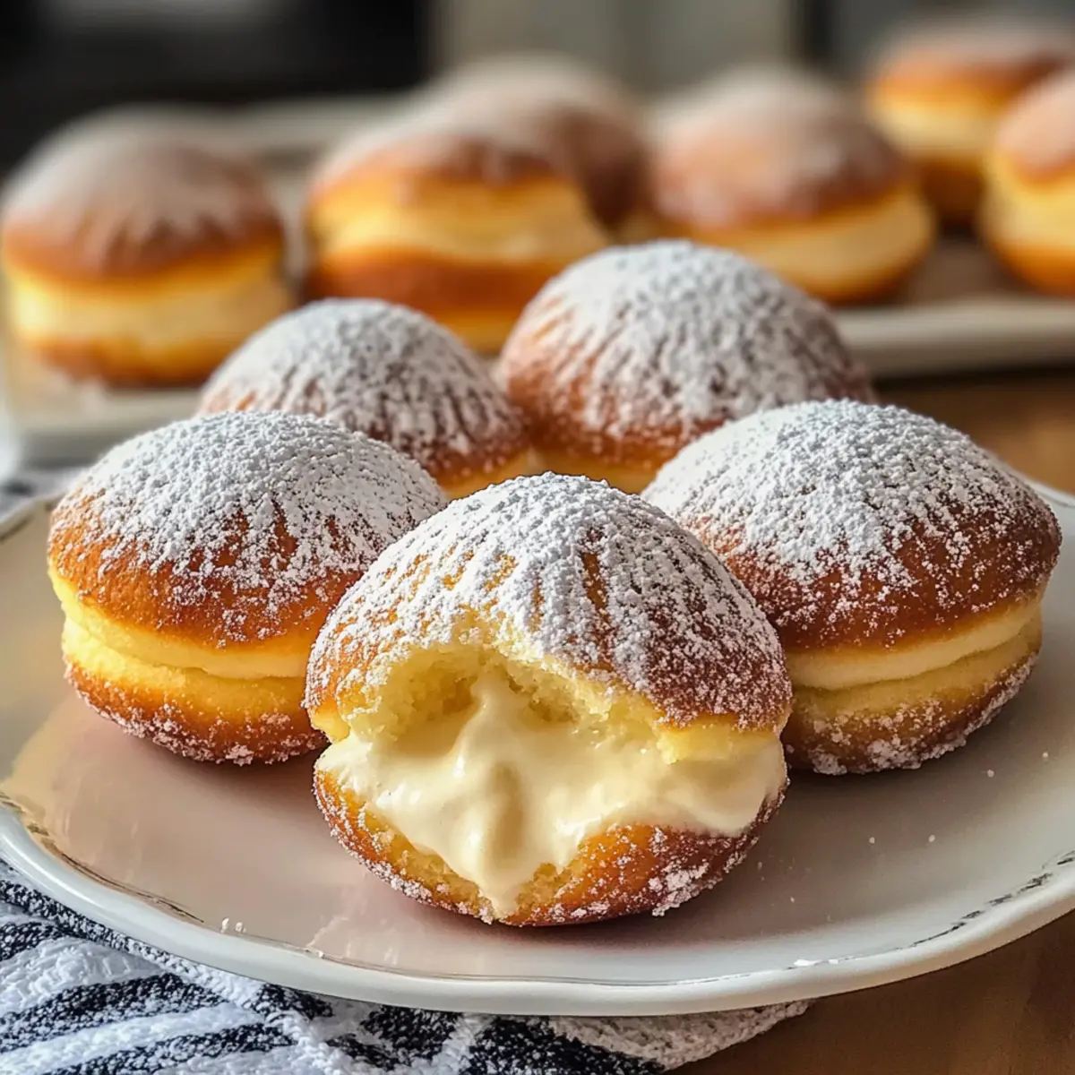 Es war ein sonniger Nachmittag in einer kleinen italienischen Trattoria, als ich zum ersten Mal die verlockenden Bomboloni alla Crema entdeckte. Diese köstlichen, mit Sahne gefüllten Krapfen eroberten schnell mein Herz und meine Geschmacksknospen. Die Kombination aus einem luftig leichten Teig und der samtigen Crèmefüllung macht sie zu einem perfekten Dessert für jede Gelegenheit. Das besten daran? Diese kleinen Glücksmomente sind nicht nur einfach zuzubereiten, sondern auch ein echter Publikumsmagnet! In weniger als zwei Stunden zauberst du sie in deiner eigenen Küche. Bist du bereit, selbst in die Welt der italienischen Süßigkeiten einzutauchen und deine Lieben mit diesen himmlischen Bomboloni zu überraschen? Warum sind Bomboloni ein Genuss? Unwiderstehlicher Geschmack: Die Kombination aus luftiger Teigstruktur und einer reichhaltigen Crèmefüllung lässt sie unwiderstehlich lecker werden. Einfachheit der Zubereitung: Diese Krapfen sind in weniger als zwei Stunden fertig, was sie perfekt für spontane Backaktionen macht. Vielfältige Füllungen: Du kannst kreativ sein und die traditionelle Crème durch Schokoladenfüllung oder fruchtige Varianten ersetzen. Ideal für jeden Anlass: Ob zum Kaffeekränzchen oder als Dessert – sie begeistern jeden Gast und werden schnell zum Star auf deinem Tisch. Verführerische Optik: Mit einem Puderzucker-Topping sind sie nicht nur lecker, sondern auch ein echter Augenschmaus. Häuftigen Nachschub garantieren: Diese Bomboloni bringen eine süße Abwechslung zu den alltäglichen Desserts und sind eine willkommene Abwechslung zu Fast Food. Bomboloni alla Crema Zutaten Klassisches Rezept für ein unvergleichliches Dessert! Für den Teig Mehl – sorgt für die Struktur und Textur; verwende Allzweck- oder Brotmehl für die besten Ergebnisse. Hefe – der treibende Agent für das Aufgehen; aktive Trockenhefe funktioniert gut, achte darauf, dass sie frisch ist. Zucker – für die Süße und Bräunung; du kannst auch mit Zucker oder leichtem braunem Zucker variieren. Milch – bringt Feuchtigkeit und Reichhaltigkeit; Vollmilch ist ideal, Mandelmilch kann für eine laktosefreie Option verwendet werden. Eier – für Bindung und Reichtum; sollten Zimmertemperatur haben, um sich besser einzuarbeiten. Butter – fügt Geschmack und Geschmeidigkeit hinzu; ungesalzene Butter ist bevorzugt. Vanilleextrakt – für das Aroma und die Geschmacksverstärkung; rein ist am besten, Imitate können den Geschmack beeinflussen. Salz – balanciert die Süße; essenziell, das Weglassen wird nicht empfohlen. Für die Füllung Crèmefüllung – die Hauptattraktion, meist eine Puddingcreme; überlege, sie durch Schokoladen- oder Fruchtvarianten zu ersetzen. Für das Finish Puderzucker – zum Bestäuben; optional, aber empfohlen für die Ästhetik und Süße. Entdecke die Freude am Backen mit diesem Bomboloni alla Crema Rezept, das einfach und köstlich ist! Schritt-für-Schritt-Anleitung für Bomboloni alla Crema: Das Rezept für Traumkrapfen Step 1: Teig vorbereiten In einer großen Schüssel vermischst du das Mehl, die Hefe, den Zucker und das Salz. Erwärme die Milch sanft, bis sie lauwarm ist, und gib sie zusammen mit der geschmolzenen Butter, den Zimmertemperatur-Eiern und dem Vanilleextrakt zur trockenen Mischung. Rühre alles gründlich, bis ein grober Teig entsteht. Step 2: Kneten Streue etwas Mehl auf eine saubere Arbeitsfläche und knete den Teig kräftig für etwa 8 bis 10 Minuten. Du solltest einen glatten und elastischen Teig erzielen, der nicht mehr an deinen Händen kleben bleibt. Achte darauf, ihn gut durchzukneten, damit die Bomboloni alla Crema schön aufgehen. Step 3: Erste Auffeuchtung Lege den gekneteten Teig in eine leicht geölte Schüssel und decke ihn mit einem sauberen Küchentuch ab. Lass ihn an einem warmen Ort für etwa 1 Stunde ruhen, bis sich das Volumen verdoppelt hat. Ein besserer Teig für die Bomboloni zeigt sich, wenn er die doppelte Größe erreicht hat. Step 4: Bomboloni formen Nachdem der Teig aufgegangen ist, rolle ihn auf einer bemehlten Fläche aus, ungefähr 1 cm dick. Verwende einen runden Ausstecher, um Kreise auszuschneiden. Platziere einen kleinen Löffel der Crèmefüllung in der Mitte der Hälfte der Kreise und setze die anderen Kreise darauf, dabei die Ränder gut andrücken, um sie zu versiegeln. Step 5: Zweite Auffeuchtung Lasse die gefüllten Krapfen auf einer bemehlten Fläche ruhen und decke sie erneut ab. Lass sie für etwa 30 Minuten aufgehen, bis sie sichtbar aufgegangen und puffig sind. Diese zweite Ruhephase ist wichtig, damit die Bomboloni wunderbar luftig werden. Step 6: Frittieren Erhitze eine große Menge Öl in einem tiefen Topf oder einer Fritteuse auf etwa 180 °C. Frittier die Krapfen, indem du sie vorsichtig ins heiße Öl gibst. Lass sie für 2-3 Minuten auf jeder Seite goldbraun werden. Achte darauf, dass das Öl heiß genug ist, damit die Bomboloni schön gleichmäßig bräunen. Step 7: Abkühlen und Bestäuben Nehme die frisch frittierten Bomboloni alla Crema vorsichtig mit einer Schaumkelle heraus und lasse sie auf einem Kuchengitter abtropfen. Streue den Puderzucker kurz vor dem Servieren großzügig darüber. Lass sie nicht zu lange abkühlen, damit sie warm und köstlich bleiben. Lagerungstipps für Bomboloni alla Crema Raumtemperatur: Bewahre die Bomboloni bei Raumtemperatur in einem luftdichten Behälter auf, um ihre Frische zu erhalten. Sie bleiben so bis zu 2 Tage köstlich. Kühlschrank: Wenn du sie länger aufbewahren möchtest, kannst du die Bomboloni alla Crema im Kühlschrank lagern. Sie bleiben für etwa einen weiteren Tag genießbar. Stelle sicher, dass sie in einem luftdichten Behälter sind, um Austrocknen zu vermeiden. Einzelne Portionen einfrieren: Du kannst die gefüllten Krapfen einzeln einfrieren. Wickel sie gut in Frischhaltefolie und lege sie in einen Gefrierbeutel. So bleiben sie bis zu 3 Monate frisch. Wiederaufwärmen: Um die gefrorenen Bomboloni wiederaufzuwärmen, 