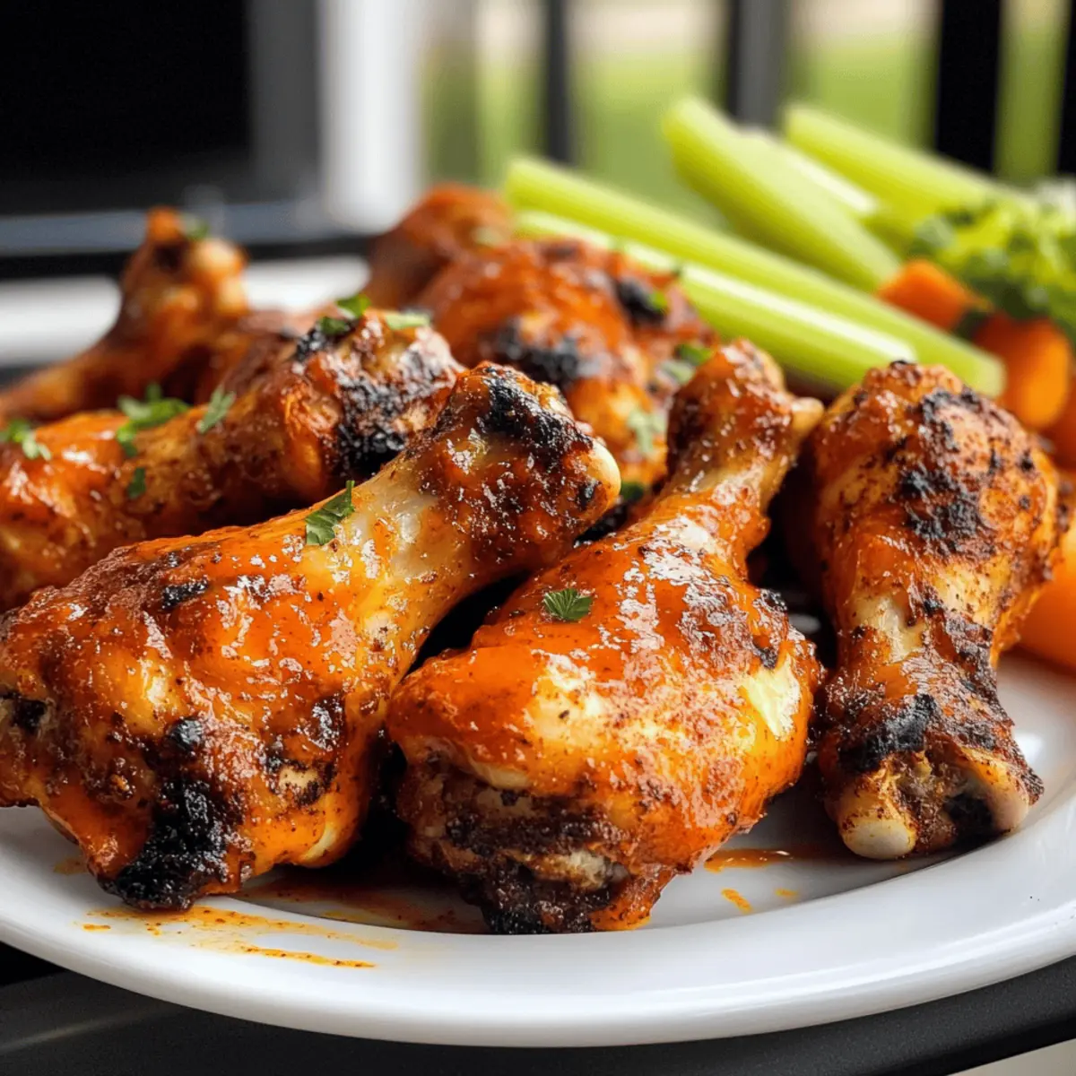 Wenn der Hunger nach etwas Herzhaftem und Würzigem kommt, kann ich einfach nicht widerstehen – und genau deshalb habe ich diese knusprigen Buffalo-Drumsticks kreiert. Die Kombination aus zarten Hähnchenschenkeln und einer pikanten, buttrigen Sauce bringt jeden Gaumen zum Tanzen! Dieses Rezept ist nicht nur unkompliziert und schnell zubereitet, sondern auch wunderbar glutenfrei, falls du deinen Gästen eine besondere Freude machen möchtest. Ob für den nächsten Spielabend, eine gesellige Runde mit Freunden oder einfach nur, um den Feierabend zu versüßen – diese Drumsticks sind immer ein Hit! Bist du bereit, dieses köstliche Erlebnis nach Hause zu holen? Warum sind Buffalo-Drumsticks so beliebt? Einfachheit: Die Zubereitung dieser Buffalo-Drumsticks ist schnell und unkompliziert – perfekt für Kochanfänger und Profis gleichermaßen. Vielseitigkeit: Du kannst die Gewürze leicht anpassen, um deinen persönlichen Geschmack zu treffen oder sie mit verschiedenen Saucen zu servieren. Perfekte Textur: Der knusprige Außenbereich in Kombination mit dem zarten, saftigen Fleisch macht jeden Biss zu einem Genuss. Geselliges Essen: Ob bei Partys oder beim gemütlichen Abendessen, diese Drumsticks sind immer ein hitzender Mittelpunkt am Tisch! Glutenfrei: Mit einer einfachen Mehl-Alternative sind sie für alle Gäste geeignet. Probiere sie zusammen mit einem köstlichen Dip wie dem Blauschimmelkäse-Dip für das ultimative Geschmackserlebnis! Buffalo-Drumsticks Zutaten Für die Marinade Buttermilch – Verleiht den Drumsticks Zartheit und Feuchtigkeit; kann durch Joghurt ersetzt werden. Tabasco-Sauce – Fügt die gewünschte Schärfe hinzu; passe die Menge nach deinem Geschmack an. Knoblauchpulver – Intensiviert den Geschmack; frischer Knoblauch kann für mehr Würze verwendet werden. Zwiebelpulver – Sorgt für zusätzliche Geschmackstiefe. Paprikapulver – Für Farbe und milde Süße; verwende geräuchertes Paprikapulver für ein besonderes Aroma. Cayennepfeffer – Optional für mehr Schärfe; nach Belieben dosieren. Salz und Pfeffer – Unverzichtbare Gewürze für ein ausgewogenes Aroma. Für die Panade Mehl – Bildet die knusprige Schicht; kann durch glutenfreies Mehl ersetzt werden. Maisstärke – Sorgt für extra Crunch in der Panade. Getrocknete Kräuter (Thymian & Oregano) – Bringen herzliche Noten in die Panade. Für die Sauce Butter – Fügt Reichhaltigkeit hinzu und hilft, die Sauce an den Drumsticks haften zu lassen; kann durch eine pflanzliche Alternative ersetzt werden. Hot Sauce – Unverzichtbar für den typischen Buffalo-Geschmack; Frank’s ist eine beliebte Wahl. Weißweinessig – Sorgt für die notwendige Säure; kann durch Apfelessig ersetzt werden. Zum Servieren Blauschimmelkäse-Dip oder Ranch-Dip – Perfekte Begleiter für das Servieren. Selleriestangen & Karottenstifte – Klassische Beilagen für Knusprigkeit und Frische. Diese Buffalo-Drumsticks werden nicht nur deine Gäste begeistern, sondern sind auch eine wunderbare Möglichkeit, ein glutenfreies Gericht zu genießen! Schritt-für-Schritt-Anleitung für Buffalo-Drumsticks Step 1: Hähnchen marinieren Wasche die Drumsticks gründlich und tupfe sie trocken. Mische in einer großen Schüssel Buttermilch, Tabasco, Knoblauchpulver, Zwiebelpulver, Paprikapulver, Cayennepfeffer (falls verwendet), Salz und Pfeffer. Lege die Hähnchenschenkel in die Marinade, decke die Schüssel ab und stelle sie für mindestens 4 Stunden, idealerweise über Nacht, in den Kühlschrank, damit die Aromen richtig einziehen. Step 2: Panade vorbereiten Nimm eine separate Schüssel und vermische Mehl, Maisstärke, Knoblauchpulver, Zwiebelpulver, Paprikapulver, Cayennepfeffer (wenn gewünscht), Thymian, Oregano, Salz und Pfeffer. Diese Mischung wird die knusprige Beschichtung für die Buffalo-Drumsticks bilden. Stelle die Schüssel bereit, während das Hähnchen mariniert. Step 3: Hähnchen panieren Nehme die marinierten Drumsticks aus dem Kühlschrank, lasse überschüssige Marinade abtropfen und wälze jeden Schenkel in der Mehlmischung. Drücke die Panade gut an, damit sie haften bleibt. Lege die panierten Drumsticks auf ein mit Backpapier ausgelegtes Backblech und stelle sie für 30 Minuten in den Kühlschrank. Dies hilft, die Panade zu festigen. Step 4: Backen Heize den Ofen auf 200°C vor. Backe die Drumsticks für 40-45 Minuten, bis sie goldbraun und durchgegart sind; die Innentemperatur sollte 75°C erreichen. Drehe die Drumsticks zur Hälfte der Backzeit um, um eine gleichmäßige Bräunung zu gewährleisten. Sie sollten außen schön knusprig und innen saftig sein. Step 5: Sauce zubereiten Während die Hähnchen im Ofen sind, schmelze in einem kleinen Topf die Butter. Nimm den Topf vom Herd und rühre Hot Sauce, Weißweinessig, Knoblauchpulver, Cayennepfeffer (wenn verwendet) und optional Zucker ein. Schmecke die Sauce ab und passe die Gewürze nach Belieben an, um den perfekten Buffalo-Geschmack zu erzielen. Step 6: Hähnchen mit Sauce überziehen Wenn die Buffalo-Drumsticks fertig gebacken sind, nimm sie aus dem Ofen und lege sie in eine große Schüssel. Übergieße die heißen Drumsticks mit der vorbereiteten Sauce und schwenke sie vorsichtig, sodass jede Hähnchenkeule gleichmäßig mit der würzigen Sauce bedeckt ist. Step 7: Servieren Serviere die Buffalo-Drumsticks sofort, begleitet von einem cremigen Blauschimmelkäse-Dip oder Ranch-Dip. Füge auch Selleriestangen und Karottenstifte hinzu, um den perfekten, knusprigen Beilagen-Snack zu kreieren. Diese Drumsticks sind ein Hit bei jeder Gelegenheit! Buffalo-Drumsticks Variationen & Substitutionen Lass deiner Kreativität freien Lauf und passe diese köstlichen Buffalo-Drumsticks an deine Vorlieben an! Wings statt Drumsticks: Verwende Hähnchenflügel für eine klassischere Bar-Snack-Variation. Die Zubereitung bleibt gleich! Milderer Geschmack: Ersetze die Tabasco-Sauce durch eine weniger scharfe Sauce oder füge Honig hinzu, um eine süßere Note zu erhalten.