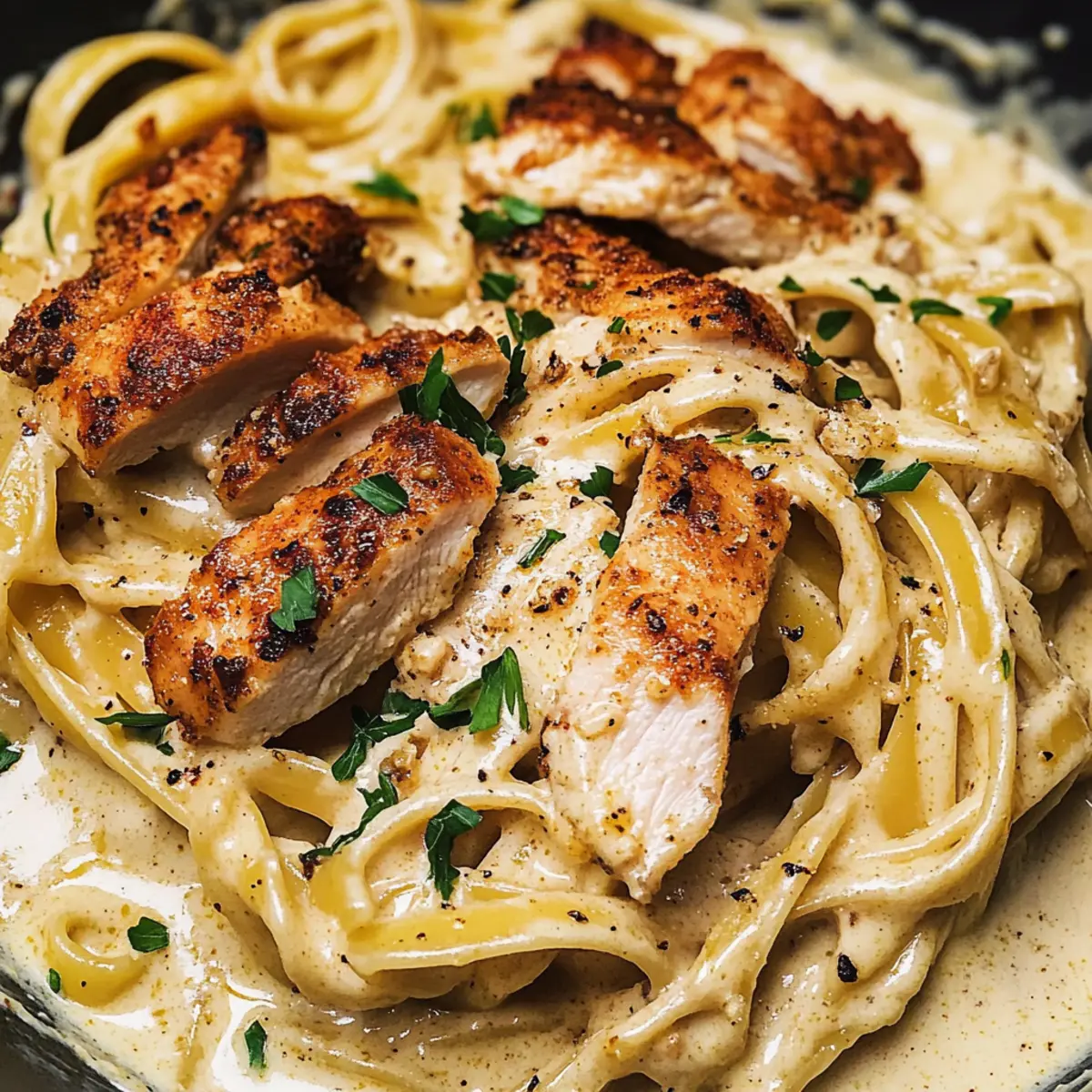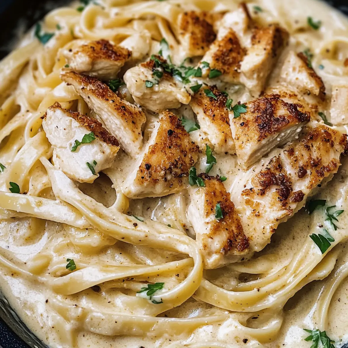 Ein Hauch von Louisiana auf meinem Teller – so fühlt es sich an, wenn ich diese Cajun Alfredo Soße zubereite. Diese köstlich cremige Soße kombiniert die Reichhaltigkeit von Sahne und Parmesan mit dem feurigen Kick von Cajun-Gewürzen und verwandelt ein einfaches Pasta-Gericht in ein Geschmacksabenteuer. Und das Beste daran? Die Zubereitung dauert nur 30 Minuten – perfekt, um nach einem langen Tag etwas Besonderes auf den Tisch zu bringen. Diese Cajun Alfredo Soße ist nicht nur ein hervorragendes Comfort Food, sondern sie begeistert auch jeden, der Lust auf eine würzige Note hat. Bist du bereit, deine Pasta-Nacht aufzupeppen? Warum wirst du dieses Rezept lieben? Einfachheit: Die Zubereitung dieser Cajun Alfredo Soße ist kinderleicht und erfordert nur grundlegende Kochfähigkeiten. Reichhaltiger Geschmack: Die Kombination aus frischer Sahne und würzigem Cajun-Gewürz sorgt für ein geschmackliches Erlebnis, das deine Familie begeistern wird. Schnelle Zubereitung: In nur 30 Minuten bist du bereit, deine Pasta zu servieren – ideal für hektische Wochentage! Vielseitigkeit: Du kannst die Soße mit deinem Lieblingsgemüse oder Protein wie Garnelen oder Würstchen individualisieren, um noch mehr Vielfalt auf den Tisch zu bringen. Gäste beeindrucken: Egal, ob zum gemütlichen Abendessen oder zu einer Feier – diese Soße wird sicher zum Gesprächsthema! Ein Hauch von Louisiana: Mit diesem Rezept holst du den einzigartigen Geschmack des Südens nach Hause. Verpasse nicht die Chance, deine Liebsten mit dieser leckeren Cajun Alfredo Soße zu verwöhnen! Cajun Alfredo Soße Zutaten • Eine kulinarische Entdeckung, die du nicht verpassen solltest! Für die Soße Ungesalzene Butter – sorgt für Reichhaltigkeit und bildet die Basis der Soße. Verwende gesalzene Butter, reduziere jedoch die zusätzliche Salzmenge, falls gewünscht. Frischer Knoblauch – bietet ein aromatisches Aroma. Frischen Knoblauch verwenden, um einen robusteren Geschmack zu erhalten. Weißwein – fügt Säure und Tiefe hinzu. Optional; kann durch Hühnerbrühe für eine alkoholfreie Variante ersetzt werden. Schlagsahne – sorgt für eine cremige und reichhaltige Soße. Für eine leichtere Variante durch Vollmilch ersetzen und ein Verdickungsmittel wie Mehl hinzufügen. Parmesan-Käse – bringt einen nussigen, salzigen Geschmack und verdickt die Soße. Hochwertigen Parmigiano-Reggiano wählen für das beste Ergebnis. Cajun-Gewürz – gibt einen würzigen Kick und verstärkt die Geschmacksvielfalt. Je nach persönlichem Geschmack anpassen. Fettuccini-Pasta – die Basis des Gerichts. 8 oz werden empfohlen; die Wahl der Pasta kann variieren, sollte aber lang und flach sein für die traditionelle Zubereitung. Heißes Pasta-Wasser – nach Bedarf verwenden, um die Konsistenz der Soße anzupassen. Petersilie – dient als Garnierung und bringt Farbe und Frische. Kann bei Bedarf durch Schnittlauch oder Frühlingszwiebeln ersetzt werden. Salz & frisch gemahlener schwarzer Pfeffer – nach Geschmack würzen, fundamental zur Verbesserung des Gesamtgeschmackes des Gerichts. Diese Cajun Alfredo Soße ist eine wundervolle Möglichkeit, deinem Pasta-Gericht eine aufregende Note zu verleihen! Schritt-für-Schritt-Anleitung für die Cremige Cajun Alfredo Soße Step 1: Sauté In einer großen Pfanne bei mittlerer Hitze die ungesalzene Butter schmelzen. Füge den fein gehackten frischen Knoblauch hinzu und brate ihn 30 Sekunden lang an, bis er duftet. Achte darauf, dass er nicht anbrennt, da dies den Geschmack beeinträchtigen würde. Step 2: Deglaze Gieße vorsichtig den Weißwein in die Pfanne und lasse ihn 2-3 Minuten lang köcheln, bis er um die Hälfte reduziert ist. Diese Technik sorgt dafür, dass der Alkohol verdampft und die Aromen konzentriert werden. Rühre gelegentlich um, um sicherzustellen, dass nichts ansetzt. Step 3: Whisk Reduziere die Hitze, füge die schwere Sahne, den geriebenen Parmesan und das Cajun-Gewürz hinzu. Mit einem Schneebesen gründlich umrühren, bis die Soße glatt und der Käse geschmolzen ist. Diese cremige Cajun Alfredo Soße sollte eine herrlich velvety Konsistenz haben. Step 4: Simmer Lasse die Mischung für weitere 2-3 Minuten köcheln, bis die gewünschte Dicke erreicht ist. In dieser Phase solltest du die Soße abschmecken und nach Belieben mit Salz und frisch gemahlenem schwarzem Pfeffer würzen. Achte darauf, dass die Soße nicht zu stark eindickt. Step 5: Toss Füge die gekochte Fettuccini-Pasta direkt in die Pfanne hinzu und schwenke sie sorgfältig in der Soße, bis sie gleichmäßig bedeckt ist. Wenn die Soße zu dick ist, kannst du nach Bedarf 1/4 Tasse des reservierten heißen Pasta-Wassers hinzufügen, um die Konsistenz zu verbessern. Step 6: Serve Serviere die cremige Cajun Alfredo Soße sofort und dekoriere sie nach Wunsch mit Cajun gewürztem Hühnchen, zusätzlichem Parmesan und frisch gehackter Petersilie. Dies gibt der Präsentation Farbe und Frische, während der würzige Kick deine Geschmacksnerven erfreut! Cajun Alfredo Soße Variationen Lass deiner Kreativität freien Lauf und gestalte diese Cajun Alfredo Soße nach deinem Geschmack! Leicht: Ersetze die Schlagsahne durch Vollmilch für eine leichtere Variante, die trotzdem köstlich ist. Gemüse-Boost: Füge sautierte Champignons oder Spinat hinzu, um zusätzliches Gemüse und Geschmack zu integrieren. Sie bringen nicht nur Farbe, sondern auch eine nährstoffreiche Komponente in dein Gericht. Fischige Note: Tausche das Hühnerfleisch gegen Garnelen aus, um eine fruchtige Variante zu kreieren. Garnelen verleihen dem Gericht eine zarte Textur und nehmen die Aromen der Soße wunderschön auf. Herzhafter: Verwende anstelle von Hühnerbrust würzige Würstchen, um einen kräftigen Geschmack hinzuzufügen. Sie bringen zusätzliche Würze und eine schöne Textur. Spicy Kick: Erhöhe den Cayennepfeffer im Cajun-Gewürz, wenn du es schärfer magst. Ein bisschen mehr Schärfe bringt das „Wow“-Element! Käsevielfalt: Ergä