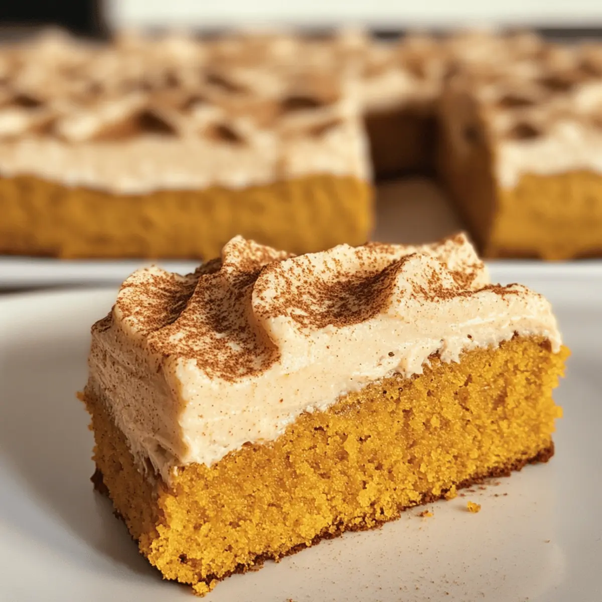 Chai Latte Kürbiskuchen ist ein saftiger Blechkuchen, der mit aromatischen Chai-Gewürzen und einer leichten Zimtcreme versehen ist.