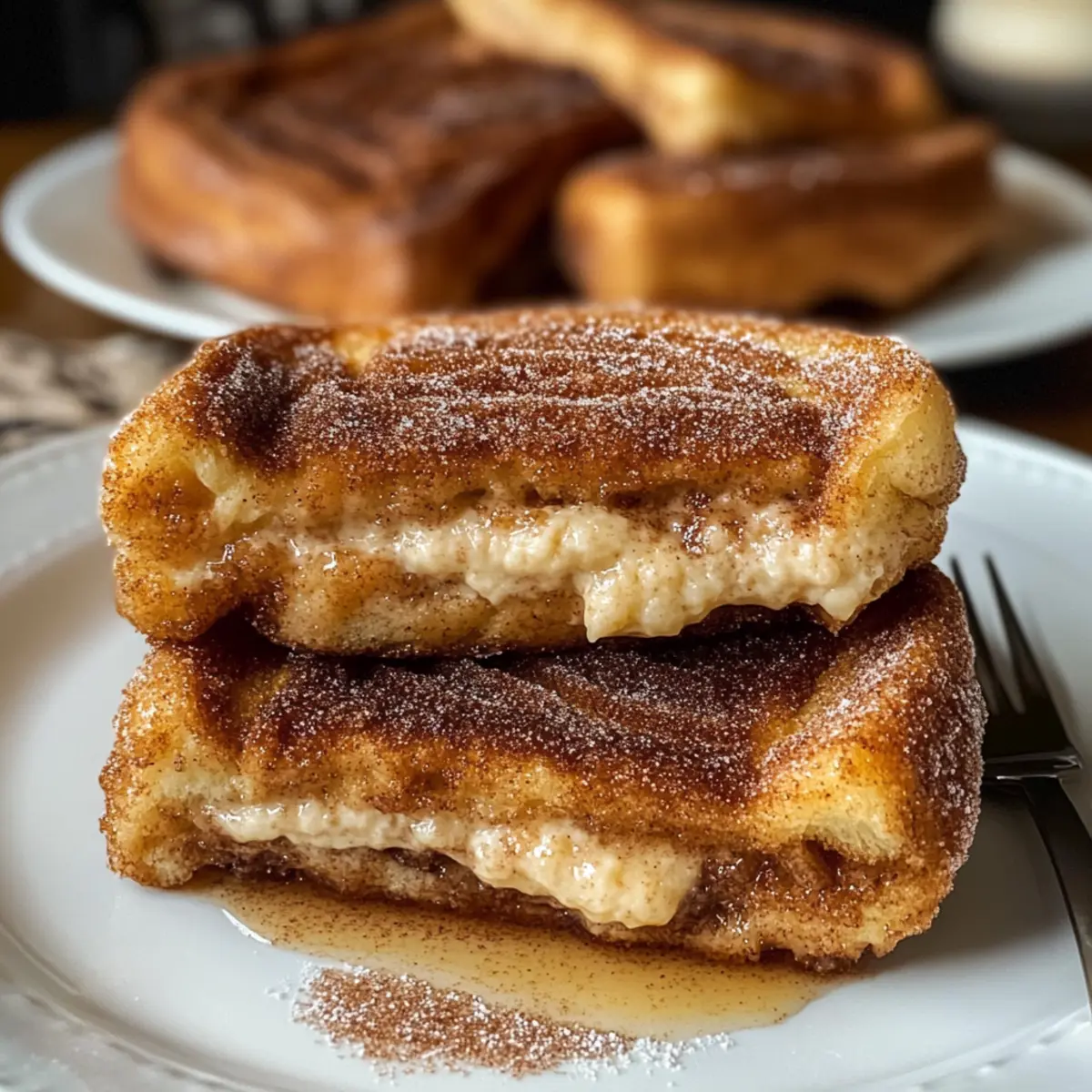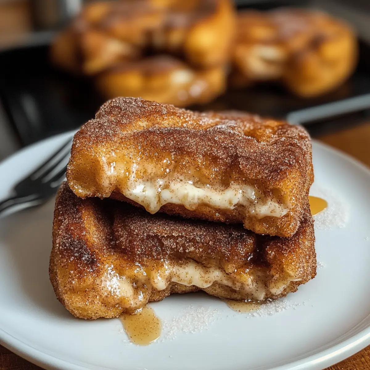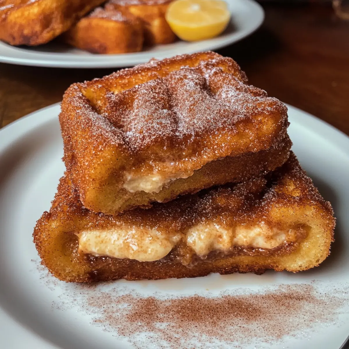 Können Sie sich das Gefühl vorstellen, wenn eine süße Brise Ihren Gaumen umschmeichelt? Der Churro gefüllte French Toast ist nicht nur ein Genuss, sondern eine wahre Umarmung für die Seele. Diese unwiderstehliche Kombination vereint die knusprigen, karamellisierten Aromen von Churros mit der warmen, cremigen Fülle von French Toast, perfekt für einen geselligen Brunch oder einfach als verwöhnendes Dessert. Die besten Teile? Diese köstlichen Toastscheiben sind nicht nur einfach zuzubereiten, sondern auch anpassbar – ob mit cremigem Frischkäse, verführerischem Dulce de Leche oder zartem Schokoladenaufstrich, jeder Biss ist ein neues Abenteuer. Fragst du dich, wie du dieses himmlische Gericht selbst kreieren kannst? Lass uns gemeinsam in diese süße Entdeckungsreise eintauchen! Warum wirst du diesen Churro-French-Toast lieben? Unvergleichlicher Geschmack: Der Churro gefüllte French Toast vereint die knusprige Süße von Churros mit einer samtigen Füllung, die einfach jede Geschmacksnerven kitzelt. Einfache Zubereitung: Mit grundlegenden Zutaten und klaren Anweisungen ist dieses Rezept auch für Kochanfänger ideal. Vielseitigkeit: Ob mit Frischkäse, Dulce de Leche oder einem Hauch von Nutella, die Füllungen sind anpassbar und sorgen für unzählige Variationen – perfekt für jeden Geschmack! Perfektes Brunch-Gericht: Ein Hit bei jedem Brunch, dieser French Toast lässt sich wunderbar warm servieren und bringt Freude an den Tisch. Entdecke auch unsere Tiramisu Kekse Den oder den New Yorker Käsekuchen für weitere süße Inspirationen! Churro gefüllter French Toast Zutaten Für das Brot • Brioche, Chalotte oder Texas Toast – Diese Brote bieten eine robuste, leicht süße Basis und sind ideal, um die cremige Füllung zu halten. Verwende am besten altbackenes Brot für optimalen Geschmack. Für die Füllung • Frischkäse – Gewährleistet eine samtige Textur; kann mit etwas Zucker und Zimt verfeinert werden. • Dulce de Leche oder Schokoladenaufstrich – Perfekt für eine süße, cremige Überraschung; sorge dafür, dass die Füllung dick genug ist, um nicht auszulaufen. Für den Custard • Eier – Stellen die Struktur und den Reichtum des Custards sicher. • Milch oder Sahne – Sorgt für eine cremige Konsistenz; Vollmilch ist ideal, aber leichtere Alternativen funktionieren auch gut. • Vanilleextrakt – Verstärkt die Süße und das Aroma des Custards. • Prise Salz – Balanciert die Aromen im Custard perfekt. Für die Beschichtung • Zucker – Fügt eine süße Note hinzu und trägt zur knusprigen Textur bei. • Gemahlener Zimt – Verleiht den charakteristischen Churro-Geschmack; ideal für die perfekte Beschichtung. • Butter – Zum Braten, sorgt für eine goldene Kruste und zusätzlichen Geschmack. Dieser Churro gefüllte French Toast ist ein wahrhaft unwiderstehliches Frühstück! Mach dich bereit, deine Familie und Freunde mit diesem köstlichen Dessert zu begeistern. Schritt-für-Schritt-Anleitung für Churro gefüllter French Toast Schritt 1: Füllung vorbereiten Zuerst den Frischkäse in einer Schüssel weichrühren. Füge gesiebten Puderzucker, Vanilleextrakt und eine Prise Zimt hinzu und mische alles zu einer glatten, cremigen Masse. Diese Füllung sollte eine gleichmäßige Konsistenz haben, die sich leicht zwischen die Brotscheiben streichen lässt. Stelle die Füllung beiseite, während du die Sandwiches zusammenstellst. Schritt 2: Sandwiches zusammenstellen Nimm zwei Scheiben Brioche oder Texas Toast und verteile eine großzügige Menge der vorbereiteten Frischkäsefülle auf einer Scheibe. Lege die zweite Scheibe darauf und drücke leicht nach unten, um die beiden Hälften zu verbinden. Achte darauf, dass die Füllung gleichmäßig verteilt ist, damit sie beim Braten nicht herausquillt. Schritt 3: Custard zubereiten In einer flachen Schüssel die Eier, Milch und Vanilleextrakt gründlich verquirlen. Füge eine Prise Salz hinzu, um den Geschmack zu verstärken. Diese Mischung wird später dazu verwendet, die Sandwiches einzuweichen und sorgt für eine cremige Textur. Bereite alles vor, um die Sandwiches gleichmäßig damit zu tränken. Schritt 4: Sandwiches einweichen Nimm das vorbereitete Sandwich und tauche es für 15–20 Sekunden auf jeder Seite in die Custard-Mischung. Achte darauf, dass das Brot gut getränkt wird, aber nicht zu lange, um ein durchweichtes Ergebnis zu vermeiden. Dies sorgt dafür, dass der Churro gefüllte French Toast beim Braten schön cremig wird. Schritt 5: Braten Erhitze eine Pfanne bei mittlerer Hitze und füge einen Esslöffel Butter hinzu. Sobald die Butter geschmolzen ist und anfängt zu schäumen, lege das eingetauchte Sandwich vorsichtig in die Pfanne. Brate es 3–5 Minuten auf jeder Seite, bis es goldbraun und knusprig ist. Achte darauf, die Hitze nicht zu hoch einzustellen, damit das Brot gleichmäßig durchgart. Schritt 6: Mit Zimt-Zucker bestreuen Nach dem Braten nimm das Sandwich aus der Pfanne und lasse es kurz abkühlen. Bestreiche die warme Oberfläche mit geschmolzener Butter und rolle es anschließend in einer Mischung aus Zucker und gemahlenem Zimt. Diese süße Kruste verleiht deinem Churro gefüllten French Toast den charakteristischen Geschmack der Churros. Schritt 7: Servieren Schneide den Churro gefüllten French Toast diagonal in zwei Hälften. Serviere ihn warm, garniert mit Schlagsahne, frischen Früchten oder einem köstlichen Karamell- oder Schokoladensirup. Dieses Gericht lässt sich hervorragend für einen geselligen Brunch oder als verführerisches Dessert genießen. Variationen des Churro gefüllten French Toasts Lasse deiner Kreativität freien Lauf und passe dieses Rezept nach deinem Geschmack an! Nutella Füllung: Verwende Nutella anstelle von Frischkäse für einen schokoladigen Genuss. Einfach und unwiderstehlich! Fruchtige Note: Füge Fruchtmarmelade oder frische Beeren für einen frischen, fruchtigen Twist hinzu. Diese Kombination bringt eine süße Frische in jeden B