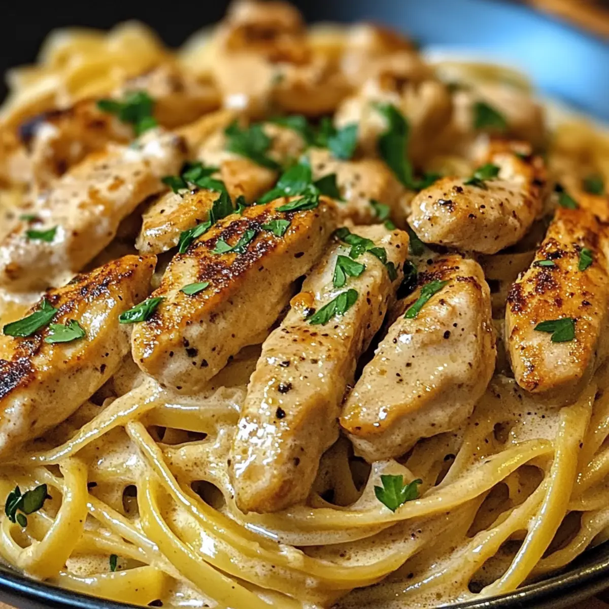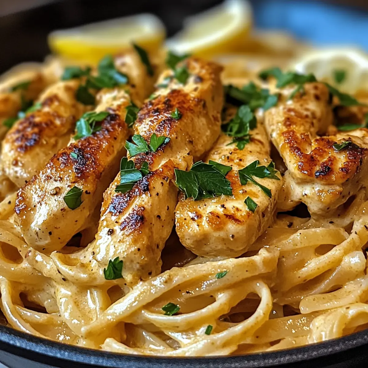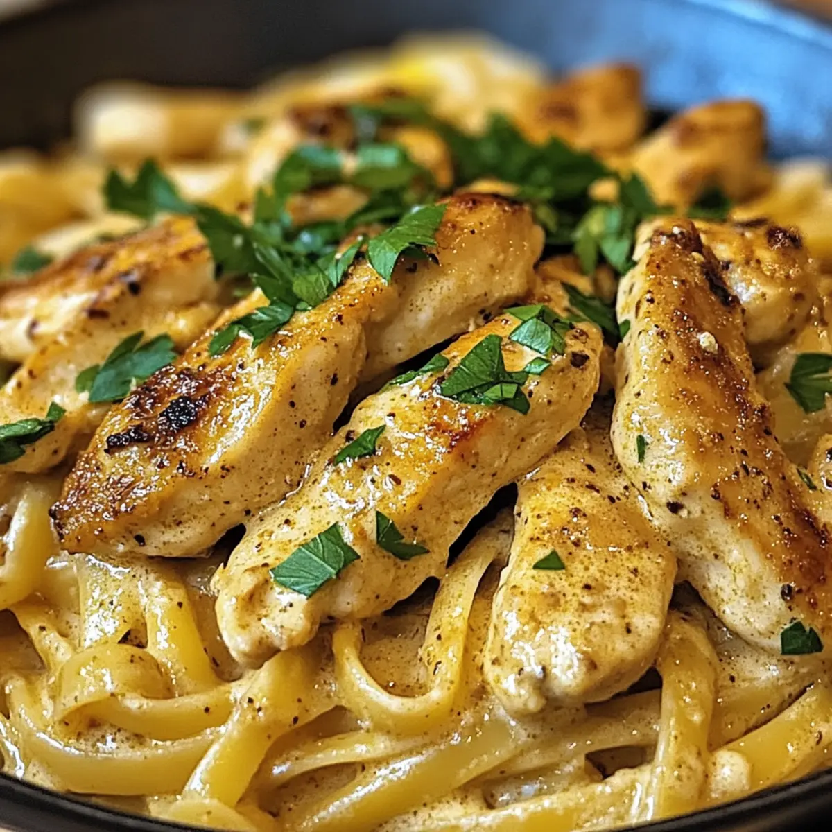 „Ich habe es gehört: Cowboy Butter Hühnchen Linguine ist der neue Star in der Küche!“ Dieser Satz brachte mich dazu, die Zwänge der Fast-Food-Welt hinter mir zu lassen und mich in das aufregende Abenteuer eines selbstgemachten Pasta-Gerichts zu stürzen. Diese köstliche Portion kombiniert zartes Hühnchen mit einer cremigen und würzigen Cowboy Butter-Sauce, die das Geschmackserlebnis in neue Höhen hebt. Schnell und einfach zubereitet, ist dieses Rezept nicht nur ein echter Publikumsliebling, sondern es ermöglicht auch unzählige Variationen – sei es mit Garnelen, Steakstreifen oder sogar Tofu! Stell dir vor, wie die Aromen von Knoblauch, Zitrone und frisch gehackter Petersilie deine Küche erfüllen. Bist du bereit, diese geschmackliche Reise anzutreten und deiner Familie einen Hauch Wildwest-Romantik zu servieren? Lass uns gemeinsam loslegen! Warum wirst du dieses Rezept lieben? Einfachheit: Die Zubereitung ist kinderleicht und benötigt nur grundlegende Kochfähigkeiten. Vielseitigkeit: Du kannst nach Belieben variieren, sei es mit Garnelen, Steakstreifen oder Tofu – perfekt für jeden Geschmack! Aromatische Füllung: Die Kombination aus Knoblauch, Zitrone und einem Hauch Cayennepfeffer sorgt für ein würziges Geschmackserlebnis, das deine Sinne berauschen wird. Schnell und praktisch: In nur 30 Minuten servierst du ein köstliches Gericht, das jeden schnelllebigen Alltag überwindet. Küchenliebling: Ideal für Familien oder Dinnerpartys – es ist ein echter Hit, der alle zufriedenzustellen weiß. Entdecke auch unsere leckeren Variationen wie Cowboy Butter Garnelen oder unsere Tipps für die perfekte Pasta! Cowboy Butter Hühnchen Linguine Zutaten • Um die Aromen auf ein neues Level zu heben, sind hier die Zutaten, die du für dieses köstliche Gericht benötigst: Für die Cowboy Butter Ungesalzene Butter – die cremige Basis, die essentielle Geschmacksrichtungen liefert; Substitutionen sind nicht zu empfehlen. Knoblauchzehen – frisch verwendet, bringen sie das aromatische Geschmackserlebnis. Dijon-Senf – sorgt für eine angenehme Säure und Tiefe; eine Variante ist der Vollkornsenf. Cayennepfeffer – bringt die Schärfe ins Spiel; die Menge kann je nach Vorliebe angepasst werden. Geräuchertes Paprikapulver – fügt eine rauchige Note hinzu, die köstlich mit der Butter harmoniert. Zitrone – sowohl Saft als auch Zest bringen Frische und Helligkeit an das Gericht. Frische Petersilie – sorgt für Farbe und ein frisches Aroma. Für das Hauptgericht Hühnchenbrust – die Hauptproteinquelle; wähle Hautlose für eine leichterere Option. Linguine – perfekt im Zusammenspiel mit der cremigen Sauce; kann bei Bedarf durch Spaghetti ersetzt werden. Olivenöl – notwendig zum Braten des Hühnchens; andere Pflanzenöle sind ebenfalls akzeptabel. Mit diesen Zutaten bereitest du das beeindruckende Cowboy Butter Hühnchen Linguine zu, das nicht nur schnell, sondern auch voller Geschmack ist! Schritt-für-Schritt-Anleitung für Cowboy Butter Hühnchen Linguine ** Schritt 1: Cowboy Butter zubereiten** Schmelze 100 g ungesalzene Butter in einem kleinen Topf bei mittlerer Hitze. Füge 3 fein gehackte Knoblauchzehen hinzu und brate sie 1–2 Minuten lang an, bis sie duften. Rühre 1EL Dijon-Senf, 1/4 TL Cayennepfeffer, 1/2 TL geräuchertes Paprikapulver, den Saft und die abgeriebene Schale einer Zitrone sowie 2 EL frisch gehackte Petersilie bei. Nimm die Sauce vom Herd und stelle sie zur Seite. ** Schritt 2: Hühnchen braten** Während die Cowboy Butter abkühlt, schneide 400 g Hautloses Hühnchen in Streifen und würze diese großzügig mit Salz, Pfeffer und etwas Paprikapulver. Erhitze 2 EL Olivenöl in einer großen Pfanne bei mittlerer Hitze. Brate das Hühnchen für 5–7 Minuten, bis es goldbraun und vollständig durchgegart ist. Nimm die Pfanne vom Herd und halte das Hühnchen warm. ** Schritt 3: Linguine kochen** Setze einen Topf mit Wasser auf und bringe es zum Kochen. Füge 250 g Linguine hinzu und koche die Pasta gemäß den Anweisungen auf der Verpackung al dente, in der Regel etwa 8–10 Minuten. Gib 1/2 Tasse des Kochwassers für später auf die Seite. Lass die Pasta abtropfen, befreie sie aber von überschüssigem Wasser, damit sie die Aromen besser aufnehmen kann. ** Schritt 4: Alles kombinieren** Gib die abgetropfte Linguine zurück in die Pfanne mit dem Hühnchen und füge die vorbereitete Cowboy Butter hinzu. Vermenge alles gut, bis die Pasta gleichmäßig mit der Sauce bedeckt ist. Falls die Mischung zu trocken erscheint, füge langsam das reservierte Kochwasser hinzu, bis die gewünschte cremige Konsistenz erreicht ist. ** Schritt 5: Servieren** Richte das Cowboy Butter Hühnchen Linguine auf Tellern an, garniere es mit restlicher Petersilie und serviere es sofort. Optional kannst du noch einen Spritzer frischen Zitronensaft darüber geben, um die Aromen aufzuwerten. Genieße dieses köstliche, schnelle und aromatische Gericht mit Freunden und Familie! Cowboy Butter Hühnchen Linguine Variationen Lass deiner Kreativität freien Lauf und passe dieses Rezept nach deinem Geschmack an – die Möglichkeiten sind endlos! Garnelen: Ersetze das Hühnchen durch saftige Garnelen für eine köstliche Meeresfrüchte-Variante. Steak Streifen: Verwende zarte Steakstreifen, um dem Gericht einen robusten Biss zu verleihen. Einfach anbraten und genießen! Tofu: Für eine vegetarische Version tausche das Hühnchen gegen Tofu und verwende pflanzliche Butter. Lachs: Ersetze das Hühnchen durch gebratenen Lachs für einen extra geschmackvollen Twist. Die Fette des Lachses harmonieren wunderbar mit der Cowboy Butter. Gemüse: Füge saisonales Gemüse wie Spinat oder Zucchini hinzu, um das Gericht nährstoffreich und farbenfroh zu gestalten. Vollkornnudeln: Verwende Vollkorn-Linguine oder Spaghetti für eine gesündere Alternative. Sie bringen einen nussigen Geschmack. Würzig: Erhöhe die Menge an Cayennepfeffer für ein feuriges Geschmackserlebnis, das das Gericht aufpe