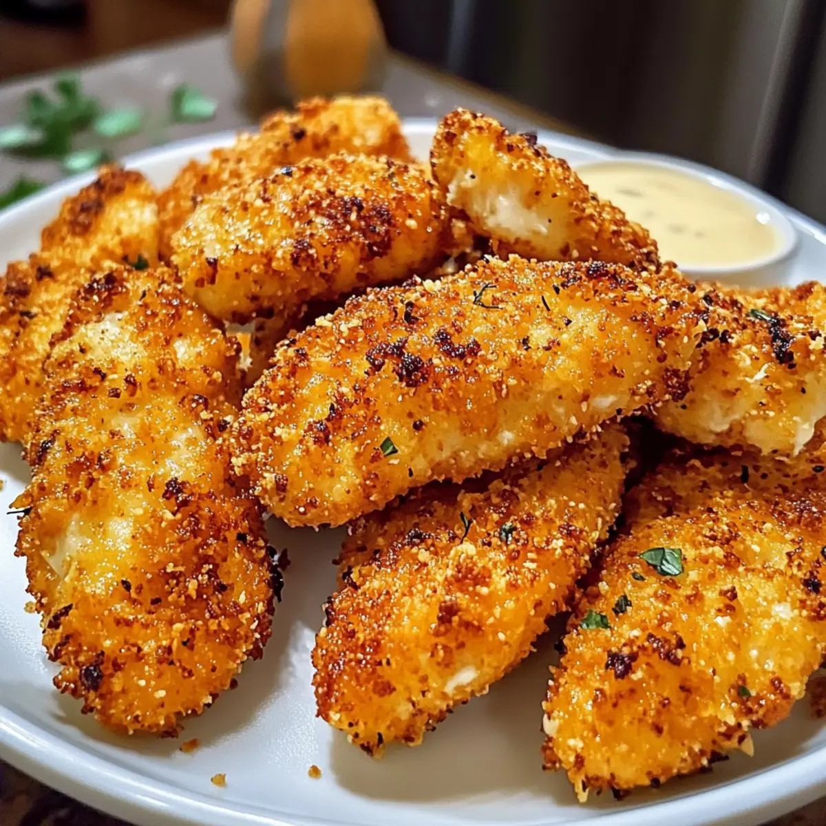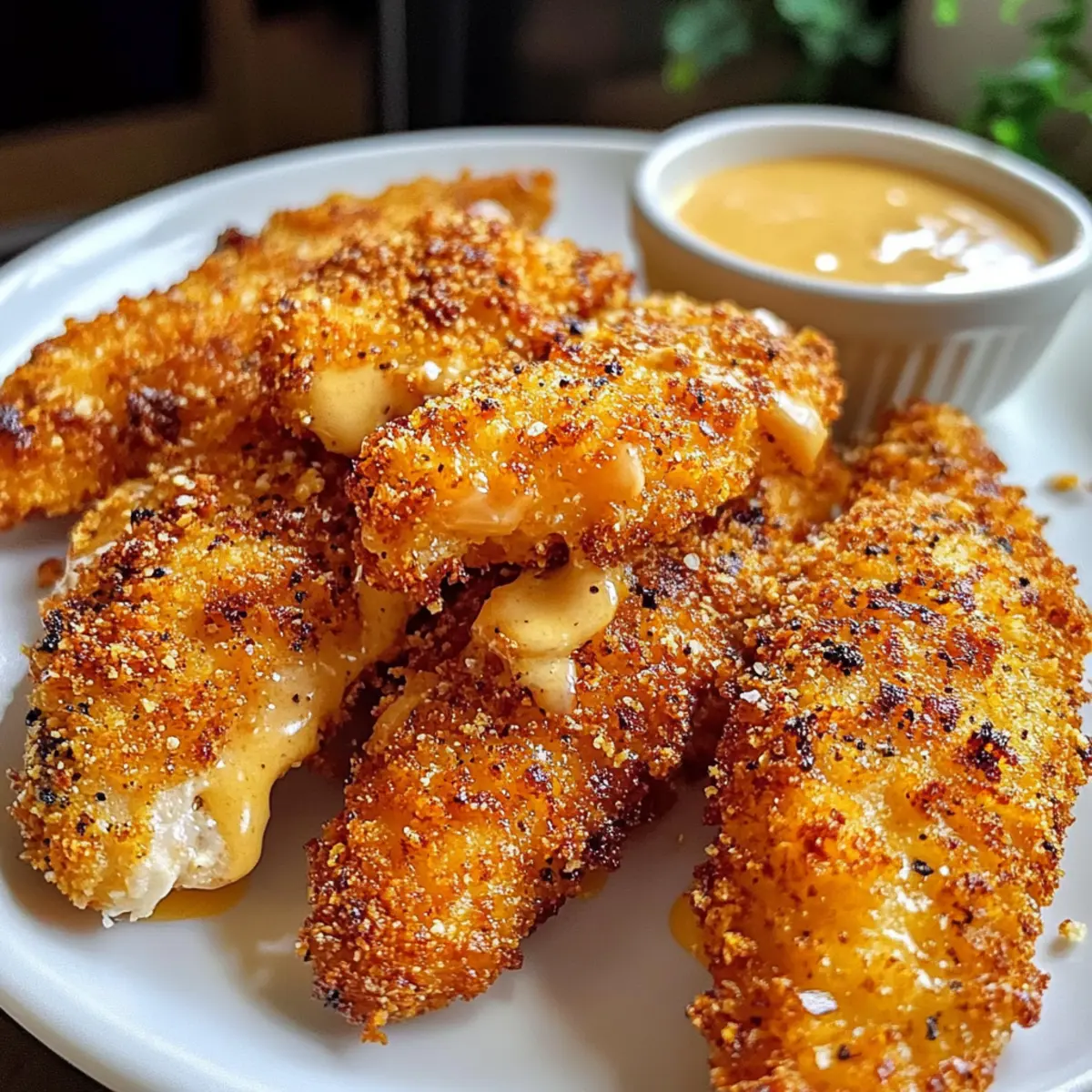 Kannst du das Knuspergeräusch hören, wenn du in einen frisch gebackenen Crack Chicken Tender beißt? Diese einfach zuzubereitenden Tenders sind eine wahre Geschmacksexplosion und perfekt für ein schnelles Abendessen oder als köstlicher Snack für deine nächste Feier. Die Kombination aus krossem Bröselteig und würzigem, geschmolzenem Käse macht sie nicht nur zu einem echten Komfortessen, sondern sie sind auch kinderfreundlich und proteinreich – ideal für die ganze Familie! Wenn du auf der Suche nach einem Gericht bist, das sowohl im Handumdrehen zubereitet werden kann als auch großen Anklang findet, dann sind diese Crack Chicken Tenders genau das Richtige für dich. Bist du bereit, deine Küche in einen Ort voller köstlicher Düfte zu verwandeln? Lass uns gleich loslegen! Warum wirst du diese Tenders lieben? Einfachheit: Das Rezept ist unkompliziert und benötigt keine besonderen Kochkünste – perfekt für Schnellkochkünstler oder Küchenneulinge. Köstlicher Geschmack: Die Kombination aus würzigem Käse und knusprigem Bröselteig sorgt für eine Geschmacksexplosion, die jeder lieben wird. Vielfältigkeit: Du kannst die Tenders nach Belieben anpassen, sei es mit verschiedenen Käsesorten oder zusätzlichen Gewürzen, um deinen persönlichen Twist zu geben. Familienfreundlich: Diese Tenders sind nicht nur kinderfreundlich, sondern auch proteinreich, was sie ideal für ein gesundes Familienessen macht. Wenn du auf der Suche nach weiteren köstlichen Rezepten bist, schau dir auch die Mittelmeer Knoblauch Garnelen und die Cremige Frisch Pasta an! Zeitsparend: In nur 30 Minuten auf dem Tisch – eine tolle Lösung für hektische Wochentage oder spontane Gäste. Crack Chicken Tenders Zutaten Für den Teig • Hähnchentender – Hauptprotein; auf die fertigen Stücke vorbereiten. • Naturjoghurt (oder Mayonnaise) – Coating-Basis; für eine vegane Option einfach mit veganer Mayonnaise ersetzen. • Ranch-Gewürzmischung – Sorgt für den ikonischen Geschmack; gute Qualität ist entscheidend für beste Ergebnisse. Für die Käsemischung • Geriebener Cheddar – Fügt cremigen Käsegeschmack hinzu; wähle hochwertige Käse für optimales Schmelzen. • Geriebener Parmesan – Verbessert die Gesamtgeschmackstiefe. Für die Panade • Zerkleinerte Ritz-Kekse (oder Panko-Brösel) – Sorgt für eine knusprige Kruste; glutenfreie Brösel sind ebenfalls möglich. • Knoblauchpulver – Verstärkt das Geschmackprofil. • Paprika – Bringt eine subtile Rauchnote ins Spiel. • Schwarzer Pfeffer – Fügt eine sanfte Schärfe hinzu. • Kochspray oder Olivenöl – Gewährleistet eine goldbraune, knusprige Oberfläche. Die Crack Chicken Tenders sind nicht nur lecker, sondern lassen sich auch einfach für deine Familie zubereiten. Hol dir alles, was du brauchst, und mach dich bereit für ein schnelles und köstliches Abendessen! Schritt-für-Schritt-Anleitungen für Kross gebackene Crack Chicken Tenders Schritt 1: Ofen vorheizen Heize den Ofen auf 180°C vor und bereite ein Backblech mit Backpapier vor oder sprühe es leicht mit Kochspray ein. Dies sorgt dafür, dass die krossen Crack Chicken Tenders nicht ankleben und gleichmäßig garen. Wenn der Ofen vorgeheizt ist, bist du bereit, mit den weiteren Vorbereitungen zu beginnen. Schritt 2: Beschichtung vorbereiten In einer Schüssel den Naturjoghurt mit der Ranch-Gewürzmischung gut vermengen, bis eine glatte Masse entsteht. In einer anderen Schüssel Cheddar, Parmesan, zerkleinerte Ritz-Kekse, Knoblauchpulver, Paprika und schwarzen Pfeffer kombinieren. Diese Mischung sorgt für den würzigen und knusprigen Belag auf den Chicken Tenders und ist der Schlüssel zu ihrem köstlichen Geschmack. Schritt 3: Hähnchentender beschichten Nimm jeden Hähnchentender und tauche ihn gründlich in die Joghurtmischung, sodass er gleichmäßig bedeckt ist. Anschließend den beschichteten Tender in die Käse-Keksmischung drücken, bis er gut umhüllt ist. Achte darauf, dass du die Tenders richtig bedeckst, damit sie beim Backen schön knusprig werden. Schritt 4: Backen Lege die beschichteten Crack Chicken Tenders auf das vorbereitete Backblech und sprühe sie leicht mit Kochspray ein. Dadurch wird die Oberfläche zusätzlich goldbraun und knusprig. Backe die Tenders für 25-30 Minuten im vorgeheizten Ofen, bis sie eine Innentemperatur von 74°C erreichen. Wende sie nach der Hälfte der Backzeit, um eine gleichmäßige Bräunung zu gewährleisten. Schritt 5: Servieren Nehme die kross gebackenen Crack Chicken Tenders aus dem Ofen und lasse sie kurz abkühlen. Diese köstlichen Tenders servierst du am besten heiß mit deinem Lieblingsdip, wie Honigsenf oder BBQ-Sauce. So wird jedes Bissen zum Genuss und sie sind perfekt für ein schnelles Abendessen oder als Snack für deine nächste Feier. Was passt zu Kross gebackenen Crack Chicken Tenders? Genieße eine harmonische Kombination aus Aromen und Texturen für ein rundum gelungenes Essen. Frischer Salat: Ein knackiger grüner Salat bringt Frische und Leichtigkeit, perfekt um die herzhaften Tenders auszugleichen. Süßkartoffel-Pommes: Diese leckeren Beilagen bieten eine süße Note und eine zusätzliche Knusprigkeit, die ideal zu den herzhaften Tenders passt. Die Kombination aus süß und salzig macht den Genuss perfekt. Cremige Ranch-Dip: Der gleiche Geschmack wie in der Panade, sorgt für eine köstliche Verbindung und bietet zusätzlichen Genuss beim Eintauchen. Gemischtes Gemüse: Gedämpftes oder geröstetes Gemüse bringt Vitalstoffe und einen Farbklecks auf den Teller, wodurch das Gericht nicht nur sättigend, sondern auch attraktiv aussieht. Iced Tea: Ein erfrischendes Getränk wie Eistee rundet das Mahl ab und hilft, die Aromen zu harmonisieren. Schokoladenmousse: Süß und leicht, dieses Dessert ist der perfekte Abschluss nach den herzhaften Crack Chicken Tenders. Es sorgt für ein rundes Geschmackserlebnis. Expertentipps für Crack Chicken Tenders • Frischer Käse: Verwende frischen Käse 