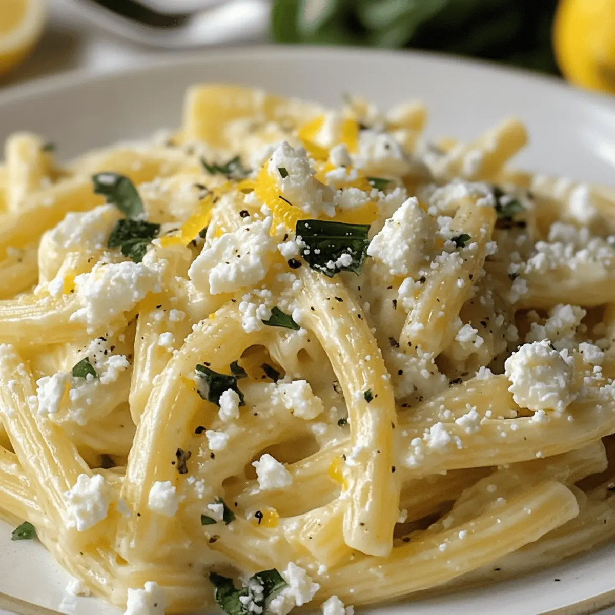 Mit jeder geschmeidigen Gabel dieser Cremigen Frisch-Zesty Zitronen-Feta-Pasta kommt ein Hauch von Sonne und Lebensfreude auf den Teller. In nur 25 Minuten zaubern wir ein vegetarisches Gericht, das nicht nur schnell zubereitet, sondern auch ein echter Seelenwärmer ist. Der überraschende Mix aus cremigem Feta und frischer Zitrone verwandelt jeden Bissen in einen kleinen Genussmoment. Egal, ob du an einem hektischen Wochentag eine köstliche Mahlzeit brauchst oder einfach nur etwas Neues ausprobieren möchtest – dieses Rezept ist perfekt für Liebhaber hausgemachter Küche. Neugierig, wie du diese einfache, aber raffinierte Pasta noch verfeinern kannst? Lass uns gleich eintauchen! Warum wirst du dieses Rezept lieben? Einfachheit: Das Rezept ist unkompliziert und erfordert nur grundlegende Kochkünste, sodass jeder Kochanfänger mit Leichtigkeit mitmachen kann. Frischer Geschmack: Die Kombination aus würzigem Feta und spritziger Zitrone sorgt für ein Geschmackserlebnis, das sowohl erfrischend als auch herzhaft ist. Schnelle Zubereitung: In nur 25 Minuten hast du ein köstliches, vegetarisches Gericht, das perfekt für hektische Abende ist. Perfekt für alle, die schnelle Rezepte lieben! Vielseitig: Dieses Gericht lässt sich leicht anpassen – füge frisches Gemüse wie Spinat hinzu oder wechsle zu einer glutenfreien Pasta, um es deinem Geschmack anzupassen. Beliebtheit: Die Cremige Frisch-Zesty Zitronen-Feta-Pasta ist ein wahrer Publikumsliebling, der bei Freunden und Familie für bewundernde Blicke sorgt! Cremige Frisch-Zesty Zitronen-Feta-Pasta Zutaten • Für alle, die selbstgemachte Küche lieben und eine schnelle, köstliche Mahlzeit zaubern möchten! Für die Pasta Pasta – wähle deine Lieblingssorte, um eine perfekte Basis für dieses cremige Gericht zu schaffen. Für die Sauce Olivenöl – sorgt für eine reiche Grundlage und hilft, den Knoblauch aromatisch anzubraten. Knoblauch – fügt einen herrlichen Duft hinzu; kurz anbraten, bis er duftet (ca. 1 Minute). Schlagsahne – verwandelt die Sauce in einen cremigen Genuss; kann durch halb-halb ersetzt werden, wenn du es leichter magst. Zitronensaft – bringt frische Säure in die Sauce; frischen Saft für den besten Geschmack verwenden. Zitronenabrieb – intensiviert den Zitronengeschmack, ohne zusätzliche Säure; mit einer Reibe für feinen Abrieb verwenden. Feta-Käse – für eine cremige und würzige Note; vor dem Hinzufügen in die Sauce zerbröseln. Salz & Pfeffer – unverzichtbare Gewürze; nach Geschmack anpassen. Für das Garnieren Frisches Basilikum oder Petersilie – optional für ein Stückchen Frische und Farbe. Die Cremige Frisch-Zesty Zitronen-Feta-Pasta wird so zu einem absoluten Hit auf deinem Tisch! Step-by-Step Instructions für Cremige Frisch-Zesty Zitronen-Feta-Pasta – Vegetarisch & Trostreich Step 1: Pasta vorbereiten Setze einen großen Topf mit Wasser zum Kochen und salze es großzügig. Koche die Pasta gemäß der Verpackungsanleitung al dente, was normalerweise etwa 8-10 Minuten dauert. Achte darauf, etwas Nudelwasser aufzuheben, bevor du die Pasta abgießt, um später die Sauce nach Belieben zu verdünnen. Step 2: Sauce zubereiten Erhitze in einer großen Pfanne bei mittlerer Hitze einen Esslöffel Olivenöl. Füge den fein gehackten Knoblauch hinzu und brate ihn etwa 1 Minute lang an, bis er duftet, aber nicht anbrennt. Dieser Schritt sorgt für das aromatische Fundament der Cremigen Frisch-Zesty Zitronen-Feta-Pasta. Step 3: Zutaten kombinieren Gieße die Schlagsahne in die Pfanne und rühre sie gut unter. Füge den frisch gepressten Zitronensaft, den Zitronenabrieb und die Hälfte des zerbröselten Feta hinzu. Lasse die Sauce bei mittlerer Hitze 3-4 Minuten köcheln, bis sie leicht eindickt. Bei Bedarf kannst du etwas von dem reservierten Nudelwasser hinzufügen, um die perfekte Konsistenz zu erzielen. Step 4: Pasta und Sauce vermengen Gib die gekochte Pasta in die Pfanne zu der cremigen Sauce und mische alles gut durch, sodass die Pasta gleichmäßig bedeckt wird. Füge den restlichen Feta hinzu und rühre vorsichtig um, um die cremige Textur der Sauce nicht zu zerstören. Schmecke mit Salz und Pfeffer ab, um die verschiedenen Aromen zu harmonisieren. Step 5: Anrichten Serviere die Cremige Frisch-Zesty Zitronen-Feta-Pasta sofort auf Tellern. Garniere jedes Gericht nach Belieben mit frischem Basilikum oder Petersilie für einen schönen Farbtupfer und zusätzlichen Geschmack. Genießen Sie das Gericht, solange es warm ist, und erfreue dich an der einfachen, aber geschmackvollen Zubereitung! Perfekte Vorbereitungen für deine Cremige Frisch-Zesty Zitronen-Feta-Pasta Diese Cremige Frisch-Zesty Zitronen-Feta-Pasta lässt sich hervorragend im Voraus zubereiten, was dir an hektischen Tagen viel Zeit spart! Du kannst die Pasta bis 24 Stunden vorher kochen und in einem luftdichten Behälter im Kühlschrank aufbewahren. Die Sauce aus Schlagsahne, Zitronensaft, Zitronenabrieb und zerbröseltem Feta kannst du ebenfalls bis zu 3 Tage im Voraus zubereiten und in einem separaten Behälter im Kühlschrank lagern. Achte darauf, die Sauce gut abzudecken, um ihre Cremigkeit und Frische zu bewahren. Wenn du bereit bist, die Pasta zu servieren, erhitze die Sauce sanft und füge bei Bedarf einen Spritzer Nudelwasser hinzu, um die Konsistenz zu verbessern. So bist du nur noch wenige Minuten davon entfernt, eine köstliche, frische Mahlzeit zu genießen! Cremige Frisch-Zesty Zitronen-Feta-Pasta Anpassungen Entfalte deine kreative Küche, indem du diese einfache, aber leckere Pasta ganz nach deinem Geschmack anpasst und variierst! Vollkorn-Pasta: Ersetze herkömmliche Pasta durch Vollkornversion für mehr Ballaststoffe und einen nussigen Geschmack. Glutenfreie Pasta: Nutze glutenfreie Pasta, um das Gericht für alle diätetischen Bedürfnisse geeignet zu machen. Schmeckt ebenso köstlich! Gemüse-Einlage: Füge frischen Spinat oder Kirschtomaten hinzu, um das Gericht nahrhafter und bunter zu gestalten. Die 