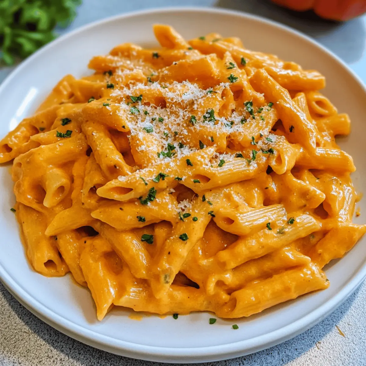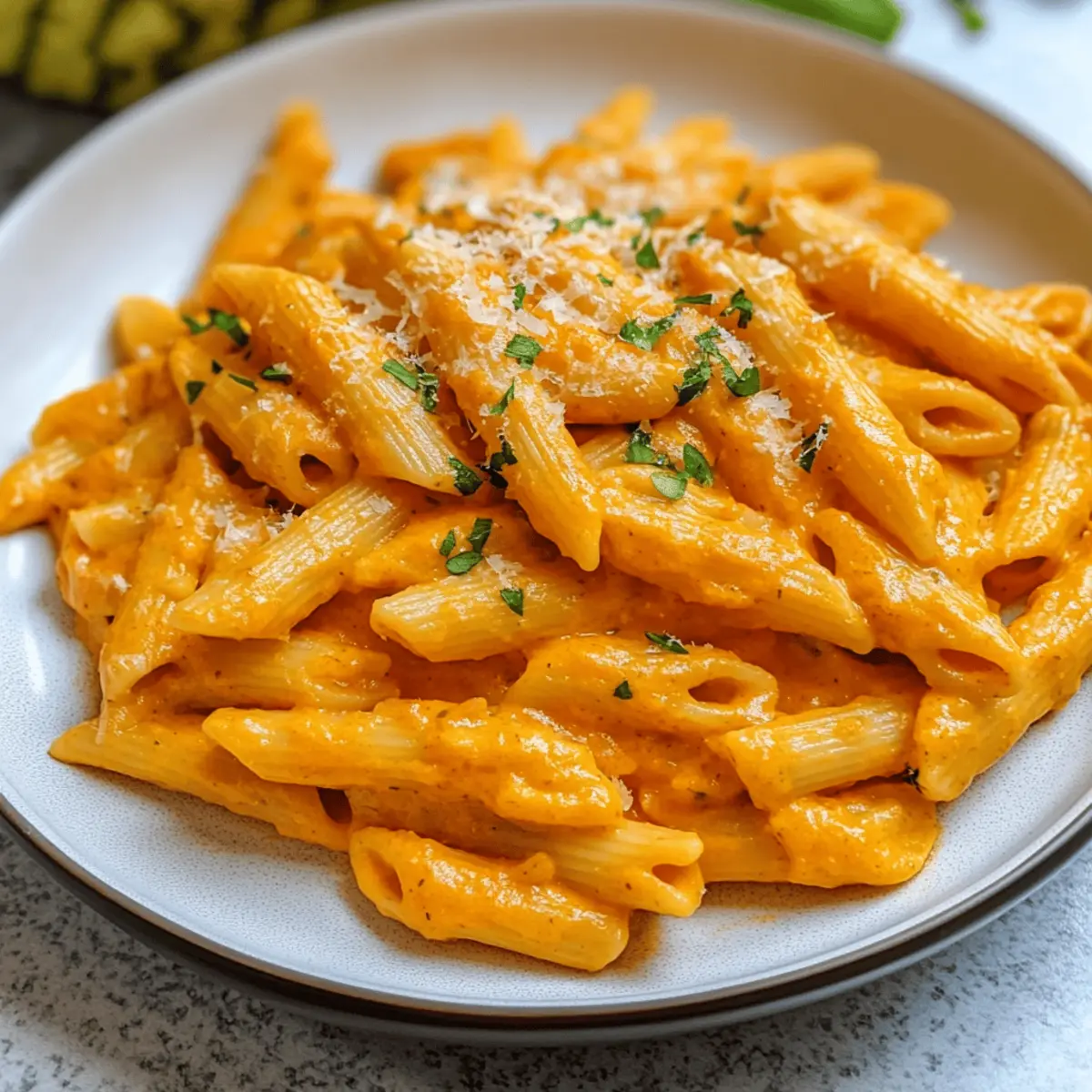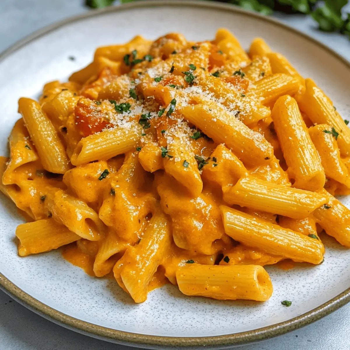In meiner Küche gibt es Tage, an denen ich einfach nicht widerstehen kann, einen tiefen Teller cremiger Kürbispasta schnell zuzubereiten. Diese Cremige Kürbispasta leicht gemacht – ein wahres Familienliebling – bringt den leichten, süßen Geschmack des Hokkaido-Kürbisses mit einer sanften Tomatennote zusammen, die einfach begeistert. Und das Beste? Die Zubereitung dauert nur 40 Minuten! Dieses Rezept ist nicht nur perfekt, um eine gesunde und leckere Mahlzeit für die Familie zu zaubern, sondern es hat auch das Potenzial, selbst die härtesten Fast-Food-Liebhaber zu überzeugen. Wer könnte schon einem cremigen, velvety-smooth Gericht widerstehen, das wohltuende Gemütlichkeit verspricht? Lass uns gemeinsam in die Welt dieser köstlichen Pasta eintauchen und herausfinden, wie wir sie entweder mit oder ohne Tomaten zaubern können! Warum ist diese Kürbispasta so besonders? Cremiger Genuss: Diese cremige Kürbispasta ist der Inbegriff von Komfortessen! Die Kombination aus Hokkaido-Kürbis und Frischkäse sorgt für eine himmlische Textur, die jedem Gericht eine neue Dimension verleiht. Gesunde Zeitersparnis: In nur 40 Minuten hast du eine köstliche Mahlzeit auf dem Tisch, perfekt für hektische Wochentage oder entspannte Familienabende. Vielseitige Optionen: Du kannst die Tomaten ganz einfach weglassen und stattdessen mehr Brühe und Sahne verwenden, um eine wunderbar reichhaltige Variante zu kreieren. Familienfreundlich: Dieses Gericht ist so schmackhaft, dass selbst die kleinen Feinschmecker nach mehr verlangen werden – ein wahrer Hit für die ganze Familie! Mühelos zu machen: Mit nur wenigen Zutaten und einfachen Schritten gelingt dir dieses Gericht im Handumdrehen. Es ist die perfekte Lösung für alle, die Freude am Kochen erleben möchten, ohne sich in komplizierten Rezepten zu verlieren. Ein Hauch von Herbst: Die Aromen dieser Pasta bringen die herbstlichen Geschmäcker direkt in dein Zuhause und schaffen eine wohlige Atmosphäre, die jeden Bissen zu einem Erlebnis macht. Cremige Kürbispasta leicht gemacht • Entdecke die einfachen Zutaten für ein herzhaftes Gericht, das schnell und lecker ist! Für die Pasta Nudeln (Pasta) – Das Herzstück des Gerichts, wähle deine Lieblingsnudelsorte. Hokkaido Kürbis (Hokkaido Pumpkin) – Gibt der Pasta eine cremige, leicht süße Note; Butternut-Kürbis ist ein guter Ersatz. Für die Sauce Zwiebel (Onion) – Sorgt für eine aromatische Basis; benutze gelbe oder weiße Zwiebeln. Knoblauchzehe (Garlic) – Vertieft den Geschmack; frische Knoblauchzehen sind empfehlenswert. Gehackte Tomaten (Canned Diced Tomatoes) – Fügen Süße und Säure hinzu; für eine cremige Variante weglassen. Brühe (Broth) – Reguliert die Konsistenz der Sauce; Gemüse- oder Hühnerbrühe passt prima. Frischkäse (Cream Cheese) – Verleiht einen besonders cremigen Geschmack; kann durch Schlagsahne ersetzt werden. Zum Würzen Rapsöl (Rapeseed Oil) & Butter – Zum Anbraten der Zwiebeln; Olivenöl ist ebenfalls eine gute Wahl. Salz und Pfeffer (Salt and Pepper) – Für die richtige Würze; nach Geschmack anpassen. Kräuter (Herbs) – Optional, aber empfehlenswert; Thymian oder Oregano bringen zusätzlichen Geschmack. Für das Topping Parmesan oder geriebener Käse (Parmesan or grated cheese) – Für eine köstliche Garnitur, gibt dem Gericht den letzten Schliff; ein Muss für Käseliebhaber! Mit diesen Zutaten wird deine Cremige Kürbispasta leicht gemacht, ein wunderbares Essen für die ganze Familie! Schritt-für-Schritt-Anleitung für Cremige Kürbispasta leicht gemacht Step 1: Zutaten vorbereiten Den Hokkaido-Kürbis gründlich waschen, halbieren und die Kerne entfernen. Schneide das Fruchtfleisch in etwa 1 cm große Würfel. Währenddessen die Zwiebel schälen und fein hacken, sowie die Knoblauchzehe schälen und sehr fein würfeln. Step 2: Basis anbraten In einer großen Pfanne etwas Rapsöl und einen Esslöffel Butter bei mittlerer Hitze erhitzen. Füge die gehackte Zwiebel hinzu und brate sie etwa 3-4 Minuten, bis sie weich und leicht goldbraun ist. Prinzipiell soll sie glasig werden, um die Aromen perfekt freizusetzen. Step 3: Kürbis hinzufügen Gib die Kürbiswürfel in die Pfanne zu den Zwiebeln und brate alles zusammen bei niedriger Hitze weitere 5 Minuten an. Rühre gelegentlich um, damit der Kürbis gleichmäßig warm wird und seine natürliche Süße entfaltet. Step 4: Knoblauch hinzufügen Jetzt wird der feingehackte Knoblauch hinzugefügt. Brate ihn für etwa 1-2 Minuten mit an, bis er duftet und goldgelb wird. Achte darauf, dass der Knoblauch nicht anbrennt, da er sonst bitter schmeckt. Step 5: Sauce zubereiten Füge die gehackten Tomaten und die Brühe in die Pfanne hinzu. Schmecke die Mischung mit Salz, Pfeffer und optionalen Kräutern nach deinem Geschmack ab. Decke die Pfanne ab und lasse die Sauce 10-15 Minuten auf niedriger Hitze köcheln, bis der Kürbis schön weich ist. Step 6: Pasta kochen In einem großen Topf gesalzenes Wasser zum Kochen bringen. Koche die Pasta nach den Anweisungen auf der Verpackung al dente. Wenn die Pasta fast fertig ist, hebe etwas Nudelwasser auf, bevor du sie abgießt, um die Konsistenz der Sauce später zu optimieren. Step 7: Sauce pürieren Verwende einen Pürierstab oder einen Mixer, um die Kürbis-Tomaten-Sauce bis zur gewünschten Cremigkeit zu pürieren. Rühre anschließend den Frischkäse unter die Sauce und passe die Gewürze nach Belieben an. Die Sauce sollte nun eine samtige Konsistenz haben. Step 8: Alles kombinieren Die gekochte Pasta in die Pfanne mit der pürierten Sauce geben und gut vermischen. Wenn die Sauce zu dick ist, füge nach Bedarf etwas von dem reservierten Nudelwasser hinzu, um die perfekte cremige Konsistenz für deine Cremige Kürbispasta leicht gemacht zu erreichen. Cremige Kürbispasta leicht gemacht Variationen Lass deiner Kreativität freien Lauf und passe dieses köstliche Rezept nach deinem Geschmack an! Veggie-Option: Ersetze die Nudeln durch Zucchini-Nud