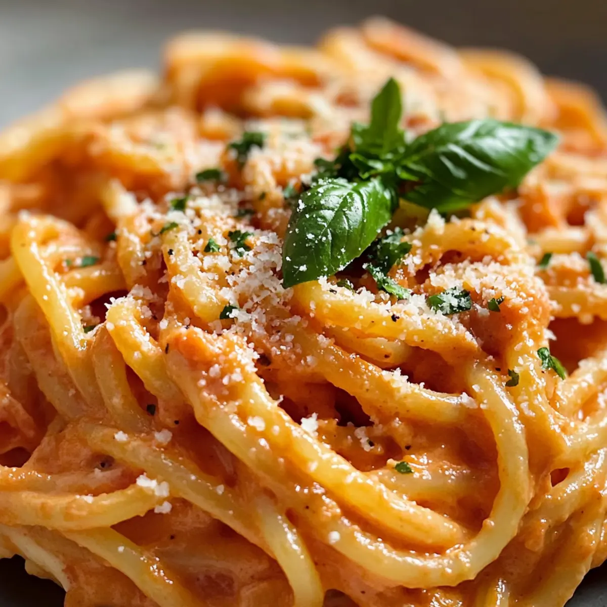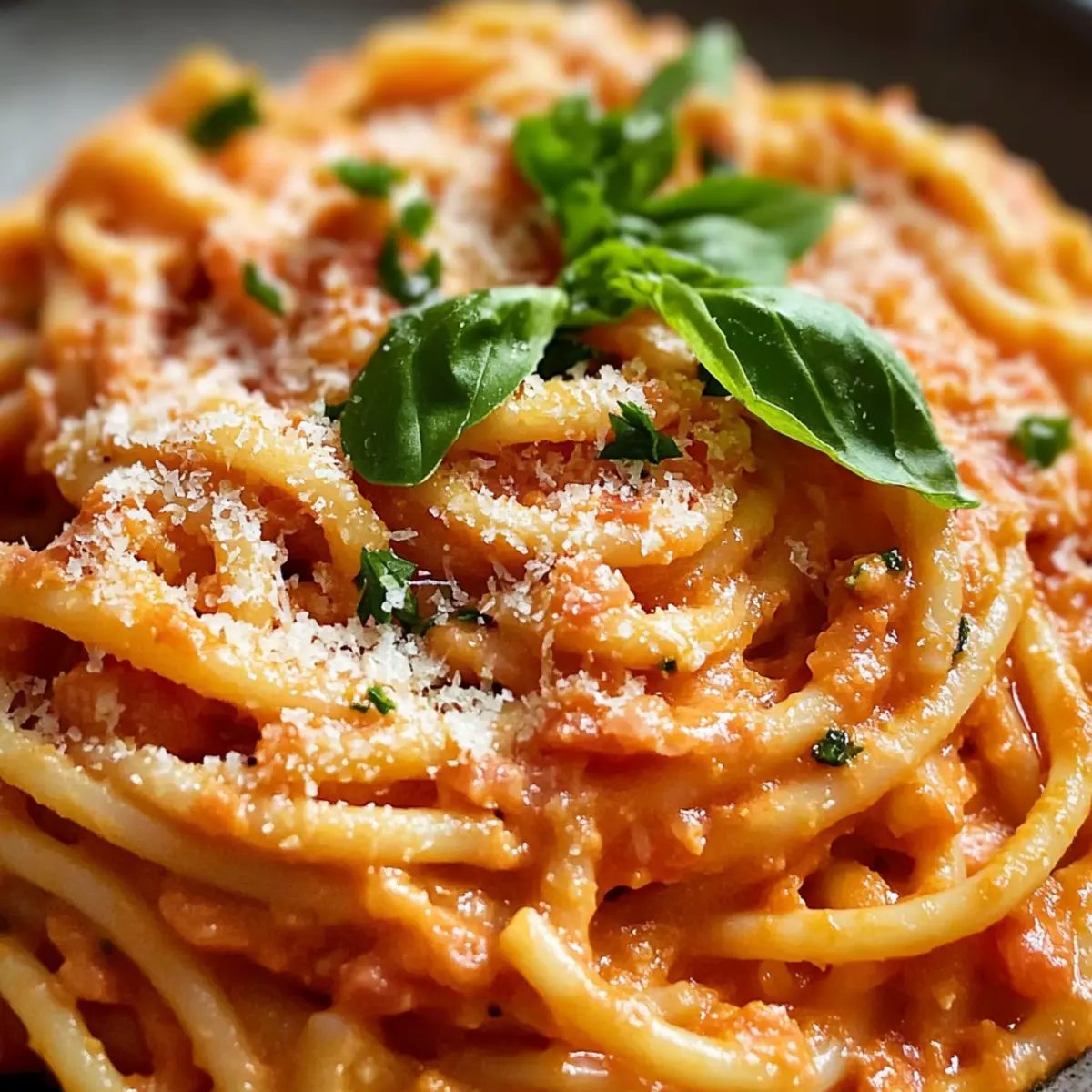 Es war einmal ein Alltag, der an einem ruhigen Abend in der Küche neu erblühten. Heute zaubern wir eine cremige Tomatensauce Pasta, die nicht nur in 20 Minuten auf dem Tisch steht, sondern auch das Herz erwärmt. Dieses Rezept ist nicht nur ein schneller Genuss für die Woche, sondern lässt sich auch nach Lust und Laune anpassen – von saftigen Hähnchenstücken bis hin zu buntem Gemüse wie Spinat oder Paprika. Egal, ob du nach einer komfortablen Umarmung in Form von Essen oder einer Möglichkeit suchst, deine Vorräte kreativ zu nutzen, diese Pasta wird dich begeistern. Was könnte schöner sein, als ein schnelles und köstliches Dinner, das dich und deine Lieben zusammen an den Tisch ruft? Lass uns gemeinsam diese Freude entdecken! Warum wirst du diese Pasta lieben? Schnelligkeit and Einfachheit: In nur 20 Minuten kannst du ein köstliches Gericht zaubern, das perfekt für hektische Wochentage ist. Vielseitigkeit: Du kannst die cremige Tomatensauce nach Belieben mit Hähnchen, Garnelen oder buntem Gemüse anpassen. Reichhaltiger Geschmack: Dank frischer Zutaten wie Knoblauch und Parmesan schmeckt jede Portion hausgemacht und herzhaft. Perfekte Konsistenz: Die Sauce ist samtig und umhüllt die Pasta ideal, sodass jeder Bissen Freude bereitet. Geselligkeit: Dieses Gericht bringt Freunde und Familie an den Tisch und sorgt garantiert für zufriedene Gesichter! Wenn du mehr Ideen brauchst, schau dir die Variation Ideen an! Cremige Tomatensauce Pasta Zutaten • Für die Pasta Spaghetti (300g) – Die Basis des Gerichts, die Struktur und Herzlichkeit bietet; auch glutenfreie Pasta ist möglich. • Für die Sauce Ungesalzene Butter (2 Esslöffel) – Fügt der Sauce Reichhaltigkeit hinzu; für eine milchfreie Version kannst du Olivenöl verwenden. Knoblauch (3 Zehen, gehackt) – Bringt aromatischen Geschmack; frischer Knoblauch ist ideal für den besten Geschmack. Zwiebel (0,5, fein gehackt) – Verleiht der Sauce Süße und Tiefe; Schalotten sind eine mildere Alternative. Tomatenpassata (1 Tasse) – Die Hauptbasis der Sauce; alternativ kannst du auch zerdrückte Tomaten oder Tomatensauce verwenden. Schlagsahne (0,75 Tasse) – Schafft die cremige Textur; für eine leichtere Variante kannst du Halb-und-Halb oder Vollmilch benutzen. Fettarme Milch (0,5 Tasse) – Verdünnt die Sauce und fügt Cremigkeit hinzu; du kannst auch zusätzliche Schlagsahne für mehr Reichhaltigkeit nehmen. Parmesan (0,75 Tasse, fein gerieben) – Sorgt für Umami und dickt die Sauce an; für eine vegane Option kannst du Nährhefe verwenden. Getrockneter Basilikum (1 Teelöffel) – Verbessert das Geschmacksprofil; frischer Basilikum oder andere Kräuter bringen Frische. Hühner- oder Gemüsebrühenpulver (1 Teelöffel) – Fügt der Sauce Tiefenwürze hinzu; selbstgemachte Brühe ist ideal. Salz und Pfeffer – Essentiell zum Würzen, nach Geschmack anpassen. Diese Kombination der Zutaten sorgt dafür, dass deine cremige Tomatensauce Pasta zu einem unvergesslichen Erlebnis wird, das du immer wieder genießen möchtest! Schritt-für-Schritt-Anleitung für Cremige Tomatensauce Pasta Step 1: Pasta kochen Bringe einen großen Topf mit gesalzenem Wasser zum Kochen. Füge die Spaghetti hinzu und koche sie 2 Minuten weniger als auf der Verpackung angegeben, um sie „al dente“ zu servieren. Halte eine Tasse des Kochwassers zurück, bevor du die Pasta abgießt, um die Sauce später anzupassen. Step 2: Butter und Gemüse anbraten Erhitze in einer großen Pfanne bei mittlerer Hitze die ungesalzene Butter. Füge den gehackten Knoblauch und die fein gehackte Zwiebel hinzu und brate sie ca. 2 Minuten lang an, bis sie durchsichtig sind und aromatisch duften. Achte darauf, den Knoblauch nicht zu verbrennen, da er bitter werden kann. Step 3: Sauce zubereiten Rühre die Tomatenpassata in die Pfanne und lasse sie einige Minuten köcheln. Gib die Schlagsahne, die fettarme Milch, den geriebenen Parmesan, den getrockneten Basilikum und das Brühenpulver dazu. Lass alles 2 Minuten köcheln, bis die Zutaten gut vermischt sind und der Käse schmilzt. Würze die Sauce nach Belieben mit Salz und Pfeffer. Step 4: Pasta hinzufügen Gib die abgetropften Spaghetti zur Sauce in die Pfanne. Vermenge alles sorgfältig für 1-2 Minuten, bis die Pasta gut mit der cremigen Tomatensauce überzogen ist. Nutze das zurückgehaltene Kochwasser, um die Konsistenz der Sauce nach Wunsch anzupassen, sodass sie samtig und geschmeidig bleibt. Step 5: Anrichten und servieren Serviere die cremige Tomatensauce Pasta sofort, garniert mit zusätzlichem Parmesan und frischen Kräutern wie Petersilie. Achte darauf, dass jede Portion die reichhaltige Sauce umhüllt und herzlich aussieht. Genieße die Verbindung von Komfort und Genuss in jedem Bissen! Lagerungstipps für cremige Tomatensauce Pasta Kühlschrank: Bewahre die cremige Tomatensauce in einem luftdichten Behälter im Kühlschrank auf, wo sie bis zu drei Tage frisch bleibt. Gefrierfach: Die Sauce kann bis zu drei Monate im Gefrierfach aufbewahrt werden. Achte darauf, sie in einem gefriergeeigneten Behälter einzufrieren, um Gefrierbrand zu vermeiden. Resteverwertung: Wenn du die Pasta und Sauce vermischt hast, ist es am besten, sie innerhalb von drei Tagen zu genießen, um die Textur zu bewahren. Erhitzen: Erwärme die Sauce langsam auf dem Herd oder in der Mikrowelle, füge gegebenenfalls einen Schuss Wasser hinzu, um die Konsistenz wiederherzustellen. Tipps für die beste cremige Tomatensauce Pasta Pasta al dente: Koche die Pasta immer nur bis sie “al dente” ist, so bleibt sie bissfest und gut umhüllt von der Sauce. Verwende frischen Knoblauch: Frischer Knoblauch bringt mehr Aroma als die vorgehackte Variante. Achte darauf, ihn nicht zu verbrennen, um Bitterkeit zu vermeiden. Kochwasser retten: Halte etwas vom Kochwasser zurück, um die Konsistenz der Sauce zu justieren. Es hilft, die cremige Tomatensauce Pasta geschmeidig zu machen. Frisch geriebener Parmesan: Verwende frisch geriebenen Parmesan