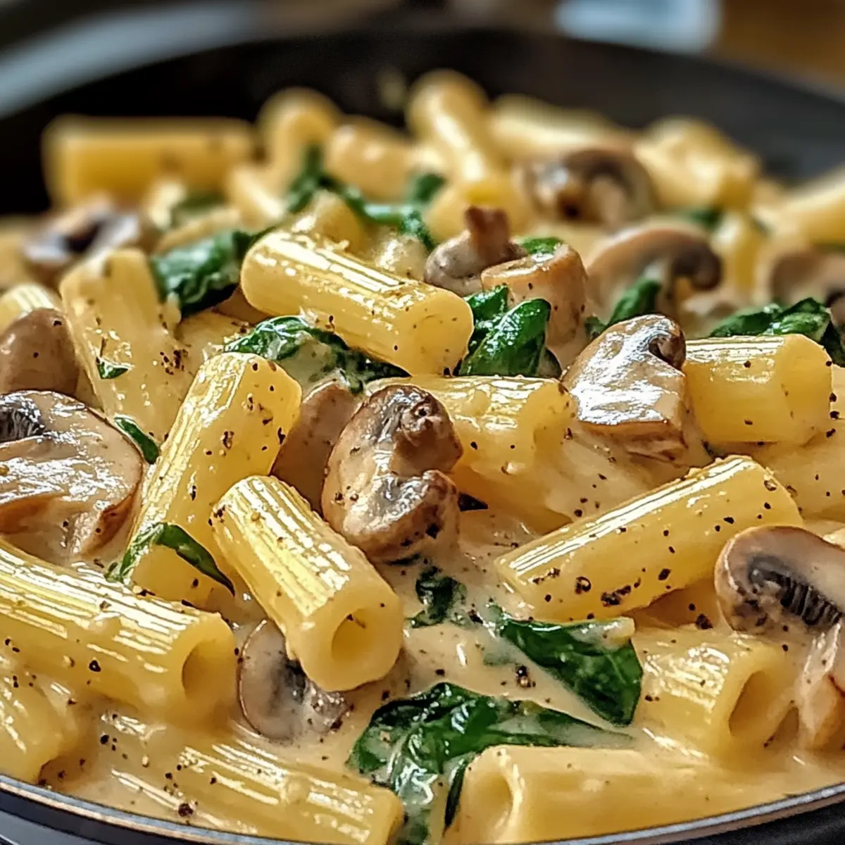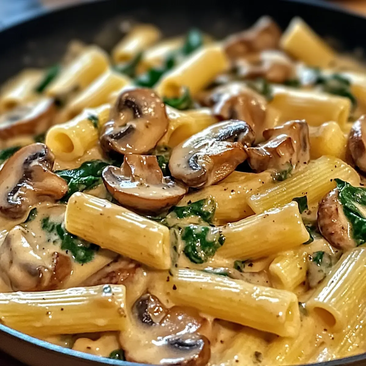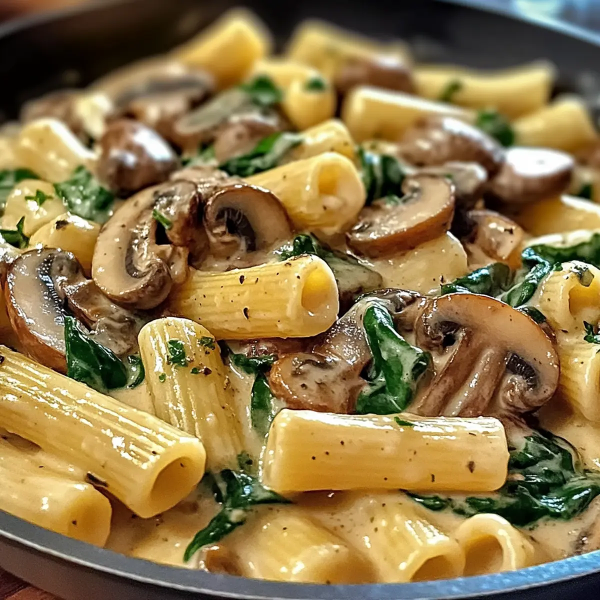 Während ich in der Küche stand und die köstlichen Aromen von frischen Champignons und Knoblauch wahrnahm, war ich überrascht, wie einfach ein genussvolles Gericht wie die cremige toskanische Pilz-Pasta-Pfanne zubereitet werden kann. In nur 30 Minuten verwandele ich alltägliche Zutaten in eine außergewöhnliche Mahlzeit, die jede Menge Geschmack und Textur bietet. Diese vegetarische Delikatesse ist nicht nur ein wahrer Gaumenschmaus, sondern lässt sich auch problemlos glutenfrei oder milchfrei zubereiten. Die Kombination aus seidiger Sahnesauce und zarten Pilzen, ergänzt durch leuchtend grünen Spinat, verwandelt mein Abendessen in ein kleines Fest. Bereit für das Geheimnis, wie Sie an einem hektischen Wochentag einfach ein Gourmetgericht auf den Tisch zaubern können? Bleiben Sie dran! Warum werden Sie dieses Rezept lieben? Einfachheit: Die Zubereitung der cremigen toskanischen Pilz-Pasta-Pfanne erfordert nur grundlegende Kochfähigkeiten und ist somit für jeden geeignet. Vielseitigkeit: Diese Rezeptur lässt sich ganz einfach an Ihre Bedürfnisse anpassen – ob glutenfrei oder milchfrei, das Ergebnis bleibt köstlich! Reiche Aromen: Die Kombination aus frischen Champignons, knusprigem Knoblauch und lebhaftem Spinat sorgt für ein geschmackliches Erlebnis, das Sie lieben werden. Schnell zubereitet: In nur 30 Minuten genießen Sie ein wahres Gourmetgericht, perfekt für hektische Wochentage. Köstliche Textur: Die cremige Sauce umhüllt die al dente Pasta und bietet ein harmonisches Zusammenspiel aus weich und bissfest. Publikumsliebling: Diese Mahlzeit wird sicherlich die Herzen und Magen Ihrer Familie und Freunde erobern – als Vorspeise oder Hauptgericht! Cremige toskanische Pilz-Pasta-Pfanne Zutaten Für die Pasta • Pasta – Verwenden Sie jede Art, wie Spaghetti oder Penne, um die Basis des Gerichts zu bilden. Für die Sauce • Champignons – Frische Sorten wie Cremini oder Shiitake fügen erdige Aromen und Textur hinzu; für einen milderen Geschmack können Sie Champignons verwenden. • Olivenöl – Ideal zum Sautieren der Pilze; kann durch Butter ersetzt werden. • Knoblauch – Frisch gehackt verleiht dem Gericht eine verführerische Aroma-Note. • Frischer Spinat – Bringt Nährstoffe und Farbe; kann durch Grünkohl ersetzt werden. • Schlagsahne – Sorgt für eine reichhaltige Sauce; verwenden Sie Kokosmilch als leichtere Alternative. • Parmesan – Gibt der Sauce Tiefe und Salz; können Sie durch Hefeflocken als vegane Option ersetzen. • Salz und Pfeffer – Für die persönliche Geschmacksanpassung. Diese cremige toskanische Pilz-Pasta-Pfanne wird nicht nur Ihre Geschmacksknospen begeistern, sondern ist auch eine wunderbare Möglichkeit, sich schnell etwas Leckeres zu zaubern! Schritt-für-Schritt-Anleitungen für die Cremige toskanische Pilz-Pasta-Pfanne Step 1: Pasta kochen Bringen Sie einen großen Topf mit gesalzenem Wasser zum Kochen. Fügen Sie die Pasta Ihrer Wahl hinzu und kochen Sie sie 8-10 Minuten lang, bis sie al dente ist. Achten Sie darauf, die Pasta während des Kochens gelegentlich umzurühren, um ein Verkleben zu verhindern. Nachdem die Pasta gekocht ist, lassen Sie sie in einem Sieb abtropfen und stellen Sie sie beiseite. Step 2: Pilze sautieren Erhitzen Sie in einer großen Pfanne bei mittlerer Hitze 2 Esslöffel Olivenöl. Geben Sie die in Scheiben geschnittenen Champignons hinzu und sautieren Sie sie 5-7 Minuten lang, bis sie goldbraun und zart sind. Rühren Sie die Pilze gelegentlich um, damit sie gleichmäßig bräunen. Ihr köstlicher, erdiger Duft wird sich bald in der Küche verbreiten. Step 3: Knoblauch hinzufügen Fügen Sie 2-3 Minuten nach den Pilzen den frisch gehackten Knoblauch in die Pfanne hinzu. Braten Sie ihn für etwa 1 Minute an, bis er aromatisch ist, aber nicht braun wird. Achten Sie auf die Hitze, um ein Anbrennen des Knoblauchs zu vermeiden, da dies den Geschmack der gesamten cremigen toskanischen Pilz-Pasta-Pfanne beeinträchtigen kann. Step 4: Spinat einrühren Geben Sie nun eine große Handvoll frischen Spinat in die Pfanne und rühren Sie, bis der Spinat in nur 2-3 Minuten zusammenfällt. Die leuchtend grüne Farbe sollte intensiv sein und die Textur zart und weich erscheinen. Dies wird nicht nur Nährstoffe hinzufügen, sondern auch Ihre Pasta zu einem bunten Gericht machen. Step 5: Sahnesauce zubereiten Gießen Sie nun 200 ml Schlagsahne in die Pfanne und bringen Sie die Mischung zum Simmern. Rühren Sie gut um, um die Sahne gleichmäßig verteilt, und fügen Sie nach Belieben 50 g frisch geriebenen Parmesan hinzu. Lassen Sie die Sauce 3-5 Minuten köcheln, bis sie leicht eindickt und cremig wird. Diese reichhaltige Sauce umhüllt die anderen Zutaten perfekt. Step 6: Pasta hinzufügen und vermengen Fügen Sie die abgetropfte Pasta in die Pfanne zur cremigen Mischung hinzu. Tossieren Sie alles gut für 1-2 Minuten, damit die Pasta gleichmäßig mit der Sauce überzogen ist. Achten Sie darauf, dass die Pasta vollständig mit der Sauce kombiniert ist, damit jedes Bisschen voller Geschmack ist. Step 7: Abschmecken und servieren Schmecken Sie die Cremige toskanische Pilz-Pasta-Pfanne mit Salz und frisch gemahlenem Pfeffer ab. Servieren Sie das Gericht warm und garnieren Sie es nach Belieben mit zusätzlichem Parmesan oder frischem Basilikum. Genießen Sie das köstliche, aromatische Ergebnis Ihrer Arbeit und freuen Sie sich auf die zufriedenen Gesichter Ihrer Liebsten! Expertentipps für die cremige toskanische Pilz-Pasta-Pfanne Perfekte Pasta: Achten Sie darauf, die Pasta al dente zu kochen, damit sie die Sauce perfekt aufnimmt und nicht matschig wird. Knoblauch richtig braten: Sautieren Sie den Knoblauch immer bei mittlerer Hitze, um ein Anbrennen zu vermeiden. Ein verbrannter Knoblauch kann das gesamte Gericht beeinträchtigen. Konsistenz anpassen: Wenn die Sauce zu dick wird, fügen Sie einen Spritzer vom reservierten Nudelwasser hinzu. So bleibt die cremige toskanische Pilz-Pasta-Pfanne geschmeidig und