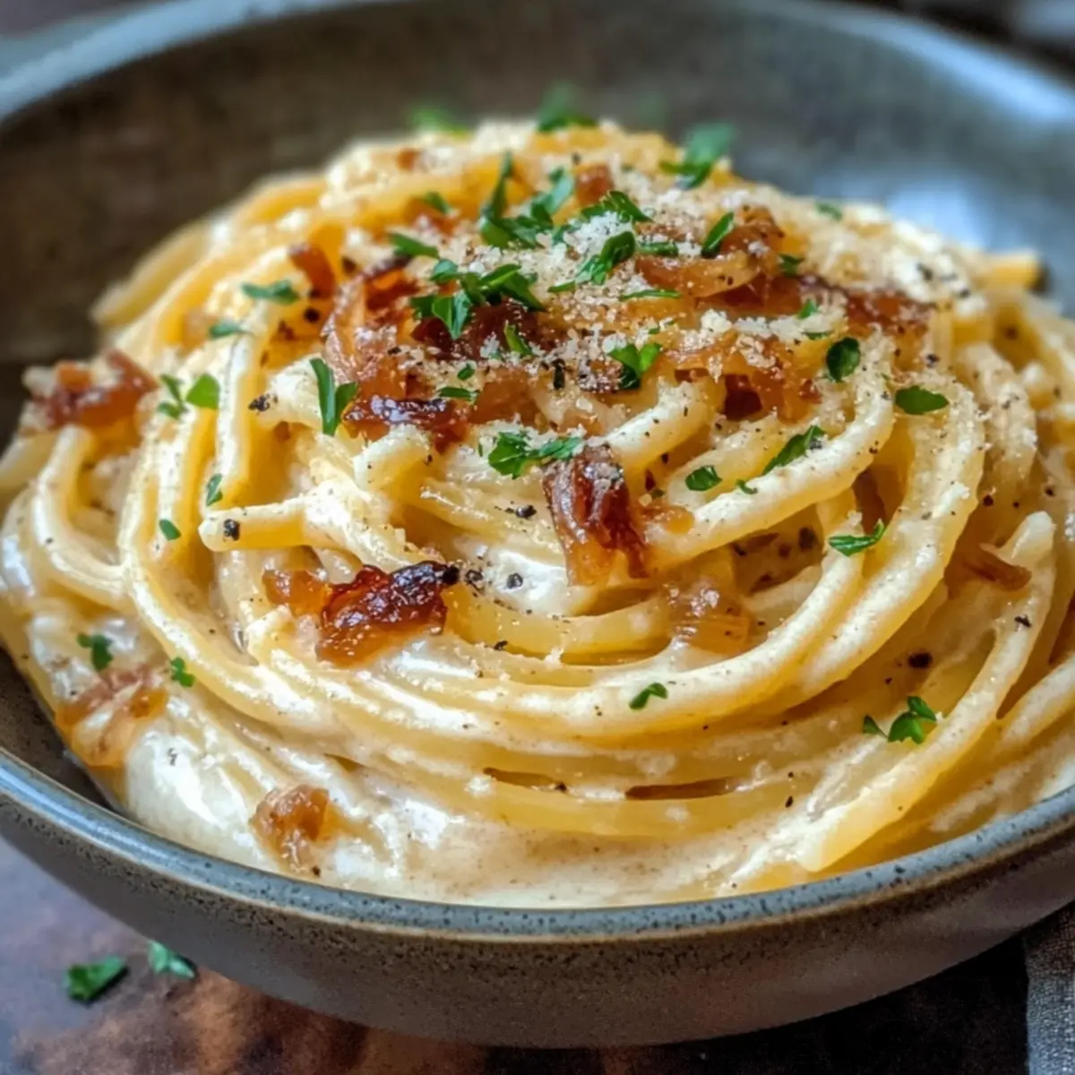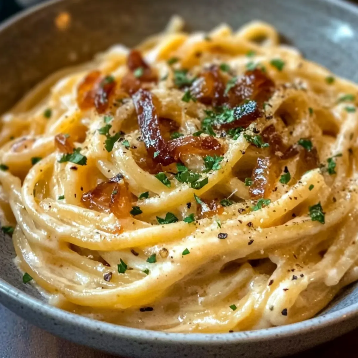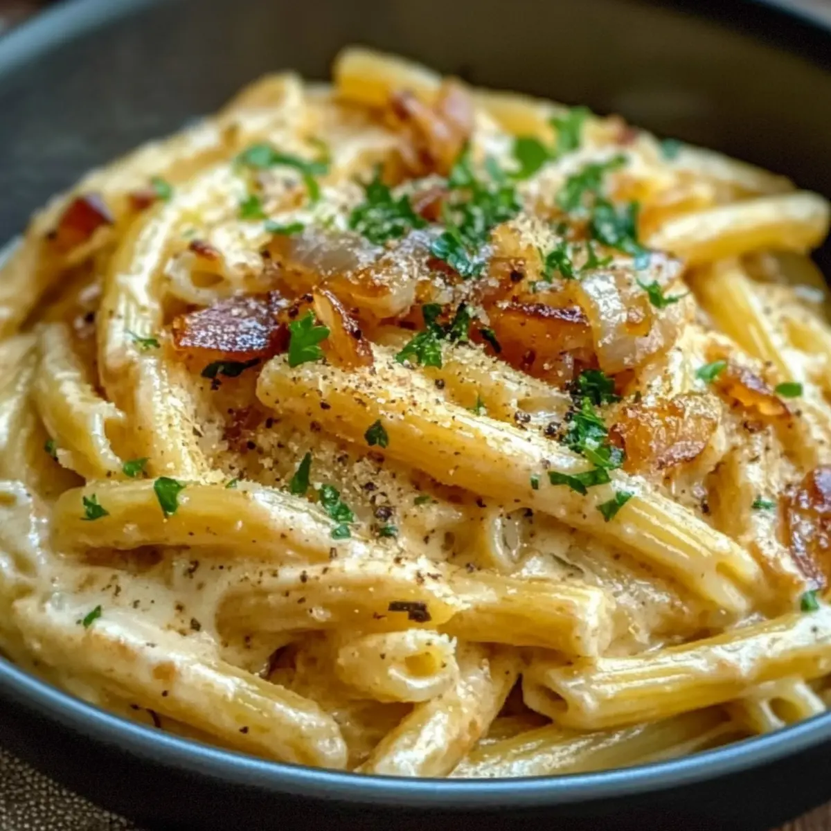 Wenn die Zwiebeln beginnen, in der Pfanne zu süßem Gold zu schimmern, weiß ich, dass es Zeit für meine cremige vegane karamellisierte Zwiebelpasta ist. Diese köstliche Mahlzeit vereint eine reichhaltige, samtige Sauce mit dem herzhaften Geschmack von perfekt karamellisierten Zwiebeln und ist der ideale Begleiter für jeden, der sich nach einem schnellen, gesunden Abendessen sehnt. Es gibt nichts besseres, als die warme Umarmung von Comfort Food, das ganz auf pflanzlicher Basis ist – es ist nicht nur eine wahre Gaumenfreude, sondern auch eine wunderbare Option für alle, die eine vegane Lebensweise schätzen. Hast du schon darüber nachgedacht, wie vielseitig Pasta sein kann? Lass uns gemeinsam entdecken, was dieses Gericht alles zu bieten hat! Warum wirst du dieses Rezept lieben? Einfachheit, die begeistert: Die Zubereitung dieser cremigen veganen karamellisierten Zwiebelpasta ist kinderleicht und erfordert nur wenige Zutaten, sodass du schnell ein köstliches Essen zaubern kannst. Reiche Aromen: Die perfekt karamellisierten Zwiebeln verleihen dem Gericht eine süße Tiefe, während die cremige Sauce einfach zum Schwelgen einlädt. Vielfältige Anpassungsmöglichkeiten: Experimentiere mit verschiedenen Nudelarten oder füge frisches Gemüse wie Spinat oder Pilze hinzu, um das Gericht zu individualisieren. Gesunder Genuss: Diese Pflanzengericht ist nicht nur lecker, sondern auch nährstoffreich und voll von gesunden Fetten. Familienliebling: Die Kombination aus comforting Pasta und herzhaften Aromen macht es zu einem Hit bei Groß und Klein! Cremige vegane karamellisierte Zwiebelpasta Zutaten Für die Pasta • Pasta – Basis des Gerichts, sorgt für Struktur und kann durch Vollkorn- oder glutenfreie Varianten ersetzt werden. Für die Sauce • Zwiebeln – Entwickeln beim Karamellisieren eine süße Tiefe; verwende am besten gelbe oder süße Zwiebeln für den besten Geschmack. • Olivenöl – Zum Anbraten der Zwiebeln; unbedingt für die Karamellisierung notwendig. Alternativ kann ein neutrales Pflanzenöl genutzt werden. • Knoblauch – Verleiht Geschmack und Aroma; frisch gehackter Knoblauch ist ideal, kann aber in Eile durch Knoblauchpulver ersetzt werden. • Gemüsebrühe – Sorgt für herzhaftige Untertöne in der Sauce; für gesündere Optionen eine natriumarme Brühe verwenden. • Kokoscreme – Schafft eine cremige Konsistenz und reiche Aromen; kann durch andere pflanzliche Cremes ersetzt werden. • Sojasauce oder Tamari – Für umami Geschmack; Tamari ist glutenfrei und eine gute Wahl. • Nährhefe (optional) – Fügt einen käsigen Geschmack hinzu, ideal für vegane Gerichte, kann aber weggelassen werden, wenn nicht verfügbar. • Salz und Pfeffer – Wichtiges Gewürz, um den Geschmack zu intensivieren; nach Geschmack anpassen. • Frische Kräuter – Garnitur für Frische und Farbe; zum Beispiel Petersilie oder Basilikum. Schritt-für-Schritt-Anleitung für cremige vegane karamellisierte Zwiebelpasta Step 1: Pasta kochen Bringe in einem großen Topf Wasser zum Kochen und füge eine Prise Salz hinzu. Gib die Pasta deiner Wahl hinein und koche sie gemäß den Anweisungen auf der Verpackung bis sie al dente ist, normalerweise etwa 8–10 Minuten. Nachdem die Pasta fertig ist, gieße sie in ein Sieb ab und stelle sie beiseite, während du die Sauce zubereitest. Step 2: Zwiebeln karamellisieren Erhitze in einer großen Pfanne über mittlerer Hitze 2–3 Esslöffel Olivenöl. Füge die in dünne Scheiben geschnittenen Zwiebeln hinzu und brate sie unter regelmäßigem Rühren für etwa 15 Minuten an, bis sie goldbraun und weich sind. Achte darauf, die Temperatur nicht zu hoch einzustellen, um ein Anbrennen zu vermeiden und die süßen Aromen optimal zur Geltung zu bringen. Step 3: Knoblauch hinzufügen Wenn die Zwiebeln schön karamellisiert sind, füge 2–3 Zehen gehackten Knoblauch hinzu. Rühre alles gut um und lasse es für weitere 1-2 Minuten braten, bis der Knoblauch duftet. Achte darauf, den Knoblauch nicht anbrennen zu lassen, da er sonst bitter werden kann und das Aroma der cremigen veganen karamellisierten Zwiebelpasta beeinträchtigen würde. Step 4: Sauce erstellen Ggieße 1–2 Tassen Gemüsebrühe über die Zwiebel-Knoblauch-Mischung in der Pfanne. Lasse die Mischung bei mittlerer Hitze etwa 3-5 Minuten köcheln, damit sie leicht reduziert wird und die Aromen sich vereinen. Rühre gelegentlich um, damit sich nichts am Boden der Pfanne festsetzt und die Sauce gleichmäßig dicker wird. Step 5: Sahne einarbeiten Jetzt ist es an der Zeit, die cremige Komponente hinzuzufügen! Rühre 1–1,5 Tassen Kokoscreme und 2 Esslöffel Sojasauce in die Pfanne, bis alles gut vermischt ist. Koche die Mischung für etwa 2-3 Minuten weiter, bis die Sauce angenehm warm ist und eine samtige Konsistenz erreicht hat, die perfekt für deine cremige vegane karamellisierte Zwiebelpasta ist. Step 6: Pasta kombinieren Füge nun die vorbereitete Pasta in die Pfanne mit der Sauce und den karamellisierten Zwiebeln. Tossiere alles gut, sodass die Pasta vollständig mit der cremigen Sauce umhüllt ist. Lass es für eine Minute in der Pfanne, damit sich die Aromen verbinden können und die Pasta die köstliche Soße aufsaugt. Step 7: Würzen Schmecke die cremige vegane karamellisierte Zwiebelpasta ab und füge nach Belieben Salz, Pfeffer und optional Nährhefe hinzu. Dies wird den Geschmack intensivieren und der Sauce einen besonders aromatischen, käseartigen Note verleihen. Rühre gut um, damit die Gewürze gleichmäßig verteilt werden. Step 8: Servieren Verteile die Pasta auf Tellern und garniere sie mit frischen Kräutern wie Petersilie oder Basilikum für zusätzlichen Geschmack und Farbe. Diese finale Note wird nicht nur das Aussehen des Gerichts beleben, sondern auch das Geschmackserlebnis der cremigen veganen karamellisierten Zwiebelpasta verfeinern. Variationen & Alternativen Lass deiner Kreativität freien Lauf und passe die Rezeptur nach deinem Geschmack an! Hier sin