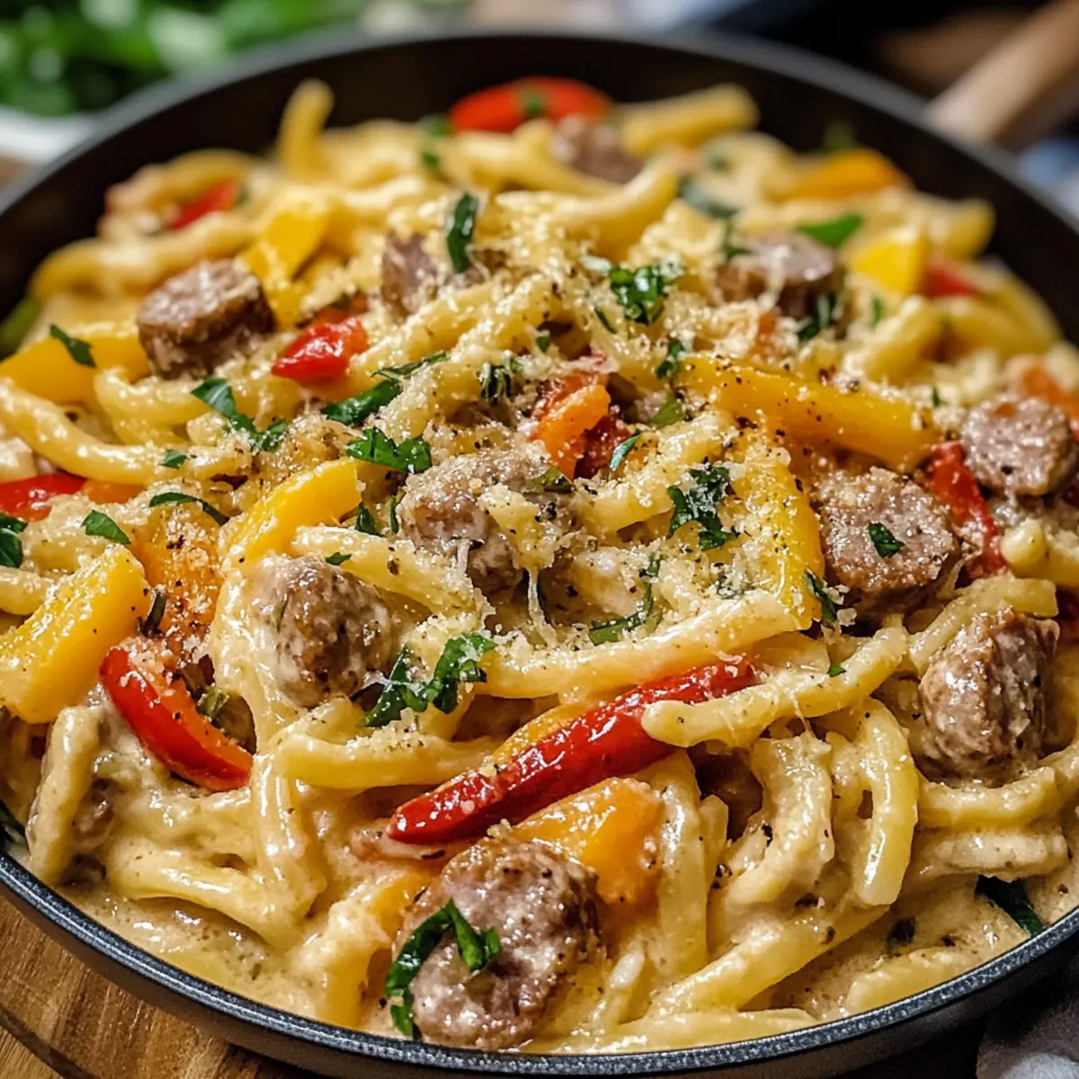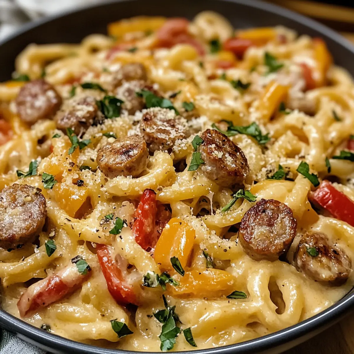 Während ich in der Küche stehe und den verführerischen Duft von italienischen Gewürzen und gebratener Wurst einatme, beginnt ein vergnügliches Gefühl von Vorfreude in mir zu wachsen. Heute kreiere ich eine Cremige Wurst und Paprika Pasta – ein Gericht, das sich nicht nur durch seine Einfachheit, sondern auch durch seinen ungeheuren Komfort auszeichnet. Mit nur einem Topf zauberst du ein gesundes, herzhaftes Essen, das die ganze Familie zusammenbringt und an stressigen Abenden für ein wenig Gemütlichkeit sorgt. Egal ob als schnelles Abendessen unter der Woche oder in geselliger Runde am Wochenende – dieses Rezept hat schon zahlreiche Herzen erobert. Bist du bereit, deine Liebsten mit einem unvergleichlichen Geschmackserlebnis zu überraschen? Lass uns gleich loslegen! Warum wirst du dieses Rezept lieben? Einfachheit: Mit wenigen Zutaten zauberst du im Handumdrehen ein Festmahl. Komfort pur: Diese Pasta ist nicht nur lecker, sondern auch soulfood, das jeden satt und glücklich macht. Vielseitigkeit: Du kannst die Wurst und die Gemüsesorten nach deinem Geschmack anpassen – sei es mit Zucchini oder sogar einer pflanzlichen Alternative. Ein Topf, weniger Chaos: Das Rezept erfordert nur einen Topf, was die Reinigung erleichtert und mehr Zeit für deine Lieben lässt. Herzhafter Geschmack: Der harmonische Mix aus Wurst, Paprika und einer cremigen Sauce wird deine Geschmacksknospen verwöhnen und alle am Tisch begeistern. Perfekte Begleiter: Serviere die Pasta mit einem frischen Salat oder knusprigem Knoblauchbrot für ein rundum gelungenes Dinner. Cremige Wurst und Paprika Pasta Zutaten • Für die Pasta: Pasta – 12 Unzen (Penne, Rigatoni oder Farfalle); diese geben dem Gericht Struktur und besseren Biss. Notiz: Verwende glutenfreie Pasta für die glutenfreie Variante. • Für die Sauce: Olivenöl – 1 Esslöffel; dient als Basis zum Anbraten von Wurst und Gemüse. Italienische Wurst – 1 Pfund (mild, scharf oder Hühnerwurst); ist die Hauptquelle für Protein und Geschmack. Substitution: Türkei oder pflanzliche Wurst für eine leichtere oder vegetarische Option. Zwiebel – 1 mittlere Zwiebel, dünn geschnitten; bringt Süße und Tiefe ins Gericht. Paprika – 2 Paprika (1 rot, 1 gelb oder grün), dünn geschnitten; sorgt für Süße, Farbe und einen knackigen Biss. Knoblauch – 3 Zehen, gehackt; verleiht aromatischen Geschmack. Räucherpaprika – 1 Teelöffel (optional); sorgt für Tiefe und ein rauchiges Aroma. Rote Chiliflocken – ½ Teelöffel (optional); gibt eine angenehme Schärfe. Schwarzer Pfeffer – ¼ Teelöffel; hebt den Gesamtgeschmack hervor. Salz – ½ Teelöffel; allgemeine Würze für das Gericht. • Für die cremige Konsistenz: Schlagsahne – 1 Tasse (oder halb und halb für eine leichtere Version); schafft die cremige Sauce, die perfekt zur Wurst und Paprika passt. Hühnerbrühe – ½ Tasse; fügt Geschmack und Flüssigkeit zur Sauce hinzu. Parmesan Käse – ½ Tasse, gerieben; bringt Cremigkeit und Reichhaltigkeit. Italienische Gewürze – 1 Teelöffel (oder eine Mischung aus getrocknetem Basilikum, Oregano und Thymian); verleihen dem Gericht eine Kräuternote. Tomatenmark – 1 Esslöffel; sorgt für Reichtum und Farbe. • Optionale Toppings: Frische Petersilie – für die Garnitur und frischen Geschmack. Zusätzlicher Parmesan Käse – für ein noch reichhaltigeres Aroma. Zerdrückte rote Chiliflocken – für zusätzliche Schärfe, nach Belieben. Mit dieser Kombination aus Zutaten wird deine cremige Wurst und Paprika Pasta zum wahren Hochgenuss in der Küche! Schritt-für-Schritt-Anleitung für Cremige Wurst und Paprika Pasta Step 1: Pasta kochen Fülle einen großen Topf mit Wasser und bringe es zum Kochen. Füge 1 Teelöffel Salz hinzu, damit die Pasta Geschmack bekommt. Koche die 12 Unzen Pasta nach Packungsanweisung al dente, etwa 8–10 Minuten. Wenn sie fertig ist, hebe eine Tasse des Kochwassers auf, gieße die Pasta ab und stelle sie beiseite. Step 2: Wurst anbraten Erhitze 1 Esslöffel Olivenöl in einer großen Pfanne bei mittlerer Hitze. Sobald das Öl heiß ist, füge die 1 Pfund italienische Wurst hinzu und brate sie für 5–7 Minuten, bis sie schön gebräunt ist. Rühre gelegentlich um, damit sie gleichmäßig bräunt. Nimm die Wurst aus der Pfanne und stelle sie zur Seite. Step 3: Gemüse sautieren In der gleichen Pfanne, in der du die Wurst gebraten hast, füge die 1 dünn geschnittene Zwiebel und die 2 dünn geschnittenen Paprika hinzu. Sauté bei mittlerer Hitze für etwa 5–7 Minuten, bis das Gemüse weich wird. Danach gib 3 gehackte Knoblauchzehen, 1 Teelöffel geräucherte Paprika, ½ Teelöffel rote Chiliflocken, ½ Teelöffel Salz und ¼ Teelöffel schwarzer Pfeffer hinzu. Koche alles für 1–2 Minuten, bis der Knoblauch duftet. Step 4: Cremige Sauce zubereiten Füge 1 Esslöffel Tomatenmark zu dem Gemüse in der Pfanne hinzu und rühre gut um. Gieße ½ Tasse Hühnerbrühe in die Pfanne, um sie abzulöschen und die Aromen zu kombinieren. Reduziere die Hitze und füge 1 Tasse Schlagsahne sowie 1 Teelöffel italienische Gewürze hinzu. Lasse alles für 2–3 Minuten simmern, bis die Sauce leicht eindickt. Step 5: Alles kombinieren Gib die angebratene Wurst zurück in die Pfanne und füge die abgegossene Pasta hinzu. Mische alles gut und koch bei niedriger Hitze, damit die Pasta die Aromen aufnimmt. Falls die Sauce zu dick ist, verwende das aufgehobene Kochwasser, um die Konsistenz anzupassen. Rühre ½ Tasse geriebenen Parmesan unter, bis er schmilzt und die Sauce cremig macht. Step 6: Servieren und garnieren Verteile die Cremige Wurst und Paprika Pasta auf Teller. Garniere sie nach Belieben mit frisch gehackter Petersilie, zusätzlichem Parmesan oder zerdrückten Chiliflocken. Serviere das Gericht sofort und genieße das herzhaft-köstliche Ergebnis, das perfekt für gesellige Abende ist. Variationen und Alternativen für Cremige Wurst und Paprika Pasta Lass deiner Kreativität freien Lauf und passe dieses kö