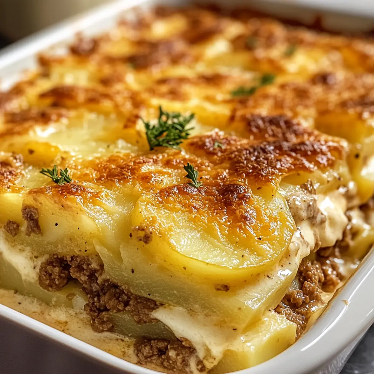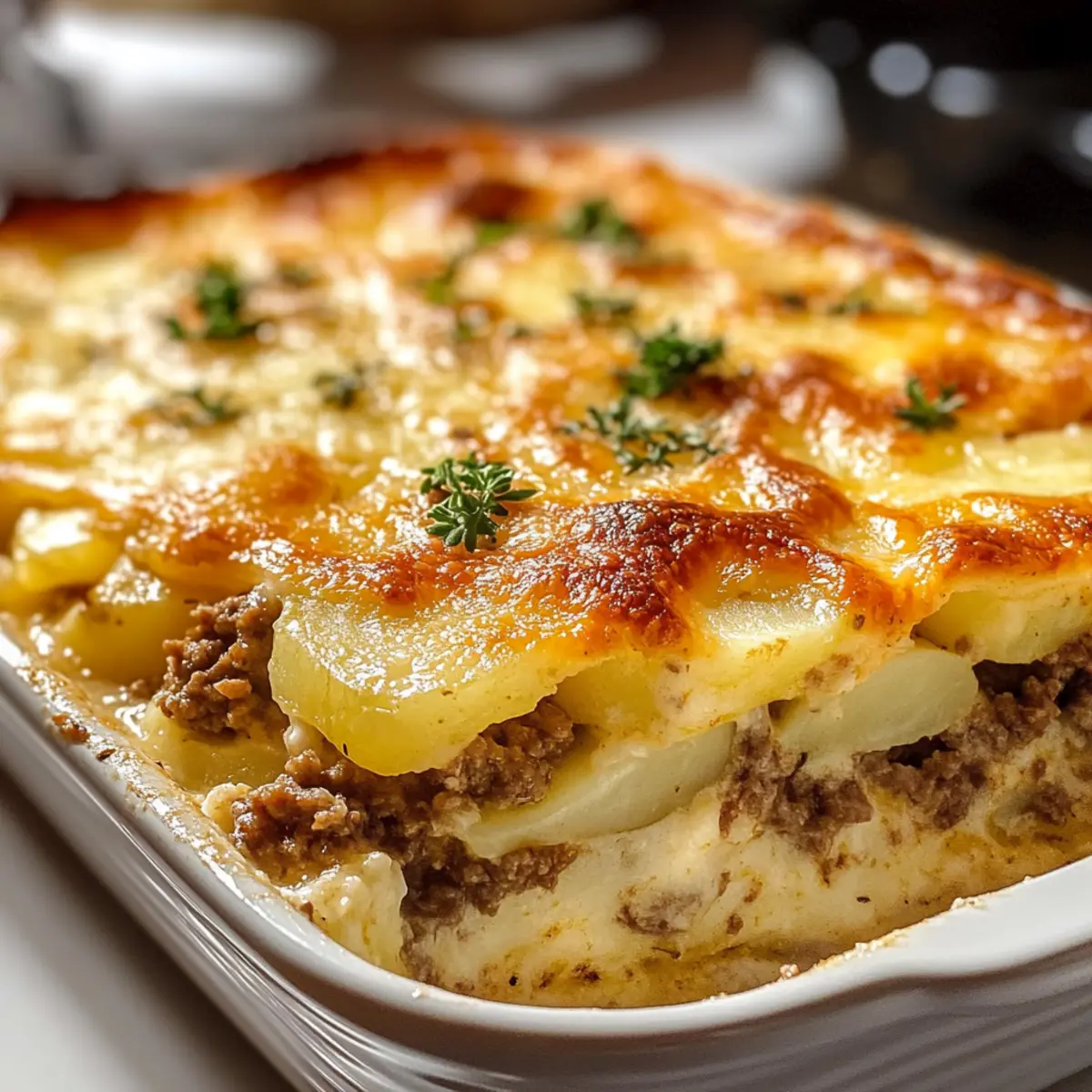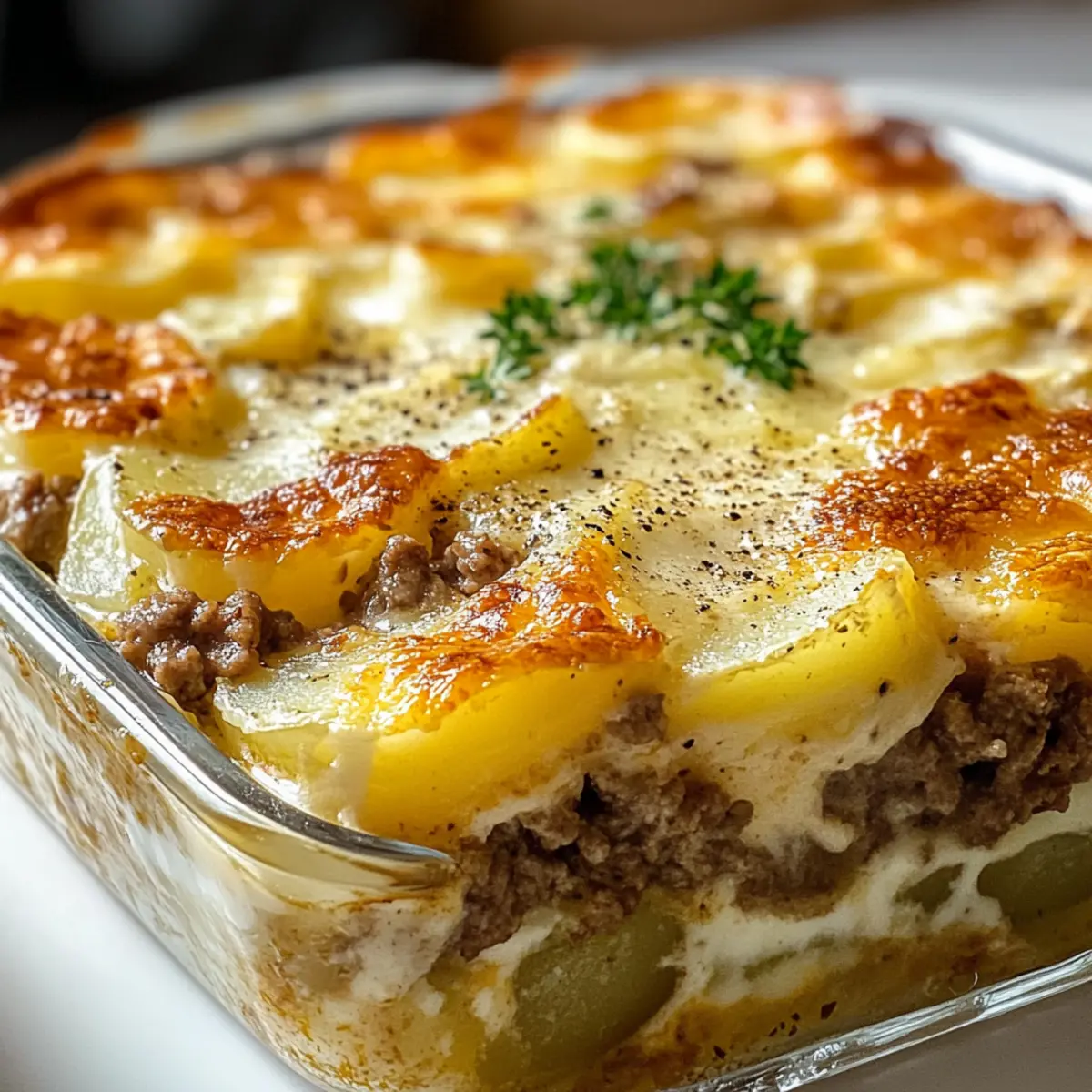 Die köstlichen Aromen eines herzhaften Auflaufs breiten sich in meiner Küche aus und scheinen zu flüstern: „Iss mich!“ Heute präsentiere ich dir meinen Cremigen Hackfleisch- und Kartoffelauflauf für Genießer, ein Gericht, das die Herzen der ganzen Familie höher schlagen lässt. Dieses Rezept ist nicht nur einfach zuzubereiten, sondern auch ein wahrer Genuss für alle, die sich nach einer geschmackvollen Umarmung auf dem Teller sehnen. Mit zartem Hackfleisch und schichtweise angeordneten Kartoffeln in einer cremigen Sauce wird dieses Abendessen zum perfekten Highlight für gemütliche Familienabende oder schnelle Wochentagsmahlzeiten. Du kannst das Rezept an deine Vorlieben anpassen, sei es mit verschiedenen Fleischsorten oder sogar veganen Alternativen. Neugierig, wie einfach das zuzubereiten ist? Lass uns loslegen! Warum wirst du dieses Rezept lieben? Einfachheit: Die Zubereitung ist unkompliziert und erfordert nur grundlegende Kochfähigkeiten, sodass du ohne Stress sofort loslegen kannst. Köstlicher Geschmack: Die perfekte Kombination aus würzigen Kräutern und cremiger Sauce sorgt für ein Geschmackserlebnis, das niemand widerstehen kann. Vielseitigkeit: Du kannst verschiedene Fleischsorten oder sogar vegane Alternativen verwenden, sodass jeder Geschmack berücksichtigt wird. Familienfreundlich: Ideal für einen Familienabend, kommen alle auf ihre Kosten und erlebe einen Abend voller zufriedener Gesichter! Zeitersparnis: Mit nur wenigen Schritten hast du ein köstliches Gericht auf dem Tisch – perfekt für hektische Wochentage. Pikante Kruste: Der geriebene Käse verleiht dem Auflauf eine wunderbar goldene, knusprige Kruste, die einfach unwiderstehlich ist. Cremiger Hackfleisch- und Kartoffelauflauf Zutaten • Entdecke die grundlegenden Zutaten, die diesen Auflauf zu einem echten Genuss machen! Für das Hackfleisch: Rinderhackfleisch – bildet die proteinreiche Basis für das Gericht. Substitution: Mische verschiedene Hackfleischsorten für zusätzlichen Geschmack. Für die Kartoffelschichten: Kartoffeln – wichtig für die Struktur; wähle festkochende Kartoffeln für die beste Textur. Substitution: Süßkartoffeln verleihen eine angenehme Süße. Cremige Basis: Sahne – sorgt für die cremige Konsistenz. Substitution: Kokosmilch kann für eine vegane Option verwendet werden. Für das Topping: Geriebener Käse – verleiht Geschmack und eine knusprige, goldene Kruste. Substitution: Verwende fettarmen Käse für eine leichtere Variante. Für die Geschmacksintensität: Zwiebel – vertieft die Aromen. Substitution: Schalotten sind eine mildere Alternative. Knoblauchzehen – verstärken das Aroma und den Geschmack. Hinweis: Knoblauchpulver kann bei Bedarf frischen Knoblauch ersetzen. Paprikapulver – bringt eine feine Würze ins Spiel. Hinweis: Geräuchertes Paprikapulver verleiht eine tiefere Geschmacksebene. Salz und Pfeffer – essentielle Gewürze, um den Geschmack abzurunden. Für die frische Note: Frische Kräuter (Petersilie oder Thymian) – ergänzen das Gericht mit einer frischen Note und verbessern das gesamte Aroma. Die Zutaten für diesen cremigen Hackfleisch- und Kartoffelauflauf sind einfach, aber voller Geschmack! Schritt-für-Schritt-Anleitung für den Cremigen Hackfleisch- und Kartoffelauflauf für Genießer Step 1: Zutaten vorbereiten Die Kartoffeln schälen und in dünne Scheiben schneiden; Zwiebel und Knoblauch fein hacken. Dies sorgt für gleichmäßiges Garen und intensiven Geschmack im cremigen Hackfleisch- und Kartoffelauflauf. Bereite alle Zutaten direkt am Arbeitsplatz vor, um einen reibungslosen Kochprozess zu gewährleisten. Step 2: Hackfleisch anbraten In einer großen Pfanne etwas Öl erhitzen und Zwiebel sowie Knoblauch darin bei mittlerer Hitze glasig dünsten. Dann das Rinderhackfleisch hinzufügen und unter Rühren anbraten, bis es schön braun ist. Für den besten Geschmack mit Paprikapulver, Salz und Pfeffer würzen. Dies dauert etwa 8–10 Minuten. Step 3: Schichten Eine Auflaufform bereitstellen und mit der ersten Schicht der geschnittenen Kartoffeln beginnen. Danach das gebratene Hackfleisch gleichmäßig darauf verteilen. Wiederhole die Schichtung mit den restlichen Kartoffeln und dem Hackfleisch, bis alle Zutaten aufgebraucht sind, und achte darauf, die letzte Schicht mit Kartoffeln abzuschließen. Step 4: Sahne hinzufügen Die Sahne gleichmäßig über die geschichteten Zutaten gießen, sodass sie die Kartoffeln gut bedeckt. Diese cremige Schicht ist entscheidend für den reichen Geschmack des Auflaufs. Achte darauf, dass die Flüssigkeit gleichmäßig verteilt wird, um ein perfektes Garen zu gewährleisten. Step 5: Mit Käse bestreuen Den geriebenen Käse großzügig auf der obersten Kartoffelschicht verteilen. Der Käse wird während des Backens schmelzen und eine köstlich goldene Kruste bilden, die dem cremigen Hackfleisch- und Kartoffelauflauf eine tolle Textur verleiht. Step 6: Backen Den Ofen auf 180°C vorheizen und den Auflauf darin für etwa 45 Minuten backen. Achte darauf, dass die Kartoffeln weich sind und die Oberseite goldbraun aussieht. Diese Backzeit bringt alle Aromen zusammen und sorgt für eine perfekte Konsistenz. Step 7: Abkühlen lassen Den Auflauf nach dem Backen für etwa 5–10 Minuten ruhen lassen, bevor du ihn servierst. Diese kurze Ruhezeit hilft, die Aromen zu intensivieren und erleichtert das Schneiden. So wird der cremige Hackfleisch- und Kartoffelauflauf zum idealen Gericht für die Familie. Was passt gut zum Cremigen Hackfleisch- und Kartoffelauflauf? Entdecke, wie du das Beste aus deinem Abendessen herausholen kannst, indem du es mit leckeren Beilagen kombinierst! Frischer grüner Salat: Ein knackiger Salat mit leichtem Dressing bringt eine erfrischende Note und balanciert die Cremigkeit des Auflaufs. Dampfgegarte Brokkoli: Knackiger Brokkoli ergänzt die weiche Textur des Auflaufs und sorgt für eine gesunde, bunte Ergänzung. Würzige Karotten: Karotten mit einem Hauch von Honig und Kreu