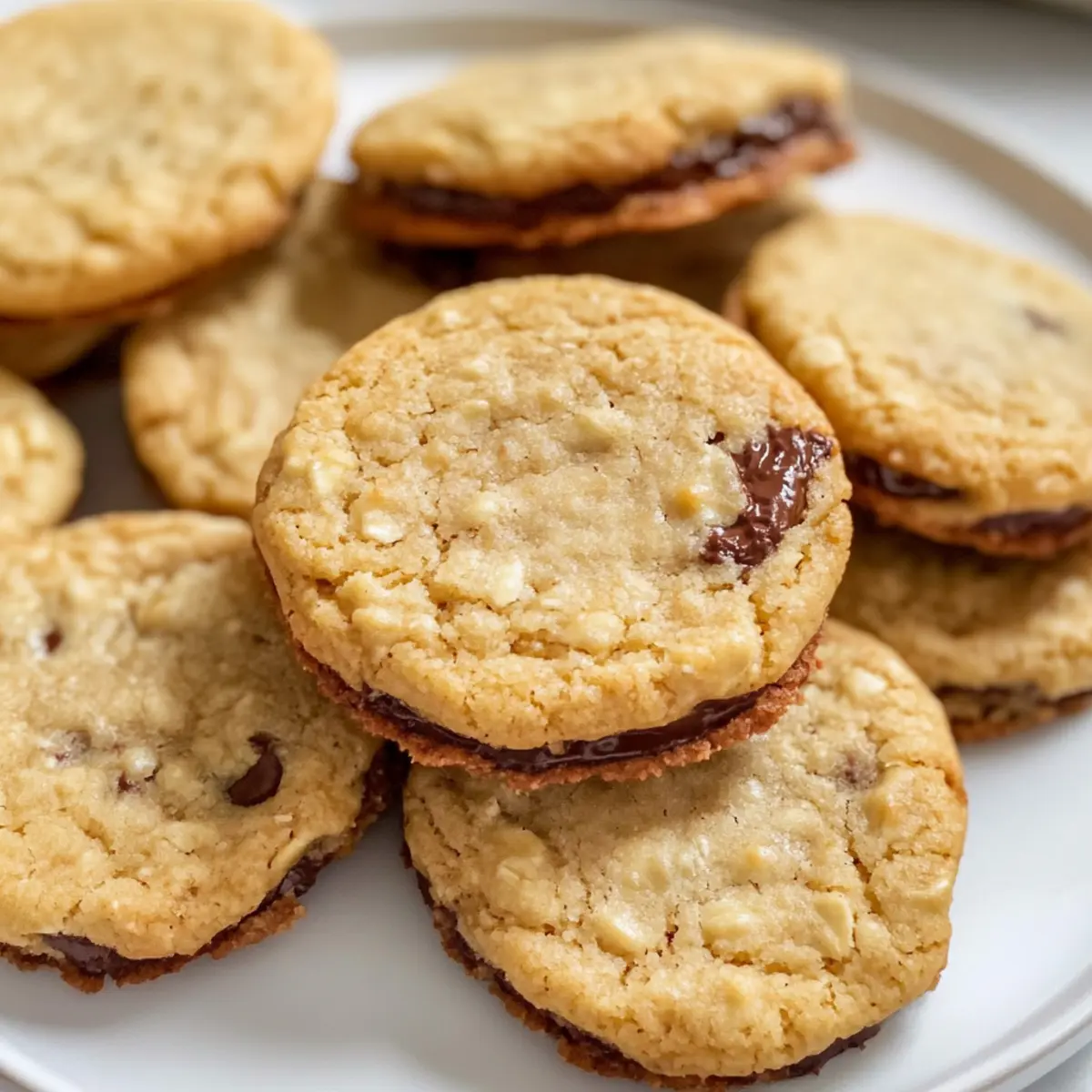 Während ich durch meinen Vorratsspeicher schlenderte, fiel mir ein, wie oft ich verzweifelt nach etwas Süßem suche, das meiner Seele schmeichelt, während ich gleichzeitig auf der Suche nach etwas Nährstoffreichem bin. Heute präsentiere ich euch die perfekten Lösung: die 4-Zutaten Crispy Chocolate Oat Cookies. Diese kleinen Köstlichkeiten sind nicht nur ein wahrer Genuss für Schokoladenliebhaber, sondern auch glutenfrei und blitzschnell zubereitet. Mit nur vier einfachen Zutaten aus eurer Vorratskammer sind sie der ideale Begleiter für kurvenreiche Nachmittage, egal ob ihr mit Freunden snackt oder euch selbst verwöhnt. Und das Beste daran? Sie sind eine wunderbare gesunde Alternative zu herkömmlichen Snacks! Seid ihr bereit, eurer Küche einen Schokoladenkick zu geben? Warum wirst du diese Kekse lieben? Einfachheit pur: Die Zubereitung ist kinderleicht und erfordert nur grundlegende Backfähigkeiten, ideal für jedes Küchen-Level. Gesunde Leckerei: Mit nur vier Zutaten sind diese Kekse nicht nur glutenfrei, sondern auch nährstoffreich! Sie bieten eine perfekte Balance aus Geschmack und Gesundheit. Vielseitig kombinierbar: Du kannst die Zutaten nach deinem Geschmack anpassen, z.B. durch Hinzufügen von Nüssen oder Trockenfrüchten. Wer will, kann auch den Erdnussbutter-Ersatz ausprobieren! Schnelle Zubereitung: In weniger als 30 Minuten kannst du diese köstlichen Kekse genießen – ideal für spontane Besuch oder einen süßen Snack für dich selbst. Crowd-Pleaser: Diese Kekse sind ein Hit bei Familie und Freunden und sorgen garantiert für erfreute Gesichter, ohne viele Kalorien zu laden! Zutaten für Sandwich-Shortbread-Kekse • Mach dich bereit für die einfachste und leckerste Keksvariante! Für den Keks Haferflocken – Fügen Struktur und Biss hinzu; verwende am besten zarte Haferflocken für einen angenehmeren Geschmack. Nussbutter (z.B. Mandelbutter) – Sorgt für Cremigkeit und Bindung; Erdnussbutter ist eine köstliche Alternative. Honig oder Ahornsirup – Dient als natürlicher Süßstoff; mit Ahornsirup erhältst du eine vegane Variante. Schokoladenstückchen – Liefert köstliche Schokoladensplitter; für eine vegane Option wähle milchfreie Schokoladenstückchen. Topping-Optionen Puderzucker – Für eine süße Glasur; einfach mit Wasser oder Zitronensaft verrühren, um einen Zuckerguss zu kreieren. Nüsse oder Trockenfrüchte – Für zusätzlichen Geschmack und Textur; verleihen den Sandwich-Shortbread-Keksen einen besonderen Kick. Genieße diese Sandwich-Shortbread-Kekse und entdecke, wie lecker gesunde Snacks sein können! Schritt-für-Schritt-Anleitung für Sandwich-Shortbread-Kekse Step 1: Mischung vorbereiten In einer großen Schüssel die Haferflocken, Nussbutter, Honig und Schokoladenstückchen miteinander vermengen. Rühre die Zutaten gut durch, bis eine gleichmäßige Masse entsteht, die gut zusammenhält. Dies dauert etwa 2-3 Minuten. Die Konsistenz sollte cremig und leicht klebrig sein, damit die Sandwich-Shortbread-Kekse später formbar sind. Step 2: Kekse formen Nimm mit einem Esslöffel Portionen der Mischung und lege sie auf ein mit Backpapier belegtes Blech. Die Portionen sollten genügend Platz zwischen den Keksen haben, da sie beim Backen auseinandergehen. Drücke jede Keksportion leicht flach, sodass die Oberflächen gleichmäßig sind und eine schöne Form erhalten. Step 3: Backen Heize den Ofen auf 175°C vor und backe die Kekse für 10-12 Minuten. Die Ränder sollten goldbraun und die Oberflächen leicht fest sein. Ein guter Indikator dafür, dass die Sandwich-Shortbread-Kekse bereit sind, ist ein leichtes Krustenbild, das beim Backen entsteht. Step 4: Abkühlen lassen Nach dem Backen die Kekse für etwa 5 Minuten auf dem Blech ruhen lassen, damit sie sich setzen können. Danach vorsichtig auf ein Gitterrohr übertragen, um vollständig abzukühlen. Dies sorgt dafür, dass die Kekse die richtige Konsistenz erreichen und nicht zu weich bleiben. Lagerungstipps für Sandwich-Shortbread-Kekse Zimmertemperatur: Bewahre die Kekse in einem luftdichten Behälter auf, um ihre Frische und Knusprigkeit bis zu einer Woche zu bewahren. Kühlschrank: Wenn du die Kekse länger aufbewahren möchtest, platziere sie in einem luftdichten Behälter im Kühlschrank für bis zu 2 Wochen. Beachte, dass sie möglicherweise bei Zimmertemperatur weicher werden. Gefrierschrank: Die Sandwich-Shortbread-Kekse lassen sich hervorragend einfrieren. Verpacke sie in einem gefriergeeigneten Behälter oder einem Gefrierbeutel und friere sie bis zu 3 Monate ein. Auftauen: Zum Auftauen die Kekse über Nacht im Kühlschrank lagern oder bei Raumtemperatur kurz antauen lassen, bevor du sie genießt. Was serviert man zu Crispy Chocolate Oat Cookies? Genieße diese besonderen Kekse mit köstlichen Beilagen, die das Geschmackserlebnis noch intensiver machen. Kaffee: Der bittere Geschmack des Kaffees ergänzt die süßen Kekse perfekt und sorgt für einen harmonischen Nachmittags-Snack. Almond Milk: Eine milde, nussige Milchalternative, die die Schokoladennoten der Kekse wunderbar unterstreicht. Ideal für eine gesunde Erfrischung! Frisches Obst: Ein Mix aus saftigen Beeren oder zerschlagenen Bananen bringt Frische und eine leicht säuerliche Note in dein Dessert-Erlebnis. Joghurt: Cremiger Naturjoghurt sorgt für einen schönen Kontrast zu der knusprigen Textur und macht die Kombination perfekt für ein leichtes Frühstück oder einen Snack. Eiskreationen: Kombiniere die Kekse mit einer Kugel Vanille- oder Schokoladeneis für ein dekadentes Dessert, das alle Sinne anspricht. Puderzucker: Bestäube die Kekse leicht mit Puderzucker oder bereite einen Zuckerguss zu – das süße Topping verleiht diesem gesunden Snack einen festlichen Touch! Variationen & Ersatzmöglichkeiten für Crispy Chocolate Oat Cookies Entdecke, wie du diese köstlichen Kekse ganz nach deinem Geschmack anpassen kannst, um neues Leben in deine Naschereien zu bringen! Erdnussbutter: Tausche Mandelbutter g