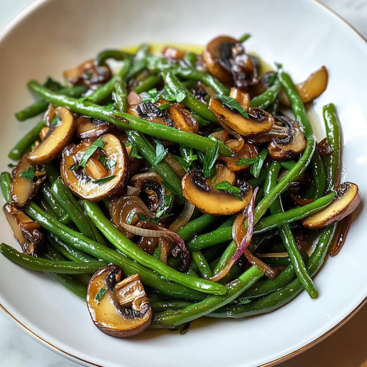 Die besten grünen Bohnen mit karamelisierten Schalotten und Pilzen