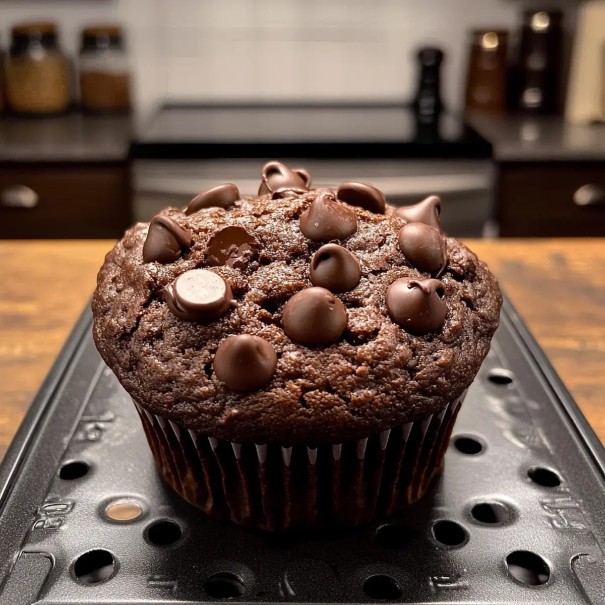 Zart schmelzender Schokolade, die einen süßen Traum entfaltet, ist genau das, was ich heute mit dir teilen möchte! Die Doppelte Schokoladenmuffins sind nicht nur eine Augenweide, sondern auch ein Genuss für die Sinne. Diese mühelos zuzubereitenden Muffins sind perfekt für ein schnelles Frühstück oder einen köstlichen Snack und bringen jeden Schokoladenliebhaber zum Schwärmen. Sie sind so feucht und schokoladig, dass selbst die anspruchsvollsten Gaumen begeistert sein werden. Mit nur wenigen Zutaten und einfacher Zubereitung kannst du im Handumdrehen süße Glücksmomente kreieren. Hast du schon einmal darüber nachgedacht, wie wunderbar es wäre, den Duft von frisch gebackenen Muffins durch dein Zuhause wehen zu lassen? Lass uns gemeinsam in die Welt der Doppelte Schokoladenmuffins eintauchen und ein Stück Himmel auf den Tisch bringen! Warum wirst du diese Muffins lieben? Unwiderstehlicher Geschmack: Die Kombination aus schokoladigem Teig und zarten Schokoladenstückchen ist einfach himmlisch. Einfache Zubereitung: Diese Muffins sind mühelos zu machen und erfordern nur grundlegende Backfähigkeiten. Perfekte Konsistenz: Die feuchte Textur und die schmelzenden Schokoladenstücke machen jeden Bissen zu einem Genuss. Vielseitige Varianten: Du kannst mit verschiedenen Schokoladensorten und zusätzlichen Zutaten experimentieren, um deine eigenen Kreationen zu schaffen. Ideale Nascherei: Ob zum Frühstück oder als Snack – diese Muffins sind der ideale Begleiter zu jeder Zeit. Schnell gemacht: In kürzester Zeit hast du ein leckeres Gebäck auf dem Tisch, das deine Familie begeistern wird. Zutaten für Doppelte Schokoladenmuffins • Entdecke die wichtigsten Zutaten für ein schokoladiges Erlebnis! Für den Teig: Weißes Mehl – sorgt für die Struktur der Muffins; bitte genau abmessen, um trockene Muffins zu vermeiden. Dutch-Processed Kakao – intensiviert den Schokoladengeschmack; du kannst auch herkömmliches Kakaopulver verwenden, für eine mildere Note. Backpulver & Natron – diese Treibmittel lassen die Muffins schön aufgehen und sorgen für die fluffige Textur. Salz – hebt die Süße der Schokolade hervor und bringt die Aromen in Einklang. Ungesalzene Butter – verleiht den Muffins einen reichen Geschmack; am besten geschmolzen verwenden. Zucker – sorgt für die Süße und trägt zur zarten Textur bei. Eier – geben Feuchtigkeit und Struktur; bei Raumtemperatur verwendet, erzielen sie die besten Ergebnisse. Vollmilch – fügt Reichtum hinzu und aktiviert die trockenen Zutaten; darauf achten, dass sie Raumtemperatur hat. Schmand – bringt zusätzliche Feuchtigkeit und eine leicht säuerliche Note ein; besser bei Raumtemperatur verwenden. Vanilleextrakt – verstärkt das gesamte Geschmacksprofil. Mini- halbbitters Chips – sorgen für schokoladige Überraschungen in den Muffins; perfekt sowohl zum Mischen als auch zum Bestreuen. Für die Dekoration: Zusätzliche Schokoladenstückchen – zum Bestreuen vor dem Backen, um das schokoladige Erlebnis zu verstärken. Diese Zutaten sind der Schlüssel zu perfekten Doppelte Schokoladenmuffins, die du und deine Lieben einfach lieben werden! Schritt-für-Schritt-Anweisungen für Doppelte Schokoladenmuffins Step 1: Trockenzutaten vorbereiten In einer mittelgroßen Schüssel das Mehl, den Dutch-Processed Kakao, das Backpulver, das Natron und das Salz gründlich mit einem Schneebesen vermengen. Achte darauf, dass keine Klumpen im Kakao sind, und stelle die Mischung beiseite. Diese Trockenmischung sorgt für die perfekte Basis deiner Doppelte Schokoladenmuffins und bringt die Schokoladigkeit optimal zur Geltung. Step 2: Nasse Zutaten vermengen In einer großen Schüssel die geschmolzene Butter, den Zucker, die Eier, die Vollmilch, den Schmand und den Vanilleextrakt gut miteinander verrühren, bis die Mischung glatt und cremig ist. Verwende einen Handmixer oder einen Schneebesen, um sicherzustellen, dass alles gleichmäßig vermischt ist. Diese nassen Zutaten geben den Muffins die gewünschte Feuchtigkeit und den reichhaltigen Geschmack. Step 3: Mischungen kombinieren Gib die trockenen Zutaten vorsichtig zu den nassen Zutaten in die große Schüssel. Mische alles mit einem Spatel oder einem Holzlöffel, bis gerade so ein paar Mehlstränge sichtbar sind. Übertreibe es nicht mit dem Mischen, denn der Teig soll noch leicht klumpig sein für die besten Doppelte Schokoladenmuffins. Eine Übermischung könnte die Textur beeinträchtigen. Step 4: Schokoladenstückchen hinzufügen Jetzt ist es an der Zeit, die halbsüßen Schokoladenstückchen unter den Teig zu heben. Verwende einen Spatel, um diese sanft im Teig zu verteilen. Du kannst auch einige Stückchen zurückhalten, um sie später auf die Muffins zu streuen. So erhältst du extra schokoladige Überraschungen in jedem Bissen deiner Doppelte Schokoladenmuffins. Step 5: Teig ruhen lassen Decke die Schüssel mit Frischhaltefolie ab und lasse den Teig für etwa 30 Minuten bei Zimmertemperatur ruhen. Dies hilft den Zutaten, sich zu verbinden und sorgt für eine schönere Textur in deinem Endprodukt. Der Duft von Schokolade wird bereits in der Luft liegen und die Vorfreude steigern! Step 6: Backofen vorheizen Heize den Ofen auf 175°C (350°F) vor und bereite die Muffinform vor, indem du sie mit Papierförmchen ausstattest. Achte darauf, die Förmchen nicht zu dicht nebeneinander zu setzen; dies sorgt für die perfekte Form der Muffins. Während der Ofen aufheizt, kannst du einen Blick auf die restlichen Schritte werfen. Step 7: Muffinförmchen füllen Verteile den Teig gleichmäßig auf die Muffinförmchen, sodass sie zu etwa zwei Dritteln gefüllt sind. Streue die zurückbehaltenen Schokoladenstückchen oben auf jeden Muffin, um ein noch schokoladigeres Erlebnis zu bieten. Verwende einen Eisportionierer, um gleichmäßige Portionen zu gewährleisten – so wird jeder Muffin perfekt. Step 8: Backen Backe die Doppelte Schokoladenmuffins für 20–23 Minuten, bis ein Holzstäbchen, 