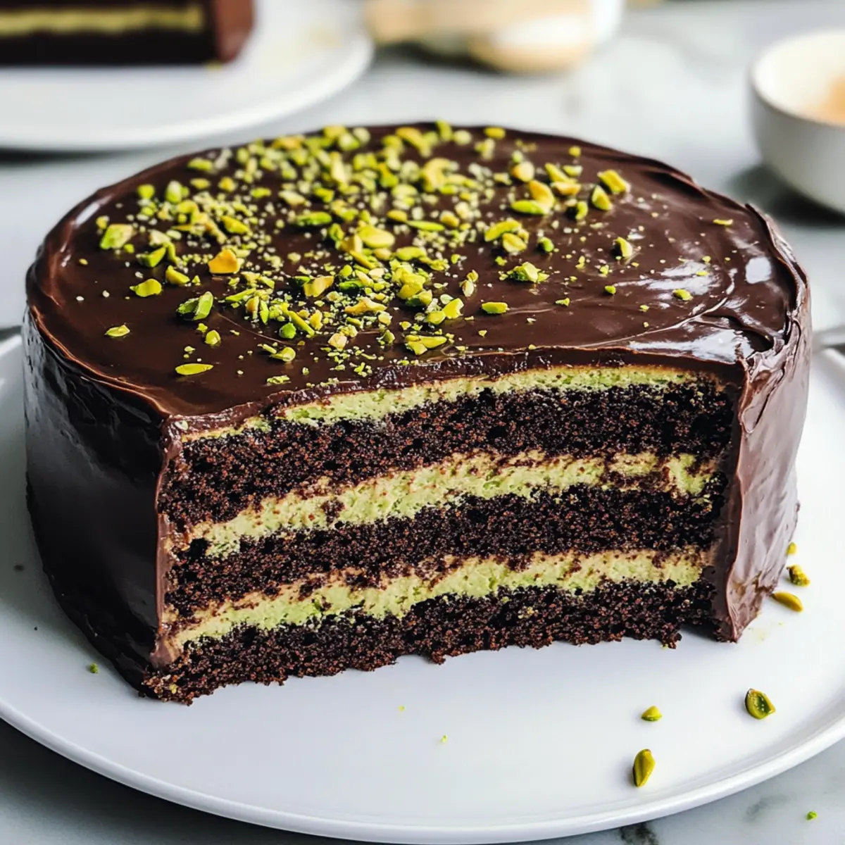 Stell dir vor, du betrittst eine Patisserie in Dubai, wo der verführerische Duft von Schokolade und Nüssen in der Luft liegt. Diese sinnliche Vorstellung wird Realität mit meinem Rezept für den Dubai Schokoladenkuchen, das dich in eine Welt voller köstlicher Aromen entführt. Mit einer einzigartigen Pistazienfüllung und einer samtigen Schokoladensauce ist dieser Kuchen nicht nur ein schokoladiger Traum, sondern auch die perfekte Wahl für festliche Anlässe oder einfach einen besonderen Moment zu Hause. Egal, ob du Gäste beeindrucken oder dir selbst eine Freude machen möchtest – dieser Kuchen sorgt garantiert für ein unvergessliches Erlebnis! Bist du bereit, dein Backabenteuer zu beginnen? Warum wirst du diesen Kuchen lieben? Einfachheit: Die Zubereitung des Dubai Schokoladenkuchens ist unkompliziert und benötigt keine speziellen Backkünste, sodass er für Anfänger und Profis gleichermaßen geeignet ist. Reichhaltiger Geschmack: Die harmonische Kombination aus zarter Schokolade und nussiger Pistazie entfaltet ein unvergleichliches Aroma, das alle Sinne verführt. Vielseitig: Dieser Kuchen kann mit verschiedenen Nüssen oder Schokoladensorten variiert werden, was ihn für jede Saison oder Feier anpassbar macht. Perfekte Textur: Mit seiner fudgy Konsistenz und dem knackigen Pistazienkern ist jeder Bissen ein Genuss. Köstlicher Höhepunkt: Ideal für festliche Anlässe oder als anspruchsvoller Nachmittagskaffee – er wird sicherlich Ihre Gäste begeistern! Probiere auch meine Tiramisu Kekse Den, um dein Dessert-Menü zu erweitern! Dubai Schokoladenkuchen Zutaten Hinweis: Diese köstlichen Zutaten sind das Geheimnis für deinen perfekten Dubai Schokoladenkuchen! Für den Kuchen • Allzweckmehl – sorgt für die Struktur des Kuchens; kann durch Kuchenmehl ersetzt werden, um ihn leichter zu machen. • Zucker – bringt die Süße; verwende braunen Zucker für einen intensiveren Geschmack. • Kakaopulver (ungesüßt) – verleiht den Schokoladengeschmack; am besten ist niederländisches Kakaopulver für eine glatte Textur. • Backpulver – das Treibmittel für den perfekten Aufstieg; achte darauf, dass es frisch ist. • Backsoda – ein zusätzliches Treibmittel; nötig für die fluffige Konsistenz des Kuchens. • Salz – verstärkt den Geschmack; verwende Meersalz oder koscheres Salz für einen besseren Geschmack. • Großes Ei – bringt Feuchtigkeit und Reichhaltigkeit; kann durch ein Leinsamen-Ei für eine vegane Variante ersetzt werden. • Vanilleextrakt – für das bessere Aroma; benutze reinen Vanilleextrakt für das beste Ergebnis. • Milch – sorgt für die nötige Feuchtigkeit; kannst du durch Mandelmilch für eine milchfreie Option ersetzen. • Pflanzenöl – sorgt für Zartheit; kann durch geschmolzene Butter für mehr Fülle ersetzt werden. • Heißer Kaffee – hebt den Schokoladengeschmack hervor; heiße Wasser oder heiße Milch sind alternativ möglich. • Shredded Phyllo-Teig (Kataifi) – sorgt für eine besondere Textur; kann auch gefroren anstelle von frisch verwendet werden. • Butter – bringt Reichhaltigkeit; kokosnussöl kann für eine milchfreie Option verwendet werden. Für die Füllung und Garnierung • Pistaziencreme – spendet nussigen Geschmack und Reichhaltigkeit; kann bei Bedarf durch Mandelbutter ersetzt werden. • Milch- oder halb-süße Schokolade – sorgt für die Schokoladenschicht; europäische Schokoladen wie Ghirardelli oder Cadbury sind hervorragend. • Schlagsahne oder Kaffeesahne – verleiht der Mischung Reichhaltigkeit und Cremigkeit; die Kaffeesahne ist in der arabischen Küche Tradition. Egal ob für Festtage oder einfach als süße Belohnung, dieser Kuchen wird alle begeistern! Schritt-für-Schritt-Anleitung für den Genussvollen Dubai Schokoladenkuchen mit Pistazienfüllung Step 1: Ofen vorheizen Heize deinen Ofen auf 175 °C vor und fette eine 23 cm große Kuchenform ein. Diese Vorbereitung sorgt dafür, dass der Dubai Schokoladenkuchen gleichmäßig backt und nicht an der Form haftet. Bereite alles vor, indem du alle Zutaten griffbereit hast, damit der Prozess reibungslos abläuft. Step 2: Kuchenteig zubereiten Vermische in einer großen Schüssel das Allzweckmehl, Zucker, ungesüßtes Kakaopulver, Backpulver, Backnatron und Salz gründlich miteinander. In einer separaten Schüssel verrühre die Eier, Vanilleextrakt, Milch, Pflanzenöl und heißen Kaffee. Gieße die flüssigen Zutaten zu den trockenen und mische alles bis eine glatte, klumpenfreie Masse entsteht. Dann fülle den Teig in die vorbereitete Kuchenform. Step 3: Kuchen backen Schiebe die Kuchenform in den vorgeheizten Ofen und backe den Kuchen 25 Minuten lang. Überprüfe nach dieser Zeit mit einem Zahnstocher, ob der Kuchen gar ist – er sollte sauber herauskommen, wenn der Kuchen fertig ist. Lass den Kuchen dann auf einem Kuchengitter auskühlen, damit er nicht beschlägt. Step 4: Pistazienfüllung zubereiten Während der Kuchen abkühlt, erhitze in einer Pfanne die Butter, bis sie schmilzt. Füge den shreddierten Phyllo-Teig (Kataifi) hinzu und röste ihn vorsichtig bei mittlerer Hitze, bis er goldbraun wird. Mische die gebräunten Phyllo-Streifen mit der Pistaziencreme und lasse die Füllung abkühlen, bevor du sie auf den abgekühlten Kuchen gibst. Step 5: Schokoladenschicht herstellen Zerkleinere die Milch- oder halb-süße Schokolade in eine mikrowellengeeignete Schüssel. Gieße die Schlagsahne hinzu und erwärme die Mischung in der Mikrowelle, bis sie warm ist. Rühre dann kräftig, bis eine samtige Schokoladensauce entsteht. Diese wird später über den Kuchen gegossen. Step 6: Kuchen zusammensetzen Wenn der Kuchen vollständig abgekühlt ist, verteile die Pistazienfüllung gleichmäßig auf der Oberseite. Gieße anschließend die warme Schokoladensauce über die Füllung, sodass sie schön verläuft. Du kannst den Kuchen nach Belieben mit gehackten Pistazien oder anderen Garnierideen dekorieren. Step 7: Servieren Serviere den Dubai