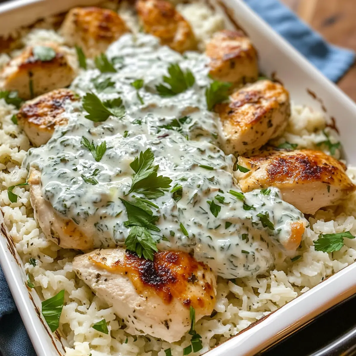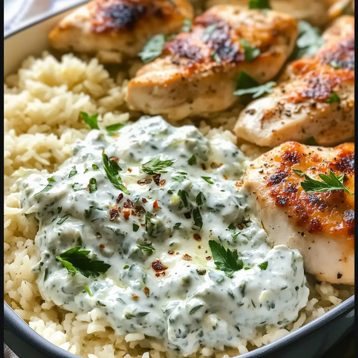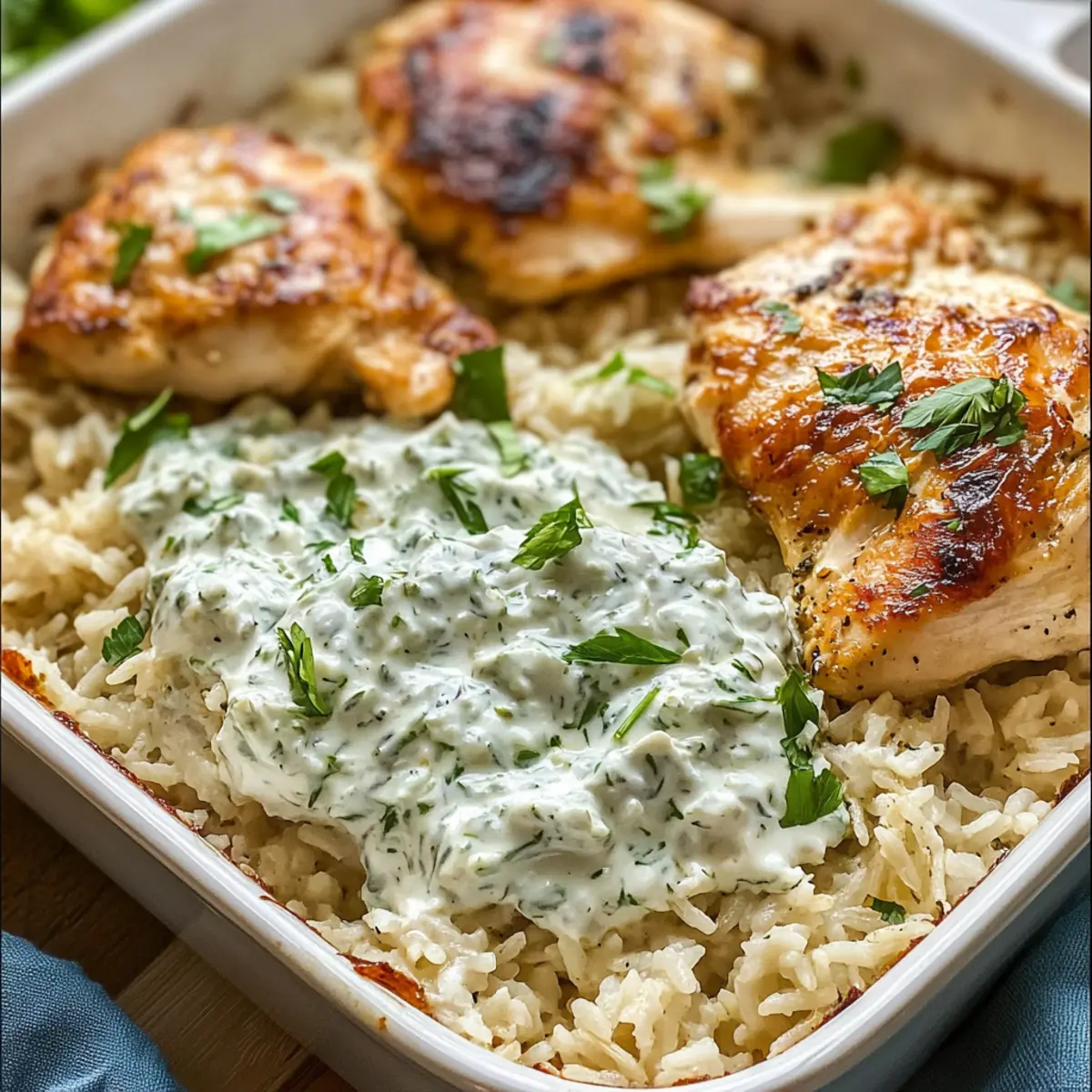 Der köstliche Duft von frisch gebackenem Hähnchen erfüllt die Küche, während ich die Zubereitung meines neuen Lieblingsgerichts beginne. Heute teile ich mit euch mein Dump-and-Bake Hähnchen Tzatziki mit Reis Rezept, das nicht nur unkompliziert ist, sondern auch die Aromen der griechischen Küche direkt auf euren Tisch bringt. Diese mediterrane Auflaufvariante ist perfekt für hektische Wochentage – sie lässt sich im Handumdrehen zusammenstellen und begeistert dabei die ganze Familie. Ob als proteinreiche Hauptspeise oder einfach nur, um den Hunger zu stillen – dieses Gericht bringt frische Kräuter und cremigen Genuss in jede Schüssel. Seid ihr bereit, ein Stück Griechenland in eurem Zuhause zu genießen? Warum ist dieses Rezept so besonders? Einfache Zubereitung: Mit nur wenigen Zutaten gelingt dieses Gericht im Handumdrehen und ohne großen Aufwand. Vielfältige Aromen: Die Kombination aus Hähnchen, aromatischer Tzatziki-Sauce und frischen Kräutern sorgt für ein Geschmackserlebnis, das an die griechische Küche erinnert. Zeit sparen: Perfekt für stressige Wochentage, da alles in einer Form gebacken wird – weniger Abwasch für dich! Familienfreundlich: Mit seinem köstlichen Geschmack wird das Rezept die gesamte Familie begeistern. Gesund und nahrhaft: Reich an Proteinen und gesunden Fetten, bietet es eine ausgewogene Mahlzeit, die sich leicht an verschiedene Ernährungsbedürfnisse anpassen lässt. Hast du schon mal darüber nachgedacht, ein schnelles Rezept wie dieses zu probieren? Hier findest du mehr über griechische Küche. Dump-and-Bake Hähnchen Tzatziki mit Reis Zutaten • Diese Zutaten sorgen für ein unwiderstehliches Geschmackserlebnis! Für das Hähnchen Hähnchenbrust oder -schenkel – Boneless, skinless Teile sind ideal für zarte Ergebnisse. Für den Reis Reis – Weiße oder braune Sorten 제공합니다; achte darauf, die Kochzeit für braunen Reis anzupassen. Für die Brühe Hühnerbrühe – Sorgt für Feuchtigkeit und Geschmack; Gemüsebrühe ist eine großartige vegetarische Option. Für die Tzatziki Griechischer Joghurt oder Tzatziki-Sauce – Bringt Cremigkeit und einen erfrischenden Geschmack; fertige Tzatziki ist eine zeitsparende Wahl. Für die Kräuter Frische Kräuter (z. B. Dill, Petersilie) – Verstärken das Aroma; frisch ist immer besser, aber getrocknete Kräuter können auch verwendet werden. Für den Belag Feta-Käse (optional) – Fügt einen reichhaltigen Geschmack hinzu; für eine milchfreie Variante kann pflanzlicher Käse verwendet werden. Schritt-für-Schritt-Anleitung für das Dump-and-Bake Hähnchen Tzatziki mit Reis Rezept Step 1: Ofen vorheizen Heize den Ofen auf 190 °C (375 °F) vor, damit er schön heiß ist, wenn du das Gericht hineinstellst. Ein gut vorgeheizter Ofen sorgt dafür, dass dein Dump-and-Bake Hähnchen Tzatziki gleichmäßig gart und die Aromen intensiv zur Geltung kommen. Step 2: Backform vorbereiten Fette eine große Auflaufform gründlich mit etwas Öl oder Butter ein, um ein Ankleben des Hähnchens und des Reises zu verhindern. Achte darauf, dass die gesamte Fläche gut bedeckt ist, damit das Gericht am Ende problemlos herausgenommen werden kann. Step 3: Reis und Hähnchen kombinieren Gib den ungekochten Reis gleichmäßig in die Auflaufform und lege die Hähnchenbrust oder -schenkel darauf. Die Kombination aus Reis und Hähnchen bildet die Basis für dein Hähnchen Tzatziki Rezept und sorgt für ein herzhaftes Gericht. Step 4: Brühe hinzufügen Gieße die Hühnerbrühe über die Reis-Hähnchen-Mischung, sodass alles gut bedeckt ist. Dies sorgt für die nötige Feuchtigkeit, damit der Reis perfekt gart und das Hähnchen saftig bleibt. Lass dich nicht entmutigen, wenn es anfangs etwas schwer aussieht – das Ergebnis wird köstlich sein! Step 5: Tzatziki-Sauce verteilen Verteile die Tzatziki-Sauce oder die Mischung aus griechischem Joghurt gleichmäßig über das Hähnchen. Dies schafft eine schmackhafte, cremige Schicht, die während des Backens die Aromen intensiviert. Wenn du eine selbstgemachte Tzatziki machst, achte darauf, sie gründlich zu vermischen, damit sie gut auf der gesamten Oberfläche haftet. Step 6: Mit Kräutern und Feta bestreuen Streue frische Kräuter wie Dill oder Petersilie sowie optional Feta-Käse gleichmäßig über die Oberseite des Gerichts. Diese Zutaten verleihen deinem Dump-and-Bake Hähnchen Tzatziki Rezept eine zusätzliche Geschmacksnote und machen es optisch ansprechend. Step 7: Abdecken und backen Decke die Auflaufform mit Alufolie ab, um zu verhindern, dass das Hähnchen und der Reis austrocknen. Backe das Gericht für 35-40 Minuten im vorgeheizten Ofen. Wenn du braunen Reis verwendest, verlängere die Backzeit auf etwa 50 Minuten, bis der Reis weich und das Hähnchen gut durchgegart ist. Step 8: Folie entfernen und weiterbacken Nimm die Folie ab und backe das Gericht für weitere 10 Minuten. Dies gibt dem Dump-and-Bake Hähnchen Tzatziki die Möglichkeit, eine schöne, goldene Kruste zu entwickeln und die Oberseite leicht zu rösten, sodass es besonders appetitlich aussieht. Step 9: Abkühlen und servieren Lass das Gericht einige Minuten ruhen, bevor du es servierst. Dadurch können sich die Aromen setzen und die Textur wird gefestigt. Serviere das Dump-and-Bake Hähnchen Tzatziki mit Reis warm und genieße das leckere Ergebnis deiner kulinarischen Bemühungen! Was passt zu Dump-and-Bake Hähnchen Tzatziki mit Reis? Genieße ein unvergleichliches Geschmackserlebnis mit diesem köstlichen Gericht, das perfekt in eine vollständige Mahlzeit integriert werden kann. Frischer Salat: Eine Mischung aus knackigem Rucola und sonnengereiften Tomaten sorgt für eine erfrischende Beilage zu deinem Auflauf. Warme Pita-Brote: Diese sind ideal, um die cremige Tzatziki-Sauce aufzutunken und erhöhen das mediterrane Flair auf deinem Tisch. Geröstetes Gemüse: Mit saisonalem Gemüse wie Zucchini und Paprika erhältst du zusätzlich Farbe und Nährstoffe, die das Gericht bereiche