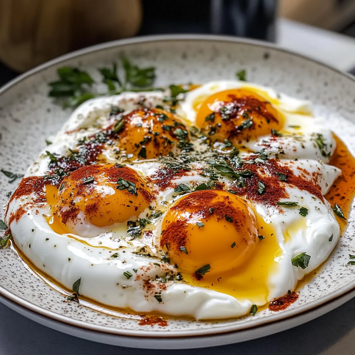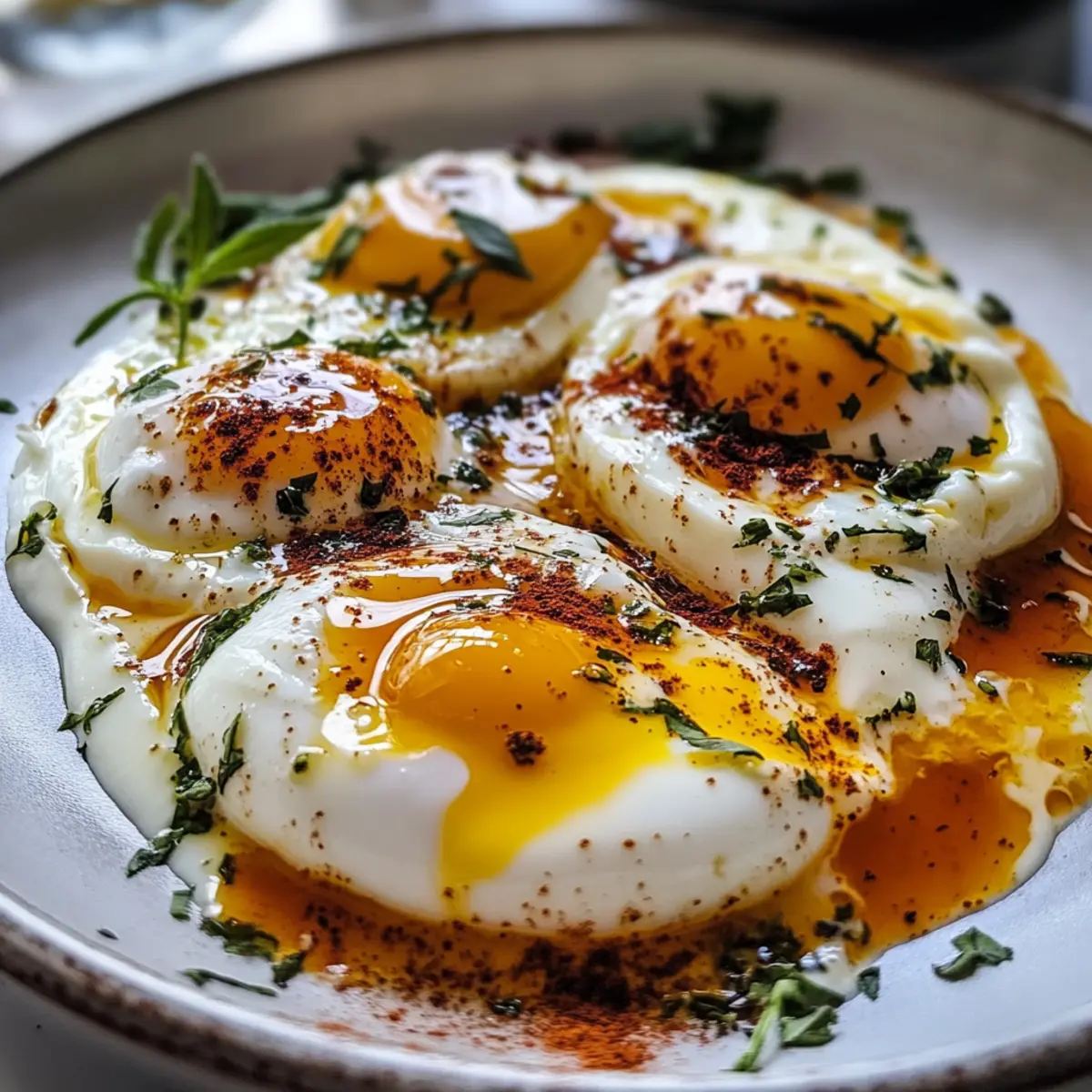 Wenn ich morgens in die Küche schreite, ist es ein wahres Fest der Sinne, das mich erwartet. Heute dreht sich alles um das köstliche Rezept für Türkische Eier, oder wie es auf Türkisch heißt: Cilbir. Diese verbreitete Mittelmeer-Spezialität vereint cremigen Joghurt mit perfekt pochierten Eiern und einer aromatischen, gewürzten Buttersauce. Der große Vorteil? Es ist ein proteinreiches Gericht, das sehr schnell zuzubereiten ist – ideal für alle, die auf der Suche nach einer leckeren Abwechslung zum typischen Frühstück sind. Egal, ob zum ersten Mahl oder als genussvoller Snack, diese Eier sind eine Einladung, den Tag mit einem Hauch von Orient zu beginnen. Bereit, mehr über dieses wundervolle Rezept zu erfahren? Warum sind Türkische Eier ein Muss? Geschmacksexplosion: Die perfekte Kombination aus cremigem Joghurt und würzigen Butternoten macht jedes Biss zu einem Erlebnis. Einfach zuzubereiten: Mit nur wenigen Zutaten und einfachen Schritten zaubern Sie im Handumdrehen ein beeindruckendes Gericht. Vielfalt der Aromen: Diese Eier lassen sich nach Belieben anpassen – probieren Sie frische Kräuter oder sogar eine vegane Variante mit Tofu! Gesund und proteinreich: Ein ideales Frühstück für einen energischen Start in den Tag, das auch Ihre Fitness-Ziele unterstützt. Ideal für Gäste: Beeindrucken Sie Freunde und Familie mit dieser orientalischen Köstlichkeit, die jede Mahlzeit aufwertet. Eier Zutatenliste Für den Joghurt • Joghurt – Die Basis für das Gericht, die Cremigkeit vermittelt. Substitution: Verwenden Sie griechischen Joghurt für eine dickere Konsistenz. • Frischer Dill – Fügt einen frischen, kräuterigen Geschmack hinzu. Hinweis: Bei Nichtverfügbarkeit durch Minze oder Petersilie ersetzen. • Frische Minzblätter – Verstärkt das Aroma und den Geschmack. Substitution: Verwenden Sie Petersilie oder Koriander als Alternativen. • Knoblauchzehe – Sorgt für Tiefe und Geschmack; verwenden Sie eine halbe Zehe, um nicht zu dominant zu sein. Zubereitung: Zerkleinern oder reiben Sie ihn für eine bessere Integration. • Salz und Pfeffer – Zum Abschmecken nach Belieben. Für die Eier • Eier – Hauptquelle des Proteins; frische Eier ergeben bessere Poche-Ergebnisse. Hinweis: Ein Ei pro Person wird für das Frühstück empfohlen. • Essig – Hilft, die Struktur des Eiweißes beim Pochieren zu bewahren. Hinweis: Verwenden Sie weißen Essig für die besten Ergebnisse. Für die Gewürzte Butter • Butter – Lieferant von Fett für die gewürzte Sauce, verstärkt den Reichtum. Substitution: Olivenöl kann für eine leichtere Version eingesetzt werden. • Chiliflocken – Verleiht Schärfe und Geschmackstiefe. Hinweis: Passen Sie die Menge je nach Schärfevorliebe an. • Räucherpaprika – Fügt der Buttersauce einen rauchigen Reichtum hinzu. Substitution: Verwenden Sie bei Bedarf normale Paprika. Schritt-für-Schritt-Anleitung für Eier auf Türkische Art Step 1: Joghurtmischung zubereiten In einer Schüssel den fein gehackten Dill, die frischen Minzblätter und die zerdrückte Knoblauchzehe zusammen mit dem Joghurt, Salz und Pfeffer gut vermischen. Rühren Sie die Mischung ein paar Minuten lang, bis sie cremig und gleichmäßig ist. Stellen Sie die fertige Joghurtmischung zur Seite und lassen Sie die Aromen 10 Minuten ziehen, um intensivere Geschmackserlebnisse zu erzielen. Step 2: Wasser für die Eier vorbereiten Einen tiefen Topf mit Wasser füllen und zum Kochen bringen. Fügen Sie einen Schuss weißen Essig hinzu, um die Struktur der Eiweiße beim Pochieren zu stabilisieren. Reduzieren Sie die Hitze, sodass das Wasser nur leicht köchelt, und rühren Sie mit einem Löffel, um einen kleinen Strudel zu erzeugen—das ist perfekt für das Pochieren der Eier. Step 3: Eier pochieren Nehmen Sie die frischen Eier und schlagen Sie sie vorsichtig in eine Tasse. Lassen Sie jedes Ei vorsichtig in die Mitte des Strudels gleiten, und pochieren Sie sie für etwa 2-3 Minuten. Die Eiweiße sollten fest, die Eigelbe jedoch noch flüssig sein. Überwachen Sie den Garprozess, bis die Eier die gewünschte Konsistenz erreicht haben, und entfernen Sie sie dann mit einem Schöpflöffel. Step 4: Gewürzte Butter zubereiten In einer kleinen Pfanne die Butter bei mittlerer Hitze schmelzen, bis sie leicht schäumt. Sobald die Butter zischt, fügen Sie die Chiliflocken und das geräucherte Paprika hinzu und rühren Sie alles etwa 1 Minute lang, bis die Gewürze gut mit der Butter vermischt sind. Die aromatische Mischung wird gleichmäßig intensiv und schmackhaft—ideal für die abschließende Garnierung. Step 5: Anrichten der Eier Auf einem Servierteller eine großzügige Schicht der vorbereiteten Joghurtmischung verstreichen. Platzieren Sie vorsichtig die pochierten Eier darauf; achten Sie darauf, die Eier nicht zu beschädigen. Das Zusammenspiel zwischen dem cremigen Joghurt und den zarten Eiern schafft eine harmonische Grundlage für das Gericht. Step 6: Mit Gewürzbutter versehen Geben Sie die gewürzte Butter gleichmäßig über die pochierten Eier, sodass die Aromen sie umhüllen. Garnieren Sie das Gericht zusätzlich mit frischen Kräutern und einer Prise schwarzem Pfeffer. Diese letzten Schritte bringen das Gericht nicht nur optisch zum Strahlen, sondern intensivieren auch den köstlichen Geschmack der Eier auf türkische Art. Rezeptvorbereitung für Eier auf Türkische Art Die Eier auf Türkische Art (Cilbir) sind perfekt für die Meal Prep geeignet! Sie können die Joghurtmischung bis zu 3 Tage im Voraus zubereiten und im Kühlschrank aufbewahren, wodurch die Aromen beim Ziehen sogar intensiver werden. Achten Sie darauf, den Knoblauch erst kurz vor dem Servieren hinzuzufügen, um die Frische zu bewahren. Die pochierten Eier sollten idealerweise frisch zubereitet werden, da sie am besten direkt nach dem Pochieren serviert werden. Wenn Sie bereit sind, das Gericht zu genießen, verstreichen Sie einfach die Joghurtmischung auf einem Teller, legen die frisch 