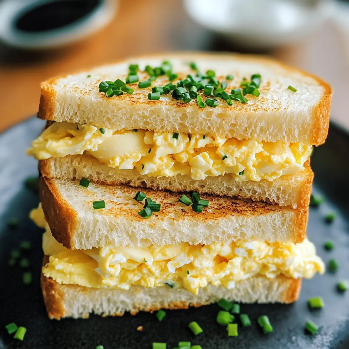 Schneiden Sie die Sandwiches in der Mitte durch, garnieren Sie sie nach Wunsch mit Schnittlauch und servieren Sie sie sofort. Genießen Sie Ihr köstliches Eiersandwich mit japanischem Flair als schnelle Mahlzeit oder als Teil eines Lunchpakets!