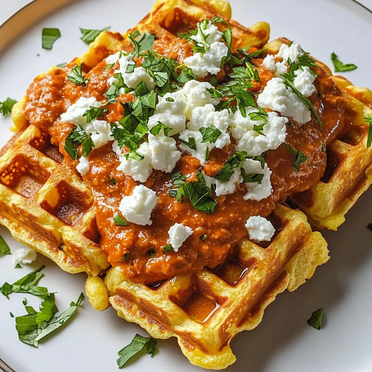 Der Duft von frisch gebackenem Brot hat mich in die Küche gelockt, doch heute wollte ich etwas Außergewöhnliches zaubern. Die Eierwaffeln mit Romesco sind eine köstliche Abwechslung zum gewohnten Frühstück und bringen ein Stück mediterranes Flair auf den Tisch. Diese glutenfreien und vegetarischen Waffeln sind nicht nur blitzschnell zubereitet, sie sind auch ein echter Hingucker und perfekt für Gäste oder als sättigendes Mittagessen. Die Kombination aus flaumigen Eiern und der rauchigen Romesco-Sauce sorgt für ein Geschmackserlebnis, das selbst die schnellsten Fast-Food-Gerichte in den Schatten stellt. Probiert es aus und lasst euch überraschen, wie einfach es ist, ein Gourmetgericht zu Hause zu kreieren! Was sagt ihr, bereit für ein neues Frühstücks-Abenteuer? Warum wirst du diese Eierwaffeln lieben? Einfachheit: Diese Eierwaffeln mit Romesco sind leicht zuzubereiten und benötigen keine speziellen Kochkünste. Selbst Anfänger können sie problemlos meistern. Vielfältig: Du kannst die Waffeln ganz nach deinem Geschmack variieren! Füge frisches Gemüse oder unterschiedliche Käsesorten hinzu, um dein persönliches Rezept zu kreieren. Gesund und nahrhaft: Die Verwendung von Eiern und frischen Zutaten macht sie zu einer gesunden Wahl, ideal für jeden, der auf eine ausgewogene Ernährung Wert legt. Gourmet-Geschmack: Die rauchige Romesco-Sauce verleiht diesen Waffeln einen besonderen Pfiff und verwandelt ein einfaches Frühstück in ein schmackhaftes Erlebnis, das Gäste beeindrucken wird. Schnell und zeitsparend: Mit einer Zubereitungszeit von nur wenigen Minuten sind diese Waffeln die perfekte Lösung für hektische Morgen oder spontane Brunch-Events. Vergiss nicht, sie mit einem frischen Salat oder geröstetem Gemüse zu servieren, um ein ausgewogenes Mahl zu genießen! Eierwaffeln mit Romesco Zutaten Für den Waffelteig Eier – Die Hauptzutat für Struktur und Protein; große Eier sorgen für beste Ergebnisse. Milch – Fügt Feuchtigkeit hinzu; ungesüßte Mandelmilch ist eine gute, milchfreie Alternative. Salz – Hebt den Geschmack hervor; nach Belieben anpassen. Schwarzer Pfeffer – Sorgt für eine milde Schärfe; frisch gemahlen für besten Geschmack nutzen. Knoblauchpulver – Gibt Tiefe und Geschmack; frischer Knoblauch ist ebenfalls eine gute Wahl. Chopped Spinat oder Rucola (optional) – Fügt Nährstoffe und Farbe hinzu; kann weggelassen werden, wenn gewünscht. Für die Romesco-Sauce Geröstete rote Paprika (aus dem Glas oder selbstgemacht) – Herzstück der Sauce; frische, geröstete Paprika intensiviert den Geschmack. Mandeln (oder Haselnüsse) – Sorgt für Cremigkeit in der Romesco; jede Nuss kann je nach Vorliebe verwendet werden. Knoblauchzehe – Essenziell für die Tiefe der Sauce; Menge nach Geschmack anpassen. Tomatenmark – Trägt zur Reichhaltigkeit der Sauce bei. Rotweinessig oder Zitronensaft – Bringt Frische in den Geschmack; Zitronensaft sorgt für eine lebhaftere Note. Olivenöl – Wird zur Emulgierung der Sauce verwendet; extra natives Olivenöl für besseren Geschmack wählen. Geräucherter Paprika – Fügt der Sauce Rauchnote hinzu und verfeinert den Charakter. Für das Topping Krümeliger Ziegenkäse – Cremiger Belag für die Waffeln; kann durch Feta, Ricotta oder griechischen Joghurt ersetzt werden. Frische Kräuter (Petersilie, Basilikum oder Schnittlauch) – Fügt Frische hinzu; je nach Verfügbarkeit anpassen. Extra Olivenöl (optional) – Für einen reichen, schmackhaften Abschluss. Mikrogreens (optional) – Zur garnischen Dekoration und visuellen Aufwertung. Lass dich inspirieren und genieße die Köstlichkeiten dieser Eierwaffeln mit Romesco! Step-by-Step Instructions for Eierwaffeln mit Romesco Step 1: Eiermischung vorbereiten In einer großen Schüssel die Eier gründlich verquirlen und die Milch, Salz, schwarzen Pfeffer sowie Knoblauchpulver hinzufügen. Wenn gewünscht, den gehackten Spinat oder Rucola unterrühren. Die Mischung sollte gut vermengt sein und eine homogene Konsistenz aufweisen, bevor Sie mit dem nächsten Schritt fortfahren. Step 2: Eierwaffeln backen Das Waffeleisen gemäß den Herstelleranweisungen vorheizen und leicht einfetten, um ein Ankleben zu verhindern. Gießen Sie genug von der Eiermischung in die Mitte des Waffeleisens, sodass sie gleichmäßig verteilt wird. Backen Sie die Waffeln 3-5 Minuten lang, bis sie goldbraun und fest sind. Wiederholen Sie den Vorgang mit dem restlichen Teig für gleichmäßige Portionen. Step 3: Romesco-Sauce zubereiten In einem Mixer die gerösteten roten Paprika, Mandeln, die Knoblauchzehe, Tomatenmark, Rotweinessig oder Zitronensaft sowie geräucherten Paprika hinzufügen. Alles gut vermengen, bis eine glatte Konsistenz erreicht ist. Während des Mixens langsam das Olivenöl einträufeln, um die Sauce zu emulgieren. Abschmecken und nach Bedarf mit Salz und Pfeffer nachwürzen. Step 4: Anrichten und Servieren Die goldbraunen Eierwaffeln auf Tellern anrichten und großzügig mit der warmen Romesco-Sauce überziehen. Mit krümeligem Ziegenkäse und frischen Kräutern bestreuen. Nach Belieben mit einem Spritzer Olivenöl und Mikrogreens garnieren, um die Präsentation zu verschönern. Sofort servieren und genießen! Lagerungstipps für Eierwaffeln mit Romesco Zimmertemperatur: Ideal sind die frisch zubereiteten Eierwaffeln, die etwa 30 Minuten bei Zimmertemperatur aufbewahrt werden können. Achte darauf, sie abzudecken, um ein Austrocknen zu verhindern. Kühlschrank: Bewahre Reste der Eierwaffeln in einem luftdichten Behälter im Kühlschrank auf, wo sie bis zu 3 Tage frisch bleiben. Vor dem Verzehr einfach kurz in der Mikrowelle oder im Ofen aufwärmen. Gefrierschrank: Die Eierwaffeln können bis zu 2 Monate eingefroren werden. Lege sie zwischen Schichten von Backpapier in einen luftdichten Behälter, um ein Ankleben zu vermeiden. Vor dem Genuss im Kühlschrank auftauen und nach Belieben aufwärmen. Romesco-Sauce: Die Romesco-Sauce hält sich bis zu 1 Woche im