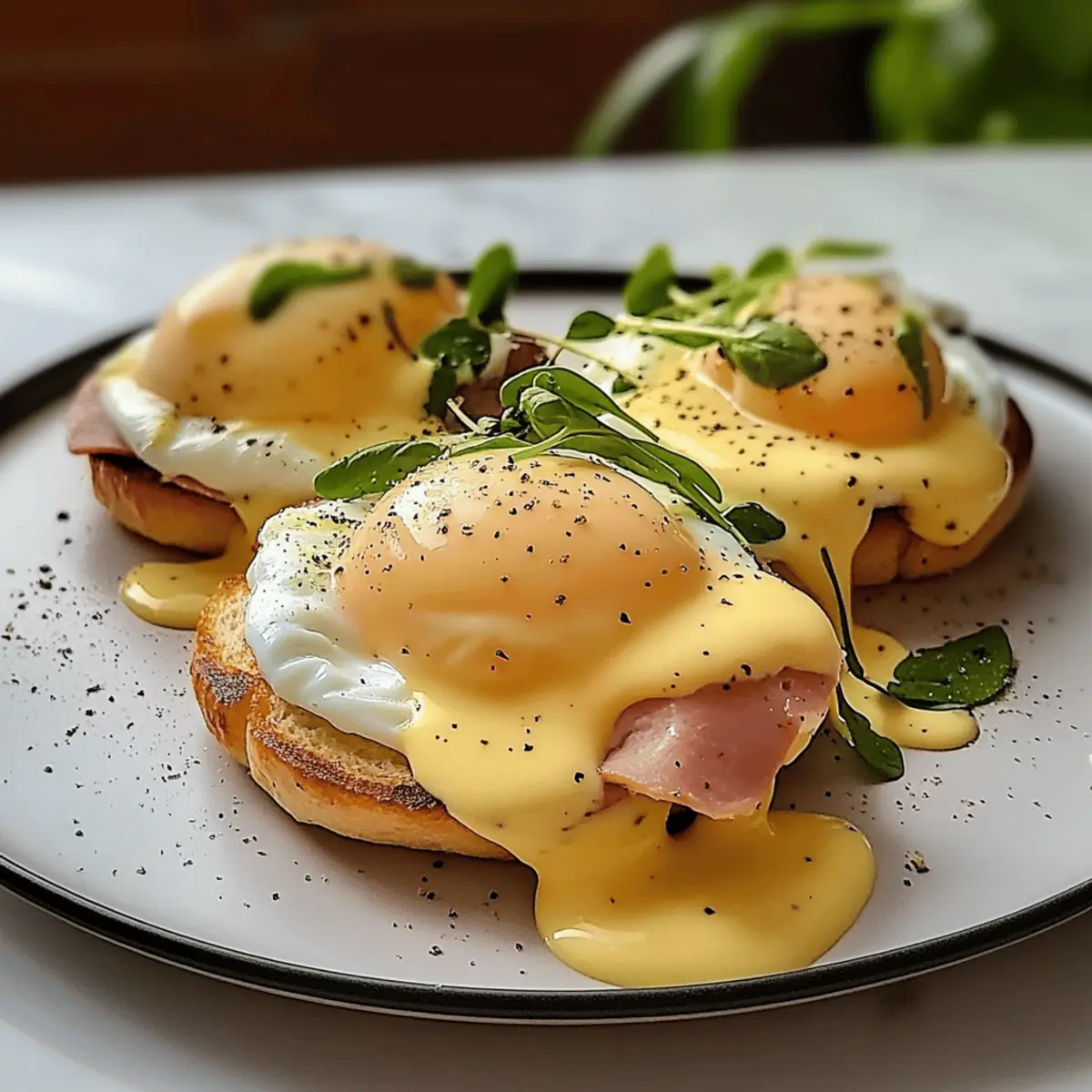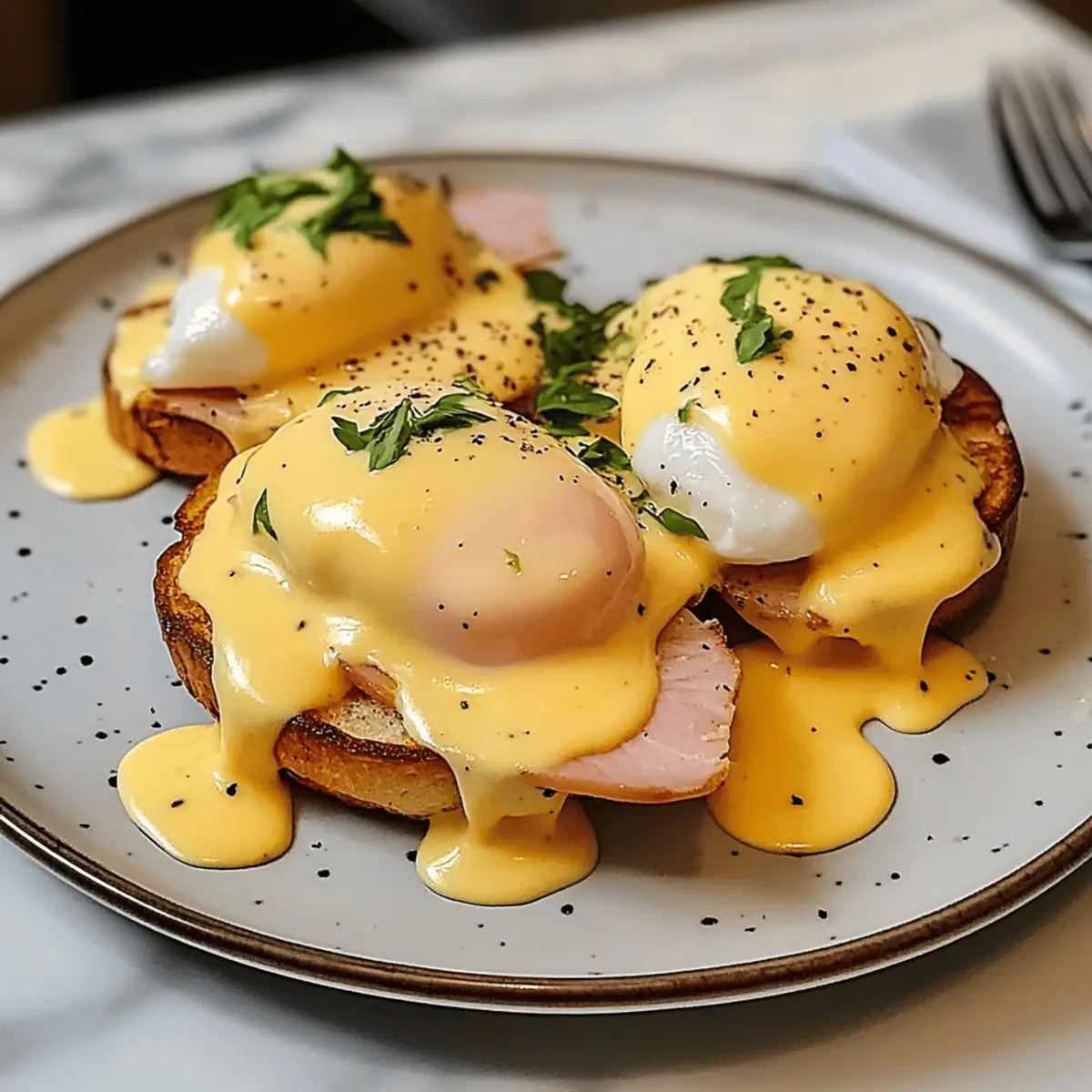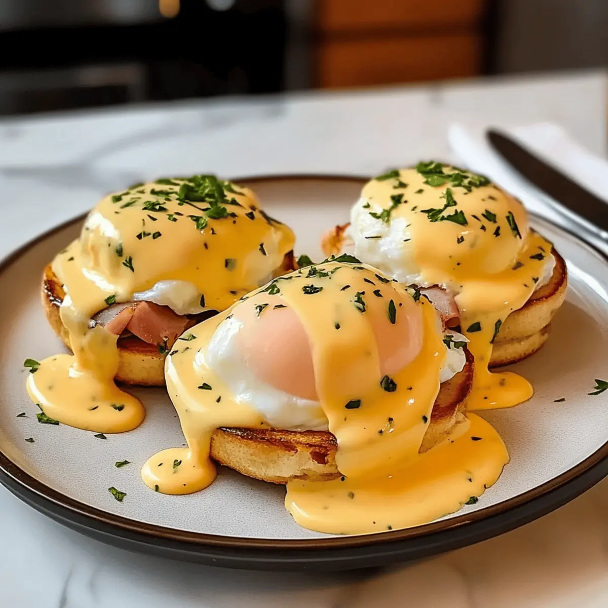 Es gibt wenig, das einen sonntäglichen Morgen so perfekt macht wie die Vorfreude auf ein klassisches Frühstück mit Eggs Benedict. Wenn ich an diese köstliche Kombination aus perfectly poached eggs, knusprigem Schinken und warmer Hollandaise denke, läuft mir das Wasser im Mund zusammen. Dieses unglaubliche ultimative Rezept für alle Liebhaber ist nicht nur ein echter Brunch-Klassiker, sondern auch eine wahre Freude für die Sinne. Die Zubereitung ist unkompliziert und bietet in kürzester Zeit ein unvergessliches Frühstückserlebnis. Und nicht nur das: Mit dieser Kreation beeindruckst du nicht nur deine Freunde, sondern kannst auch jeden Morgen in ein kleines Festmahl verwandeln. Bereit, deine Kochkünste aufzupeppen und etwas Magie in deine Küche zu bringen? Lass uns gemeinsam in die Welt der Eggs Benedict eintauchen! Warum wirst du dieses Rezept lieben? Klassisch und zeitlos: Dieses Rezept für Eggs Benedict ist eine perfekte Kombination aus herzhaften und cremigen Aromen, die jeden Brunch unvergesslich machen. Einfache Zubereitung: Mit nur wenigen Zutaten und klaren Schritten kannst du in kürzester Zeit ein Meisterwerk auf den Tisch zaubern. Vielfältige Variationen: Ob mit Schinken, Speck oder sogar geräuchertem Lachs – du kannst es nach deinem Geschmack anpassen. Experimentiere auch mit verschiedenen Kräutern in der Hollandaise! Beeindruckender Genuss: Deine Gäste werden von der ansprechenden Präsentation und dem köstlichen Geschmack begeistert sein. Ideal für jeden Anlass: Ob für ein gemütliches Wochenende oder ein besonderes Ereignis – dieses Rezept ist immer ein Hit. Mach dich bereit, beim nächsten Frühstücksbrunch für Aufsehen zu sorgen! Zutaten für Eier Benedikt Für die Hollandaise-Sauce Butter – gibt der Sauce ihre cremige Konsistenz; verwende ungesalzene Butter für bessere Kontrolle. Eier-Gelb – unverzichtbar für die Emulgierung; achte auf frische Eier für eine optimale Textur. Zitronensaft – sorgt für die nötige Säure; kann bei Bedarf durch weißen Essig ersetzt werden. Dijon-Senf – bringt eine leichte Schärfe; optional, aber geschmacksverstärkend. Salz und Pfeffer – verbessern die Gesamtgeschmack; nach persönlichem Geschmack anpassen. Für die Eggs Benedict Eier – die Basis für das Pochen; sorg dafür, dass sie frisch sind für das beste Ergebnis. Englische Muffins – geben der Speise Struktur; toaste sie für eine knusprige Konsistenz. Schinken oder Speck – sorgt für herzhafte Aromen; kann durch kanadischen Speck oder geräucherten Lachs ersetzt werden. Schnittlauch oder Petersilie – zum Garnieren; bringt Frische und Farbe auf den Teller, optional, aber empfehlenswert. Genieße es, mit diesem unglaublichen Rezept für Eier Benedikt ein unvergessliches Frühstück zu kreieren! Schritt-für-Schritt-Anleitung für Ein unglaubliches Rezept für Eier Benedikt Step 1: Hollandaise-Sauce vorbereiten Schmelze die ungesalzene Butter in einem kleinen Topf bei niedriger Hitze und lass sie leicht abkühlen. In einer Schüssel verrühre die frischen Eigelbe mit Zitronensaft und Dijon-Senf, bis die Mischung cremig ist. Füge die geschmolzene Butter langsam hinzu, während du kontinuierlich mit einem Schneebesen rührst, bis die Sauce dicklich wird. Mit Salz und Pfeffer abschmecken. Step 2: Eier pochieren Setze einen großen Topf mit Wasser auf den Herd und bringe ihn bei mittlerer Hitze zum sanften Simmern. Knacke die frischen Eier in kleine Schalen. Lasse jeden Eier vorsichtig ins simmernde Wasser gleiten und poche sie für 3-4 Minuten, bis die Eiweiße fest, aber die Eigelbe noch weich sind. Nimm sie mit einem Schaumlöffel heraus und lasse sie kurz auf Küchenpapier abtropfen. Step 3: Muffins toasten Während die Eier pochieren, schneide die Englischen Muffins in Hälften und toaste sie in einem Toaster oder einer Pfanne, bis sie goldbraun und knusprig sind. So erhältst du die perfekte Basis für dein Gericht und einen wunderbaren Kontrast zur cremigen Hollandaise und dem weichen Ei. Step 4: Schinken oder Speck anbraten Erhitze eine große Pfanne bei mittlerer Hitze und füge die Scheiben von Schinken oder Speck hinzu. Brate sie für 3-4 Minuten, bis sie schön knusprig sind und eine goldbraune Farbe annehmen. Die herzhafte Aromen des Schinkens werden das Gesamtbild deiner Eier Benedikt abrunden. Step 5: Gericht anrichten Um das Gericht zusammenzustellen, lege jede Hälfte des getoasteten Muffins auf einen Teller. Platziere eine Scheibe des knusprigen Schinkens darauf und setze das pochierte Ei darauf. Träufle großzügig die selbstgemachte Hollandaise-Sauce über das Ei und garniere das Ganze nach Belieben mit frisch gehacktem Schnittlauch oder Petersilie. Step 6: Servieren und genießen Serviere deine wundervollen Eier Benedikt direkt nach dem Anrichten, damit jeder die frisch zubereitete Hollandaise und die perfekte Konsistenz der Eier genießen kann. Du kannst ergänzend einen kleinen Salat oder frisches Obst dazu reichen, um ein ausgewogenes Frühstückserlebnis zu schaffen. Was passt zu Ein unglaubliches Rezept für Eier Benedikt? Es gibt viele köstliche Begleitungen, die deine Eggs Benedict zu einem unvergesslichen Frühstück machen und deine Gäste beeindrucken werden. Frischer Blattsalat: Ergänze die Cremigkeit der Hollandaise mit einem knackigen, leichten Salat. Ein Hauch von Balsamico-Dressing bringt frische Aromen ins Spiel. Geröstete Tomaten: Die süßen, saftigen Tomaten bieten einen wunderbaren Kontrast zu den herzhafteren Geschmäckern. Röste sie mit etwas Öl und Gewürzen für den perfekten Akzent. Kartoffel-Wedges: Knusprige Ofenkartoffeln bringen eine wunderbare Textur ins Spiel. Ihre Salzigkeit harmoniert perfekt mit dem Geschmack des Schinkens und der Eier. Fruchtige Smoothies: Ein fruchtiger Smoothie aus Banane und Beeren bietet eine süße Erfrischung. Er sorgt nicht nur für einen Farbklecks, sondern bringt auch gesunde Nährstoffe in dein Frühstück. Frisch gebrühter Kaffee: Eine Tasse kräftigen 