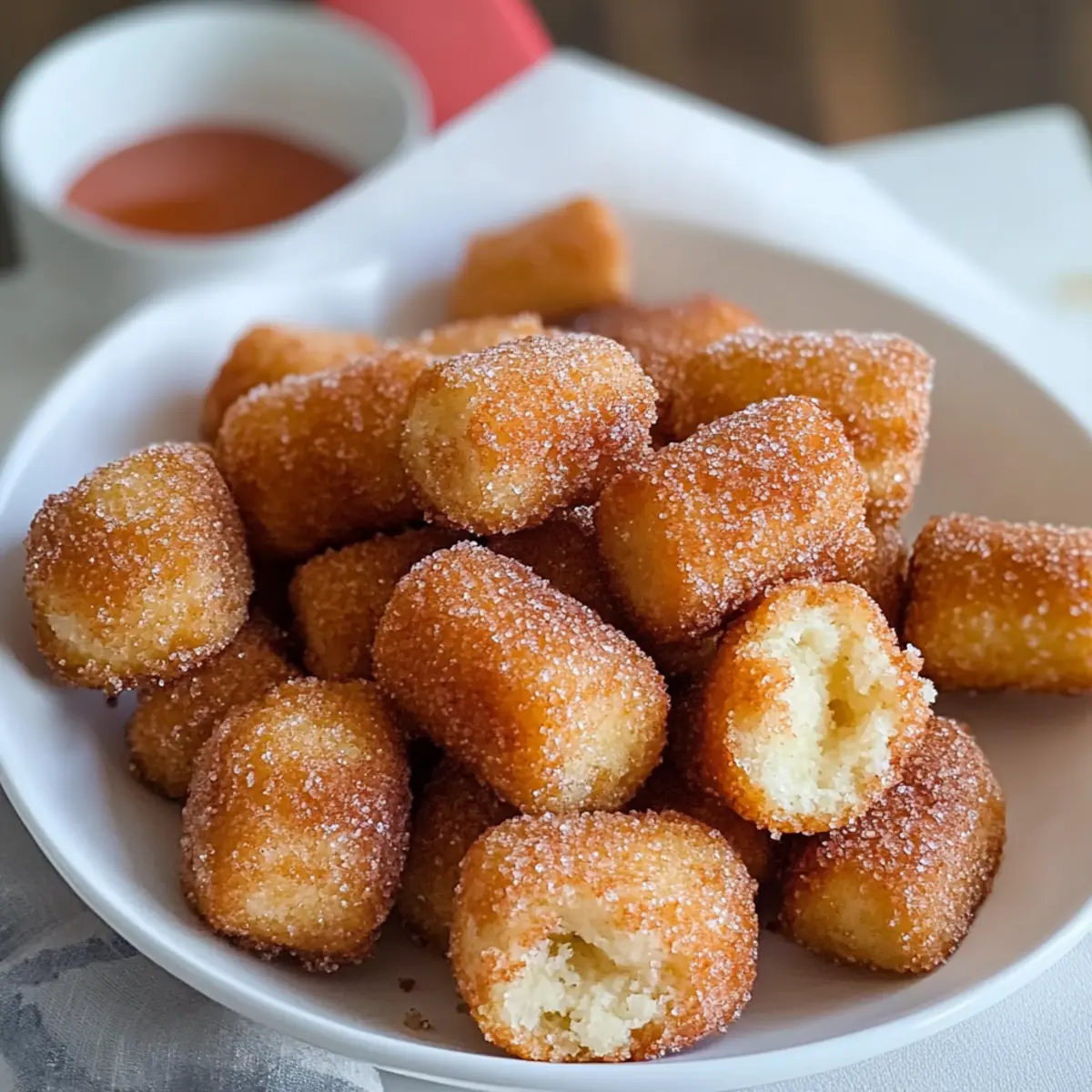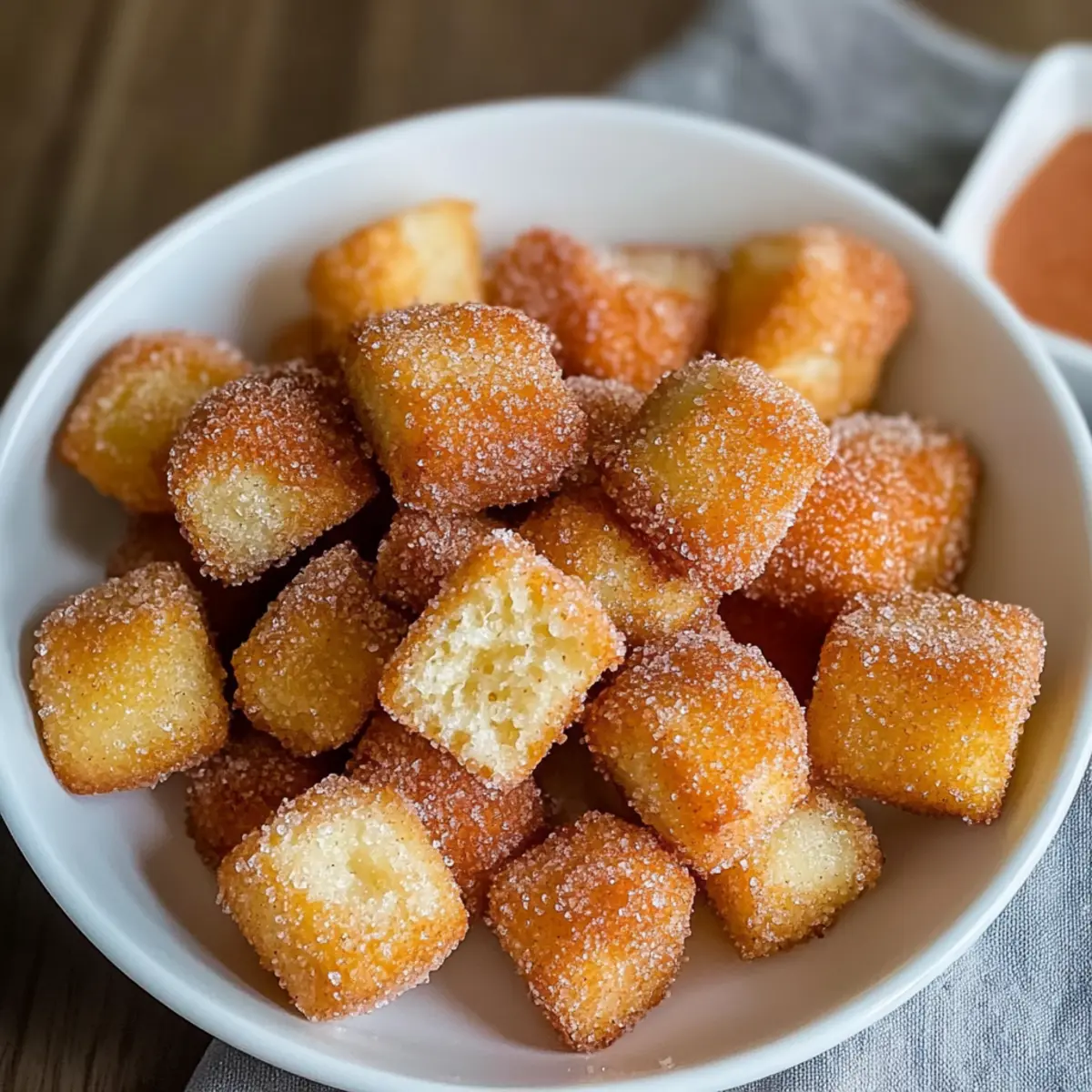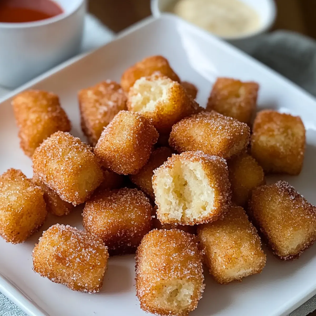 „Hast du schon einmal den unwiderstehlichen Duft von frisch gebackenen Churros verspürt und dir gewünscht, du könntest sie ganz ohne das Chaos des Frittierens genießen? Diese einfachen gebackenen Churro Bissen bringen genau dieses Erlebnis direkt in deine Küche – und das in weniger als 30 Minuten! Die Bissen sind außen mit einer knackigen Zimt-Zucker-Schicht überzogen und haben im Inneren eine fluffige, köstliche Textur. Sie sind perfekt für einen schnellen, süßen Snack und dazu noch einfach zuzubereiten, was dir Zeit für die wichtigen Dinge im Leben lässt. Bist du bereit, deine Liebsten mit diesen kleinen Leckereien zu begeistern? Lass uns loslegen!“ Warum wirst du diese Churro Bissen lieben? Einfachheit: Die Zubereitung ist kinderleicht und benötigt keine speziellen Kochkünste – perfekt für jeden! Schnell: In weniger als 30 Minuten sind diese köstlichen Bissen fertig, ideal für spontanen Dessert-Hunger. Wunderbarer Geschmack: Die Kombination aus Zimt und Zucker wird deine Geschmacksknospen verzaubern und nach mehr verlangen. Vielseitig: Du kannst sie mit verschiedenen Saucen wie Karamell oder Schokolade servieren, um die Begeisterung zu steigern. Gesunde Option: Ohne Frittieren sind sie eine leichtere Alternative, die trotzdem den süßen Genuss bietet. Familienfreundlich: Diese Churro Bissen sind ein Hit bei Groß und Klein – die perfekte Ergänzung für jede Gelegenheit! Einfache gebackene Churro Bissen Zutaten Für den Teig: • Allzweckmehl – Bildet die Basis der Bissen; für eine glutenfreie Variante kann glutenfreies Mehl verwendet werden. • Backpulver – Sorgt für eine luftige Textur; wichtig für das Aufgehen. • Zucker – Verleiht der Mischung Süße; auch für den Zuckerguss brauchbar. • Salz – Verstärkt den Geschmack; einfach schon aus Gewohnheit nicht weglassen! • Milch – Fügt Feuchtigkeit hinzu; kann auch mit Mandel-, Hafer- oder Kokosmilch ersetzt werden für eine milchfreie Option. • Ei – Bindet die Zutaten; einen Leinsamen-Ei-Ersatz verwenden für eine vegane Variante. • Geschmolzene Butter – Sorgt für Reichtum und Feuchtigkeit; wichtig für den Zimt-Zucker-Guss. • Vanilleextrakt – Fügt Tiefe und Geschmack hinzu. Für den Zimt-Zucker-Guss: • Zimt – Die Hauptgeschmackskomponente für den Guss; frisch verwenden für den besten Geschmack. • Zusätzlicher Zucker – Süßt den äußeren Teil der Churro Bissen und ergänzt den Zimtgeschmack. Die einfachen gebackenen Churro Bissen sind nicht nur schnell zuzubereiten, sondern auch vielseitig zu genießen – also lasse deiner Kreativität freien Lauf! Schritt-für-Schritt-Anleitung für Einfache gebackene Churro Bissen Step 1: Ofen vorheizen Heize deinen Ofen auf 175 °C (350 °F) vor und lege ein Backblech mit Backpapier aus. Dies sorgt dafür, dass die Einfache gebackene Churro Bissen gleichmäßig backen und nicht anhaften. Lass den Ofen ausreichend Zeit, um die richtige Temperatur zu erreichen, während du den Teig vorbereitest. Step 2: Teig zubereiten In einer großen Schüssel mische das Allzweckmehl, Backpulver, Zucker und Salz gründlich mit einem Schneebesen. Dies sorgt für eine gleichmäßige Verteilung aller trockenen Zutaten. Nimm dir etwa 3-5 Minuten Zeit, um sicherzustellen, dass die Mischung gut vermengt ist und keine Klumpen vorhanden sind. Step 3: Flüssigkeit hinzufügen Füge dann Milch, das Ei, geschmolzene Butter und Vanilleextrakt in die Schüssel mit den trockenen Zutaten hinzu. Rühre die Mischung vorsichtig um, bis sie gerade so kombiniert ist. Achte darauf, nicht zu lange zu rühren, da der Teig dann zäh werden könnte – ein paar Klumpen sind in Ordnung für die Einfache gebackene Churro Bissen. Step 4: Portionieren Nutze einen Esslöffel oder einen Portionierer, um kleine Portionen des Teigs gleichmäßig auf das vorbereitete Backblech zu setzen. Achte darauf, genügend Abstand zwischen den Bissen zu lassen, damit sie nicht zusammenbacken. So erhält jeder Biss Platz zum Aufgehen und wird schön geformt. Step 5: Backen Schiebe das Backblech in den vorgeheizten Ofen und backe die Churro Bissen für etwa 10-12 Minuten. Sie sind fertig, wenn sie goldbraun und schön aufgegangen sind. Während des Backens wirst du einen köstlichen Duft wahrnehmen, der deine Vorfreude steigert. Step 6: Zimt-Zucker-Guss vorbereiten Während die Bissen im Ofen sind, schmelze etwas Butter in einer kleinen Schüssel und mische Zimt und zusätzlichen Zucker in einer anderen Schüssel. Diese Mischung wird den Einfache gebackene Churro Bissen ihren charakteristischen Geschmack und die süße Kruste verleihen. Stelle sicher, dass alles bereit ist, wenn die Bissen fertig sind. Step 7: Guss auftragen Nimm die Churro Bissen aus dem Ofen und tauche sie sofort in die geschmolzene Butter. Rolle sie dann in der Zimt-Zucker-Mischung, bis sie gleichmäßig bedeckt sind. Dieser Schritt sorgt dafür, dass der Zuckerguss an den warmen Bissen haftet und ein köstliches, knuspriges Äußeres entsteht. Step 8: Servieren Serviere die Einfache gebackene Churro Bissen am besten direkt nach dem Eintauchen, während sie noch warm sind. Sie sind ein wunderbarer Genuss und perfekt für das Teilen mit Familie und Freunden. Überlege, sie mit verschiedenen Saucen zu kombinieren, um das Geschmackserlebnis zu variieren! Was passt zu einfachen gebackenen Churro Bissen? Erlebe die süße Komplexität dieser köstlichen Bissen und entdecke die perfekte Begleitung, die dein Dessert zu einem unvergesslichen Erlebnis macht. Creme Fraiche: Diese frische, cremige Begleitung bringt eine leichte Säure, die wunderbar zu der süßen Zimt-Zucker-Schicht passt. Karamellsauce: Diese samtige und süße Sauce sorgt für einen dekadenten Dip, der jeden Bissen noch schmackhafter macht und die Aromen intensiviert. Schokoladensauce: Eine reichhaltige Schokoladensauce ergänzt die süßen Bissen perfekt und verführt mit einer köstlichen Kombination aus Zartbitter und Süße. Frische Beeren: Himbeeren ode