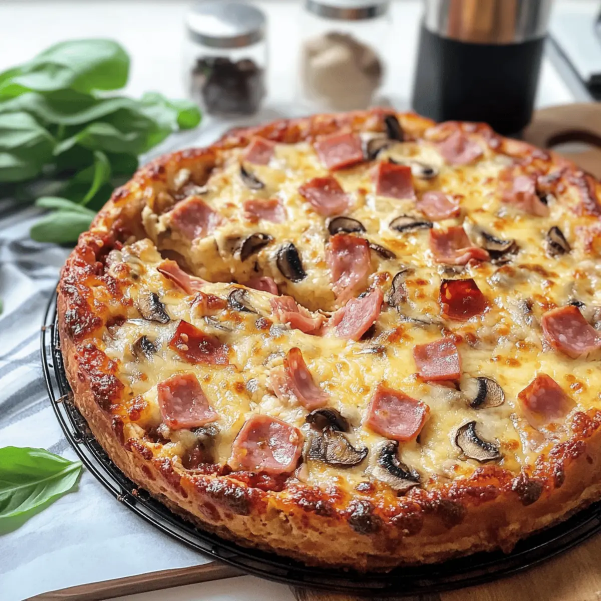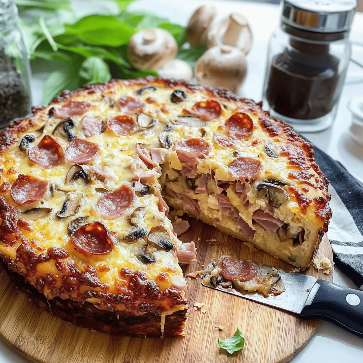 Einmal beim Stöbern in meinem liebsten Kochbuch stieß ich auf das Rezept für einen Einfachen Pizzakuchen, der sofort meine Aufmerksamkeit erregte. Dieser herzhafte Snack vereint die besten Eigenschaften von Pizza und Brot und eröffnet eine Welt voller Möglichkeiten. Ob für Partys, als Fingerfood oder ein kinderfreundlicher Snack – der Pizzakuchen ist unglaublich vielseitig und einfach zuzubereiten. Dank seiner flexiblen Zutaten ist er der perfekte Reste-Verbesserer und schmeckt nicht nur warm, sondern auch kalt wunderbar. Wer kann da nicht widerstehen? Habt ihr euch schon überlegt, welche Kombinationen ihr ausprobieren würdet? Lasst uns gleich in die Zubereitung eintauchen! Warum ist dieser Pizzakuchen so besonders? Vielseitigkeit: Der Einfacher Pizzakuchen ist nicht nur für eine Geschmacksrichtung geeignet. Du kannst ihn mit deinem Lieblingsgemüse oder Fleisch belegen und so jedes Mal neu erfinden. Einfache Zubereitung: Dieses Rezept benötigt nur grundlegende Kochfähigkeiten und verspricht im Handumdrehen eine leckere Mahlzeit. Perfektes Fingerfood: Ideal für Partys, Kindergeburtstage oder ein gemütliches Beisammensein – jeder wird begeistert sein! Köstlicher Geschmack: Die Kombination aus geschmolzenem Käse, herzhaftem Fleisch und einer goldenen Kruste sorgt für ein Geschmackserlebnis, das sowohl warm als auch kalt überzeugt. Resteverwertung: Du kannst Zutaten nach Lust und Laune kombinieren – perfekt, um übrig gebliebene Lebensmittel kreativ zu nutzen. Ein Genuss für alle: Ob groß oder klein, dieser Pizzakuchen wird zum Highlight auf jedem Buffet. Probiere ihn unbedingt aus und entdecke auch die weiteren Variation Ideas für noch mehr Inspiration! Einfacher Pizzakuchen Zutaten • Dieser köstliche Pizzakuchen benötigt nur einfache Zutaten, die du sicher schon zu Hause hast! Für den Teig Milch – Flüssigkeit für den Teig, kann durch Pflanzenmilch ersetzt werden. Mehl (Type 405) – Grundlage für den Teig; glutenfreies Mehl ist eine gute Alternative. Eier (Größe M) – Bindemittel, pflanzliche Alternativen wie Leinsamen-Ei sind ebenfalls möglich. Salz – Grundgeschmack, nach Belieben anpassen. Pfeffer (gemahlen) – Würze für den Teig, nach Geschmack hinzufügen. Italienische Kräuter (getrocknet) – Würze für mehr Aroma, Oregano oder Basilikum als Alternativen verwenden. Für die Füllung Salami – Geschmacksrichtung und Proteinquelle; kann durch andere Wurstsorten oder vegetarische Alternativen ersetzt werden. Kochschinken – Ergänzung des Geschmacks; vegetarielles pflanzliches Produkt als Ersatz nutzen. Champignons – Für zusätzliche Textur und Geschmack; andere Gemüse wie Paprika oder Zucchini sind ebenfalls möglich. Gouda – Hauptkäse für den Käsegeschmack; kann durch Emmentaler oder veganen Käse ersetzt werden. Parmesan – Erhöhung des Umami-Geschmacks; optional weglassen oder durch einen anderen Hartkäse ersetzen. Step-by-Step Instructions für Einfacher Pizzakuchen Step 1: Ofen vorheizen und Form vorbereiten Heize den Backofen auf 180 °C (160 °C Umluft) vor. Lege den Boden einer 26 cm Springform mit Backpapier aus und fette gleichzeitig den Rand der Form mit etwas Butter ein, damit der Pizzakuchen später problemlos herausgenommen werden kann. Step 2: Zutaten vorbereiten Schneide die Salami, den Kochschinken und die Champignons in kleine Würfel. Reibe den Gouda und den Parmesan schön fein. Diese Schritte sind wichtig, um gleichmäßige Füllungen zu erhalten, die sich gut im Einfachen Pizzakuchen verteilen lassen und ein homogener Genuss entsteht. Step 3: Teigmischung anrühren Gib in eine große Schüssel die Milch, die Eier, das Mehl sowie die getrockneten italienischen Kräuter, Salz und Pfeffer. Rühre die Mischung gründlich mit einem Schneebesen oder Handmixer, bis ein glatter Teig entsteht. Der Teig sollte eine cremige Konsistenz haben, die später für die perfekte Grundlage des Pizzakuchens sorgt. Step 4: Füllungen unterrühren Integriere den geriebenen Käse sowie die zuvor geschnittenen Füllungen aus Salami, Kochschinken und Champignons in den Teig. Mische alles gut durch, sodass die Zutaten gleichmäßig im Teig verteilt sind. So wird jeder Biss in den Einfachen Pizzakuchen geschmacklich intensiv und abwechslungsreich. Step 5: Teigmischung in die Form füllen Gieße die vorbereitete Mischung gleichmäßig in die mit Backpapier ausgelegte und gefettete Springform. Achte darauf, dass die Masse gleichmäßig verteilt ist, um ein gleichmäßiges Backen und eine schöne goldene Kruste zu erzielen. Step 6: Backen Schiebe die Springform in den vorheizten Ofen und backe den Pizzakuchen für etwa 35-40 Minuten. Der Pizzakuchen ist fertig, wenn die Oberfläche goldbraun und fest ist. Ein Holzstäbchen, das in die Mitte gestochen wird, sollte sauber herauskommen, damit du sicher sein kannst, dass er durchgebacken ist. Step 7: Abkühlen und Servieren Lass den Einfachen Pizzakuchen nach dem Backen etwa 5 Minuten in der Form abkühlen. Danach löse vorsichtig den Rand der Springform und entferne diese, um den Kuchen vollständig abkühlen zu lassen. So bleibt die Form schön und der Pizzakuchen wird schnell servierfertig. Lagerungstipps für Einfacher Pizzakuchen Kühlschrank: Bewahre den Pizzakuchen gut abgedeckt im Kühlschrank auf, um ihn bis zu 3 Tage frisch zu halten. Verwende Frischhaltefolie oder einen luftdichten Behälter, um das Austrocknen zu verhindern. Tiefkühler: Der Pizzakuchen kann für bis zu 2 Monate eingefroren werden. Schneide ihn in Portionen und wickele jede in Alufolie oder gefriergeeignete Folie, um Gefrierbrand zu vermeiden. Aufwärmen: Um Reste aufzuwärmen, erhitze den Pizzakuchen im Ofen bei 180 °C für 10-15 Minuten oder bis er durchgehend warm ist. So bleibt er schön knusprig und lecker. Reste verwerten: Der Kuchen eignet sich hervorragend für kreative Snack-Ideen. Kombiniere ihn mit einem frischen Salat oder serviere ihn mit einer würzigen Soße für zusätzlichen Geschmack. Bereit