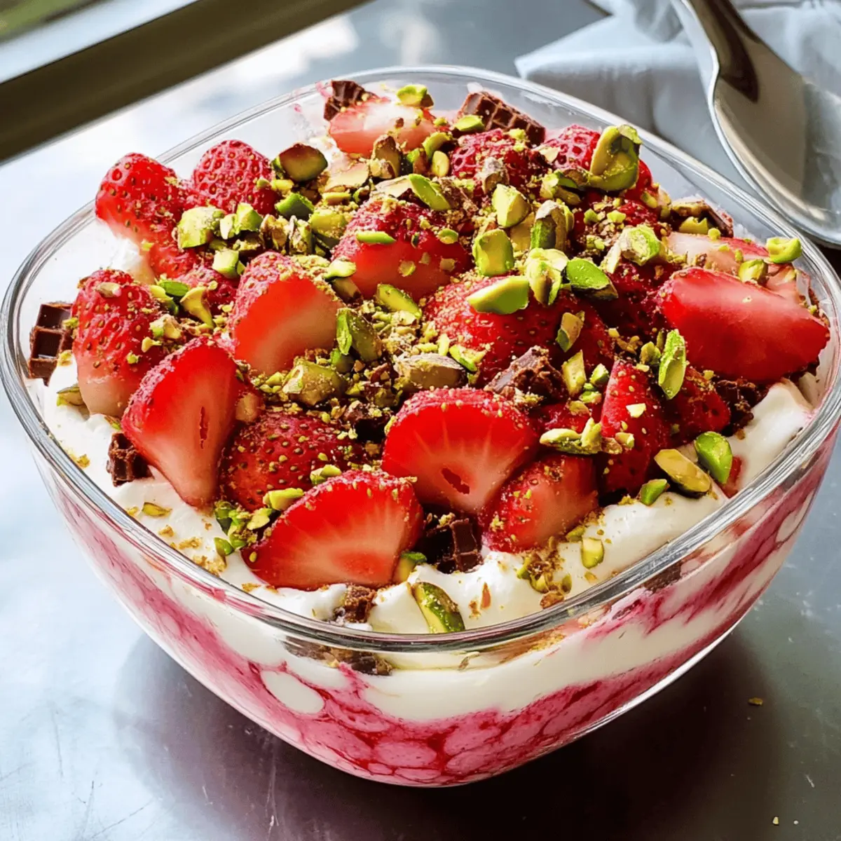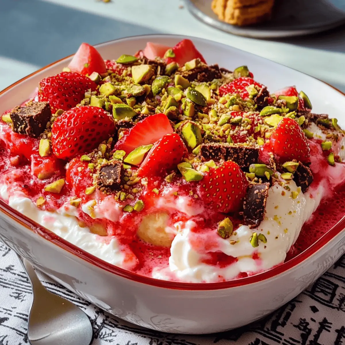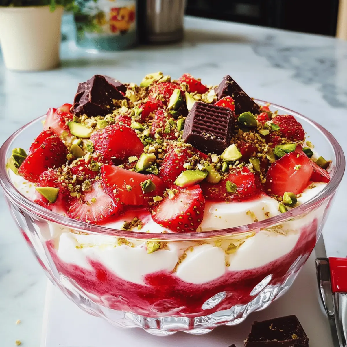 Die ersten warmen Sonnenstrahlen kündigen den Sommer an und ich kann nicht anders, als an ein erfrischendes Dessert zu denken! Mein Einfaches Erdbeerkuss-Dessert verspricht nicht nur eine süße Umarmung aus saftigen Erdbeeren und cremigem Quark, sondern ist auch in nur 15 Minuten zubereitet – perfekt für entspannte Abende mit Freunden oder die Familie. Ob als überraschendes Highlight beim Grillfest oder einfach nur zum Genießen auf dem Balkon, dieses Rezept ist ein echter Publikumsliebling und natürlich ohne Backen. Mit der Kombination aus frischen Aromen und einer ansprechenden Textur wird jeder Löffel zu einem kleinen Genussmoment. Ich kann es kaum erwarten, euch zu zeigen, wie ihr dieses unwiderstehliche Dessert selbst zaubern könnt! Seid ihr bereit, den Sommer auf eure Teller zu bringen? Warum ist dieses Erdbeerkuss-Dessert unwiderstehlich? Einfachheit in der Zubereitung: In nur 15 Minuten ist euer köstliches Erdbeerkuss-Dessert fertig – ideal, wenn die Zeit drängt! Frische und Geschmack: Die Kombination aus saftigen Erdbeeren und cremigem Quark bringt den Sommer direkt in eure Küche. Crowd-Pleaser: Egal ob beim Grillfest oder einem entspannten Abend, dieses Dessert wird garantiert zum Star des Abends. Vielseitige Variationen: Verändert die Beeren oder die Joghurt-Sorten für immer neue Geschmackserlebnisse und kreative Akzente. Gesunde Zutaten: Mit Quark und griechischem Joghurt bietet es eine proteinreiche, leichtere Süßigkeit für heiße Sommertage. Schnappt euch gleich die frischen Erdbeeren und probiert das Rezept aus – es lohnt sich! Einfaches Erdbeerkuss-Dessert Zutaten • Hinweis: Hier sind die Zutaten für euer einfaches Erdbeerkuss-Dessert – lasst uns mit diesen frischen und köstlichen Zutaten beginnen! Für die Erdbeerschicht Erdbeeren (Strawberries) – der Hauptgeschmacksträger; substituiert mit saisonalen Beeren für mehr Vielfalt. Zucker (Sugar) – sorgt für die nötige Süße; passt die Menge je nach Süße der Erdbeeren an. Für die cremige Schicht Magerquark (Low-fat Quark) – die Basis für die cremige Schicht; auch griechischer Joghurt ist eine tolle Alternative. Griechischer Joghurt (Greek Yogurt) – bringt zusätzliche Cremigkeit; benutzt einfachen Joghurt, um zugesetzten Zucker zu vermeiden. Flüssiger Honig (Liquid Honey) – ein natürlicher Süßstoff; könnt ihr auch durch Ahornsirup ersetzen, um das Dessert vegan zu machen. Bio-Zitrone (Organic Lemon) – verleiht Frische; ersetzt die Zitrone durch Limette für eine spannende Note. Für die Dekoration Schoko-Schaumküsse (Chocolate Kisses) – sorgen für einen unvergesslichen Schokoladengeschmack und Textur; dunkle Schokolade unterstützt einen intensiveren Geschmack. Gehackte Pistazien (Chopped Pistachios) – bringen einen leckeren Crunch; kann durch andere Nüsse oder Samen ersetzt werden. Jetzt sind die Grundlagen gelegt – lasst uns diesen Sommerspaß zubereiten! Step-by-Step Instructions für Einfaches Erdbeerkuss-Dessert Step 1: Erdbeeren vorbereiten Wascht zunächst die Erdbeeren gründlich unter fließendem Wasser und entfernt die grünen Blätter. Halbiert die Hälfte der Erdbeeren, gebt sie mit etwas Zucker in einen Mixer und püriert die Mischung, bis sie glatt ist. Die restlichen Erdbeeren in kleine Stücke schneiden und beiseitelegen. Diese frischen Erdbeerstücke werden später für eine leckere Textur im Einfachen Erdbeerkuss-Dessert verwendet. Step 2: Schokoladenküsse vorbereiten Nehmt die Schoko-Schaumküsse und trennt die Waffelböden vorsichtig von den Kussfüllungen. Legt die Waffelböden auf einen Teller und stellt sie zur späteren Verwendung beiseite. Diese werden eine knusprige Schicht in eurer Erdbeerkuss-Dessert-Kreation sein, also sorgt dafür, dass sie nicht zerbröckeln. Step 3: Cremige Schicht zubereiten In einer großen Schüssel kombiniert ihr den Magerquark, den griechischen Joghurt, flüssigen Honig, abgeriebene Zitronenschale und den Saft der Zitrone. Mit einem Handmixer oder einem Schneebesen alles gut vermengen, bis eine glatte, cremige Masse entsteht. Diese köstliche Quarkcreme bildet die Basis für euer Einfaches Erdbeerkuss-Dessert. Step 4: Schichten des Desserts Nehmt eine rechteckige Auflaufform und beginnt mit einer Schicht der Waffelböden, indem ihr sechs Stück gleichmäßig auf dem Boden verteilt. Darauf folgt eine großzügige Schicht der Quarkcreme, gefolgt von den klein geschnittenen Erdbeeren und dem Erdbeerpüree. Diese Schichtung sorgt für eine wunderschöne Optik und einen harmonischen Geschmack im Einfachen Erdbeerkuss-Dessert. Step 5: Abschluss der Schichtung Bröselt die verbleibenden Waffelböden gleichmäßig über die oberste Schicht des Desserts, um einen zusätzlichen Crunch zu erzeugen. Streut anschließend die gehackten Pistazien über die Dekorationsschicht. Dieser letzte Schliff verleiht eurem Einfachen Erdbeerkuss-Dessert nicht nur einen tollen Geschmack, sondern sieht auch ansprechend aus. Step 6: Abkühlen lassen Deckt die Auflaufform mit Frischhaltefolie ab und stellt sie für mindestens eine Stunde in den Kühlschrank. Dadurch kann sich die gesamte Aromenharmonie entfalten, und die Texturen werden perfekt miteinander verschmelzen. Euer Einfaches Erdbeerkuss-Dessert ist nun bereit, serviert zu werden! Step 7: Servieren Wenn ihr bereit seid, das Dessert zu genießen, nehmt die Form aus dem Kühlschrank und portioniert das Erdbeerkuss-Dessert in hübsche Dessertgläser oder Schalen. Diese elegante Präsentation sorgt für einen schönen Anblick bei jedem Anlass und lässt sich wunderbar genießen. Was passt zu Einfaches Erdbeerkuss-Dessert? Genießen Sie dieses sommerliche Dessert mit köstlichen Begleitern, die die Aromen des Erdbeerkuss-Desserts perfekt ergänzen. Frische Minzblätter: Bringen Sie einen Hauch von Frische und Aroma, die perfekt mit den süßen Erdbeeren harmonieren. Cremiges Vanilleeis: Ein Löffel Eis mit der fruchtigen Süße sorgt für eine köstliche, schmelzende Kombination und ein 