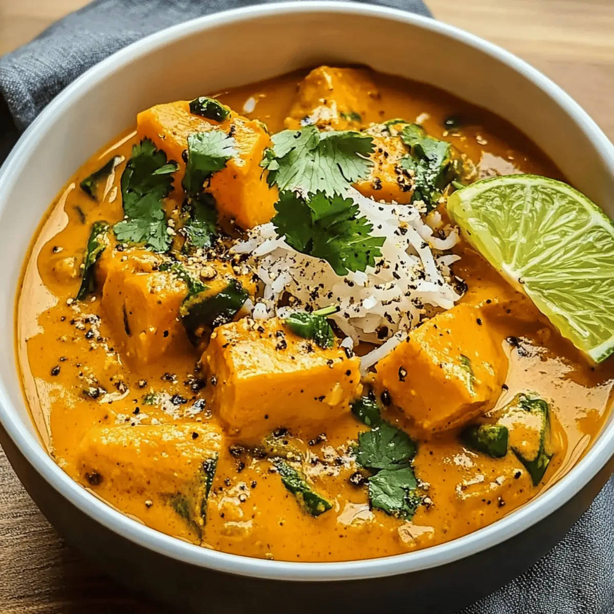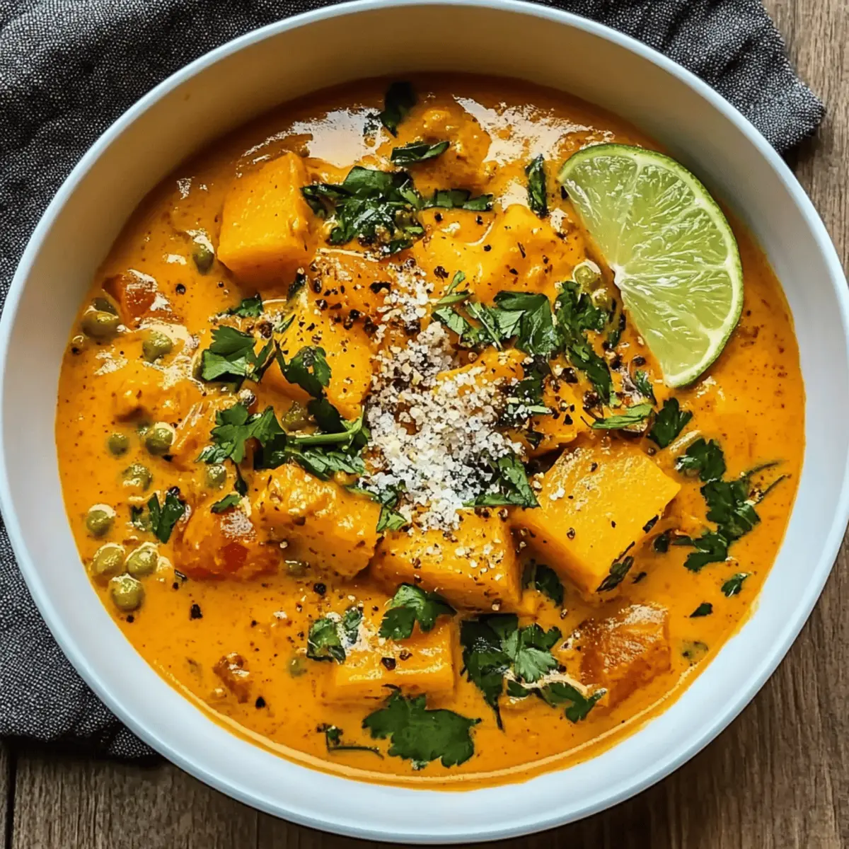 In einer kleinen gemütlichen Küche, umgeben von herbstlichen Farben, duftet es verlockend nach Gewürzen und frischem Gemüse. Heute lade ich dich ein, ein einfaches thailändisches Kürbis-Curry aus einem Topf zu entdecken. Dieses vegane Rezept ist nicht nur schnell zubereitet, sondern auch ein herzhaftes Highlight, das die Aromen der Saison in sich vereint. Die cremige Kokosmilch trifft auf die warmen Gewürze der roten Currypaste und verwandelt den Tag in ein Fest der Sinne. Mit minimalem Aufwand kommst du zu einem köstlichen Gericht, das sich perfekt für kuschelige Abende eignet. Bist du bereit, die Einfachheit und den Geschmack dieser wunderbaren Kombination auszuprobieren? Lass uns gemeinsam in die Welt des thailändischen Kochens eintauchen! Warum wirst du dieses Curry lieben? Einfachheit ist trumpf: Mit nur einem Topf und wenigen Zutaten zauberst du ein köstliches Gericht. Aromatische Gewürze vereinen sich in einer cremigen Kokosmilch, die auf der Zunge zergeht. Vielseitigkeit ist ein großer Pluspunkt – füge Linsen oder frisches Gemüse hinzu, um das Rezept nach deinem Geschmack anzupassen. Gesund und nahrhaft wird es durch den süßen Kürbis, der reich an Vitaminen ist. Perfekt für gesellige Abende: Die leuchtenden Farben und der verlockende Duft werden deine Gäste begeistern! Probiere auch Einfaches Erdbeerkuss Dessert für einen süßen Abschluss oder kombiniere es mit Ofenkurbis Mit Feta als köstliche Beilage! Einfaches thailändisches Kürbis-Curry Zutaten • Für dieses einfache thailändische Kürbis-Curry brauchst du folgende frische Zutaten, um den vollen Geschmack einzufangen: Kürbis – sorgt für die Hauptstruktur und Süße; Hokkaido oder Butternut sind ideal. Kokosmilch – bringt Cremigkeit und einen reichen Geschmack; achte auf Vollfett für die beste Textur. Zwiebel – bildet die geschmackliche Basis des Currys; Schalotten sind eine süße Alternative. Knoblauch – verbessert das Aroma und die Geschmacksfülle; frischer Knoblauch ist empfehlenswert. Rote Currypaste – verleiht Tiefe und Würze; passe die Menge deinem Schärfegrad an. Ingwer – sorgt für Wärme und einen kräftigen Geschmack; frischer Ingwer ist besser als gemahlener. Pflanzenöl – zum Anbraten; neutrales Öl wie Raps- oder Sonnenblumenöl eignet sich gut. Gemüsebrühe – liefert Flüssigkeit und intensiviert den Geschmack; selbstgemachte Brühe ist ideal. Salz und Pfeffer – sind unerlässlich für die Würze; abschmecken und nach Bedarf anpassen. Limettensaft – bringt Frische und Säure ins Gericht; frisch gepresster Limettensaft ist am besten. Frischer Koriander – dient als Garnitur und fügt eine frische, kräuterige Note hinzu. Schritt-für-Schritt-Anleitung für Einfaches thailändisches Kürbis-Curry aus einem Topf Step 1: Öl erhitzen Erhitze in einem großen Topf bei mittlerer Hitze 2 Esslöffel Pflanzenöl. Achte darauf, dass das Öl heiß genug ist, um die Zwiebel anzubraten, aber nicht so heiß, dass es raucht. Die richtige Temperatur siehst du, wenn das Öl anfängt leicht zu glänzen. Step 2: Zwiebel anbraten Füge die gewürfelte Zwiebel hinzu und brate sie für 3-4 Minuten, bis sie weich und durchscheinend ist. Rühre gelegentlich um, um ein Anbrennen zu verhindern. Die Zwiebel sollte leicht goldbraun werden und ein aromatisches Aroma entfalten. Step 3: Knoblauch und Ingwer hinzufügen Gib den fein gehackten Knoblauch und den geriebenen Ingwer in den Topf und brate alles für weitere 1-2 Minuten an, bis es duftet. Achte darauf, dass der Knoblauch nicht anbrennt, da er sonst bitter werden kann. Die Mischung sollte jetzt intensiv nach Gewürzen riechen. Step 4: Rote Currypaste einrühren Rühre die rote Currypaste ein und koche sie für 1-2 Minuten weiter, um ihre Aromen freizusetzen. Achte darauf, die Paste gut mit der Zwiebel, dem Knoblauch und dem Ingwer zu vermengen. Sie sollte anfänglich leicht sprudeln und ihre tiefrote Farbe annehmen. Step 5: Kürbis hinzufügen Gib den gewürfelten Kürbis in den Topf und rühre alles gut um, sodass die Kürbisstücke gleichmäßig mit den Gewürzen bedeckt sind. Lasse sie für etwa 2 Minuten anbraten, damit sie die Aromen aufnehmen können. Der Kürbis sollte leuchtend orange und frisch aussehend sein. Step 6: Flüssigkeit einfüllen Gieße die Kokosmilch und die Gemüsebrühe in den Topf und rühre gut um, um alles zu kombinieren. Bringe die Mischung bei hoher Hitze zum Kochen. Du solltest Blasen sehen, die sich an der Oberfläche bilden, bevor du mit der nächsten Stufe fortfährst. Step 7: Simmern lassen Reduziere die Hitze auf niedrig, decke den Topf ab und lasse das Curry 25-30 Minuten köcheln. Rühre gelegentlich um, um ein Anhaften zu vermeiden. Der Kürbis sollte nach dieser Zeit zart sein und sich leicht mit einer Gabel zerdrücken lassen. Step 8: Abschmecken und verfeinern Nehme den Deckel ab und schmecke das Kürbis-Curry mit Salz, Pfeffer und frisch gepresstem Limettensaft ab. Rühre alles gut um, damit die Aromen sich vermischen. Das Gericht sollte jetzt eine ausgewogene Kombination aus süß, salzig und sauer aufweisen. Step 9: Servieren Serviere das einfache thailändische Kürbis-Curry heiß in Schalen, garniert mit frischem Koriander. Du kannst es auch mit Jasminreis oder Quinoa anrichten, um den herzhaften Geschmack des Currys aufzufangen. Das Gericht darf auf keinen Fall zu lange stehen, um die Aromen frisch zu halten. Lagerungstipps für Einfaches thailändisches Kürbis-Curry Raumtemperatur: Lass das Curry auf Zimmertemperatur abkühlen, bevor du es lagerst. Es sollte jedoch nicht länger als 2 Stunden ungekühlt stehen bleiben, um Bakterienwachstum zu vermeiden. Kühlschrank: Bewahre das Curry in einem luftdichten Behälter auf, wo es bis zu 3 Tage frisch bleibt. Vor dem Servieren einfach gut umrühren. Gefrierschrank: Du kannst das Kürbis-Curry für bis zu 3 Monate einfrieren. Achte darauf, das Curry in Portionen zu unterteilen und in gefriergeeigneten Behältern zu lagern. Aufwärmen: 
