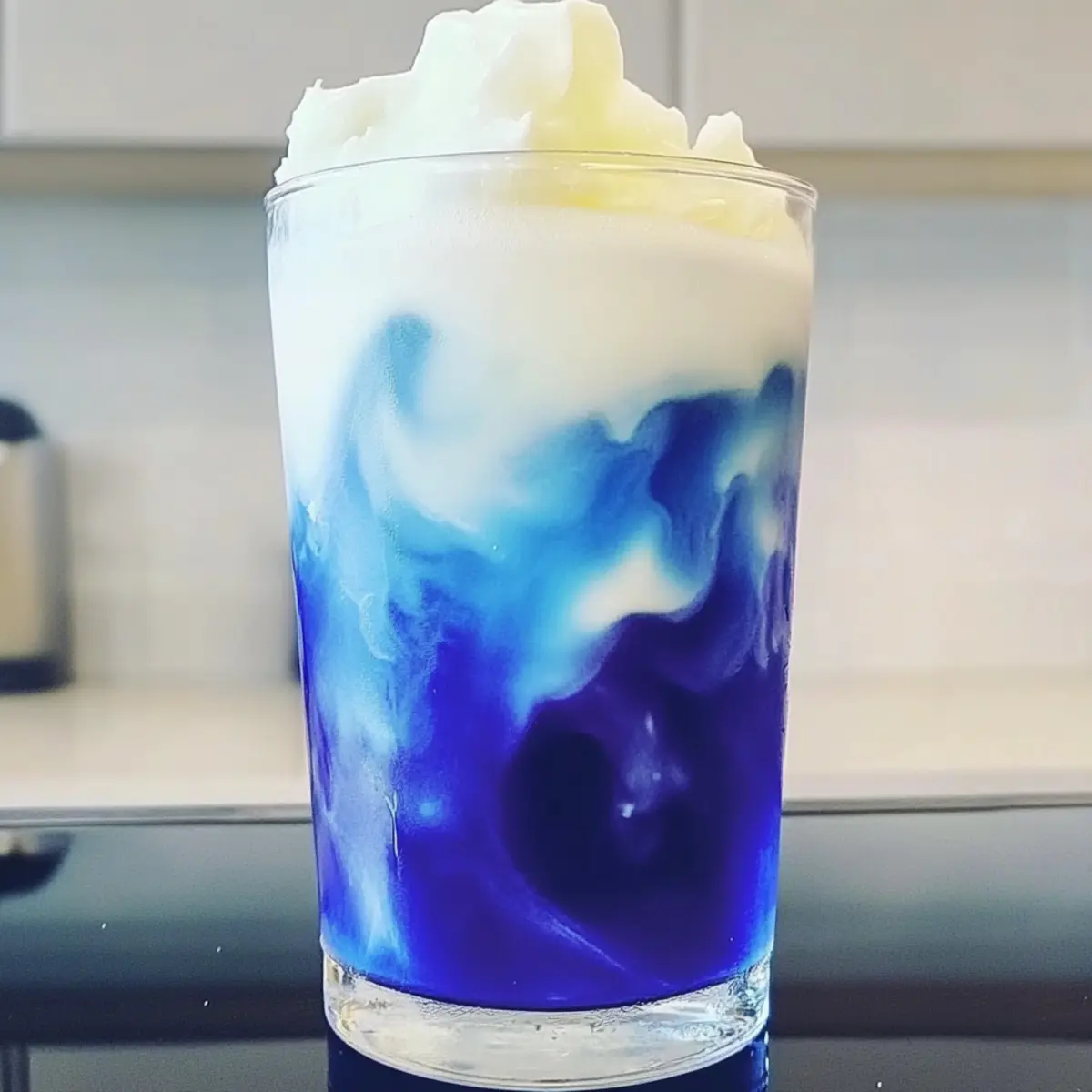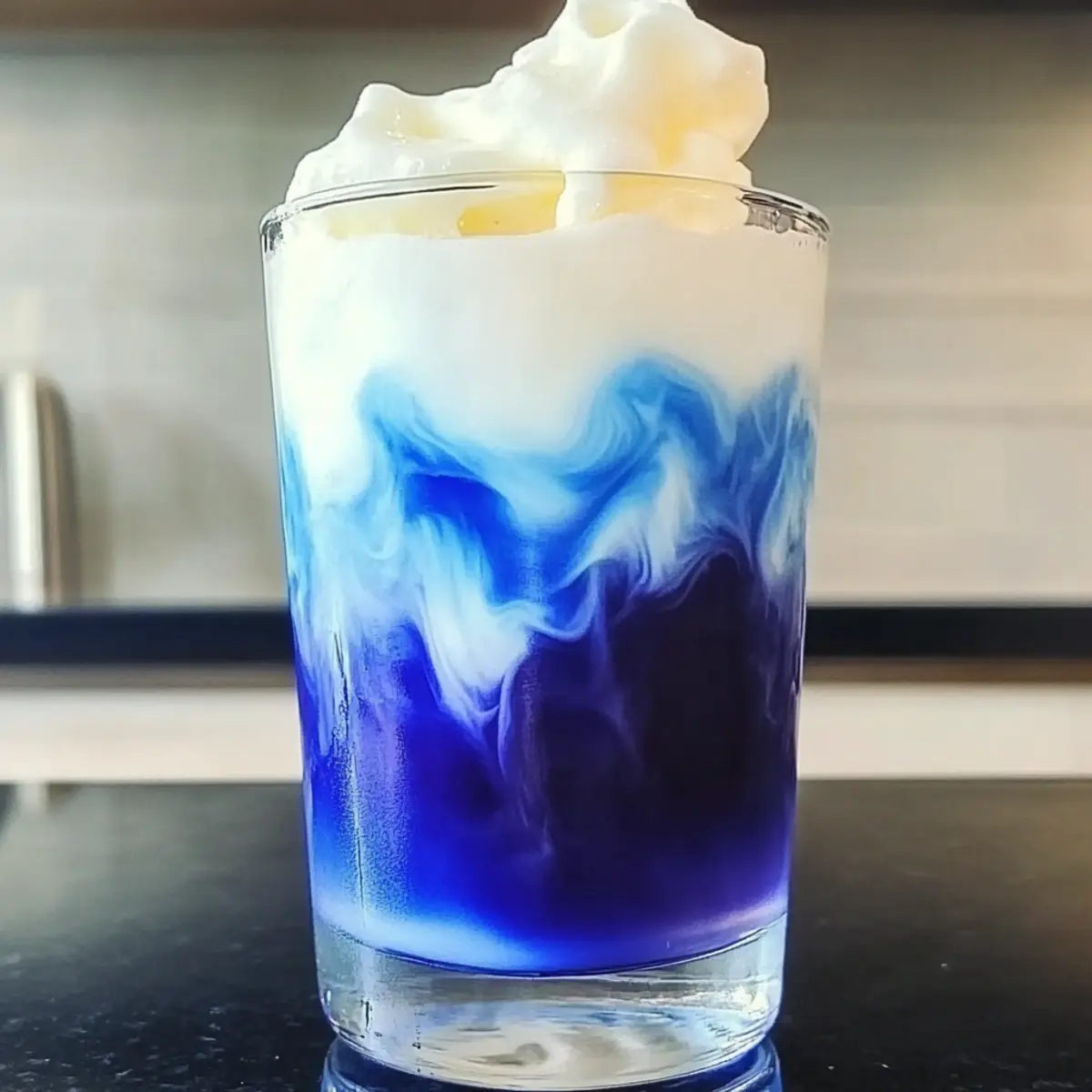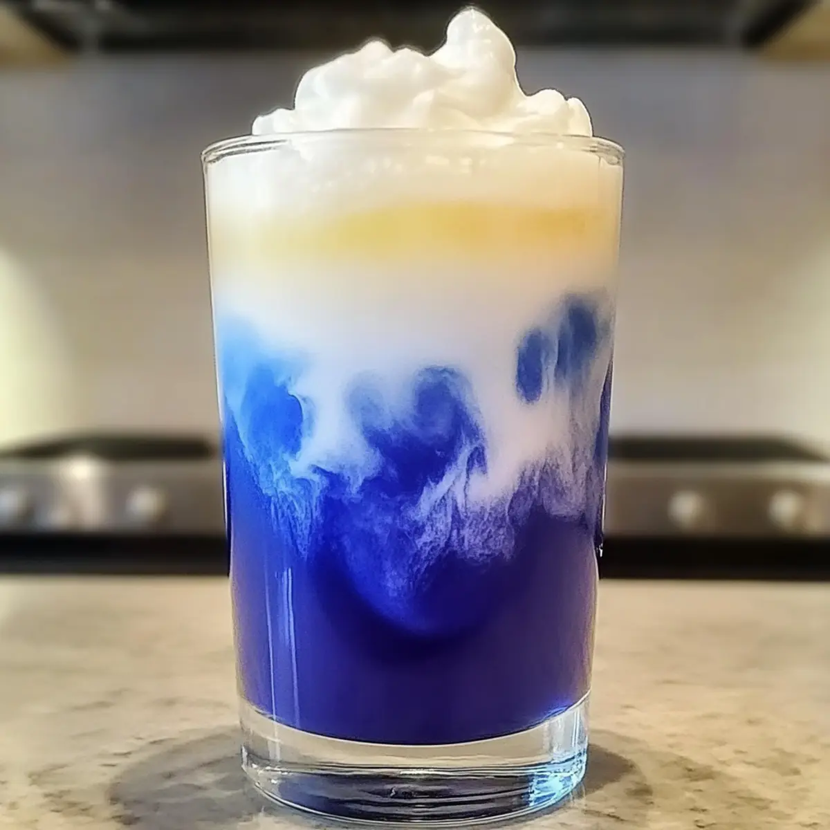 Hast du schon einmal von einem Getränk gehört, das aussieht wie der Himmel an einem klaren Tag? Das Eisblauer Teelatte Rezept wird dein Herz erobern! Dieses beeindruckende Getränk aus getrockneten Schmetterlingserbsen verwandelt jede Tasse in ein Kunstwerk und bietet nicht nur eine bemerkenswerte Farbe, sondern auch einen feinen, erdigen Geschmack. Mit einer cremigen Vanille-Kalte-Schaumhaube ist es perfekt für entspannte Nachmittage oder um deine Gäste bei Brunch zu begeistern. In nur 10 Minuten zubereitet, ist dieser Latte nicht nur eine Augenweide, sondern auch eine köstliche, gesunde Alternative zu herkömmlichen Kaffeekreationen. Bist du bereit, deine nächste Kaffeepause mit diesem magischen Getränk zu verzaubern? Warum solltest du diesen Eisblauer Teelatte lieben? Einzigartige Farbe: Der Eisblauer Teelatte strahlt in einem magischen Indigo, der jeden begeistern wird. Einfache Zubereitung: In nur 10 Minuten kannst du dein persönliches Barista-Erlebnis zu Hause genießen. Gesunde Alternative: Mit natürlichen Zutaten und einer milchfreien Option ist dieses Rezept perfekt für jeden, der eine gesunde Wahl treffen möchte. Vielseitigkeit: Experimentiere mit verschiedenen Aromen und Farben, indem du Zitronensaft hinzufügst oder andere Sirups verwendest. Erfrischend und cremig: Die Kombination aus dem erdigen Geschmack der Schmetterlingserbsen und der cremigen Vanillehaube wird deine Geschmacksknospen verwöhnen und deine Nachmittage aufhellen. ✨ Eisblauer Teelatte Zutaten Für den Tee Getrocknete Schmetterlingserbsen – Sie verleihen dem Getränk die charakteristische blaue Farbe und einen subtilen, erdigen Geschmack. Wähle leuchtende Blüten für einen intensiven Aufguss. Heißes Wasser – Unverzichtbar, um die Schmetterlingserbsen aufzuschütten und die Farbe zu extrahieren. Für den kalten Schaum Eisgekühlte Vollmilch (oder Hafer-/Mandelmilch für milchfrei) – Macht den Schaum stabil und cremig. Barista-Mischungen sind ideal für pflanzliche Optionen. Vanillesirup – Sorgt für Süße und Geschmacksfülle. Passe die Menge nach Geschmack an; selbstgemachter Sirup ist eine gute Alternative. Für die Zubereitung Eiswürfel – Halten das Getränk kalt und erfrischend. Dieser Eisblauer Teelatte wird nicht nur als ein Augenschmaus, sondern auch als eine köstliche und aufregende Getränkewahl in deiner Sammlung glänzen! Schritt-für-Schritt-Anleitung für das Eisblauer Teelatte Rezept Step 1: Blauen Tee aufbrühen Bringe 1 Tasse Wasser zum Kochen und gieße es über 1 Esslöffel getrocknete Schmetterlingserbsen. Lasse die Mischung für 5–7 Minuten ziehen, bis sich die Farbe zu einem tiefen Blau entwickelt. Achte darauf, die Blüten gut zu durchtränken, um den vollen Geschmack und die Farbe zu extrahieren. Danach seihe die Blüten ab und lasse den Tee leicht abkühlen. Step 2: Vanille-Kaltschaum zubereiten In der Zwischenzeit nimm ⅓ Tasse eisgekühlte Milch oder eine pflanzliche Alternative und 1 Esslöffel Vanillesirup. Gieße sie in einen Mixer und püriere die Mischung für etwa 10 Sekunden, bis ein cremiger, stabiler Schaum entsteht. Alternative Methoden sind das Verwenden eines Handaufschäumers oder das Schütteln der Zutaten in einem Glas. Step 3: Latte zusammenstellen In einem hohen Glas, das mit Eiswürfeln gefüllt ist, gieße den abgekühlten blauen Tee langsam ein. Achte darauf, das Glas schräg zu halten, damit sich der Tee gleichmäßig verteilt und du die Farbe besser zur Geltung bringen kannst. Step 4: Kaltschaum hinzufügen Spoon oder gieße den vorbereiteten Vanille-Kaltschaum vorsichtig auf die Teeschicht, um schöne, visuelle Schichten zu schaffen. Achte darauf, dass der Schaum nicht sofort mit dem Tee vermischt wird, um die beeindruckende Farbtrennung zu bewahren. Step 5: Servieren und genießen Serviere deinen Eisblauen Teelatte sofort, um die herrliche Farbkombination zu zeigen. Du kannst entweder vorsichtig umrühren, um die Komponenten zu vermischen, oder ihn so lassen, um die schönen Schichten zu bewundern, während du ihn genießt. Vorbereitungen für dein Eisblauer Teelatte Rezept Das Eisblauer Teelatte Rezept ist perfekt für stressige Tage, da du Teile der Zubereitung im Voraus erledigen kannst! Du kannst den blauen Tee bis zu 3 Tage im Voraus zubereiten. Lass ihn abkühlen und bewahre ihn in einem luftdichten Behälter im Kühlschrank auf, um die Frische zu bewahren. Den Vanille-Kaltschaum kannst du ebenfalls bis zu 24 Stunden im Voraus vorbereiten. Halte die Milch (oder Pflanzenmilch) schön kühl, um eine optimale Schaumqualität zu gewährleisten. Wenn du bereit bist, den Latte zu genießen, gieße einfach den kalten Tee in ein Glas mit Eis, füge dann den vorbereiteten Kaltschaum hinzu und erfreue dich an deinem leckeren und erfrischenden Getränk – ideal für entspannte Momente! Expert Tips für das Eisblauer Teelatte Rezept Frische Zutaten: Verwende leuchtend getrocknete Schmetterlingserbsen, um die beste Farbe und den vollen Geschmack für dein Eisblauer Teelatte Rezept zu gewährleisten. Milch Vorkühlen: Stelle sicher, dass die Milch gut gekühlt ist, bevor du sie aufschäumst. So erhältst du einen stabilen, cremigen Kaltschaum. Farben Spiel: Experimentiere mit einem Spritzer Zitrone oder Limette, um die Farbe deines Tees zu verändern und einen besonders schönen lila Ton zu erhalten. Süße Anpassen: Justiere die Menge an Vanillesirup nach deinem Geschmack. Für eine gesunde Variante, ersetze ihn durch einen selbstgemachten Sirup. Perfekte Präsentation: Serviere den Eisblauer Teelatte in einem hohen, klaren Glas, um die faszinierenden Farbschichten optimal zur Geltung zu bringen. Was passt zu einem Eisblauer Teelatte? Genieße eine harmonische Kombination zu deinem leuchtend blauen Getränk, die sowohl Geschmack als auch visuelle Freude bietet. Frisch gebackene Scones: Diese süßen, buttrigen Leckereien ergänzen den erdigen Geschmack des Tees perfekt und laden dazu ein, bei einer malerischen Teestunde zu schlemmen. Z