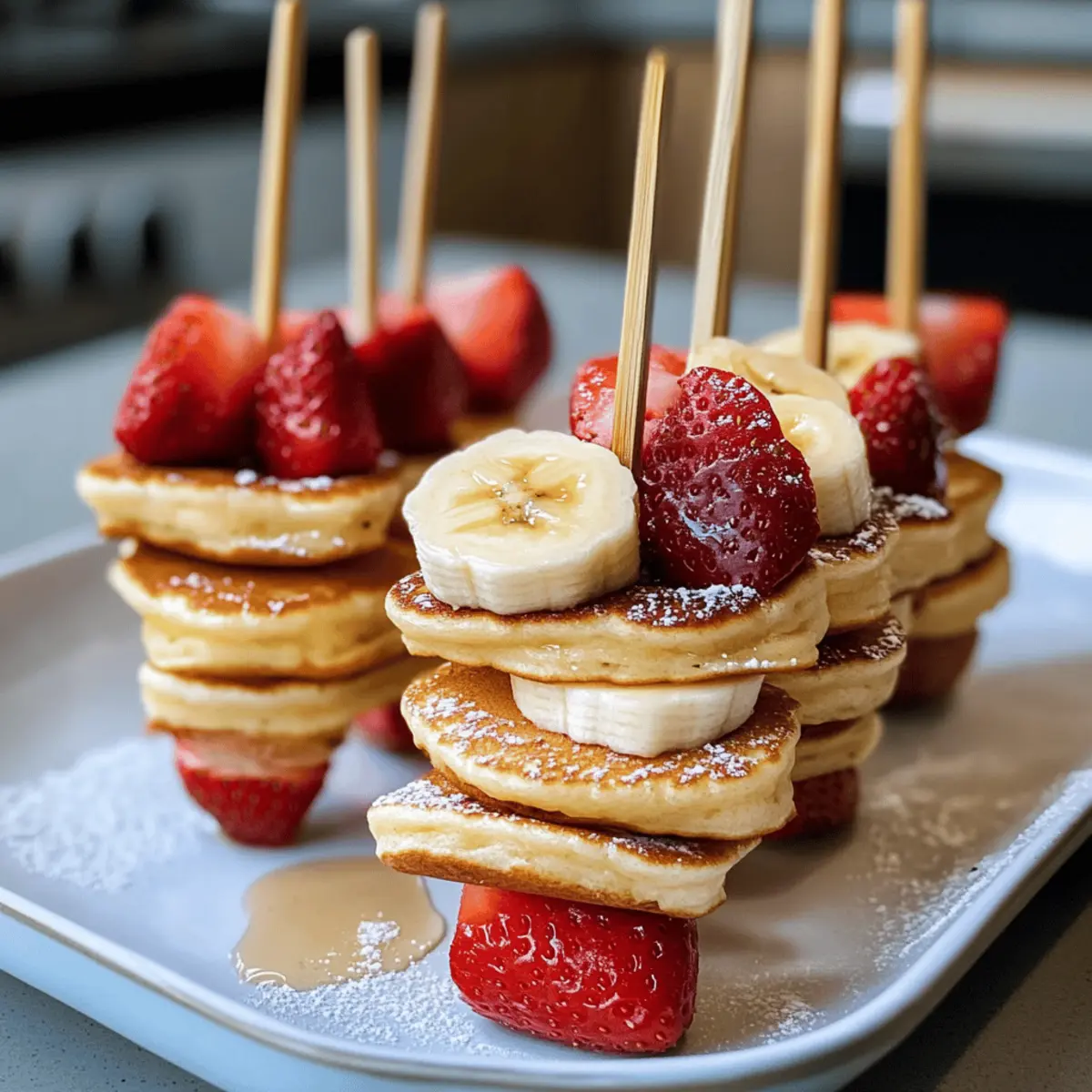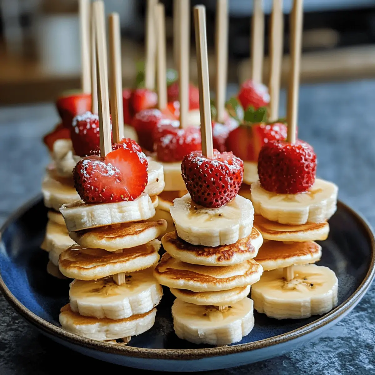 Wussten Sie, dass Pfannkuchen nicht nur mit Sirup serviert werden können? Meine Erdbeer-Bananen-Pfannkuchen-Spieße sind eine kreative und köstliche Möglichkeit, Frühstück auf ein neues Level zu bringen. Sie sind nicht nur schnell zubereitet, sondern auch ein Hit für die ganze Familie – perfekt als nährstoffreicher Snack für zwischendurch oder als besonderes Frühstück am Wochenende. Die Kombination aus fluffigen Pfannkuchen, saftigen Erdbeeren und süßen Banane sorgt für ein fröhliches und buntes Erlebnis auf dem Teller. Außerdem können Sie die Zutaten ganz nach Ihrem Geschmack anpassen! Was halten Sie davon, gleich in die Zubereitung einzutauchen und diese köstlichen Spieße zu kreieren? Warum sind Pfannkuchen-Spieße so beliebt? Kreativität beim Frühstück: Erdbeer-Bananen-Pfannkuchen-Spieße bringen frischen Wind auf den Tisch und machen das Frühstück zu einem Erlebnis. Einfachheit in der Zubereitung: Die Zutaten sind schnell versorgt, und Sie können sogar die Kinder einbeziehen. Vielseitigkeit ist hier das Schlüsselwort! Variieren Sie die Früchte oder Toppings ganz nach Lust und Laune und passen Sie die Spieße an Ihre Vorlieben an. Geselligkeit: Diese bunten Spieße sind ein Hit für Familienfeiern oder Brunchs mit Freunden. Und last but not least, Nährstoffreich: Perfekt für den kleinen Hunger zwischendurch, bieten sie eine gesunde Alternative zu schnellem Essen. Tauchen Sie ein in die Welt der kreativen Snacks! Erdbeer-Bananen-Pfannkuchen-Spieße Zutaten Diese Zutaten sorgen dafür, dass Ihre Erdbeer-Bananen-Pfannkuchen-Spieße zu einem Genuss werden! Für den Teig Mehl – gibt Struktur und dient als Basis; glutenfreies Mehl eignet sich hervorragend als Ersatz. Zucker – sorgt für die nötige Süße; können Sie auch durch Honig oder ein anderes Süßungsmittel ersetzen. Backpulver – macht die Pfannkuchen fluffig; achten Sie darauf, frisches Backpulver zu verwenden. Salz – verstärkt die Aromen aller Zutaten und sorgt für ein ausgewogenes Geschmacksprofil. Milch – fügt Feuchtigkeit hinzu und wirkt als Bindemittel; pflanzliche Milch ist eine tolle Option für Veganer. Ei – sorgt für die Struktur der Pfannkuchen; für vegane Varianten kann Apfelmus oder ein Leinsamen-Ei genutzt werden. Geschmolzene Butter – macht die Pfannkuchen reichhaltiger; Pflanzenöl ist eine gute Alternative. Für die Spieße Banane – sorgt für Fruchtigkeit und Süße; kann auch mit anderen Früchten wie Äpfeln kombiniert werden. Erdbeeren – frisch und saftig, fügen Geschmackstiefe hinzu; die Auswahl darf je nach Saison variieren. Holzspieße – zum Zusammenstecken der Zutaten und fürs perfekte Servieren Ihrer Erdbeer-Bananen-Pfannkuchen-Spieße. Schritt-für-Schritt-Anleitung für Erdbeer-Bananen-Pfannkuchen-Spieße Step 1: Trockene Zutaten mischen In einer großen Schüssel Mehl, Zucker, Backpulver und Salz gründlich vermengen. Verwenden Sie einen Schneebesen, um sicherzustellen, dass keine Klumpen entstehen. Dieses trockene Gemisch bildet die Grundlage für Ihren Pfannkuchenteig und sorgt dafür, dass die Erdbeer-Bananen-Pfannkuchen-Spieße schön fluffig werden. Step 2: Flüssige Zutaten vermengen In einer separaten Schüssel Milch, Ei und geschmolzene Butter gut verrühren. Achten Sie darauf, dass die Butter nicht zu heiß ist, um das Ei nicht zu kochen. Diese Mischung wird später mit den trockenen Zutaten kombiniert und liefert die nötige Feuchtigkeit für den Teig der Erdbeer-Bananen-Pfannkuchen-Spieße. Step 3: Teig zusammenführen Geben Sie die flüssigen Zutaten zu den trockenen Zutaten und vermengen Sie alles vorsichtig mit einem Löffel oder Spatel, bis ein glatter Teig entsteht. Ein paar Klümpchen sind in Ordnung; übermixen Sie den Teig nicht, um zähe Pfannkuchen zu vermeiden. Der fertige Teig ist die Basis für die nächsten Schritte. Step 4: Pfanne vorbereiten Erhitzen Sie eine beschichtete Pfanne auf mittlerer Hitze und fetten Sie sie leicht mit Butter oder Öl ein. Testen Sie die Temperatur, indem Sie einen kleinen Tropfen Teig in die Pfanne geben – er sollte sofort brutzeln. Eine gut vorgeheizte Pfanne ist entscheidend für perfekte Erdbeer-Bananen-Pfannkuchen-Spieße. Step 5: Pfannkuchen backen Geben Sie für jeden Pfannkuchen etwa 1/4 Tasse des Teigs in die heiße Pfanne. Backen Sie die Pfannkuchen 2-3 Minuten lang, bis Blasen auf der Oberfläche erscheinen. Wenden Sie sie vorsichtig und backen Sie die andere Seite 1-2 Minuten goldbraun. Wiederholen Sie diesen Vorgang, bis der gesamte Teig aufgebraucht ist. Step 6: Pfannkuchen schneiden Lassen Sie die gebackenen Pfannkuchen einige Minuten abkühlen, bevor Sie sie in Viertel schneiden. Diese Stücke werden zwischen die Früchte auf den Spießen gesteckt und sorgen dafür, dass die Erdbeer-Bananen-Pfannkuchen-Spieße perfekt gestapelt und appetitlich aussehen. Step 7: Spieße montieren Stecken Sie abwechselnd die Pfannkuchenstücke, Bananenscheiben und Erdbeerviertel auf die Holzspieße. Sehen Sie zu, dass Sie die Farben ansprechend kombinieren, um ein fröhliches und einladendes Aussehen zu erzielen. Diese bunten Spieße sind noch dazu wunderbar kreativ und werden groß und klein erfreuen! Was passt zu Erdbeer-Bananen-Pfannkuchen-Spießen? Genießen Sie Ihre bunten Spieße mit köstlichen Begleitern, die das Frühstückserlebnis noch aufregender machen! Joghurt mit Honig: Cremig und süß, dieser Joghurt ergänzt die fruchtigen Aromen hervorragend und sorgt für eine erfrischende Note. Bunte Fruchtsalate: Ein leichter und knackiger Salat aus saisonalen Früchten bringt Frische und knusprige Texturen auf den Tisch. Nussige Granola: Für zusätzlichen Crunch und einen nahrhaften Kick bietet sich eine Mischung aus Nüssen und Haferflocken an. Kaffee oder Tee: Ein aromatischer Kaffee oder beruhigender Tee rundet das Frühstück perfekt ab und sorgt für einen wohltuenden Start in den Tag. Pfannkuchen-Mischung: Servieren Sie zusätzlich ein paar kleine Pfannkuchen pur, um die Vielfalt zu