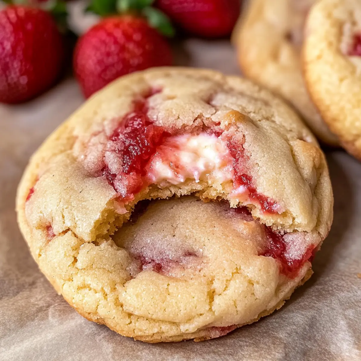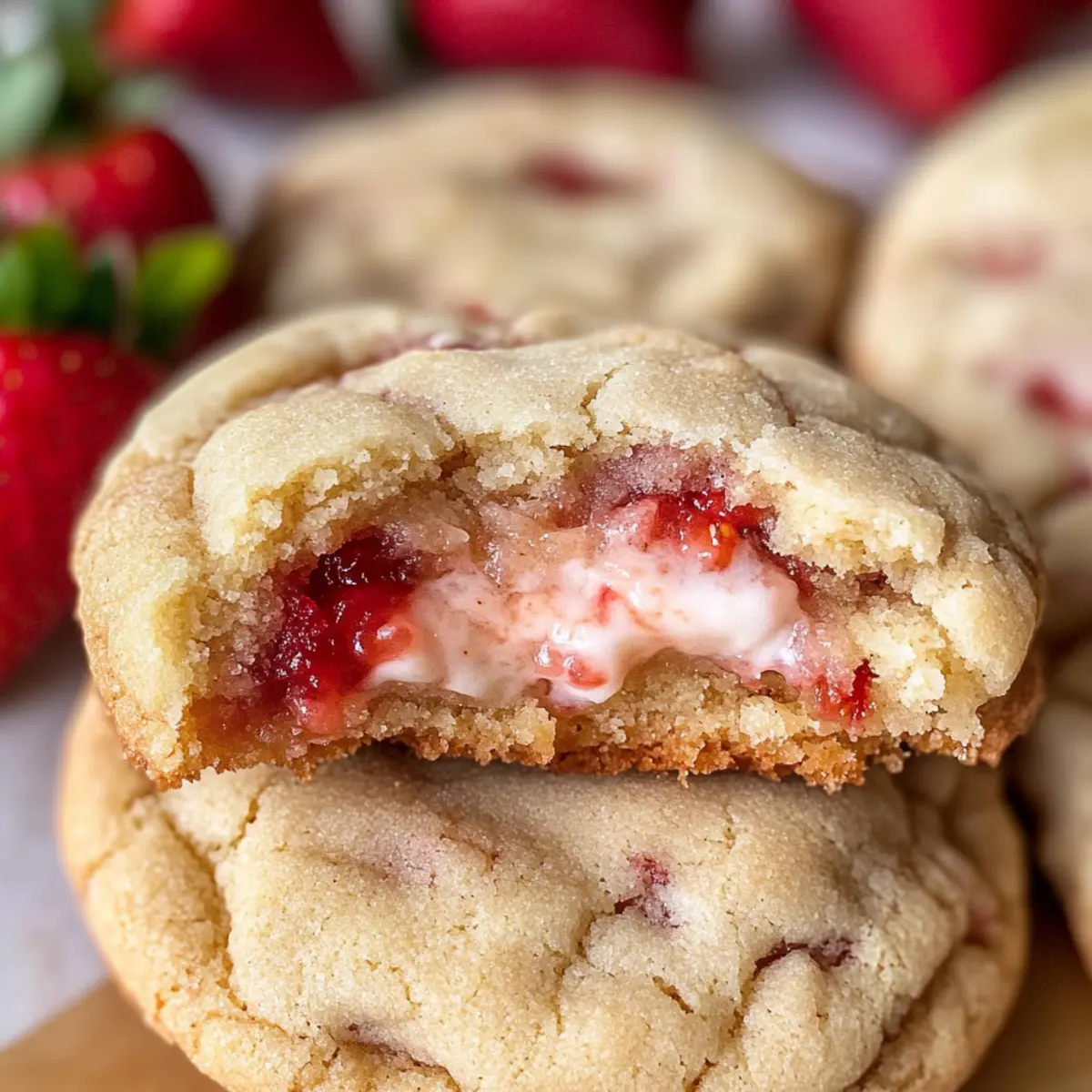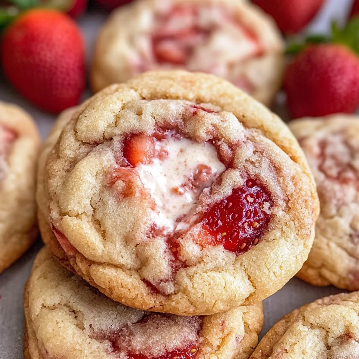 Die ersten Sonnenstrahlen kitzeln meine Nase, während ich den köstlichen Duft frisch gebackener Erdbeer-Käsekuchen-Kekse wahrnehme. Diese kleinen Kunstwerke sind nicht nur ein Gaumenschmaus, sondern auch ein wahrer Genuss für die Seele. Mit ihrer perfekten Kombination aus weicher, zäher Textur und der verführerischen Füllung aus cremigem Käsekuchen sind sie eine wunderbare Alternative zur klassischen Nachspeise. Außerdem sind sie schnell zubereitet – ideal, um unerwartete Gäste zu überraschen oder einen gemütlichen Abend zu versüßen. Während die Erdbeeren in der Füllung so richtig zur Geltung kommen, werden Sie beim ersten Biss in die Kekse garantiert ins Schwärmen geraten. Neugierig, wie Sie diese leckeren Leckerbissen selbst zaubern können? Warum sind diese Kekse unverzichtbar? Einzigartiger Genuss: Diese Erdbeer-Käsekuchen-Kekse bieten die perfekte Mischung aus weicher, zäher Textur und einer cremigen Füllung, die Sie in eine andere Geschmackswelt entführt. Schnelle Zubereitung: Mit nur wenigen Zutaten können Sie in kürzester Zeit einen Klassiker neu interpretieren, ideal für spontane Besuche. Frische Aromen: Die saftigen Erdbeeren bringen einen fruchtigen Kick, der an den Sommer erinnert. Für jeden Anlass: Ob als süßer Snack oder Dessert, diese Kekse erfreuen sowohl Familie als auch Freunde. Pro Tipps: Bereiten Sie den Teig am Vortag vor, um Zeit zu sparen, und gönnen Sie sich diese Köstlichkeit mit einem Kaffee oder Tee! Erdbeer-Käsekuchen-Keks-Zutaten Hinweis: Diese Zutaten sind der Schlüssel zu perfekt weichen und cremigen Erdbeer-Käsekuchen-Keksen. Für die Käsekuchenfüllung • Frischkäse – sorgt für eine reichhaltige, cremige Textur; verwenden Sie kalten Frischkäse für beste Ergebnisse. • Zucker – bringt Süße in die Füllung; kann je nach Vorliebe angepasst werden. • Vanilleextrakt – verleiht zusätzlichen Geschmack; ist unerlässlich für die Füllung. Für den Keks-Teig • Frische Erdbeeren – sind die Hauptquelle für den fruchtigen Geschmack; können durch andere Beeren ersetzt werden, wobei sich der Geschmack ändert. • Weizenmehl – bildet die Grundlage für die Struktur der Kekse; sorgfältig abmessen, um ein zähes Ergebnis zu vermeiden. • Backpulver und Natron – sorgen für die lockere, luftige Textur. • Salz – balanciert die Süße aus und hebt den Geschmack hervor. • Ungesalzene Butter – liefert Reichhaltigkeit und Feuchtigkeit; muss sehr weich sein, um die richtige Konsistenz zu erhalten. • Ei – wirkt als Bindemittel und fügt Feuchtigkeit hinzu; verwenden Sie Eier bei Zimmertemperatur für bessere Vermischung. • Zucker zum Wälzen – sorgt für eine süße, leicht knusprige Außenschicht der Kekse. Schritt-für-Schritt-Anleitung für Erdbeer-Käsekuchen-Kekse Step 1: Käsekuchenfüllung zubereiten Vermischen Sie in einer Rührschüssel kalten Frischkäse, Zucker und Vanilleextrakt mit einem Handmixer, bis die Mischung leicht und luftig ist. Formen Sie die Füllung zu kleinen Disc-Formen und legen Sie diese auf ein mit Backpapier ausgelegtes Blech. Decken Sie es ab und frieren Sie die Discs für mindestens 30 Minuten ein, damit sie fest werden. Step 2: Erdbeer-Marmelade herstellen In einem mittelgroßen Kochtopf erhitzen Sie die gewürfelten frischen Erdbeeren mit etwas Zucker bei mittlerer Hitze. Lassen Sie die Mischung etwa 45 Minuten köcheln, bis sie eingedickt ist. Rühren Sie regelmäßig um, um ein Anbrennen zu verhindern. Nach dem Kochen lassen Sie die Marmelade abkühlen und stellen sie in den Kühlschrank, bis Sie diese brauchen. Step 3: Keksteig vorbereiten In einer großen Schüssel mischen Sie das Weizenmehl, Backpulver, Natron und Salz. In einer separaten Schüssel wird die weiche Butter mit Zucker schaumig geschlagen, bis die Mischung glatt und hell ist. Fügen Sie dann das Ei und Vanilleextrakt hinzu und verrühren Sie alles gut. Incorporieren Sie nach und nach die trockenen Zutaten, bis ein glatter Teig entsteht. Step 4: Erdbeer-Marmelade und Teig kombinieren Legen Sie den fertigen Keksteig auf eine leicht bemehlte Arbeitsfläche und teilen Sie ihn in Portionen. Nehmen Sie eine Portion und drücken Sie sie flach, legen Sie einen Teelöffel der Erdbeer-Marmelade in die Mitte und falten Sie den Teig darüber, um die Marmelade einzuschließen. Achten Sie darauf, den Teig gleichmäßig um die Marmelade zu verteilen, um kleine Marmeladenpockets zu bilden. Step 5: Kekse zusammenstellen Die mit Marmelade gefüllten Teigportionen formen Sie vorsichtig zu runden Kugeln. Drücken Sie eine Kugel leicht platt, und legen Sie eine gefrorene Käsekuchenfüllung in die Mitte. Bedecken Sie die Füllung erneut mit Teig, indem Sie die Kanten sorgfältig verschließen, sodass die Füllung gut umschlossen ist. Step 6: Kekse backen Heizen Sie den Ofen auf 175 °C (350 °F) vor. Wälzen Sie die Kekse in Zucker, bevor Sie sie auf ein mit Backpapier ausgelegtes Blech legen. Backen Sie die Kekse 11-12 Minuten lang im vorgeheizten Ofen, bis die Ränder goldbraun sind. Lassen Sie die Kekse nach dem Backen etwa 5 Minuten auf dem Blech abkühlen, bevor Sie sie auf ein Gitter zum vollständigen Auskühlen legen. So bereiten Sie die Erdbeer-Käsekuchen-Kekse im Voraus vor Die Erdbeer-Käsekuchen-Kekse sind perfekt für die Vorbereitung im Voraus! Sie können die Käsekuchenfüllung bis zu 24 Stunden im Voraus zubereiten und im Gefrierfach fest werden lassen. Auch die Erdbeer-Marmelade lässt sich hervorragend im Voraus herstellen und hält sich im Kühlschrank bis zu 3 Tagen. Wenn Sie bereit sind, die Kekse zu backen, formen Sie einfach den Keksteig mit einer Portion der Marmelade und der gefrorenen Käsekuchenfüllung. Achten Sie darauf, die Kekse gut zu verschließen, um die Füllung optimal zu schützen. Diese vorbereitenden Schritte sparen Ihnen nicht nur Zeit, sondern sorgen auch dafür, dass die Kekse beim Backen genauso frisch und köstlich bleiben! Variationen & Ersatzmöglichkeiten für Erdbeer-K