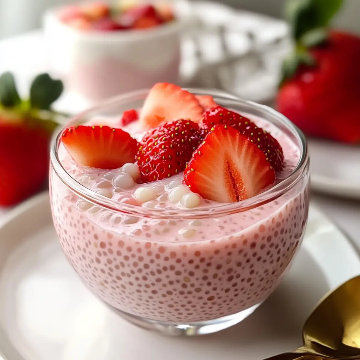 Hast du jemals den Moment erlebt, als du bei einem heißen Sommertag das perfekte Dessert entdeckt hast? Mein neuer Favorit, das Erdbeer Sago, ist nicht nur eine willkommene Erfrischung, sondern auch ein einfaches Vergnügen, das in nur 30 Minuten zubereitet werden kann. Die Kombination aus zarten, kaubaren Sago-Perlen und einer cremigen Erdbeerpudding-Basis macht diese 5-Zutaten-Süßspeise zu einem Fest für die Sinne. Egal, ob du nach einer glutenfreien oder milchfreien Variante suchst, dieser Sommertraum ist für jeden geeignet! Und das Beste daran? Es ist nicht nur köstlich, sondern auch unglaublich vielseitig – du kannst es ganz nach deinem Geschmack anpassen. Bist du bereit, dich von diesem fruchtigen Erlebnis überraschen zu lassen? Warum wirst du Erdbeer Sago lieben? Einfachheit pur: Die Zubereitung dieses Desserts ist so unkompliziert, dass selbst Kochanfänger problemlos mitmachen können. Frische Aromen: Die süßen Erdbeeren harmonieren perfekt mit der Cremigkeit der Kokosmilch und sorgen für einen erfrischenden Geschmack, der in jedem Bissen Freude bereitet. Vielseitigkeit: Du kannst die Zutaten nach Belieben anpassen, indem du alternative Früchte oder pflanzliche Milchvarianten verwendest – perfekt für jeden Geschmack und jede Ernährung. Schnell zubereitet: In nur 30 Minuten kannst du dieses geschmackvolle Dessert genießen, ideal für spontane Gäste oder einen besonderen Anlass. Visuelle Attraktivität: Die leuchtenden Erdbeerstücke und die cremige Textur verleihen deinem Tisch einen Hauch von Eleganz – so wird jede Portion zum echten Hingucker! Entdecke noch mehr köstliche Variationen mit Sago in unserem Beitrag zu alternativen Desserts. Erdbeer Sago Zutaten Hinweis: Ideal für ein schnelles und erfrischendes Dessert. Für die Sago-Mischung Sago-Perlen – Diese sorgen für die charakteristische kaubare Textur des Erdbeer Sago. Stelle sicher, dass sie glutenfrei sind. Erdbeeren (900 g) – Der Hauptgeschmacksträger. Verwende frische, gewaschene und gewürfelte Erdbeeren zum Pürieren. Kondensmilch (3 EL) – Süßt die Mischung. Passe die Menge nach deinem persönlichen Geschmack an. Für die cremige Basis Kokosmilch (240 ml, vollfett, gekühlt) – Fügt eine reichhaltige Cremigkeit hinzu. Verwende die ungesüßte Variante für die beste Textur. Evaporierte Milch (180 ml) – Macht das Dessert extra cremig. Alternativ kannst du auch Mandel- oder Sojamilch verwenden, um eine milchfreie Option zu schaffen. Für die Garnitur Gehackte Erdbeeren – Diese Stücke heben die Frische und verleihen deinem Dessert einen ansprechenden Look. Mit diesen einfachen Zutaten kannst du das köstliche Erdbeer Sago kreieren, das sowohl gesund als auch für jeden geeignet ist! Schritt-für-Schritt-Anleitung für Erdbeer Sago Step 1: Sago kochen Bring einen Topf mit Wasser zum Kochen. Füge die Sago-Perlen hinzu und koche sie für etwa 15 Minuten, bis sie transparent sind. Reduziere die Hitze, decke den Topf ab und lasse die Sago-Perlen weitere 10-15 Minuten ziehen, bis sie weich sind und die gesamte Flüssigkeit aufgenommen haben. Step 2: Sago abkühlen Sobald die Sago-Perlen fertig sind, gieße sie in ein Sieb und spüle sie unter kaltem Wasser ab, um das Kochen zu stoppen. Tauche die Sago anschließend kurz in eine Schüssel mit kaltem Wasser, damit sie nicht austrocknen und aneinanderkleben. Step 3: Erdbeermischung pürieren Gib die gewürfelten Erdbeeren, die evaporierte Milch und die Kondensmilch in einen Mixer. Püriere alle Zutaten, bis eine glatte Masse entsteht. Probiere die Mischung und passe die Süße nach deinem Geschmack an. Stelle sicher, dass die Erdbeermischung gut gekühlt ist, während du die restlichen Schritte ausführst. Step 4: Zutaten kombinieren Lass die Sago abtropfen und gib sie in eine große Schüssel. Füge die gekühlte Kokosmilch sowie die pürierte Erdbeermischung hinzu. Mische alles gut durch, bis die Sago-Perlen gleichmäßig in der Erdbeer-Creme verteilt sind und eine cremige Konsistenz entsteht. Step 5: Servieren Verteile das Erdbeer Sago gleichmäßig in individuelle Dessertschalen oder Gläser. Garniere jedes Dessert mit gehackten Erdbeerstücken für zusätzlichen frischen Geschmack und eine ansprechende Optik. Genieße das Dessert gut gekühlt – perfekt für warme Tage! Expert Tips für Erdbeer Sago Die richtige Konsistenz: Achte darauf, die Sago-Perlen nicht zu lange zu kochen, um eine perfekte, kaubare Textur zu erhalten. Überkochtes Sago wird matschig und verliert seinen Biss. Frische Zutaten: Verwende frische Erdbeeren für den besten Geschmack. Gefrorene Früchte können das Dessert verwässern und die Konsistenz beeinträchtigen. Kühlung ist wichtig: Stelle sicher, dass die Erdbeermischung gut gekühlt ist, bevor du sie mit der Sago mischst. So bleibt das Dessert frisch und erfrischend. Anpassen der Süße: Probiere die Erdbeermischung während des Pürierens aus. Du kannst die süße Kondensmilch nach deinem Geschmack anpassen, um das ideale Gleichgewicht zu finden. Aufbewahrungstipps: Bewahre übrig gebliebenes Erdbeer Sago in einem luftdichten Behälter im Kühlschrank auf, jedoch nicht länger als zwei Tage, da die Sago-Perlen härter werden können. Aufbewahrungstipps für Erdbeer Sago Kühlschrank: Bewahre übrig gebliebenes Erdbeer Sago in einem luftdichten Behälter auf. So bleibt es bis zu 2 Tage frisch, achte jedoch darauf, dass die Sago-Perlen etwas fest werden könnten. Nicht einfrieren: Vermeide es, das Dessert einzufrieren, da die Sago-Perlen beim Auftauen matschig werden können. Wiederv erwärmen: Sollte die Mischung nach dem Kühlen zu dick sein, kannst du sie mit etwas zusätzlicher Kokos- oder evaporierter Milch verdünnen, um die gewünschte Konsistenz zu erreichen. Garnitur: Füge frisch gehackte Erdbeeren erst kurz vor dem Servieren hinzu, um die Frische und die ansprechende Optik des Erdbeer Sago zu erhalten. Was passt zu Erdbeer Sago? Hast du schon darüber nachgedacht, wie du dieses genussvolle Desser