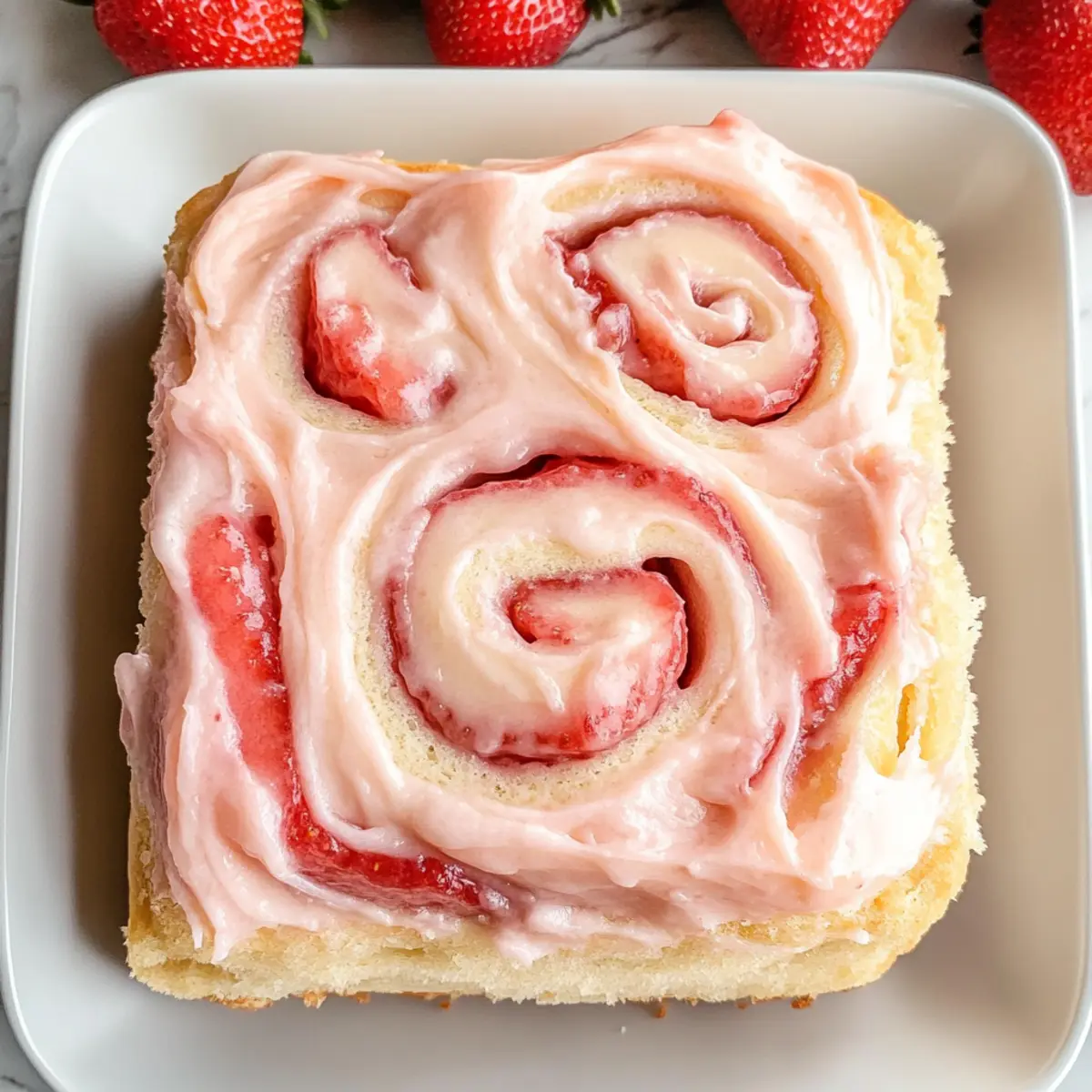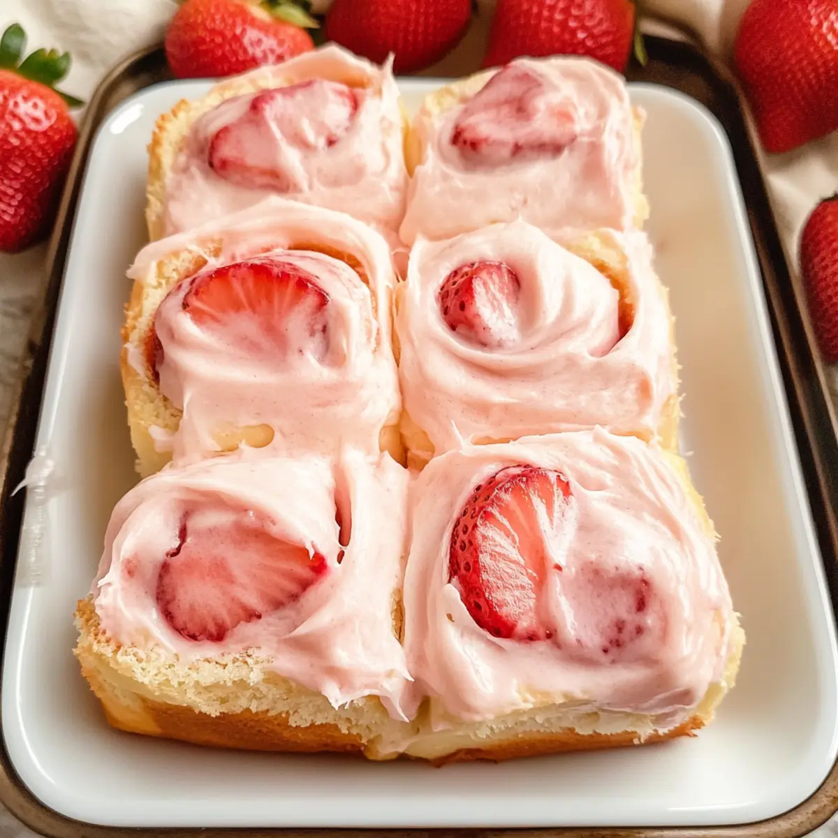 Ich erinnere mich an den ersten Biss in diese köstlichen Erdbeerrollen – der süße, fruchtige Geschmack hat sofort ein Lächeln auf mein Gesicht gezaubert. Diese fluffigen Erdbeerrollen mit Frischkäsefrosting sind nicht nur eine wahre Geschmacksexplosion, sondern auch perfekt zum Frühstück oder für besondere Anlässe. Die Kombination aus zartem Teig und dem intensiven Erdbeergeschmack, verstärkt durch gefriergetrocknete Erdbeeren, macht sie unwiderstehlich. Ein weiterer Vorteil? Sie sind einfach zuzubereiten und bringen Freude in jede Küche. Stellen Sie sich vor, wie Ihre Liebsten aus dem Schlaf geweckt werden, von dem Duft frisch gebackener Erdbeerrollen, die darauf warten, genossen zu werden. Neugierig auf das Rezept? Lassen Sie uns loslegen! Was macht diese Erdbeerrollen so besonders? Einzigartiger Geschmack: Diese Erdbeerrollen sind nicht nur köstlich, sondern auch vollgepackt mit intensiven Erdbeernoten, die durch gefriergetrocknete Erdbeeren verstärkt werden. Vielseitige Verwendung: Ideal als Frühstück oder süßer Snack für besondere Anlässe, passen sie perfekt zu einer Tasse Kaffee oder Tee. Einfache Zubereitung: Das Rezept ist unkompliziert und benötigt nur grundlegende Backfähigkeiten, sodass jeder es meistern kann. Fluffige Textur: Der zarte Teig sorgt für eine unwiderstehliche, luftige Konsistenz, während das cremige Frischkäsefrosting die perfekte Krönung bildet. Entdecken Sie auch unsere Einfaches Erdbeerkuss Dessert, das sich hervorragend für einen süßen Abschluss eignet! Erdbeerrollen Zutaten • Hier sind alle Zutaten, die Sie für die Zubereitung dieser köstlichen Erdbeerrollen benötigen! Für den Teig Gefriergetrocknetes Erdbeerpulver – verstärkt den Erdbeergeschmack in Teig und Frosting; kann durch frische Erdbeeren ersetzt werden oder ganz weggelassen werden für eine neutrale Rolle. Vollmilch – sorgt für Feuchtigkeit und Reichhaltigkeit im Teig; Alternativen sind Mandelmilch oder jede bevorzugte pflanzliche Milch. Frische Hefe – aktiviert den Teig; alternativ können Sie 10 g Trocken- oder Instanthefe verwenden, gemäß der Anleitung auf der Verpackung. Zucker – süßt und hilft bei der Aktivierung der Hefe; ersetzen Sie ihn durch braunen Zucker für einen tieferen Geschmack. Weißes Mehl – sorgt für die Struktur; bei Bedarf durch eine glutenfreie Mehlmischung ersetzen. Eier – geben Reichhaltigkeit und helfen bei der Struktur; können durch Leinsamen-Eier für eine vegane Option ersetzt werden. Salz – balanciert die Süße und verstärkt den Geschmack. Butter – sorgt für Reichhaltigkeit im Teig; verwenden Sie vegane Butter für eine milchfreie Version. Erdbeermarmelade – füllt die Rollen mit Erdbeersüße; jede Fruchtmarmelade kann als Ersatz verwendet werden. Für das Frosting Frischkäse – bildet die Basis des Frostings; kann durch eine pflanzliche Frischkäse-Alternative ersetzt werden. Puderzucker – süßt das Frosting und sorgt für eine glatte Konsistenz. Vanilleextrakt – fügt Geschmacksnuancen hinzu; kann bei Bedarf weggelassen werden. Schritt-für-Schritt-Anleitung für Erdbeerrollen mit cremigem Frischkäsefrosting Schritt 1: Erdbeerpulver zubereiten Zuerst das gefriergetrocknete Erdbeerpulver in einer Küchenmaschine oder einem Mixer zu feinem Pulver verarbeiten und beiseitestellen. Achten Sie darauf, dass es eine gleichmäßige Konsistenz hat, da es dem Teig und Frosting einen intensiven Erdbeergeschmack verleiht. Schritt 2: Hefeteig aktivieren Erwärmen Sie die Vollmilch bis sie lauwarm ist (etwa 37 °C). Zerbröckeln Sie die frische Hefe in die Milch und rühren Sie vorsichtig um, bis sie vollständig aufgelöst ist. Dies aktiviert die Hefe und ist ein wichtiger Schritt, um die perfekten Erdbeerrollen zu erzielen. Schritt 3: Teigmischung herstellen In einer Rührschüssel Zucker, Weißes Mehl, das Erdbeerpulver, die Eier und das Salz zusammengeben. Gießen Sie die warme Milch-Hefe-Mischung dazu und verwenden Sie einen Teigkneter oder eine Küchenmaschine, um die Zutaten gut zu vermengen, bis ein grober Teig entsteht. Schritt 4: Butter einarbeiten Fügen Sie nach und nach die weiche Butter hinzu und kneten Sie den Teig für etwa 8-10 Minuten weiter. Der Teig sollte glatt und elastisch werden. Eine gute Konsistenz ist wichtig für die fluffigen Erdbeerrollen, die wir anstreben. Schritt 5: Teig gehen lassen Legen Sie den Teig in eine leicht geölte Schüssel, decken Sie ihn mit einem sauberen Küchentuch ab und lassen Sie ihn an einem warmen Ort für etwa 1 Stunde gehen, bis sich das Volumen verdoppelt hat. An diesem Punkt sollte der Teig wunderbar aufgegangen sein und bereit für die nächste Phase. Schritt 6: Rollen formen Den aufgegangenen Teig auf einer leicht bemehlten Fläche zu einem Rechteck ausrollen. Verteilen Sie gleichmäßig die Erdbeermarmelade auf dem Teig und rollen Sie ihn dann von der langen Seite her fest auf. Schneiden Sie die Rolle in 12 gleichmäßige Stücke. Schritt 7: Zweites Gehen Die geschnittenen Stücke in eine mit Backpapier ausgelegte Backform legen und weitere 45 Minuten gehen lassen. In dieser Zeit werden die Erdbeerrollen voller und luftiger, bereit zum Backen. Schritt 8: Backen der Rollen Heizen Sie den Ofen auf 190 °C vor. Backen Sie die Erdbeerrollen für 22-24 Minuten, bis sie goldbraun und durchgegart sind. Wenn die Oberseite zu schnell bräunt, decken Sie sie kurz mit Alufolie ab, um ein Anbrennen zu verhindern. Schritt 9: Frosting zubereiten Für das Frosting die weiche Butter, den Frischkäse, den Puderzucker, das Erdbeerpulver und den Vanilleextrakt in einer Schüssel gut vermengen. Mixen Sie alles, bis die Mischung cremig und glatt ist. Das Frosting sollte eine luftig-leichte Konsistenz haben, die die Erdbeerrollen perfekt ergänzt. Schritt 10: Erdbeerrollen dekorieren Sobald die Erdbeerrollen aus dem Ofen kommen und etwas abgekühlt sind, bestreichen Sie sie großzügig mit dem cremigen Frischkäsefrosting. Servieren Sie die Rollen warm für ein unvergess