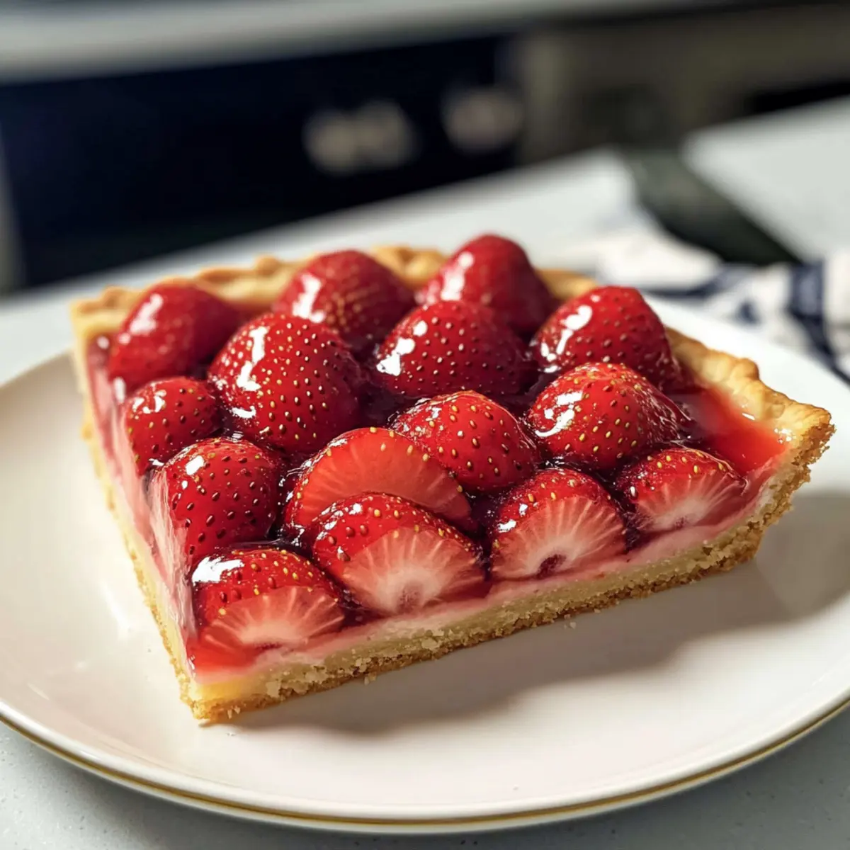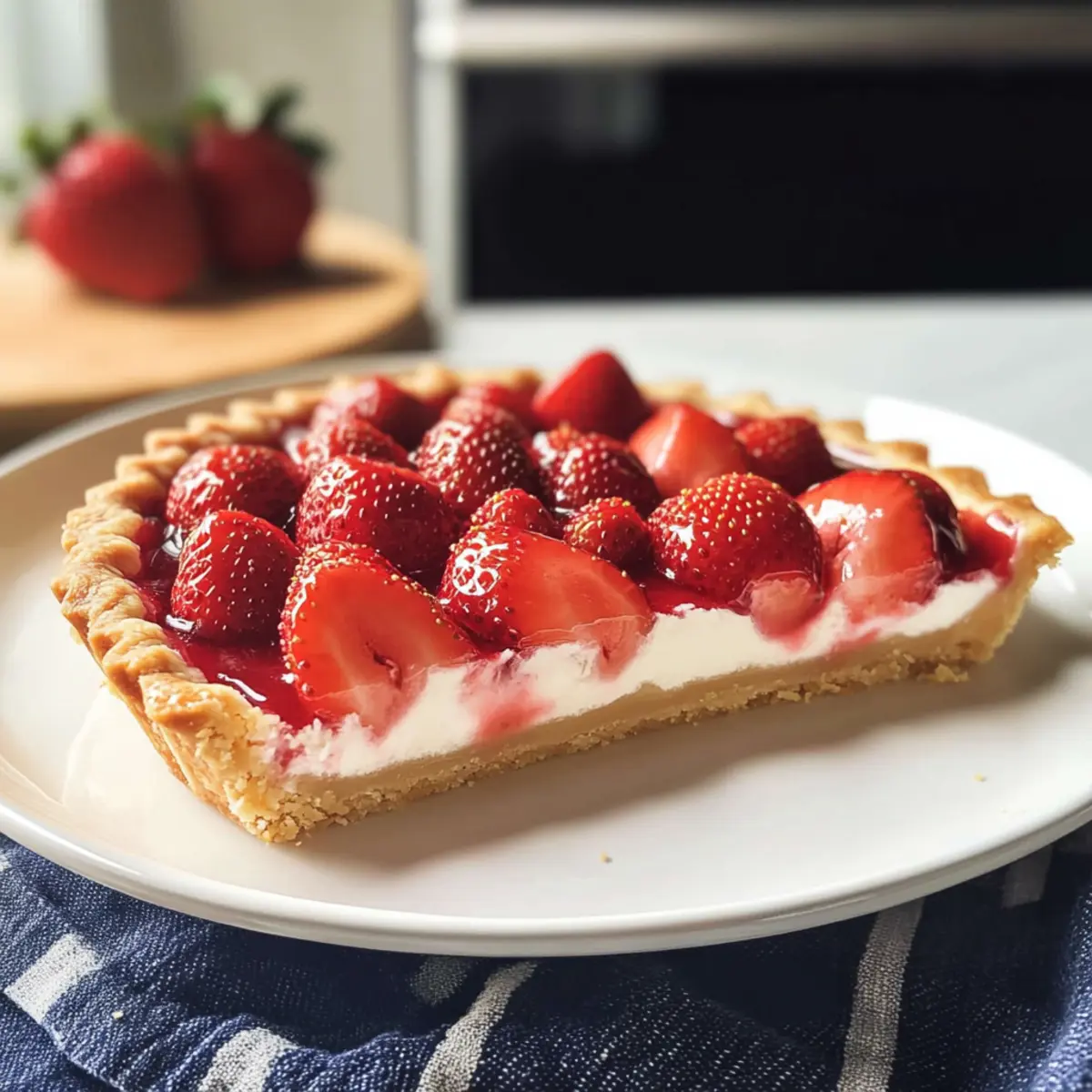 Die saftigen Erdbeeren, die so verführerisch auf einer cremigen Vanille-Pâtisserie thronen, haben für mich eine ganz besondere Bedeutung. Wenn der Sommer naht und die Erdbeerzeit beginnt, ist es an der Zeit, meine klassische Erdbeertorte zuzubereiten – eine wahre französische Delikatesse! Diese Tarte aux Fraises ist nicht nur ein Fest für die Sinne, sondern auch der perfekte Seelenwärmer und ein wahrer Blickfang auf jedem Tisch. Mit nur wenigen Zutaten und der Wahl zwischen einem köstlichen Mürbeteig oder einem praktischen Fertigteig ist sie schnell zubereitet und überzeugt durch ihren frischen Geschmack. Wenn du auf der Suche nach einem einfachen Rezept für einen unvergesslichen Dessertmoment bist, dann bleib dran! Wer könnte diesem süßen Versuchung widerstehen? Warum ist diese Erdbeertorte ein Muss? Einfachheit: Die Zubereitung ist unkompliziert und erfordert nur grundlegende Backfähigkeiten, sodass du selbst als Anfänger problemlos mitmachen kannst. Frische Aromen: Die Kombination aus saftigen Erdbeeren und cremiger Vanille-Pâtisserie bietet einen unvergleichlich frischen Geschmack, der den Sommer perfekt einfängt. Vielseitigkeit: Du kannst variieren und beispielsweise andere Beeren wie Himbeeren oder Heidelbeeren verwenden – perfekt für jeden Geschmack! Beeindruckende Präsentation: Mit ihrer ansprechenden Optik wird diese Tarte zum Star auf jedem Desserttisch und sorgt garantiert für Begeisterung bei deinen Gästen. Schnell zubereitet: Dank der Wahl zwischen selbstgemachtem Mürbeteig oder einem praktischen Fertigteig kannst du in kürzester Zeit ein zauberhaftes Dessert zaubern. Wenn du nach weiteren leckeren Ideen suchst, schau dir auch unsere Cremige Frisch Pasta oder die Mittelmeer Knoblauch Garnelen an – köstliche Optionen, die deine Sommerabende abrunden! Erdbeertorte Zutaten Für die Pâtisserie • Vanilleschote – Verleiht ein aromatisches Geschmacksprofil; alternativ 1 TL Vanilleextrakt verwenden. • Zucker – Süßt die Pâtisserie und verbessert den Geschmack; in Mengen für Creme und Vanillezucker aufteilen. • Milch – Bildet die Basis der Pâtisserie; Vollmilch sorgt für Reichtum und kann durch pflanzliche Milch (z.B. Mandelnmilch) ersetzt werden. • Eigelb – Fügt Reichhaltigkeit hinzu und hilft, die Pâtisserie zu verdicken; keine direkten Ersatzmöglichkeiten empfohlen. • Speisestärke – Ein Verdickungsmittel für die Creme; als Alternative kann Mehl verwendet werden, was jedoch die Textur verändern kann. • Butter – Sorgt für Cremigkeit; Margarine kann für eine milchfreie Version verwendet werden. Für den Tarteboden • Gebackener Mürbeteig – Die Grundlage der Tarte (pâte sucrée oder pâte sablée); ein fertiger Tortenteig ist eine einfache Alternative. Für das Topping • Erdbeeren – Frische Beeren sind entscheidend für den Geschmack; können durch andere Beeren (z.B. Himbeeren, Heidelbeeren) ersetzt werden. • Erdbeer- oder Aprikosenmarmelade – Glasur für den glänzenden Effekt; andere Fruchtmarmeladen können für eine andere Geschmacksrichtung genutzt werden. Schritt-für-Schritt-Anleitung für Erdbeertorte Step 1: Pâtisserie vorbereiten Halbiere die Vanilleschote und kratze die Samen heraus. Gib die Samen zusammen mit der Schote, Zucker und Milch in einen Topf. Erhitze die Mischung bei mittlerer Hitze, bis sie leicht köchelt und sich der Zucker aufgelöst hat. Achte darauf, ständig umzurühren, damit nichts ansetzt. Step 2: Eigelbe aufschlagen In einer separaten Schüssel die Eigelbe mit etwas Zucker schaumig schlagen, bis die Masse heller und dickflüssig ist. Dieser Vorgang dauert etwa 3-4 Minuten. Du solltest eine cremige Konsistenz erhalten, die als „Ribbons“ bezeichnet wird und sanft vom Löffel fließt. Step 3: Mischungen kombinieren Verquirle die Speisestärke mit etwas kühler Milch in einer kleinen Schüssel, bis sich ein glatter Brei bildet. Gib dann die warme Milchmischung nach und nach unter ständigem Rühren zu der Eigelbmasse. So verhinderst du, dass die Eier gerinnen. Step 4: Creme eindicken Gib die gesamte Mischung zurück in den Topf und erwärme sie bei niedriger Hitze. Rühre ständig mit einem Schneebesen, bis die Creme dick wird und blubbert – das dauert etwa 5-8 Minuten. Sie sollte die Rückseite eines Löffels bedecken und eine glatte, dicke Konsistenz erreichen. Step 5: Creme vollenden Nimm den Topf vom Herd und rühre die Butter unter, bis sie vollständig geschmolzen ist. Decke die Creme mit Frischhaltefolie ab, damit sich keine Haut bildet, und lasse sie auf Zimmertemperatur abkühlen. Step 6: Tarte zusammenstellen Verteile die abgekühlte Pâtisserie gleichmäßig auf den gebackenen Mürbeteigboden. Achte darauf, die Creme bis zum Rand zu verstreichen, um eine schöne Grundlage für die Erdbeeren zu schaffen. Step 7: Erdbeeren vorbereiten Wasche die Erdbeeren gründlich und schneide sie halb oder viertel, je nach Größe. Beginne mit der Anordnung der Erdbeeren von außen nach innen auf der Pâtisserie und überlappe sie, um einen schön strukturierten Look zu erhalten. Step 8: Früchte glasieren Erhitze die Erdbeer- oder Aprikosenmarmelade mit einem kleinen Schuss Wasser in einem Topf, bis sie flüssig wird. Bürste die warme Glasur vorsichtig über die Erdbeeren, um einen glänzenden Finish zu erzielen und die Früchte schön zu konservieren. Step 9: Kühlen und Servieren Stelle die fertige Erdbeertorte in den Kühlschrank und lasse sie idealerweise einige Stunden, besser noch über Nacht, kühlen. Diese Zeit hilft den Aromen, sich zu entfalten und die Konsistenz der Torte zu bewahren. Expertentipps für die perfekte Erdbeertorte Pastry Cream richtig temperieren: Achte darauf, dass die Eimischung bei der Kombination mit der warmen Milch langsam erwärmt wird, um ein Gerinnen zu vermeiden. Sofortige Kühlung: Lasse die Tarte nach dem Zusammenstellen unbedingt im Kühlschrank, um die Textur frisch zu halten. Verbrauche die Erdbeertorte am besten am selben Tag. Als