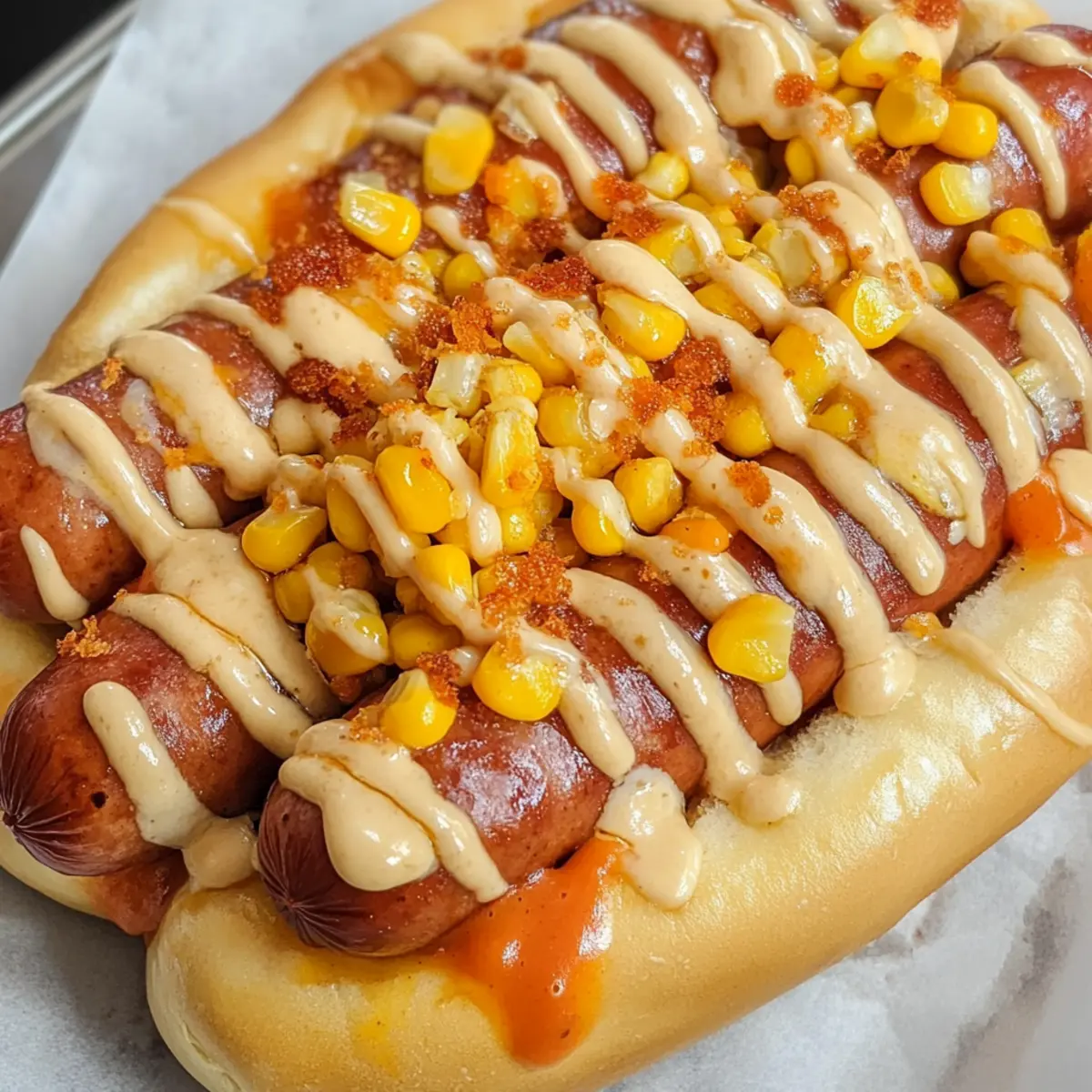 Als ich neulich in einem belebten chinesischen Café saß, wurde ich von dem köstlichen Duft frisch gebackener Wurstbrötchen angezogen. Diese extra weichen chinesischen Wurstbrote sind nicht nur eine Hommage an die Aromen und Texturen der asiatischen Küche, sondern auch eine perfekte Lösung für alle, die sich nach einer herzhaften und zufriedenstellenden Mahlzeit sehnen. Mit ihrem luftigen Milchbrot-Grundteig, der mit schmelzendem Käse, süßem Mais und einem Hauch von cremiger Kewpie-Mayo gekrönt ist, sind diese Brötchen ein Genuss für die ganze Familie und einfach zu machen. Und das Beste? Sie sind nicht nur schnell zubereitet, sondern auch ideal zum Einfrieren, sodass du jederzeit einen Snack zur Hand hast. Bist du neugierig, wie du diese verlockenden kleinen Leckereien selbst backen kannst? Lass uns loslegen! Warum wirst du diese Wurstbrötchen lieben? Leichtigkeit: Die Zubereitung ist einfach und erfordert nur grundlegende Backfähigkeiten. Reichhaltiger Geschmack: Die Kombination aus Käse, Wurst und der cremigen Kewpie-Mayo sorgt für eine Geschmacksexplosion, die jeden Bissen besonders macht. Vielseitigkeit: Du kannst verschiedene Wurstvariationen ausprobieren oder mit zusätzlichen Toppings wie Speck oder Zwiebeln experimentieren. Familienfreundlich: Diese Brötchen sind sowohl bei Kindern als auch Erwachsenen äußerst beliebt und eignen sich perfekt für gemütliche Abendessen oder als Snack für unterwegs. Zeitersparnis: Dank der Möglichkeit, sie im Voraus zuzubereiten und einzufrieren, sind sie ideal für beschäftigte Tage. Zutaten für extra weiches chinesisches Wurstbrot • Für den Teig: Wasser – Sorgt für die Feuchtigkeit im Teig; am besten lauwarm für eine optimale Hefeverdauung verwenden. Brotmehl – Bildet die Hauptstruktur der Brötchen; kann auch durch Weizenmehl ersetzt werden, jedoch mit möglichen Abweichungen im Ergebnis. Milch (verschiedene Optionen) – Fügt Reichhaltigkeit und Feuchtigkeit hinzu; Skimmbier, 1% oder Vollmilch funktionieren alle gut. Großes Ei – Verbindet die Zutaten und bereichert den Teig; für eine vegane Option kann es durch ein Leinsamenei ersetzt werden. Schnellhefe – Lässt den Teig aufgehen, damit er fluffig wird; aktive Trockenhefe kann auch verwendet werden, benötigt jedoch eine Vorproofung. Ungesalzene Butter – Verbessert den Geschmack und die Textur; ungesalzen wählen, um die Salzigkeit besser zu kontrollieren. Zucker (weißer Kristallzucker) – Fügt Süße hinzu und hilft beim Bräunen; kann für mehr Geschmack durch braunen Zucker ersetzt werden. Tafelsalz – Verstärkt den Gesamtschmack; Meersalz kann verwendet werden, aber die Menge bei grobem Salz anpassen. Milchpulver – Trägt zur Zartheit bei und verbessert die Bräunung; kann weggelassen werden, hat jedoch Einfluss auf die Textur. • Für die Füllung: Wurstwaren (Hotdogs/Würste) – Hauptfüllung, die Protein und Geschmack liefert; jede bevorzugte Wurstvariante kann verwendet werden. Geriebener Käse (Cheddar/Mozzarella) – Fügt Cremigkeit und Geschmack hinzu; andere milde Käsesorten wie Colby oder Gouda funktionieren ebenfalls gut. Eingefrorener Mais – Sorgt für einen süßen Crunch; frischer oder aus der Dose kann auch genutzt werden. Getrockneter Petersilie – Fügt eine subtile Kräuternote hinzu; frische Petersilie kann eingesetzt werden und es kann etwas mehr verwendet werden. Kewpie-Mayo – Eine cremige oberste Schicht, die den Geschmack verstärkt; reguläre Mayonnaise kann getestet werden, allerdings wird der Geschmack unterschiedlich sein. • Für das Finish: Eierwaschung – Gibt den Brötchen eine goldene Farbe; mit Milch bepinseln für eine milchfreie Option. Ketchup – Wird zum Drizzlen oben für zusätzlichen Geschmack verwendet; optional für diejenigen, die keinen Ketchup mögen. Diese Zutaten ergeben ein köstliches, extra weiches chinesisches Wurstbrot, das nicht nur lecker, sondern auch spaßig zu machen ist! Schritt-für-Schritt-Anleitung für extra weiches chinesisches Wurstbrot Schritt 1: Tangzhong vorbereiten Erhitze in einem kleinen Topf bei schwacher Hitze Wasser und Brotmehl. Rühre kontinuierlich, bis die Mischung eine gelartige Paste bildet, die etwa 65°C erreicht. Sobald sie die gewünschte Konsistenz hat, nimm sie vom Herd und lasse sie auf Raumtemperatur abkühlen, damit sie später mit dem Teig kombiniert werden kann. Schritt 2: Teig herstellen Gib in eine Küchenmaschine Brotmehl, Zucker, Salz, Schnellhefe und Milchpulver. Füge dann das abgekühlte Tangzhong und ein großes Ei hinzu. Mische die Zutaten gut, bis sie sich verbunden haben, und gib anschließend die lauwarme Milch und ungesalzene Butter dazu. Knete den Teig etwa 11-12 Minuten lang, bis er elastisch und geschmeidig ist. Schritt 3: Erste Gärung Forme den Teig zu einer Kugel und lege ihn in eine leicht geölte Schüssel. Decke die Schüssel mit einem feuchten Tuch ab und stelle sie an einen warmen Ort. Lasse den Teig etwa 1 Stunde lang ruhen, bis er sich verdoppelt hat und sichtbar aufgegangen ist—dann ist er bereit für die nächste Phase. Schritt 4: Füllungen vorbereiten Koche die Hotdogs oder Würste in einem Topf mit kochendem Wasser, bis sie durch sind. Blanchiere den gefrorenen Mais kurz, etwa 2-3 Minuten, um ihn zu garen. In einer Schüssel vermischst du den Mais, geriebenen Käse, Kewpie-Mayo und getrocknete Petersilie, um die cremige Füllung für das Wurstbrot zuzubereiten. Schritt 5: Brötchen formen Teile den aufgegangenen Teig in 6 gleich große Portionen und forme sie zu kleinen Fladen. Lege eine Wurst in die Mitte jedes Fladens und umschließe sie, indem du den Teig vorsichtig darüber faltest und die Ränder gut verschließt. Für eine dekorative Note kannst du den Teig leicht einschneiden und die Stücke verdrehen, um die Wurst sichtbar zu machen. Schritt 6: Zweite Gärung Platziere die geformten Brötchen auf ein mit Backpapier ausgelegtes Blech. Decke sie erneut mit einem Tuch ab und lasse sie an einem warmen Ort