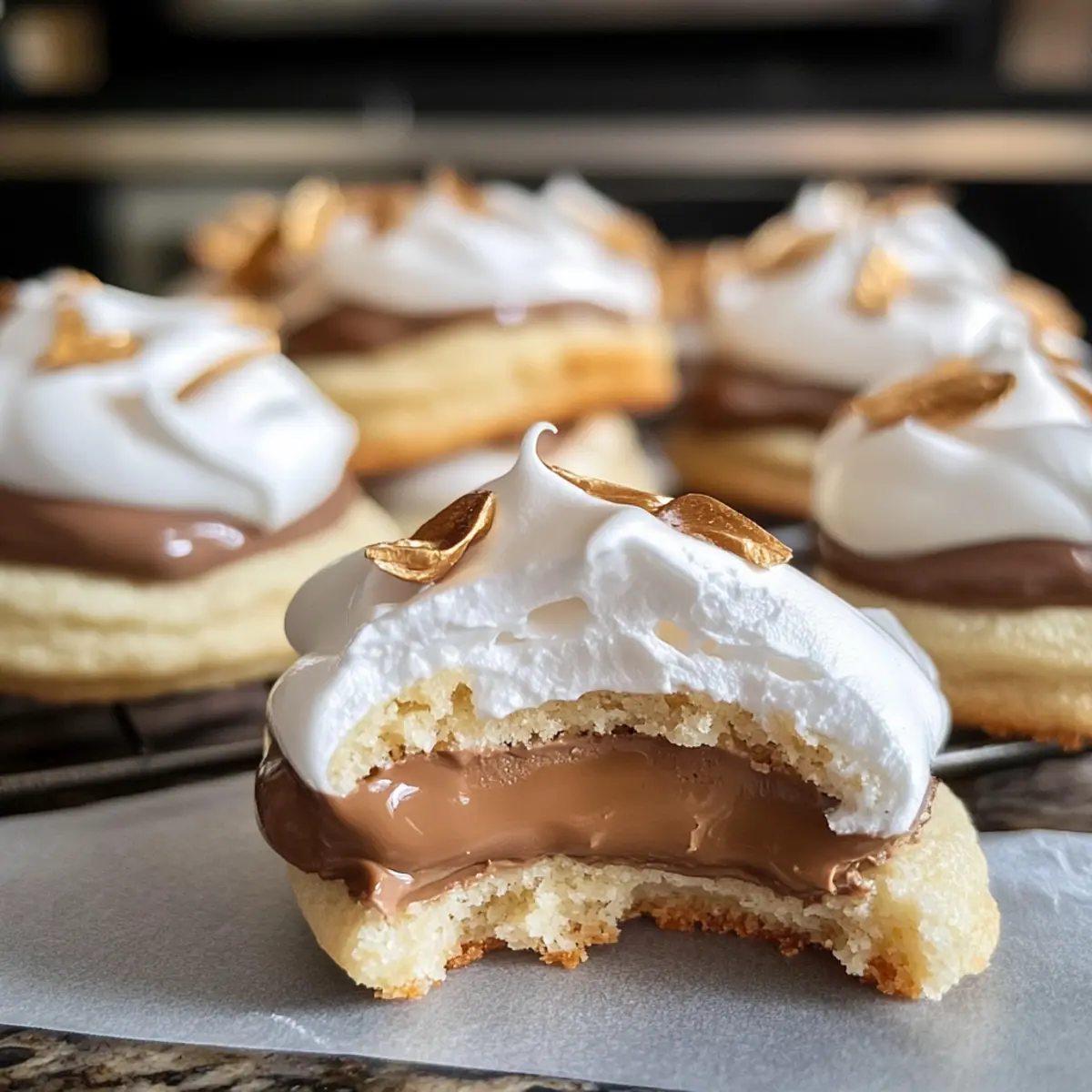 Es gibt Momente, da möchte man einfach etwas Zauberhaftes kreieren, und genau dann sind diese Feenküsse die perfekte Lösung. Wenn einem der festliche Duft von frisch gebackenen Keksen in die Nase steigt, lässt sich kaum widerstehen. Diese einfachen Toffifee-Feenküsse verbinden einen knackigen Außenrand mit einem zarten, chewy Zentrum, das überraschend mit einer süßen Toffifee gefüllt ist. Sie sind nicht nur ein absoluter Hit auf jeder Weihnachtsfeier, sondern auch kinderleicht zuzubereiten, was sie zum idealen Rezept für alle Backliebhaber macht. Egal, ob du sie mit Freunden genießen oder deiner Familie eine Freude machen möchtest, diese Kekse bringen Freude auf jeden Tisch. Neugierig, wie du diese kleinen Wunder selbst backen kannst? Lass uns gemeinsam in die Zubereitung eintauchen! Warum sind Feenküsse so verführerisch? Unwiderstehlicher Genuss: Diese Feenküsse mit Toffifee sind eine geschmackliche Offenbarung, die deine Sinne verzaubern wird. Einfache Zubereitung: Jeder Schritt ist kinderleicht und benötigt keine besonderen Backkenntnisse. Perfekt für jeden Anlass: Ideal für Feiertage, Familienfeiern oder einfach, um sich selbst zu verwöhnen. Glutenfreie Variante: Mit einem einfachen Austausch kannst du eine glutenfreie Version zaubern, sodass jeder mithimmlischen Küsse genießen kann. Vielseitige Füllungen: Experimentiere mit verschiedenen Süßigkeiten, um deine eigenen einzigartigen Kreationen zu schaffen. Lackiere sie dann mit einer feinen Schicht Meringue für das perfekte Finish. Falls du noch mehr über die verschiedenen Variationen erfahren möchtest, schau dir unsere Variation Ideas an! Feenküsse Zutaten • Um dir die Vorbereitungen zu erleichtern, hier eine Übersicht der benötigten Zutaten für die köstlichen Feenküsse: Für den Teig Weizenmehl – Gibt Struktur und Textur; ersetze es durch glutenfreies Mehl für eine glutenfreie Variante. Zucker – Fügt Süße hinzu und balanciert die Aromen; Puderzucker eignet sich gut für die Baisermasse. Vanillezucker – Verleiht ein feines Vanillearoma; kann auch durch Vanilleextrakt ersetzt werden. Butter – Sorgt für Reichhaltigkeit und Feuchtigkeit; verwende pflanzliche Margarine für eine vegane Option. Eigelb – Trägt zur Feuchtigkeit bei; für vegane Optionen kannst du Apfelmus oder einen Leinsamen-Ei-Ersatz verwenden. Salz – Balanciert die Süße und hebt die Aromen hervor. Für die Füllung Toffifee – Die Hauptfüllung, die eine cremige, schokoladige Überraschung bietet; probiere auch andere gefüllte Süßigkeiten, um Abwechslung zu schaffen. Für das Baiser Eiweiße – Für die luftige Baiserdeckung; stelle sicher, dass sie Zimmertemperatur haben für das beste Ergebnis. Zucker (für Baiser) – Süßt das Baiser; kräftig schlagen, bis steife Spitzen entstehen. Zitronensaft – Stabilisiert das Eiweiß und fügt eine spritzige Note hinzu, um die Süße auszubalancieren. Mit dieser einfache Zutatenliste bist du bereit, deine eigenen Feenküsse zu zaubern! Schritt-für-Schritt-Anleitung für Feenküsse: Himmlische Küsse für jede Feier Step 1: Ofen vorheizen Heize deinen Ofen auf 160°C (320°F) vor. Dies ist ein wichtiger erster Schritt, damit deine Feenküsse gleichmäßig und perfekt gebacken werden. Während der Ofen aufheizt, kannst du dich um die restlichen Zutaten kümmern, um alles effizient zu gestalten und die Vorbereitungen zu optimieren. Step 2: Teigmischung vorbereiten In einer großen Rührschüssel kombinierst du Weizenmehl, Zucker, Vanillezucker und Salz. Vermische die trockenen Zutaten miteinander, damit sich die Aromen gut verteilen können. Dies sorgt für eine gleichmäßige Süße in deinen Keksen. Nutze ein Schneebesen oder einen Löffel, um sicherzustellen, dass keine Klumpen zurückbleiben. Step 3: Butter und Eigelb unterrühren Schlage die weiche Butter in einer separaten Schüssel cremig, bis sie leicht und fluffig ist. Füge nun die Eigelbe hinzu und verrühre alles gut, bis eine homogene Masse entsteht. Diese Mischung sorgt für die köstliche Reichhaltigkeit in den Feenküssen und verleiht dem Teig seine ideale Textur. Step 4: Trockenmischung einarbeiten Gib die vorbereitete Trockenmischung nach und nach zur Butter-Eigelb-Mischung. Rühre alles zusammen, bis ein glatter, formbarer Teig entsteht. Dies ist ein entscheidender Moment, denn ein gut gemischter Teig sorgt für die Grundlage deiner köstlichen Feenküsse, die die Toffifee umhüllen werden. Step 5: Kekse formen Forme aus dem Teig kleine Bälle, etwa in der Größe einer Walnuss. Nimm einen Ball und drücke ihn leicht platt, um Platz für die Toffifee in der Mitte zu schaffen. Lege eine Toffifee hinein und forme den Teig um die Süßigkeit, sodass sie vollständig umschlossen ist. Wiederhole diesen Schritt für den restlichen Teig, sodass du alle Kekse vorbereitet hast. Step 6: Baisermasse herstellen Schlage die Eiweiße in einer sauberen, fettfreien Schüssel auf, bis sie schaumig sind. Füge dann langsam den Zucker hinzu und schlage weiter, bis steife Spitzen entstehen. Integriere schließlich den Zitronensaft, der hilft, das Baiser stabil zu machen. Diese süße Baisermasse wird später auf deinen Feenküssen einen himmlischen Glanz verleihen. Step 7: Baiser auftragen Verwende einen Spritzbeutel oder einen Löffel, um die Baisermasse gleichmäßig auf die oberseite jedes Kekses zu spritzen oder zu verteilen. Achte darauf, dass die Baiserschicht gut bedeckt und ansprechend aussieht. Diese süße Kruste wird während des Backens leicht golden werden und sorgt für einen kontrastierenden Biss zu den weichen Feenküssen. Step 8: Kekse backen Platziere die vorbereiteten Kekse auf ein mit Backpapier ausgelegtes Blech und schiebe sie in den vorgeheizten Ofen. Backe die Feenküsse für etwa 15 bis 20 Minuten, bis die Baisermasse fest und leicht goldbraun ist. Behalte den Ofen im Auge, da die Backzeiten je nach Ofen variieren können. Step 9: Abkühlen lassen Nimm die Kekse aus dem Ofen und lasse sie auf e