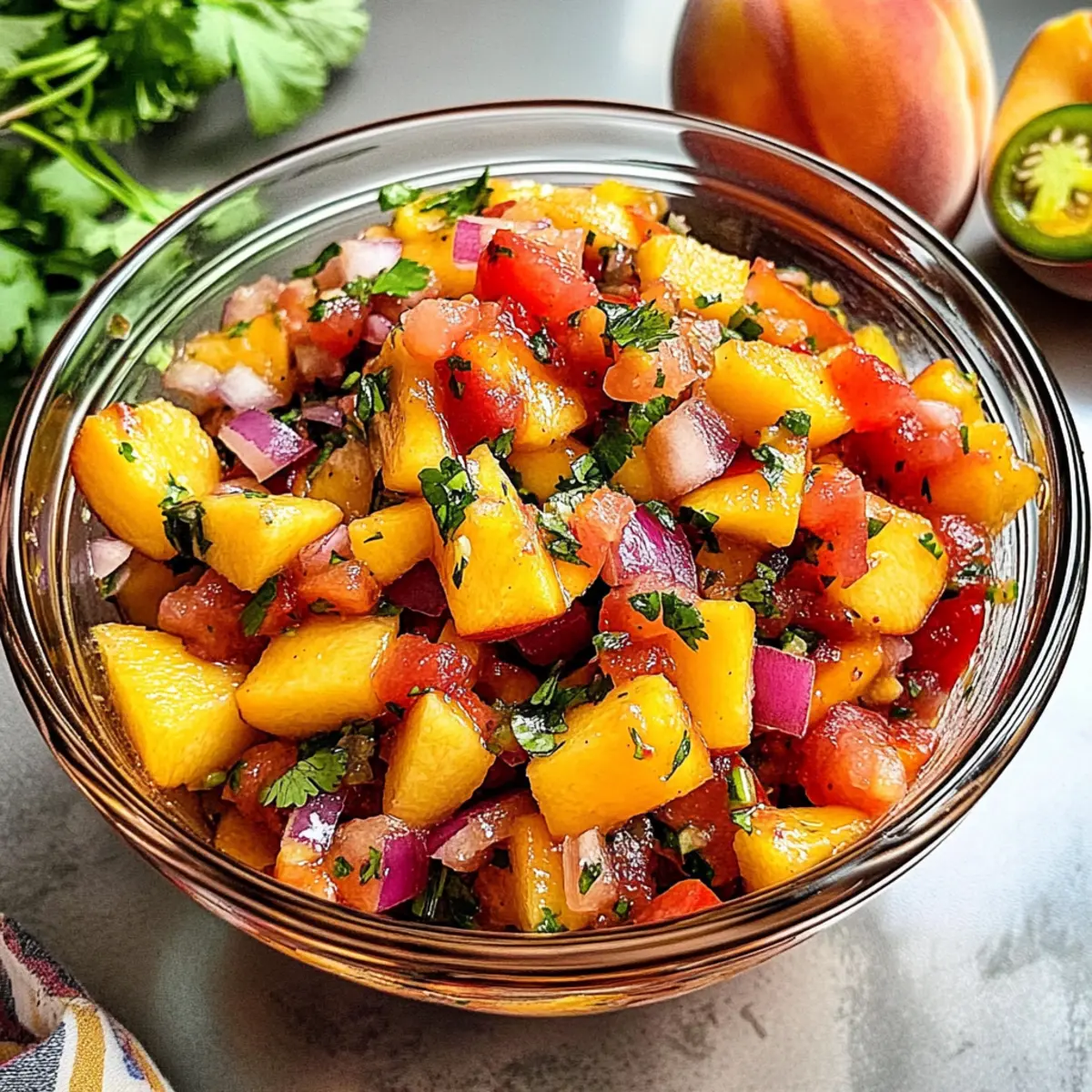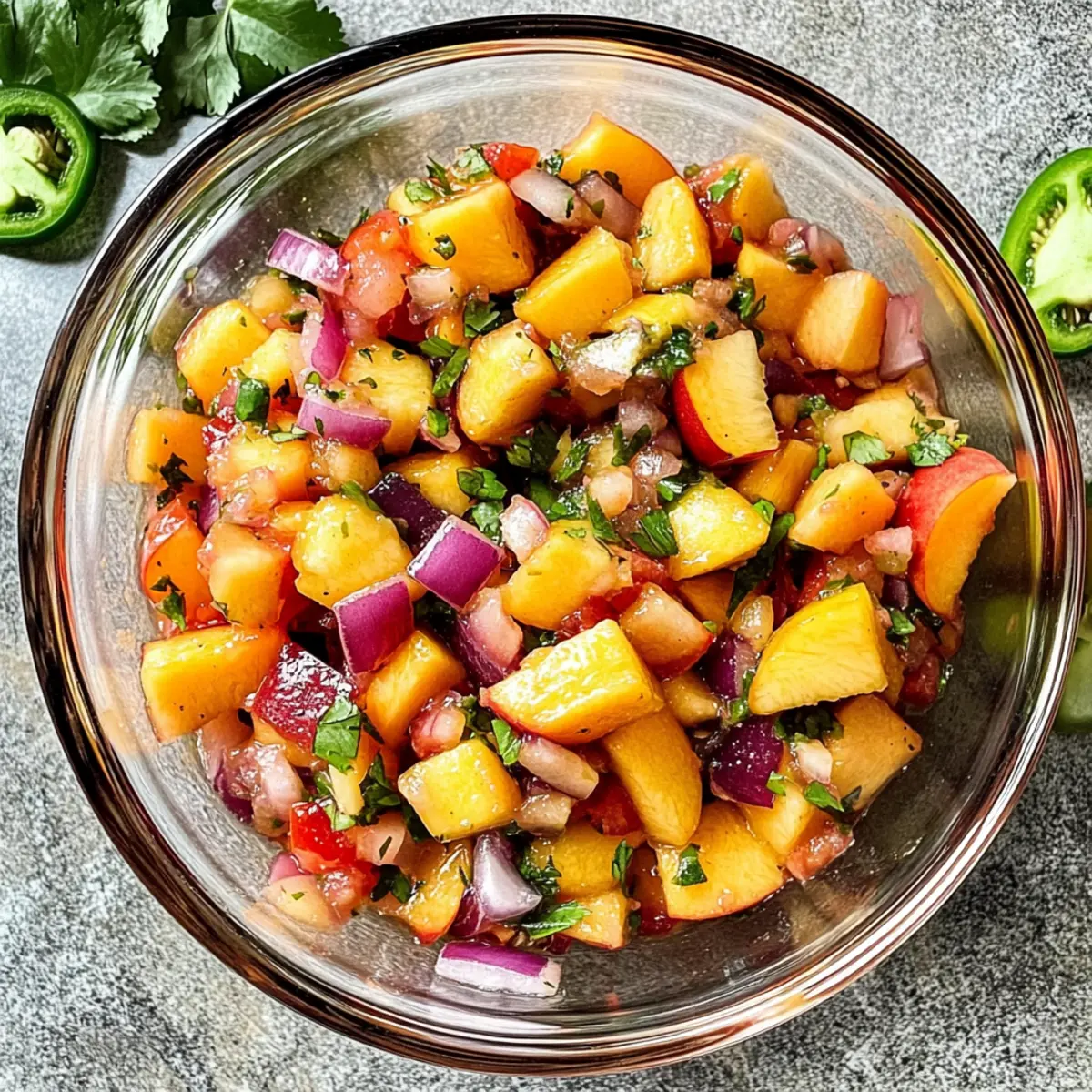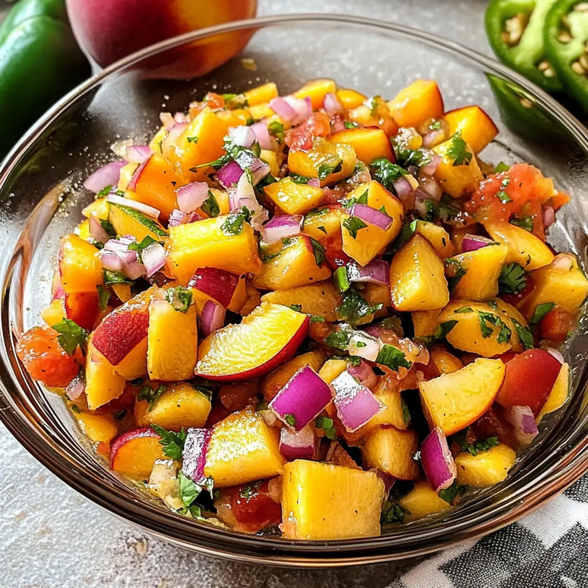 Während ich letzte Woche durch den Wochenmarkt schlenderte, wurde ich von dem verlockenden Duft frischer Pfirsiche angezogen. Diese saftigen Früchte schreien nach Sommer und laden dazu ein, in ein aufregendes Rezept zu verwandeln: Frische Pfirsichsalsa. Dieses einfache und vielseitige Rezept kombiniert die Süße reifer Pfirsiche mit der spritzigen Frische von Limetten und einer angenehmen Würze aus Jalapeños—perfekt als Appetizer für jedes Grillfest oder einfach als gesunder Snack mit Tortilla-Chips. Zudem ist diese fruchtige Salsa nicht nur ein Genuss für den Gaumen, sondern auch ein echter Blickfang auf jedem Tisch. Warum also warten? Lass uns gemeinsam diese köstliche Salsa kreieren und die Aromen des Sommers auf unseren Tellern zum Leben erwecken! Was würdest du zu deiner Pfirsichsalsa servieren? Warum ist diese Pfirsichsalsa einzigartig? Frische Aromen – Diese Salsa kombiniert die natürliche Süße von Pfirsichen mit der spritzigen Frische von Limette. Einfache Zubereitung – Mit nur wenigen Zutaten und einfachen Schritten ist sie schnell zubereitet und benötigt keine besonderen Kochkünste. Vielseitig einsetzbar – Perfekt zu Tortilla-Chips, als Topping für Tacos oder sogar zu gegrilltem Fleisch. Gesunde Wahl – Mit nur 36 Kalorien pro Portion ist sie ein leichter Genuss, der deine Snack-Pause aufwertet. Blickfang – Die leuchtenden Farben machen diese Salsa zum Highlight auf jedem Tisch und werden deine Gäste beeindrucken. Machen Sie das Beste aus dem Sommer mit diesem erfrischenden Rezept! Zutaten für frische Pfirsichsalsa • Diese leckere und erfrischende Salsa wird aus einfachen, aber hochwertigen Zutaten zubereitet. Für die Salsa Reife Pfirsiche – – Die Hauptzutat, die Süße und Saftigkeit liefert; achte darauf, dass sie fest, aber reif sind. Roma-Tomate – – Fügt Frische und Säure hinzu; kann durch jede reife Tomatensorte ersetzt werden. Rote Zwiebel – – Bietet Knusprigkeit und Schärfe; für eine mildere Variante kannst du gelbe Zwiebel verwenden. Jalapeño – – Sorgt für Würze und Geschmack; für mehr Schärfe lasse die Samen hinein. Frischer Koriander – – Fügt eine kräuterliche Note hinzu; kann bei Vorliebe auch weggelassen werden. Limettensaft – – Bringt die Aromen zum Strahlen; alternativ kann auch Zitronensaft verwendet werden. Salz und Pfeffer – – Verstärkt das Gesamtgeschmackserlebnis; nach Geschmack anpassen. Mit dieser frischen Pfirsichsalsa zauberst du das perfekte Sommergericht, das nicht nur den Gaumen erfreut, sondern auch in der Zubereitung Spaß macht. Schritt-für-Schritt-Anleitung für Frische Pfirsichsalsa Step 1: Zutaten vorbereiten Beginne damit, die reifen Pfirsiche, die Roma-Tomate und die rote Zwiebel in kleine Würfel zu schneiden. Entferne die Kerne vom Jalapeño und hacke ihn fein. Minziere zudem eine Knoblauchzehe und presse eine Limette aus. Stelle sicher, dass deine Zutaten frisch aussehen und angenehm duften, da dies die Qualität deiner Frischen Pfirsichsalsa erhöht. Step 2: Mischen Nehme eine große Schüssel und gebe alle vorbereiteten Zutaten hinein. Füge auch den frisch gehackten Koriander hinzu, falls du ihn verwendest. Vermische alles gründlich mit einem Löffel, bis die Farben der Zutaten gut miteinander verschmelzen und die Aromatik einladend wirkt. Achte darauf, dass die Salsa gleichmäßig aussieht. Step 3: Abschmecken Verfeinere die Mischung, indem du Salz und Pfeffer nach Geschmack hinzufügst. Rühre erneut gut durch, bis die Gewürze gleichmäßig verteilt sind. Probiere die Frische Pfirsichsalsa und passe die Gewürze an, um die perfekte Balance aus Süße, Schärfe und Säure zu finden. Du solltest die Frische und die Schärfe deutlich schmecken können. Step 4: Servieren Genieße die Frische Pfirsichsalsa sofort, indem du sie zusammen mit knusprigen Tortilla-Chips anrichtest. Alternativ kannst du sie auch als leckeres Topping auf Tacos, gegrilltem Hähnchen, Schweinefleisch oder Fisch servieren. Achte darauf, die Salsa ansprechend zu präsentieren, damit sie appétitlich aussieht und deine Gäste verführt. Was passt zu frischer Pfirsichsalsa? Diese leckere Salsa bringt Sommerfreude auf den Tisch und lässt sich wunderbar mit verschiedenen Gerichten kombinieren. Crispy Tortilla-Chips: Sie bieten den perfekten Crunch und kontrastieren angenehm mit der süßen, saftigen Salsa. Gegrilltes Hähnchen: Fügen Sie eine erfrischende Note hinzu, die die Aromen des Fleisches hervorhebt und das Gericht aufwertet. Tacos: Diese Salsa ist ein unverzichtbares Topping, das jedem Taco das gewisse Etwas verleiht und für Farbspiel sorgt. Frische Gemüsesticks: Karotten- und Gurkensticks sind eine gesunde, knackige Ergänzung, die die Frische der Salsa wunderschön unterstreicht. Feta-Käse: Der salzige Geschmack von Feta harmoniert wunderbar mit der Süße der Pfirsiche und schafft eine köstliche Kombination. Eistee: Ein erfrischendes Getränk, das die Schärfe der Salsa ausgleicht und perfekt zu einem sommerlichen Freiluftessen passt. Vanilleeis: Für das Dessert: Die süße und fruchtige Salsa ist ein besonderer Topping für Vanilleeis—ein überraschender, aber köstlicher Genuss! Variationen der Frischen Pfirsichsalsa Lass deiner Kreativität freien Lauf und passe diese leckere Salsa nach deinem Geschmack an! Mango-Twist: Tausche die Pfirsiche gegen reife Mangos aus, um eine exotische Süße zu erhalten. Diese Variante bringt ein fruchtiges Aroma mit sich, das die Salsa noch interessanter macht. Crispy Cucumber: Füge gewürfelte Gurken hinzu, um der Salsa eine knackige Textur zu verleihen. Die Frische der Gurke harmoniert wunderbar mit der Süße der Pfirsiche. Kräuterwechsel: Experimentiere mit anderen Kräutern wie Minze oder Basilikum, um dem Geschmack eine neue Dimension zu verleihen. Auch Petersilie könnte überraschende Aromen bieten! Schärfe intensivieren: Verwende frische Habaneros statt Jalapeños, um deiner Salsa einen ordentlich scharfen Kick zu geben. Ideal für a