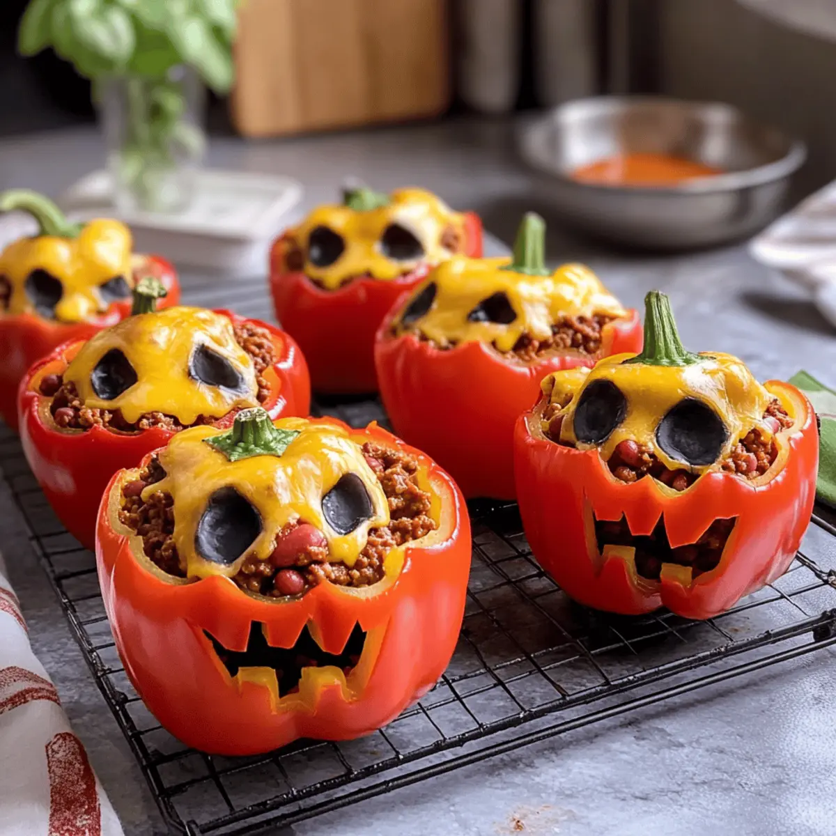 Einfache Zubereitung: Das Rezept ist unkompliziert und benötigt keine speziellen Kochkünste. Bunte Vielfalt: Nutze verschiedene Paprikafarbenspiele für einen festlichen Look. Herzhafter Genuss: Die Kombination aus Rinderhack, Bohnen und Gewürzen sorgt für ein intensives Geschmackserlebnis. Familienfreundlich: Ideal für die ganze Familie – ein Gericht, das selbst die Kleinsten begeistert! Nährstoffreich: Mit hohem Vitamin C-Gehalt sind diese Paprika nicht nur lecker, sondern auch gesund. Perfekte Präsentation: Die gruselige Gestaltung macht deine Mahlzeit zum Hingucker auf jeder Halloween-Party. Probiere auch unsere Varianten, um noch mehr Abwechslung in dein Halloween-Menü zu bringen!