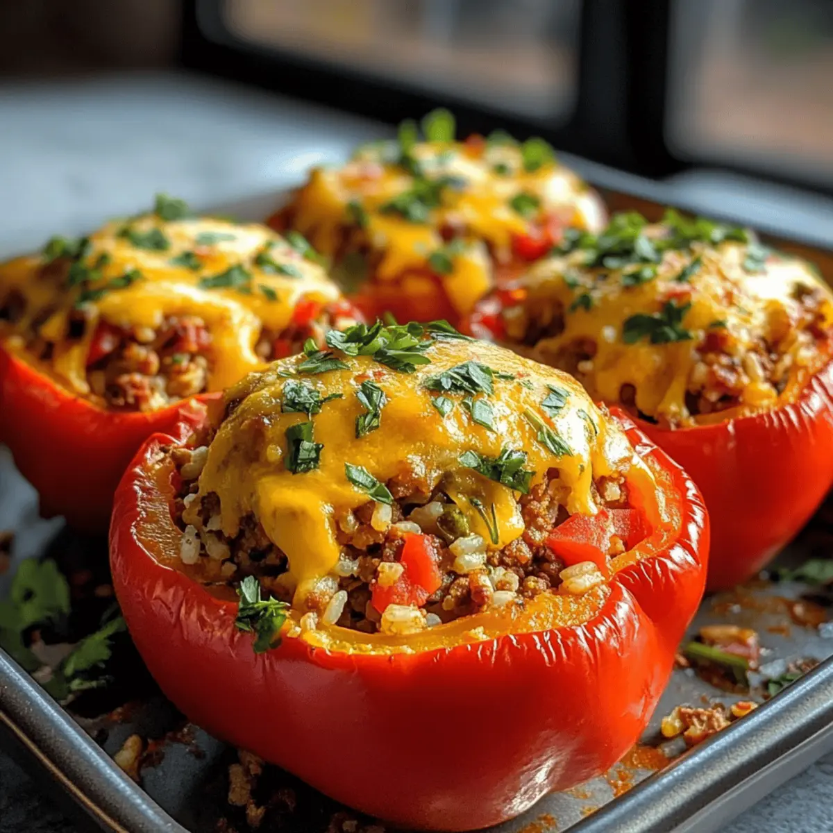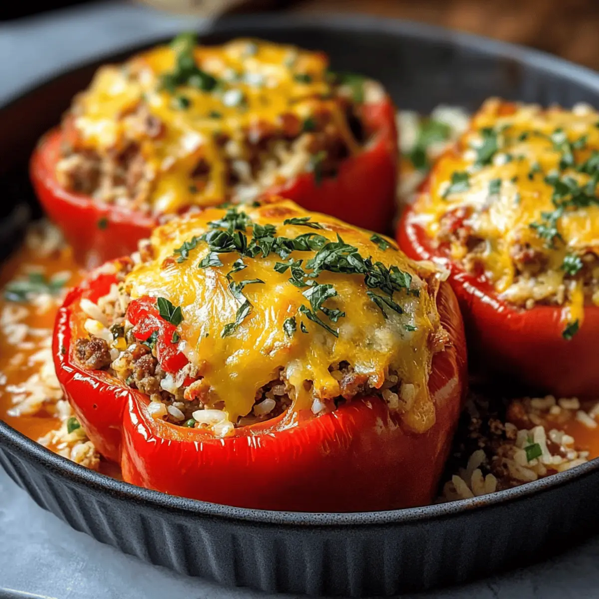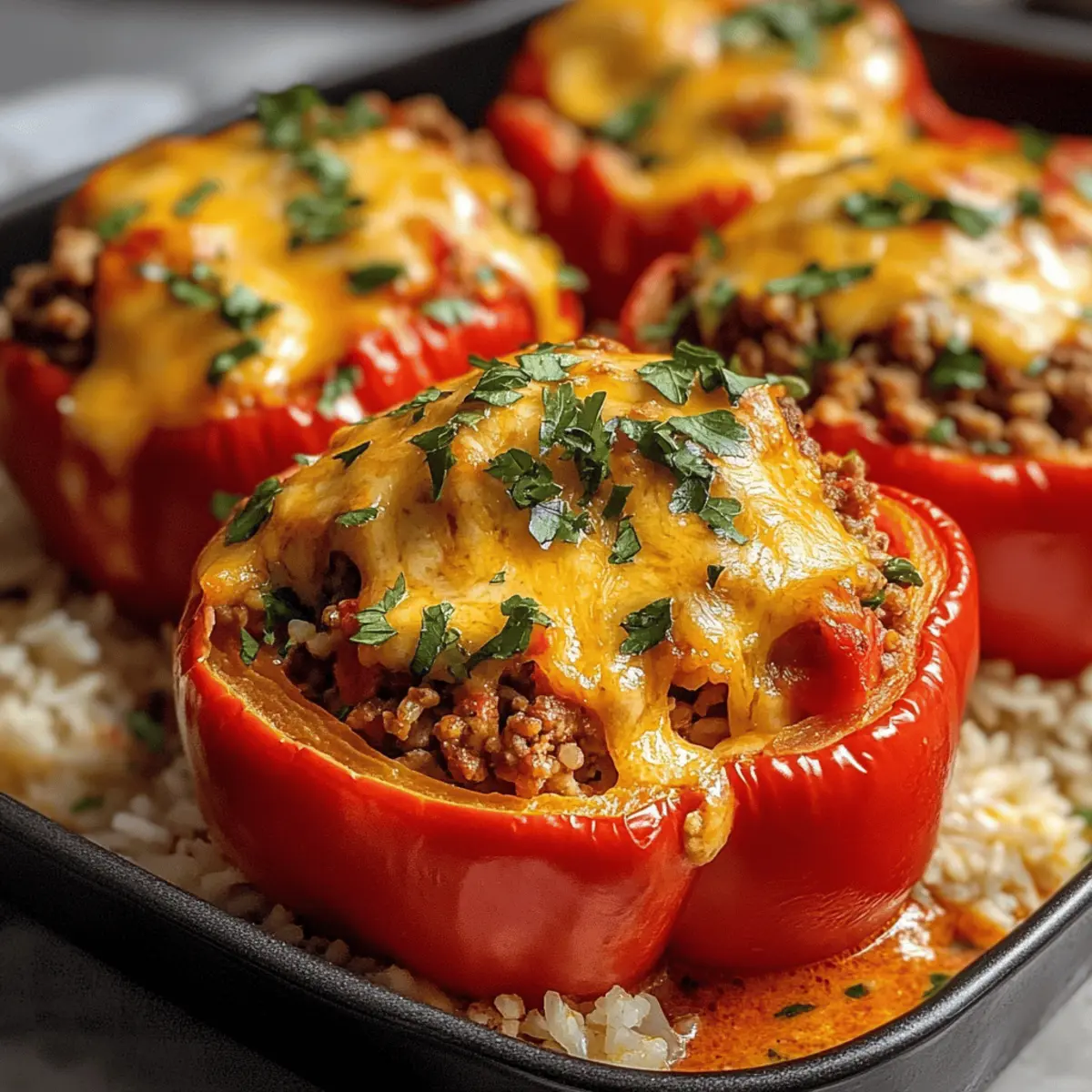 Als ich neulich in meiner Küche stand, um das perfekte Abendessen zuzubereiten, hörte ich das magische Geräusch von blubbernder Sauce. Es war die Vorfreude auf meine „Gefüllte Paprika Deluxe“ – ein Rezept, das nicht nur mein Herz, sondern auch das meiner Gäste erobert hat. Diese gefüllten Paprika sind der Inbegriff von Komfort und Genuss. Mit einer köstlichen Kombination aus zartem Rinderhack und fluffigem Basmatireis umhüllt von einer cremigen Tomatensauce und einem goldenen Käseüberzug, sind sie einfach unwiderstehlich. Die Zubereitung ist unkompliziert und dauert nicht lange, sodass du mehr Zeit mit deinen Liebsten verbringen kannst, während du diese köstliche Hauptspeise servierst. Und das Beste daran? Es gibt auch eine vegetarische Variante! Bist du bereit, deinem nächsten Dinner etwas Aufregung zu verleihen? Lass dich von diesem Rezept inspirieren! Warum wirst du diese gefüllten Paprika lieben? Einfachheit: Die Zubereitung ist unkompliziert, selbst für Kochanfänger. Reichhaltiger Geschmack: Die Kombination aus Rinderhack, würzigen Kräutern und cremiger Tomatensauce sorgt für ein Geschmackserlebnis, das begeistert. Zwei Varianten: Mit der Möglichkeit, eine vegetarische Option anzubieten, sind diese schmackhaften Paprika für jeden Anlass geeignet. Perfekte Textur: Saftige Füllung umhüllt von zarter Paprika und einem knusprigen Käseüberzug – ein wahrer Genuss! Zeitsparend: Schnell zubereitet, damit du mehr Zeit mit deinen Gästen verbringen kannst. Kombiniere sie mit einem frischen Salat oder Knusprige Gefüllte Pizzabroetchen für ein vollständiges Menü. Lass dir diese Gelegenheit nicht entgehen und verwandle dein nächstes Abendessen in ein wahres Festmahl! Gefüllte Paprika Deluxe Zutaten • Diese Zutaten bilden die Grundlage für dein perfektes Gericht! Für die Füllung 4 mittelgroße rote Paprikaschoten – Wähle frische, knackige Paprika für den besten Geschmack und die ideale Textur. 300g Rinderhackfleisch – Gibt der Füllung eine herzhafte Tiefe; ersetze es bei Bedarf durch Putenhack oder pflanzliches Hack für eine vegetarische Variante. 100g Basmatireis (roh) – Sorgt für eine fluffige Konsistenz; kann auch durch Quinoa oder Wildreis ersetzt werden. 1 große Zwiebel – Die aromatische Basis der Füllung; gelbe oder weiße Zwiebeln sind eine gute Wahl. 2 Knoblauchzehen – Bringen einen tollen Geschmack; passe die Menge nach deinem persönlichen Geschmack an. 1 EL Olivenöl – Zum Anbraten der Füllung; auch andere Pflanzenöle sind geeignet. Für die Sauce 70g Tomatenmark – Vertieft den Geschmack der Sauce; sonnengetrocknetes Tomatenmark sorgt für eine besondere Note. 400g passierte Tomaten – Grundlage einer robusten Sauce; verwende gewürfelte Tomaten für mehr Textur. 200ml Gemüsebrühe – Sorgt für Feuchtigkeit in der Sauce; Hühnerbrühe ist für die nicht-vegetarische Variante eine gute Wahl. 100ml Kochsahne – Macht die Sauce cremig; Kokosmilch eignet sich als leichtere Alternative. Für das Topping 100g geriebener Käse (z.B. Gouda oder Mozzarella) – Schafft eine goldene, knusprige Kruste; Cheddar oder ein pflanzlicher Käse sind ebenfalls möglich. Gewürze 1 TL Paprikapulver edelsüß – Fügt Süße und Tiefe hinzu; geräuchertes Paprikapulver sorgt für einen tollen, rauchigen Geschmack. 1/2 TL Kreuzkümmel gemahlen – Gibt dem Gericht eine warme Note; dafür kann auch Curry-Pulver verwendet werden. Salz und frisch gemahlener Pfeffer – Für die essentielle Würze; individuell anpassen. Frische Petersilie oder Koriander zum Garnieren – Frische Kräuter heben das Aroma; wähle je nach Geschmack und Vorliebe. Damit bist du nun bestens ausgestattet für dein nächstes kulinarisches Abenteuer mit diesen köstlichen gefüllten Paprika Deluxe! Schritt-für-Schritt-Anleitung für Gefüllte Paprika Deluxe Step 1: Paprika vorbereiten Wasche die roten Paprikaschoten gründlich, halbier sie der Länge nach und entferne die Kerne. Blanchiere die Paprikahälften für 3 Minuten in kochendem, gesalzenem Wasser, bis sie leicht weich sind. Anschließend lege sie in Eiswasser, um den Kochvorgang zu stoppen und behalte die knallige Farbe. Step 2: Füllung zubereiten Erhitze das Olivenöl in einer Pfanne und brate die gewürfelten Zwiebeln bei mittlerer Hitze an, bis sie glasig sind. Füge das Rinderhackfleisch hinzu und brate es, bis es vollständig durchgegart und schön braun ist. Gib dann den gehackten Knoblauch dazu und rühre für eine weitere Minute, bevor du den rohen Basmatireis, das Tomatenmark, Paprika und Kreuzkümmel hinzufügst. Mit Salz und Pfeffer abschmecken. Step 3: Sauce vorbereiten Mische in einer Schüssel die passierten Tomaten, das restliche Tomatenmark, die Gemüsebrühe und die Kochsahne. Verrühre alles gut miteinander und schmecke die Sauce nochmals ab, um sicherzustellen, dass sie perfekt gewürzt ist. Diese cremige Mischung wird später die Paprika umhüllen. Step 4: Gefüllte Paprika zusammenstellen Lege die blanchierten Paprikahälften in eine Auflaufform. Fülle jede Hälfte großzügig mit der zuvor zubereiteten Hackfleisch-Reis-Mischung. Gieße die vorbereitete Tomatensauce rund um die gefüllten Paprika, sodass sie gut umschlossen sind und beim Backen die Aromen verbinden können. Step 5: Backen Heize den Ofen auf 180°C vor. Stelle die Auflaufform mit den gefüllten Paprikaschoten in den Ofen und backe sie für 35 Minuten. Nach dieser Zeit streue den geriebenen Käse gleichmäßig über die Paprika und backe für weitere 10–15 Minuten, bis der Käse goldbraun und geschmolzen ist. Step 6: Servieren Serviere die gefüllten Paprika Deluxe heiß auf einem Bett aus gekochtem Basmatireis. Garniere das Gericht mit frisch gehackter Petersilie oder Koriander, um den Geschmack zu heben und einen frischen Farbkontrast zu schaffen. So kommen die Aromen und die ansprechende Präsentation perfekt zur Geltung. Variationen & Alternativen Entdecke spannende Möglichkeiten, wie du die „Gefüllte Paprik