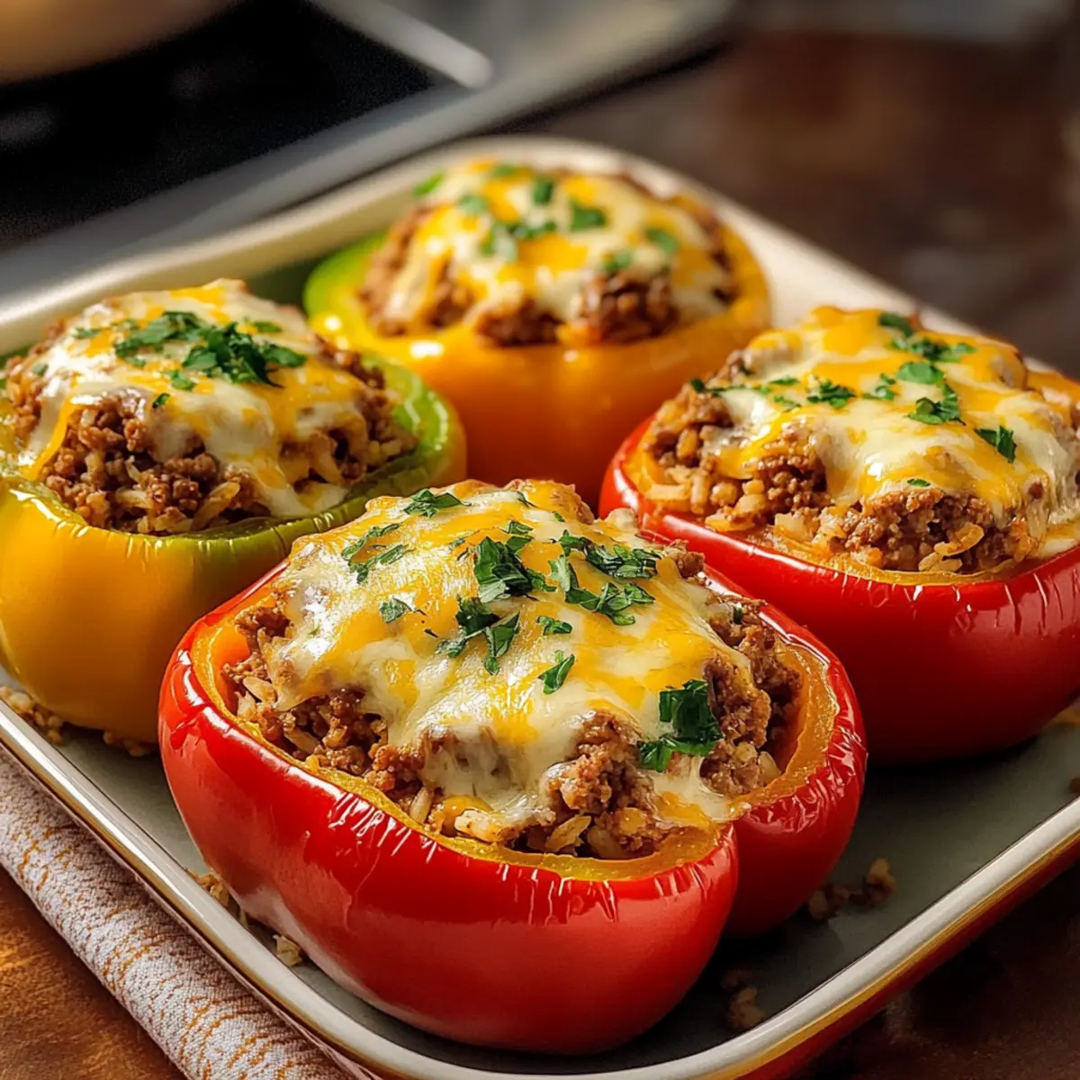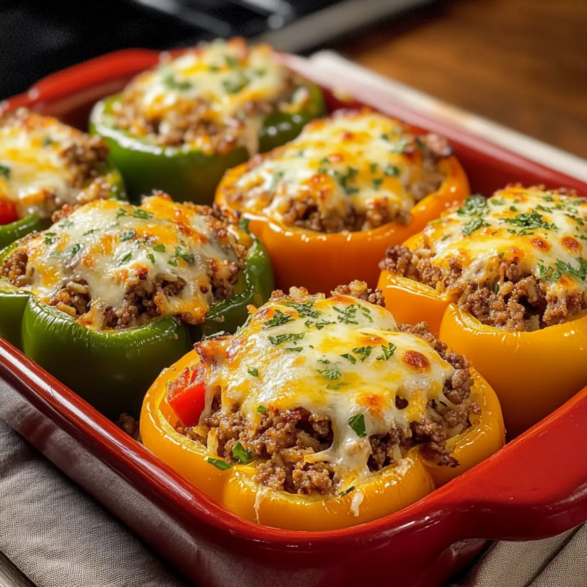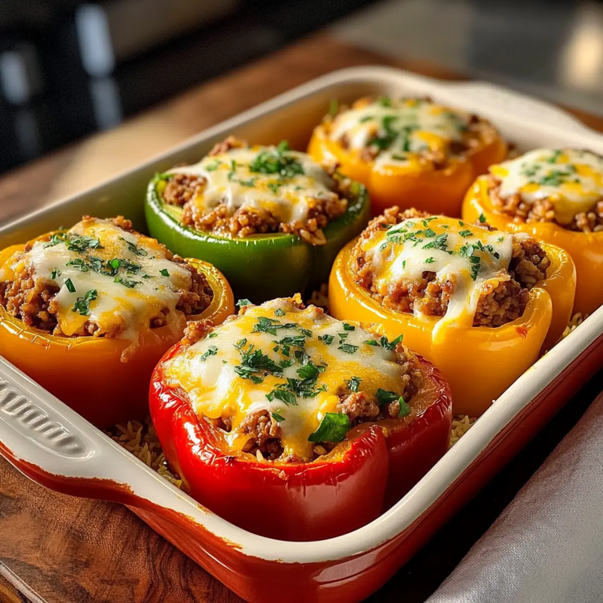 Als ich neulich in meinem Garten nach frisch gepflückten Paprika suchte, wurde mir bewusst, wie vielseitig und schmackhaft dieses Gemüse ist. Mit ihren leuchtenden Farben und der knackigen Textur sind gefüllte Paprika nicht nur ein echter Blickfang auf dem Teller, sondern auch ein echter Gefüllte Paprika Klassiker, der sich perfekt für jedes Familienessen eignet. Dieses Rezept bietet nicht nur eine einfache Zubereitung, sondern ist auch äußerst anpassbar – Sie können verschiedene Füllungen ausprobieren, um Ihre Gäste zu begeistern. Die saftigen, herzhaften Paprika sind ideal für eine schnelle Mahlzeit unter der Woche oder einen gemütlichen Abend mit Freunden. Wer kann da schon widerstehen? Lassen Sie uns gemeinsam in die Welt der gefüllten Paprika eintauchen und herausfinden, wie dieses Gericht ein wahrer Favorit in Ihrer Küche werden kann! Warum sind gefüllte Paprika so beliebt? Vielseitigkeit, diese klassisch gefüllten Paprika lassen sich leicht anpassen – von Rinderhack zu einer köstlichen vegetarischen Variante mit Linsen. Einfachheit, die Zubereitung ist unkompliziert und erfordert keine besonderen Kochkünste. Herzhafter Geschmack, die Kombination aus frisch gepflückten Paprika, aromatischem Hack und geschmolzenem Käse sorgt für ein Geschmackserlebnis, das die ganze Familie begeistert. Perfekte Texte, die knackige Hülle der Paprika und die saftige Füllung harmonieren hervorragend miteinander. Ideal für jede Gelegenheit, ob als schnelles Abendessen unter der Woche oder als beeindruckendes Menü für Gäste. Machen Sie sich bereit, diese gefüllten Paprika zu Ihrem neuen Lieblingsgericht zu erheben! Gefüllte Paprika Zutaten Hinweis: Hier sind alle Zutaten, die Sie für den klassischen Gefüllte Paprika Klassiker benötigen, um ein herzhaftes Gericht zuzubereiten. Für die Füllung Mittelgroße Paprikaschoten – Verwenden Sie verschiedene Farben für eine ansprechende Präsentation. Rinderhackfleisch (500g) – Herzhaft und saftig, kann auch durch Geflügel oder vegetarische Alternativen ersetzt werden. Große Zwiebel (1) – Fein gewürfelt, sorgt für aromatische Tiefe in der Füllung. Knoblauchzehen (2) – Fein gehackt, bringt zusätzlichen Geschmack ins Gericht. Reis (150g, ungekocht) – Lockert die Füllung und nimmt die Aromen gut auf. Gehackte Tomaten (400g, aus der Dose) – Fügt nötige Saftigkeit hinzu und belebt jede Füllung. Gemüsebrühe (100ml) – Gibt der Mischung zusätzlichen Geschmack und verhindert Trockenheit. Tomatenmark (2 EL) – Intensiviert den Gesamtgeschmack und sorgt für eine warme Note. Edelsüßes Paprikapulver (1 TL) – Für das typische Paprikaaroma, das jedem Biss Tiefe verleiht. Salz und frisch gemahlener schwarzer Pfeffer – Zum perfekten Würzen des Gerichts. Für das Topping Geriebener Käse (150g) – Zum Überbacken; verwenden Sie zum Beispiel Mozzarella für eine goldbraune Kruste. Frische Petersilie – Für die Dekoration und einen frischen Geschmackskick. Zum Anbraten Olivenöl (2 EL) – Zum Anbraten des Hackfleisches, bringt zusätzliches Aroma in die Füllung. Schritt-für-Schritt-Anleitung für Gefüllte Paprika Klassiker Step 1: Ofen vorheizen Heizen Sie den Backofen auf 200°C vor. In der Zwischenzeit die mittelgroßen Paprikaschoten unter fließendem Wasser gründlich abspülen. Nehmen Sie die Deckel ab oder halbieren Sie die Paprika und entfernen Sie die Kerne. Legen Sie die vorbereiteten Paprikaschoten in eine Auflaufform, bereit für die Füllung. Step 2: Paprika vorbacken Backen Sie die Paprikahälften für etwa 10 Minuten im vorgeheizten Ofen. Dies hilft, überschüssiges Wasser zu entziehen und die Paprika leicht zu garen. Achten Sie darauf, dass sie nicht zu weich werden, da sie später noch gefüllt und weiter gebacken werden. Step 3: Reis kochen und Zwiebel vorbereiten Kochen Sie den Reis gemäß den Anweisungen auf der Verpackung bissfest. In der Zwischenzeit die große Zwiebel und die Knoblauchzehen fein würfeln. Diese aromatischen Zutaten werden gleich zur Füllung hinzugefügt, um den Gefüllte Paprika Klassiker geschmacklich zu bereichern. Step 4: Hackfleisch anbraten Erhitzen Sie 2 Esslöffel Olivenöl in einer großen Pfanne bei mittlerer Hitze. Fügen Sie das Rinderhackfleisch hinzu und braten Sie es 5–7 Minuten lang krümelig an, bis es durchgegart ist. Geben Sie die Zwiebeln und den Knoblauch dazu und dünsten Sie beides für weitere 3–5 Minuten, bis die Zwiebeln glasig sind. Step 5: Füllung zubereiten Fügen Sie 2 Esslöffel Tomatenmark und 1 Teelöffel edelsüßes Paprikapulver zur Hackmischung hinzu und braten Sie alles 1–2 Minuten an. Gießen Sie dann 400 g gehackte Tomaten und 100 ml Gemüsebrühe dazu und würzen Sie die Mischung mit Salz und frisch gemahlenem Pfeffer. Lassen Sie die Füllung 5 Minuten köcheln, damit sich die Aromen entfalten. Step 6: Reis unter die Hackmasse heben Nehmen Sie die Pfanne vom Herd und heben Sie den vorgekochten Reis unter die Hackmischung. Achten Sie darauf, dass alles gleichmäßig vermengt wird, um eine schmackhafte Füllung für Ihren Gefüllte Paprika Klassiker zu erhalten. Stellen Sie sicher, dass die Füllung gut gewürzt ist, bevor Sie fortfahren. Step 7: Paprika füllen und Käse hinzufügen Nehmen Sie die vorgebackenen Paprikahälften aus dem Ofen und füllen Sie jede Hälfte mit der vorbereiteten Hackfleisch-Reis-Mischung. Streuen Sie 150 g geriebenen Käse darauf, um eine köstliche Käseschicht zu bilden. Dies trägt zur goldbraunen Kruste bei, die nach dem Backen entsteht. Step 8: Backen und Servieren Stellen Sie die gefüllten Paprikas wieder in den Ofen und backen Sie sie für 30–35 Minuten, bis der Käse geschmolzen und goldbraun ist. Nach dem Backen mit frischer Petersilie garnieren und heiß servieren. Genießen Sie Ihre herzhaften gefüllten Paprika, die die ganze Familie begeistern werden! Vorbereitungen für Ihren Gefüllte Paprika Klassiker Die gefüllten Paprika sind ideal für die Vorbereitung von Mahlzeiten,