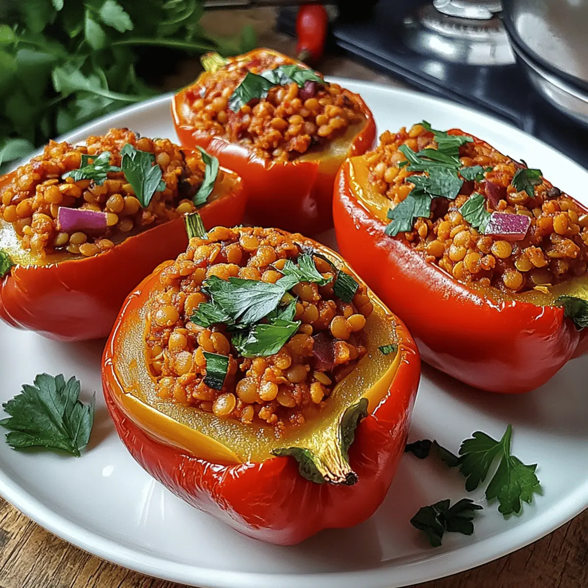 In meinem letzten Besuch auf dem örtlichen Markt fiel mir sofort die leuchtende Farbe der Spitzpaprika ins Auge. Diese wunderschönen, langen Paprika schienen darauf zu warten, mit einer köstlichen Füllung verzaubert zu werden. Meine Gedanken kreisten sofort um das Rezept für gefüllte Spitzpaprika mit roten Linsen, das nicht nur gesund, sondern auch unglaublich vielseitig ist. Besonders begeistert bin ich von der Kombination aus proteinreichen Linsen und aromatischen Gewürzen, die diesem Gericht einen besonderen Pfiff verleihen. Es ist nicht nur schnell und einfach zubereitet, sondern eignet sich auch perfekt als leichtes Abendessen oder als beeindruckende Beilage für Gäste. Neugierig, wie du mit deinem eigenen kreativen Twist in der Küche glänzen kannst? Lass uns gemeinsam diese köstliche Reise beginnen! Warum sind gefüllte Spitzpaprika so beliebt? Gesund, gefüllte Spitzpaprika sind nicht nur nährstoffreich, sondern überzeugen auch durch ihre bunten und ansprechenden Farben. Vielseitig, du kannst die Füllung nach Lust und Laune anpassen, sei es mit Käse, Quinoa oder verschiedenen Gewürzen. Einfach zubereitet, selbst Kochanfänger meistern dieses Rezept im Handumdrehen. Aromatisch, die Kombination aus roten Linsen und orientalischen Gewürzen verleiht jedem Bissen eine besondere Note. Zeitersparnis, bereite die Füllung vor und backe die Paprika bei Bedarf später – perfekt für stressige Tage. Beeindruckend, deine Gäste werden von diesem leckeren, gesunden Gericht begeistert sein! Gefüllte Spitzpaprika Zutaten Entdecke die frischen und gesunden Zutaten für gefüllte Spitzpaprika mit roten Linsen! Für die Füllung Spitzpaprika – Wähle frische und feste Paprika für ein optimales Backergebnis. Rote Linsen – Eine schnelle und proteinreiche Basis, die schnell gar wird und gut bindet. Zwiebel – Sorgt für ein wunderbares Aroma; Schalotten sind ebenfalls eine schmackhafte Alternative. Knoblauch – Verleiht der Füllung Tiefe; frischer Knoblauch bringt den besten Geschmack. Orientalische Gewürze – Eine Mischung aus Kreuzkümmel, Paprika und Chili für den perfekten Pfiff; wähle je nach Geschmack. Frische Kräuter – Zum Beispiel Petersilie oder Koriander für zusätzlichen Geschmack und Farbe. Gemüsebrühe – Macht die Füllung saftiger und aromatischer, kann aber durch Wasser ersetzt werden. Olivenöl – Ideal zum Anbraten und verstärkt das Aroma der Zutaten. Optional für Servierung Joghurt – Eine leichte Beilage, die perfekt zu den gefüllten Spitzpaprika passt. Tomatensauce – Eine köstliche Ergänzung, die die Aromen wunderbar harmonisiert. Schritt-für-Schritt-Anleitung für Gefüllte Spitzpaprika mit roten Linsen Step 1: Paprika vorbereiten Wasche die Spitzpaprika gründlich unter fließendem Wasser und schneide das obere Ende ab, um die Kappen zu entfernen. Entkerne die Paprika vorsichtig mit einem kleinen Messer oder einem Löffel, sodass genügend Platz für die Füllung entsteht. Lege die vorbereiteten Paprika auf ein Backblech und heize den Ofen auf 180 °C (Ober-/Unterhitze) vor, während du die Füllung zubereitest. Step 2: Füllung zubereiten Erhitze in einer Pfanne 2 Esslöffel Olivenöl bei mittlerer Hitze. Füge die fein gehackte Zwiebel und den zerdrückten Knoblauch hinzu und brate sie unter Rühren etwa 3-4 Minuten lang an, bis sie glasig sind. Streue die orientalischen Gewürze ein und röste sie 1 weitere Minute, bis sie aromatisch duften. Diese köstliche Mischung wird die Basis für die gefüllten Spitzpaprika mit roten Linsen bilden. Step 3: Linsen kochen Gib die roten Linsen in die Pfanne und gieße etwa 300 ml Gemüsebrühe dazu. Erhöhe die Hitze, bis die Mischung kocht. Reduziere die Hitze dann auf niedrig und lasse die Linsen 15 Minuten sanft köcheln, bis sie weich sind und die Flüssigkeit größtenteils aufgesogen wurde. Rühre gelegentlich um, sodass nichts ansetzt, und achte darauf, dass die Linsen nicht zerfallen. Step 4: Füllung mischen Nimm die Pfanne vom Herd und lass die Linsenfüllung etwas abkühlen. Füge nun frische, gehackte Kräuter, wie Petersilie oder Koriander, hinzu. Vermenge alles gut, bis sich die Kräuter gleichmäßig in der Füllung verteilen. Diese Mischung ist nun bereit, um die vorbereiteten Spitzpaprika zu füllen und somit ein herzhaftes Gericht zu kreieren. Step 5: Paprika füllen Mit einem Esslöffel kannst du die Linsenfüllung vorsichtig in die Paprika geben, bis sie leicht überquellen. Stelle sicher, dass jede Paprika gleichmäßig gefüllt ist, damit sie beim Backen gleichmäßig gart. Setze die gefüllten Spitzpaprika in eine Auflaufform und lasse noch etwas Platz zwischen den Paprika, damit sie schön garen können. Step 6: Backen Schiebe die Auflaufform in den vorgeheizten Ofen und backe die gefüllten Spitzpaprika für etwa 30 Minuten. Achte darauf, dass die Paprika weich sind und die Oberfläche leicht goldbraun wird. Wenn du sie siehst, wie sie aufgehen, weißt du, dass sie perfekt gegart sind. Step 7: Servieren Nehme die gefüllten Spitzpaprika aus dem Ofen und lasse sie ein paar Minuten ruhen, bevor du sie servierst. Sie lassen sich hervorragend mit etwas Joghurt oder einer herzhaften Tomatensauce kombinieren. Jedes Gericht bringt die Aromen zusammen und macht die gefüllten Spitzpaprika zu einem unvergesslichen Genuss. Was passt zu Gefüllten Spitzpaprika mit roten Linsen? Die perfekten Begleiter machen aus deinem Essen ein unvergessliches Erlebnis. Lass dich von dieser Auswahl inspirieren! Frischer gemischter Salat: Ein knackiger Salat bringt eine erfrischende Note und ergänzt die herzhaften Aromen der gefüllten Paprika. Quinoa-Salat: Vollgepackt mit Nährstoffen, der leicht nussige Geschmack von Quinoa harmoniert wunderbar mit den pikanten Linsenfüllungen. Cremiger Joghurt: Ein Klecks Joghurt balanciert die Gewürze und sorgt für eine angenehme Frische, die jedem Bissen zusätzlichen Reiz verleiht. Knuspriges Baguette: Das Brot eignet sich perfekt, um die köstlichen